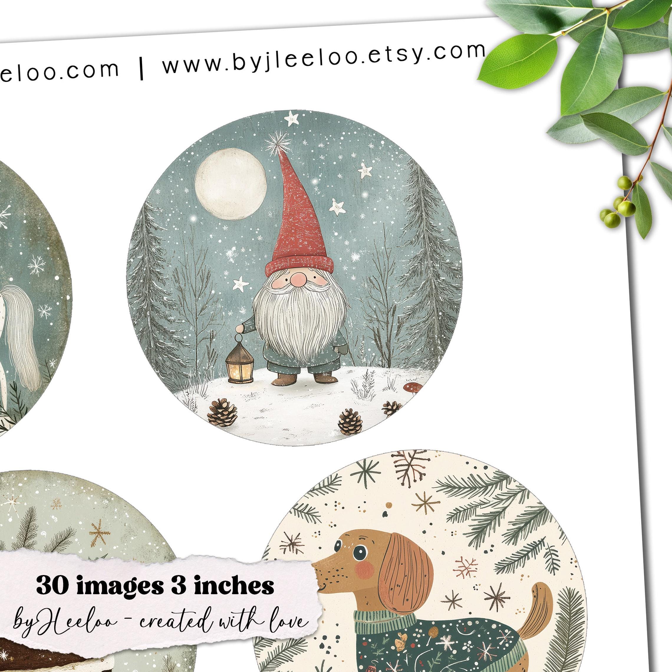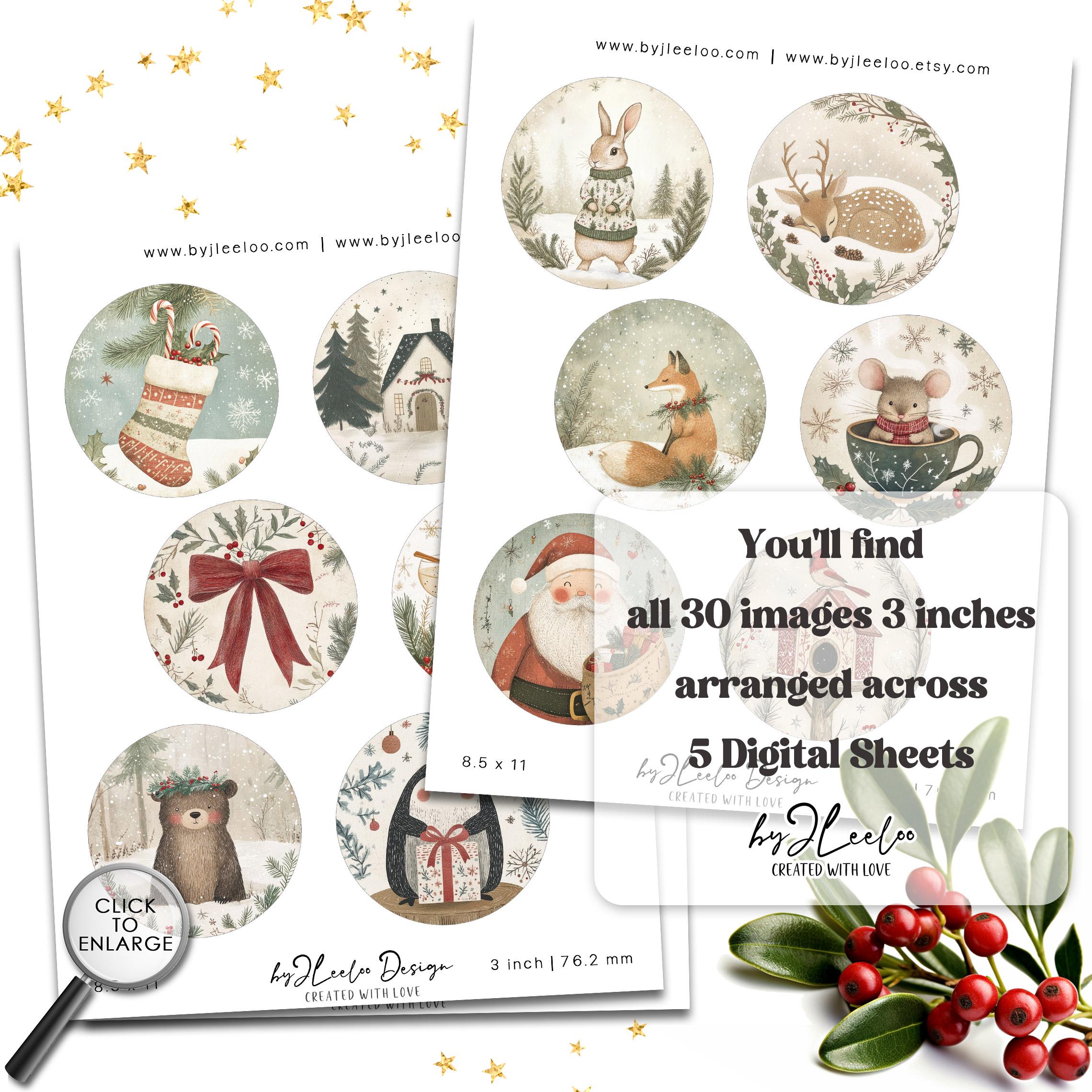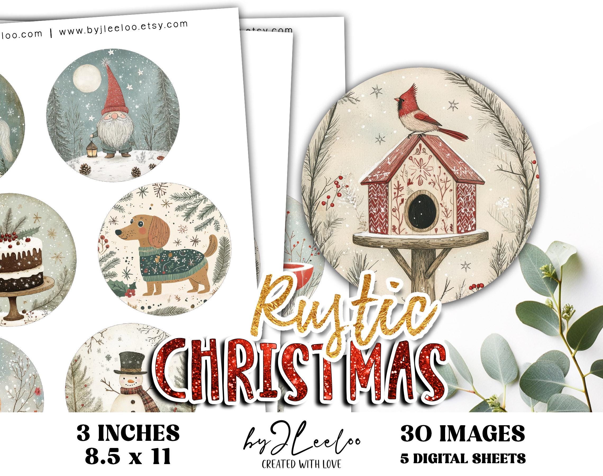 RUSTIC CHRISTMAS 3 inch printable illustration | for Pendant Decor, Labels Stickers, Winter Folk scrapbooking for Journal digital | tn840