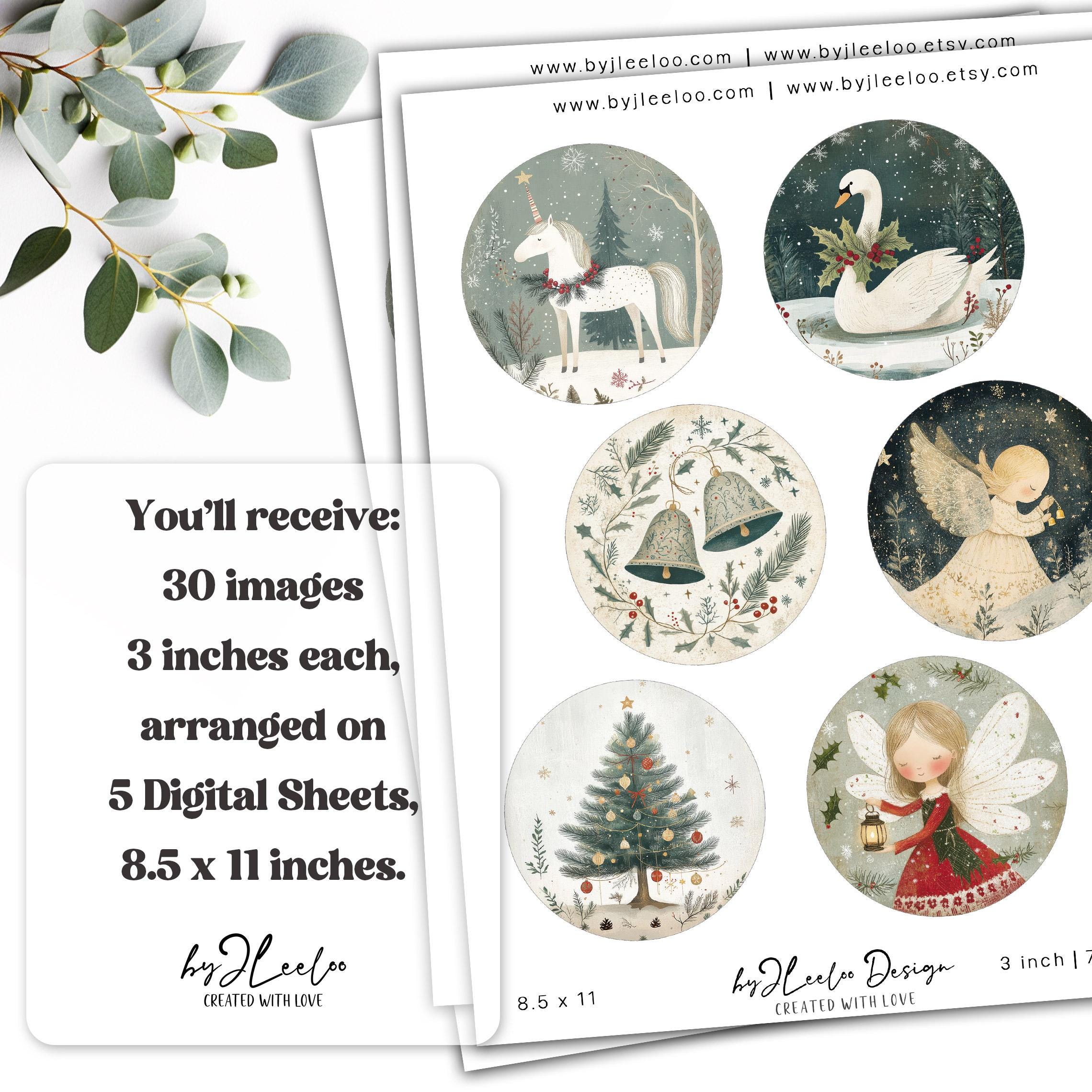 ❄️ Immerse yourself in a delightful winter wonderland with our Rustic Christmas printable illustrations. Crafted with a blend of romantic and folk-inspired charm, this set includes 30 circular illustrations in soft tones with touches of red, radiating a cozy holiday feel. Perfect for creating heartfelt greeting cards or adding a unique touch to gift wrapping, these 3-inch designs are spread across 5 digital sheets. Bring the warmth of a rustic Christmas into your holiday projects with these enchanting illustrations that truly capture the spirit of the season.