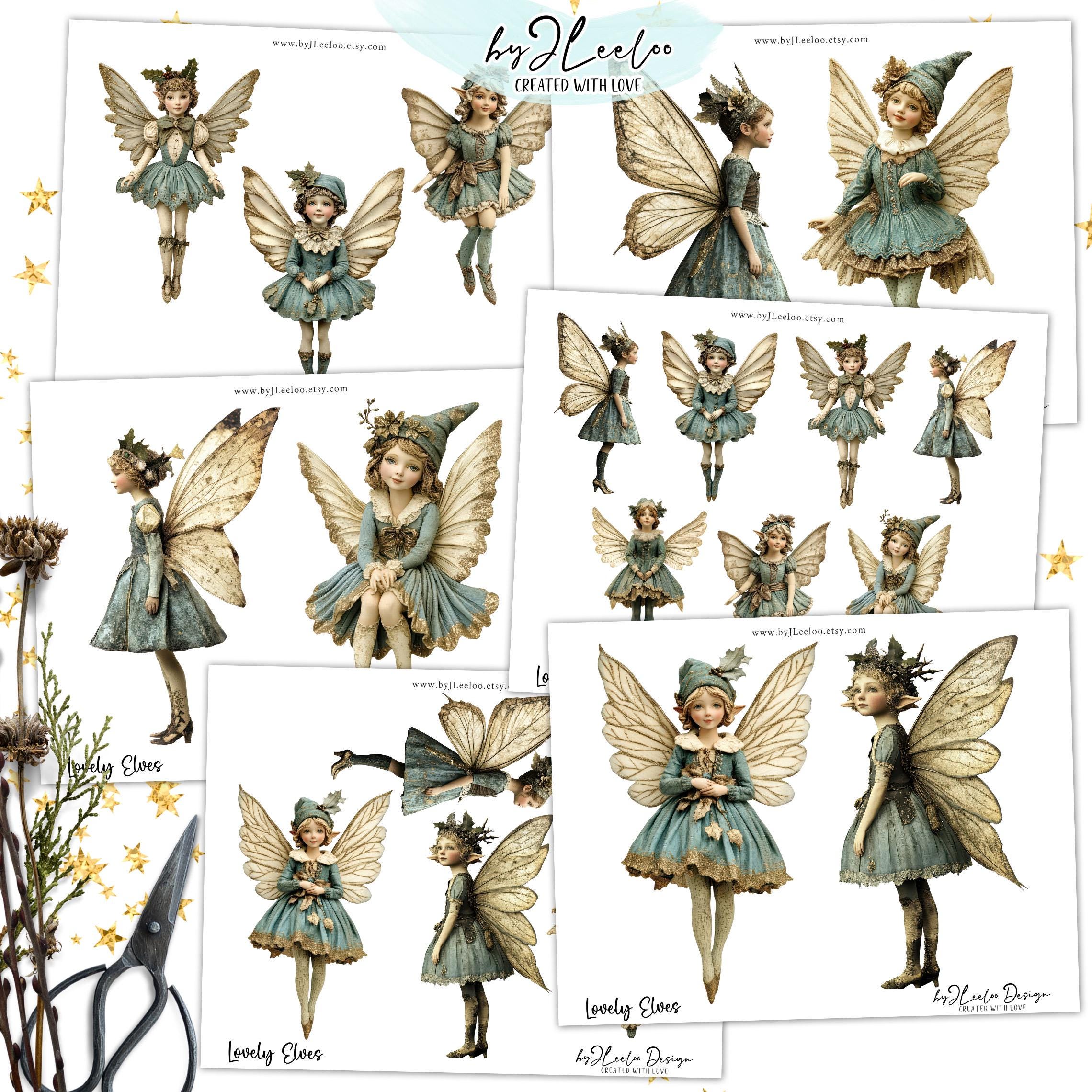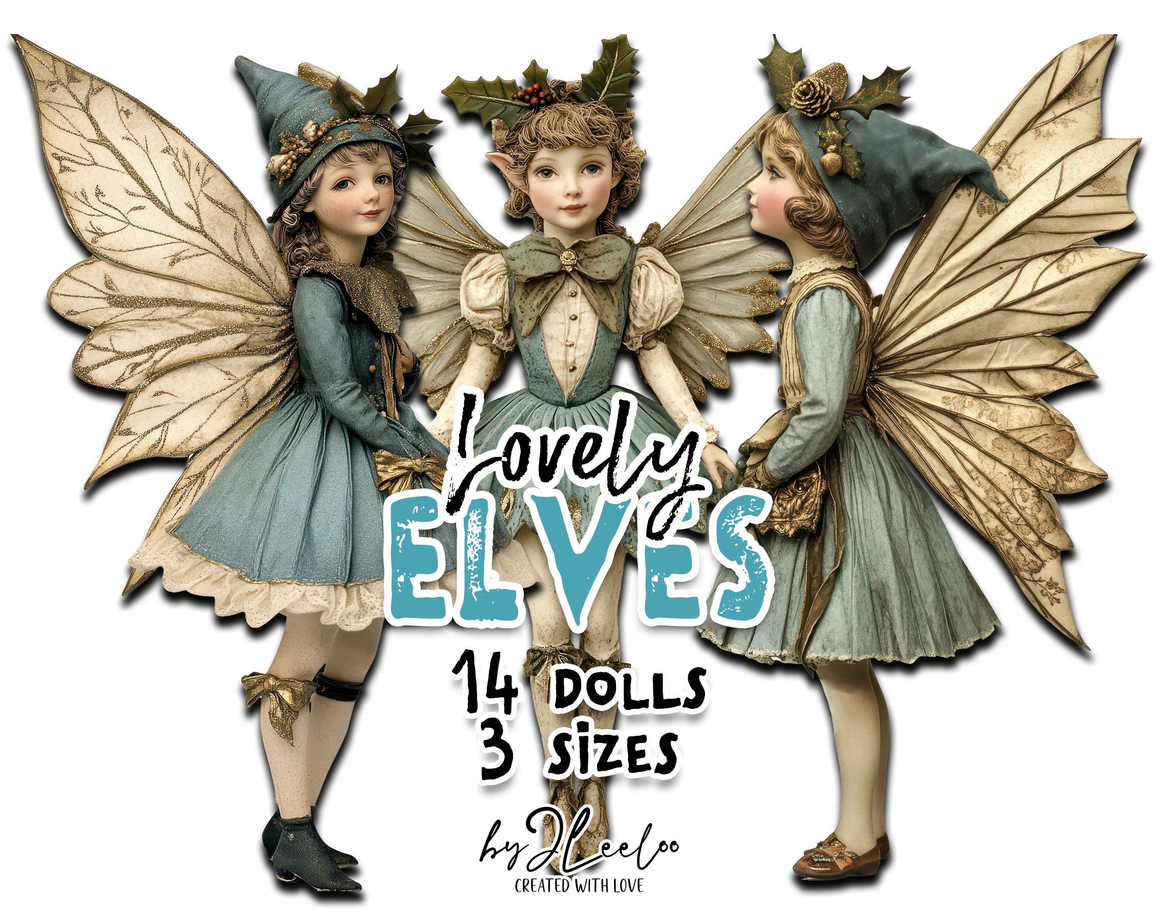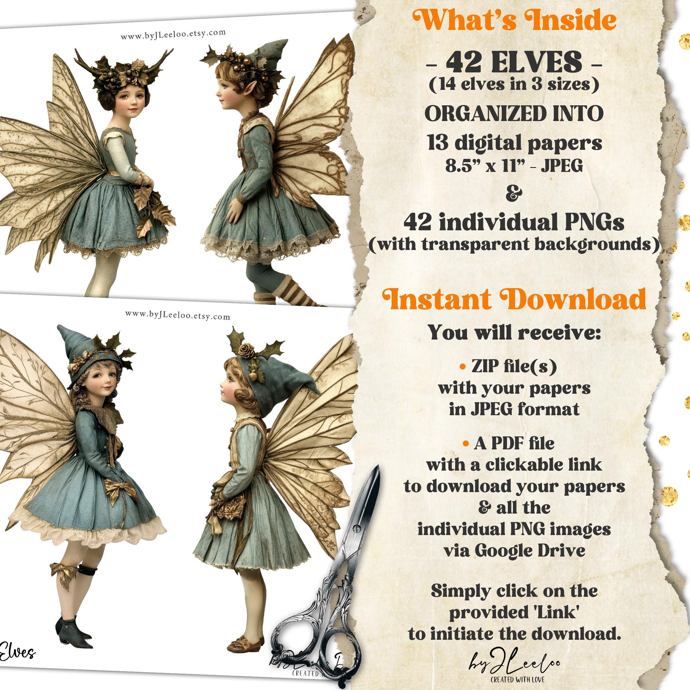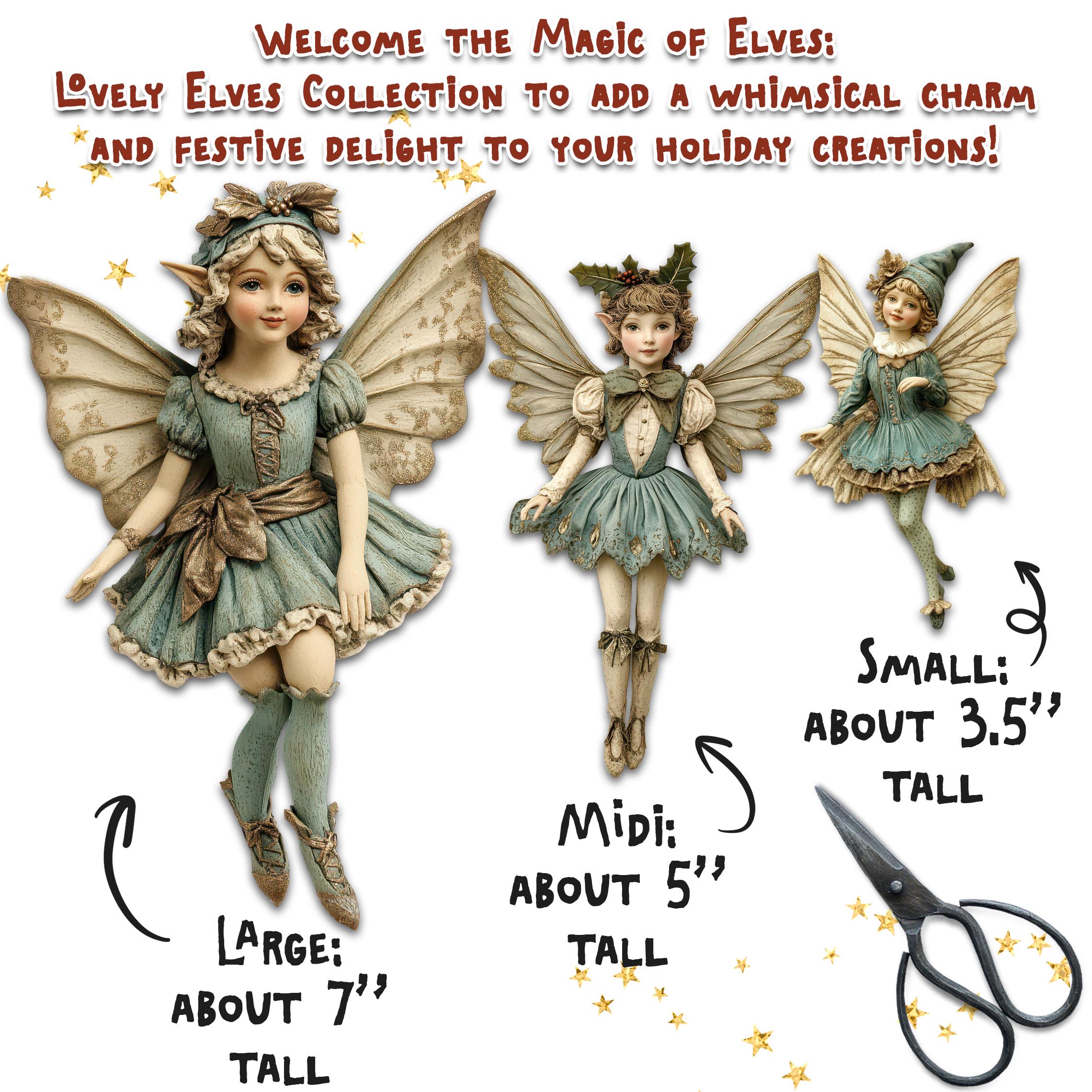 LOVELY ELVES 42 Paper Dolls 3 Sizes Printable PNG & Jpeg | Faeries Clip Art | Christmas Junk Journal Ephemera | Fussy Cut Cricut Art | cl183