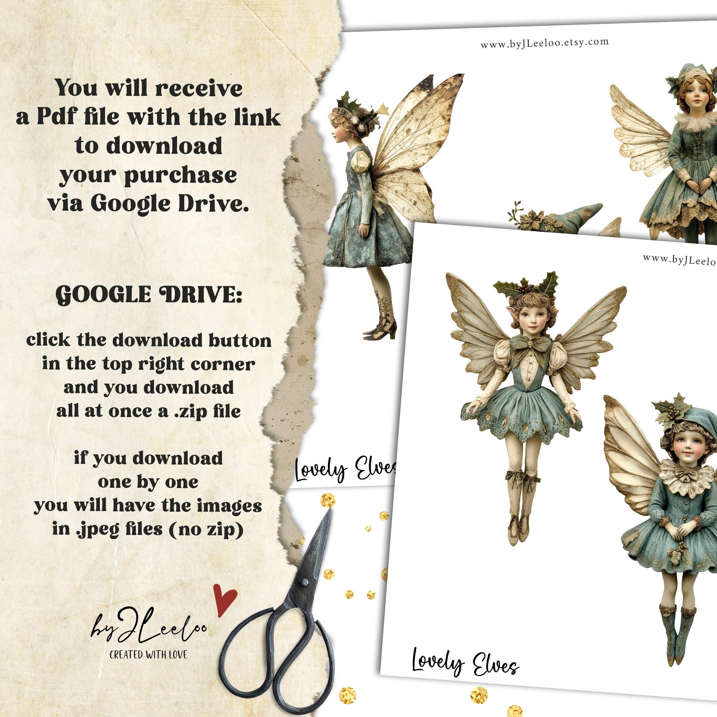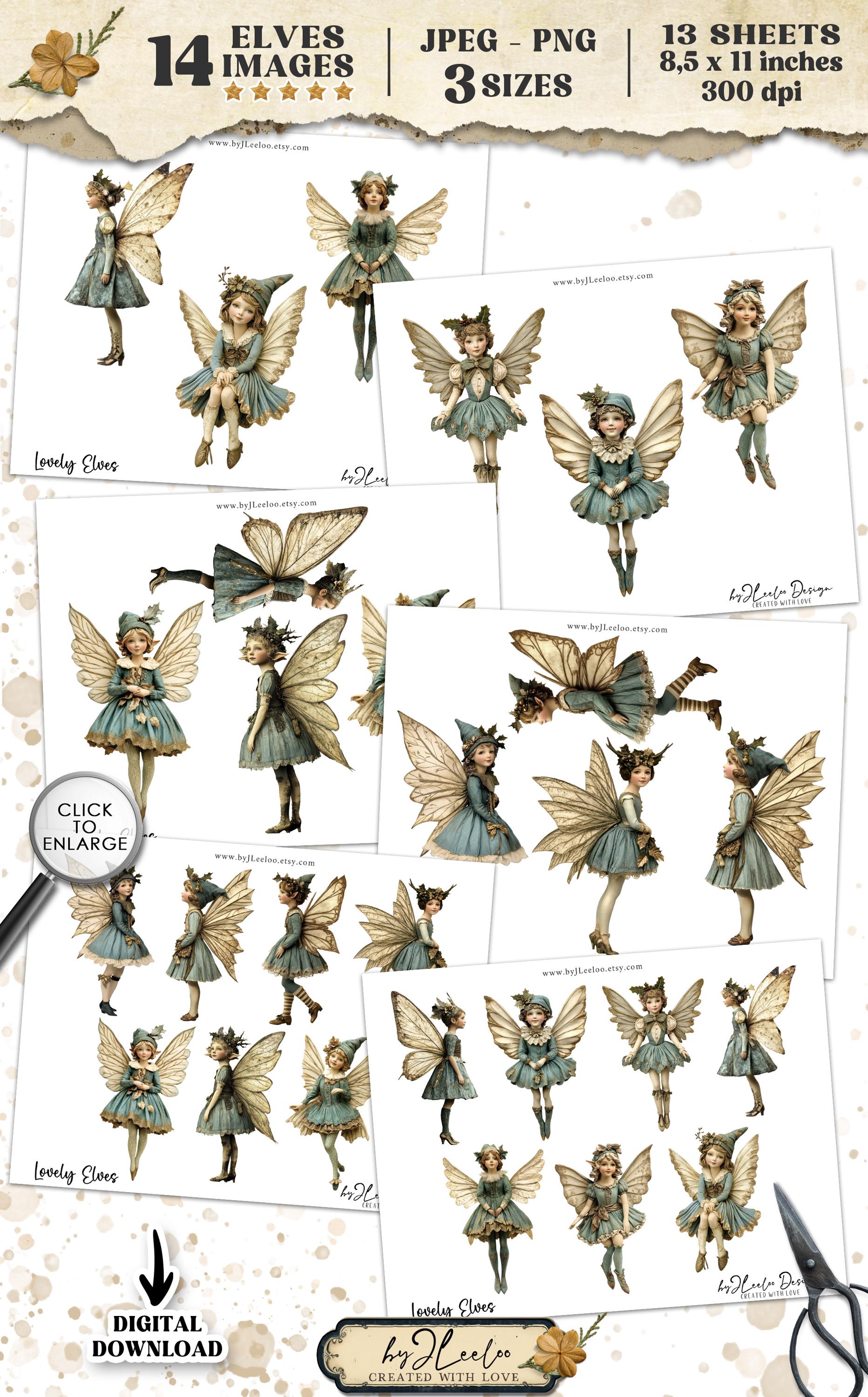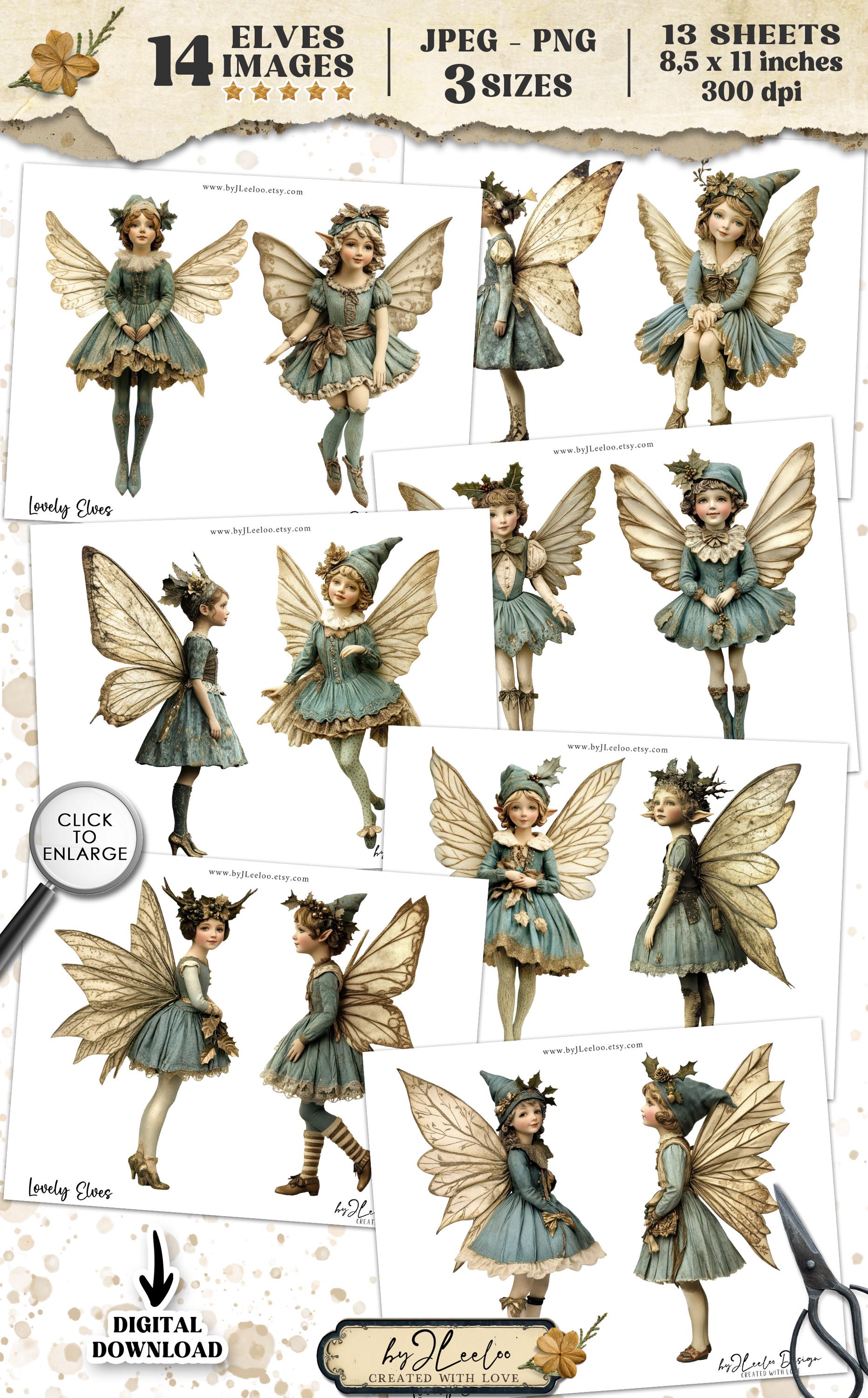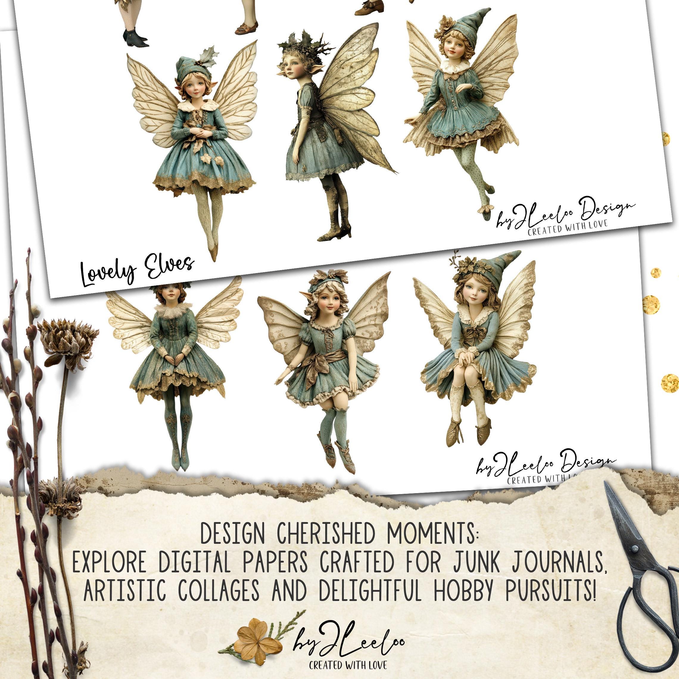 LOVELY ELVES 42 Paper Dolls 3 Sizes Printable PNG & Jpeg | Faeries Clip Art | Christmas Junk Journal Ephemera | Fussy Cut Cricut Art | cl183