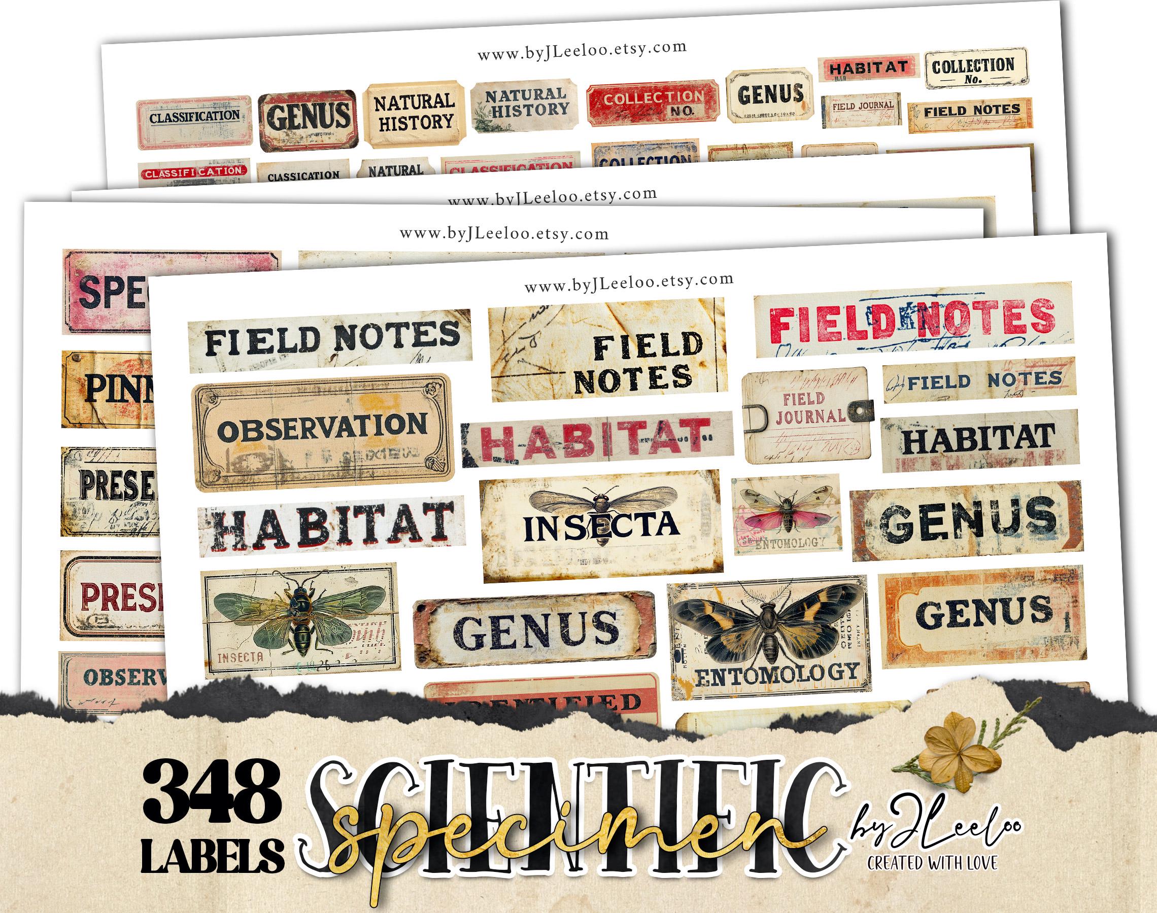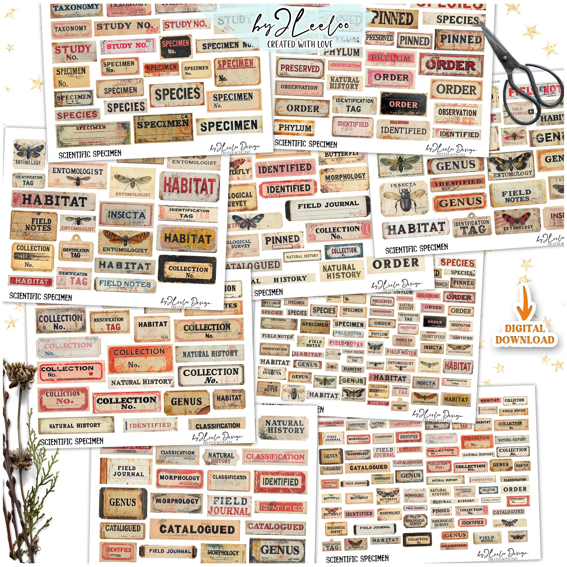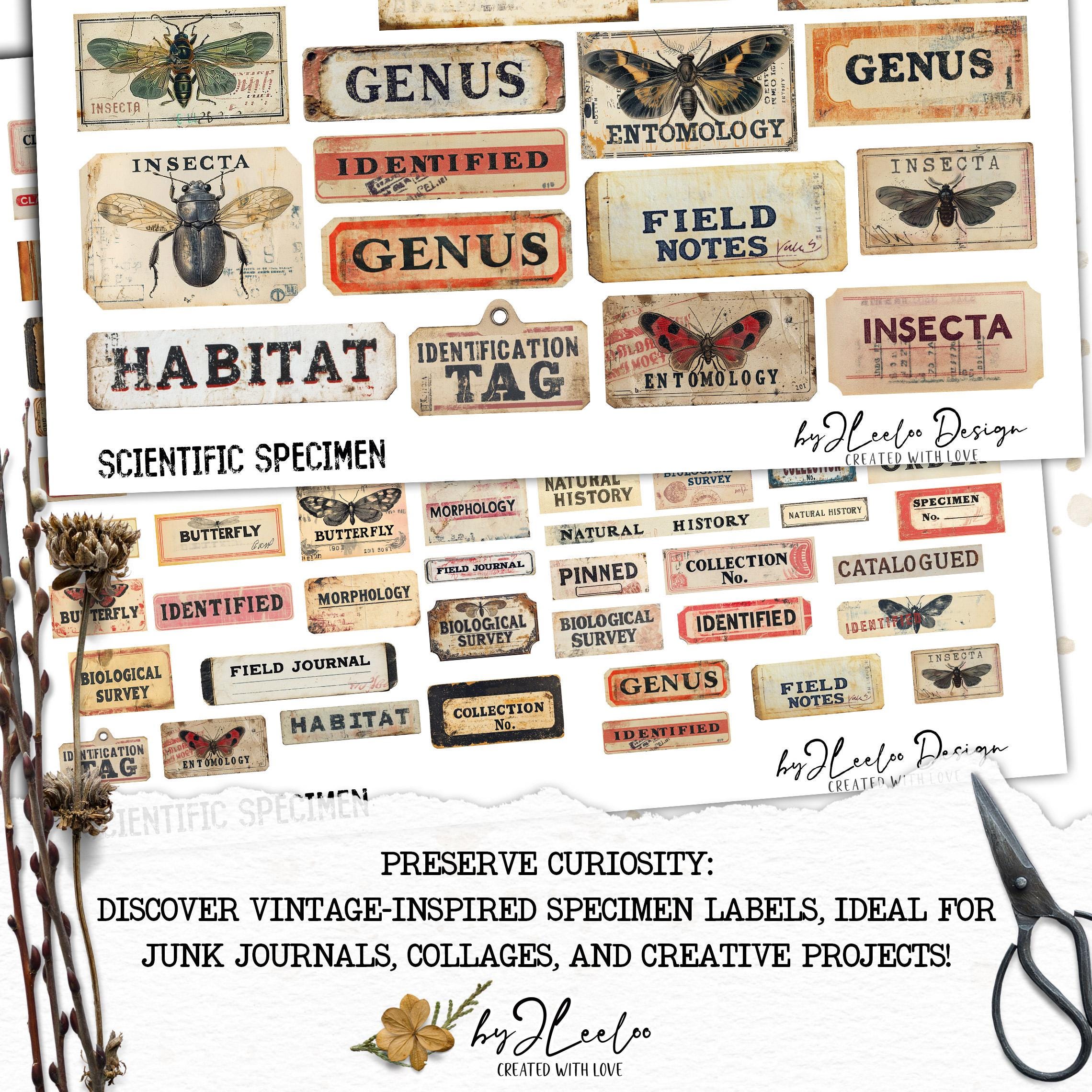 SCIENTIFIC SPECIMEN printable Entomology | Word Labels Vintage Stickers Nature Junk journal | scrapbooking collection art CU | tl303
