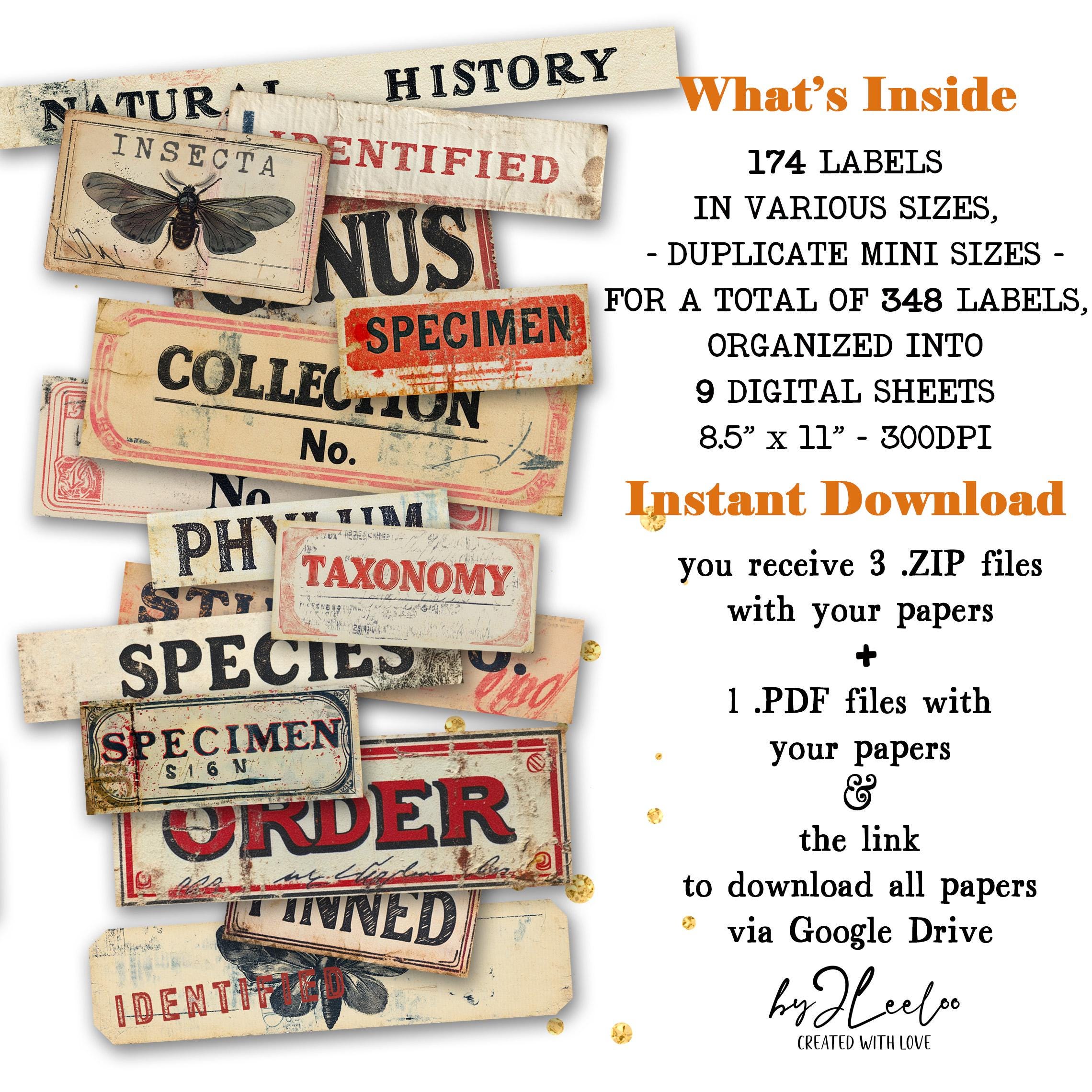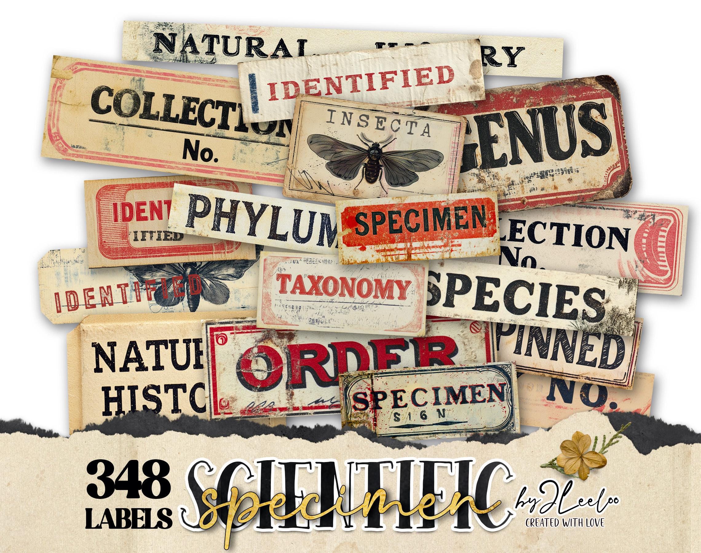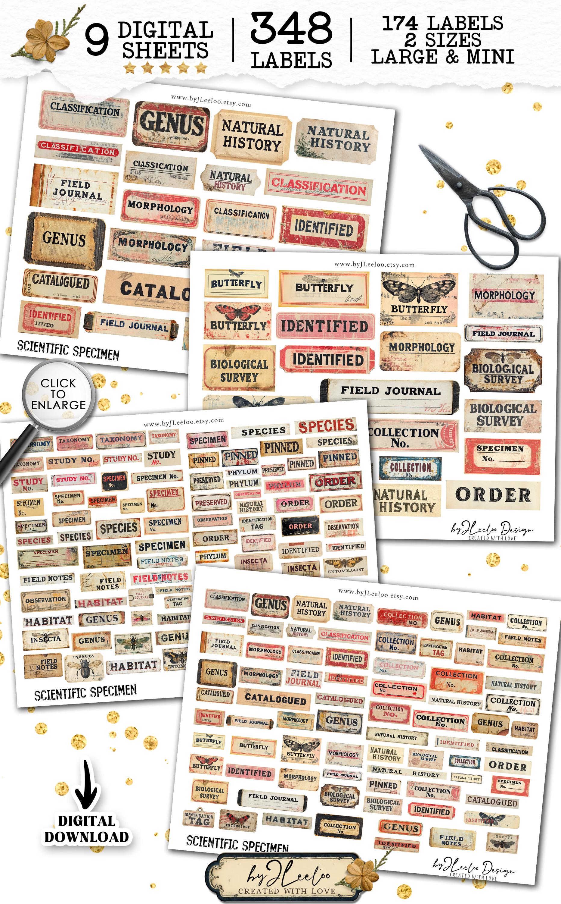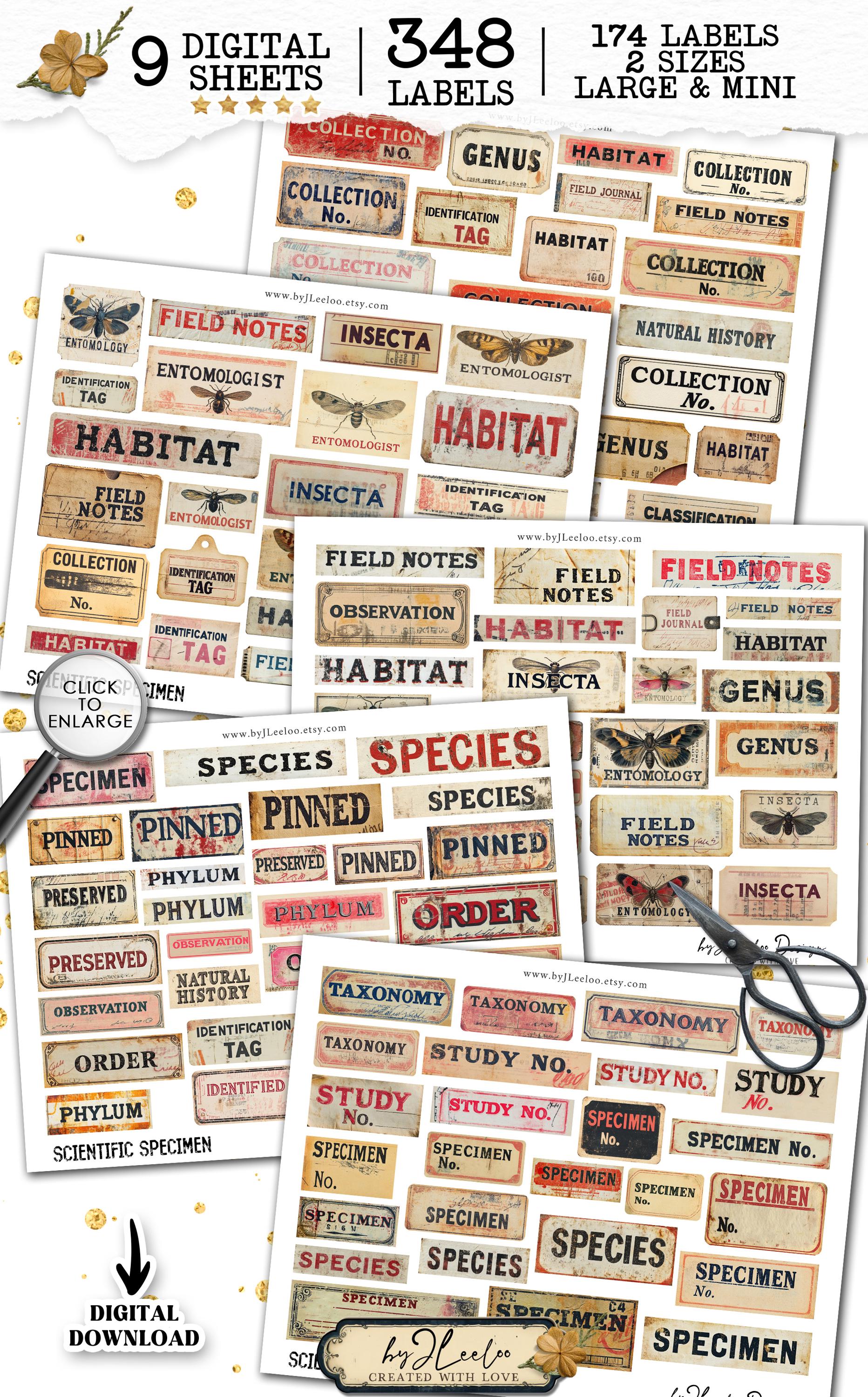 SCIENTIFIC SPECIMEN printable Entomology | Word Labels Vintage Stickers Nature Junk journal | scrapbooking collection art CU | tl303