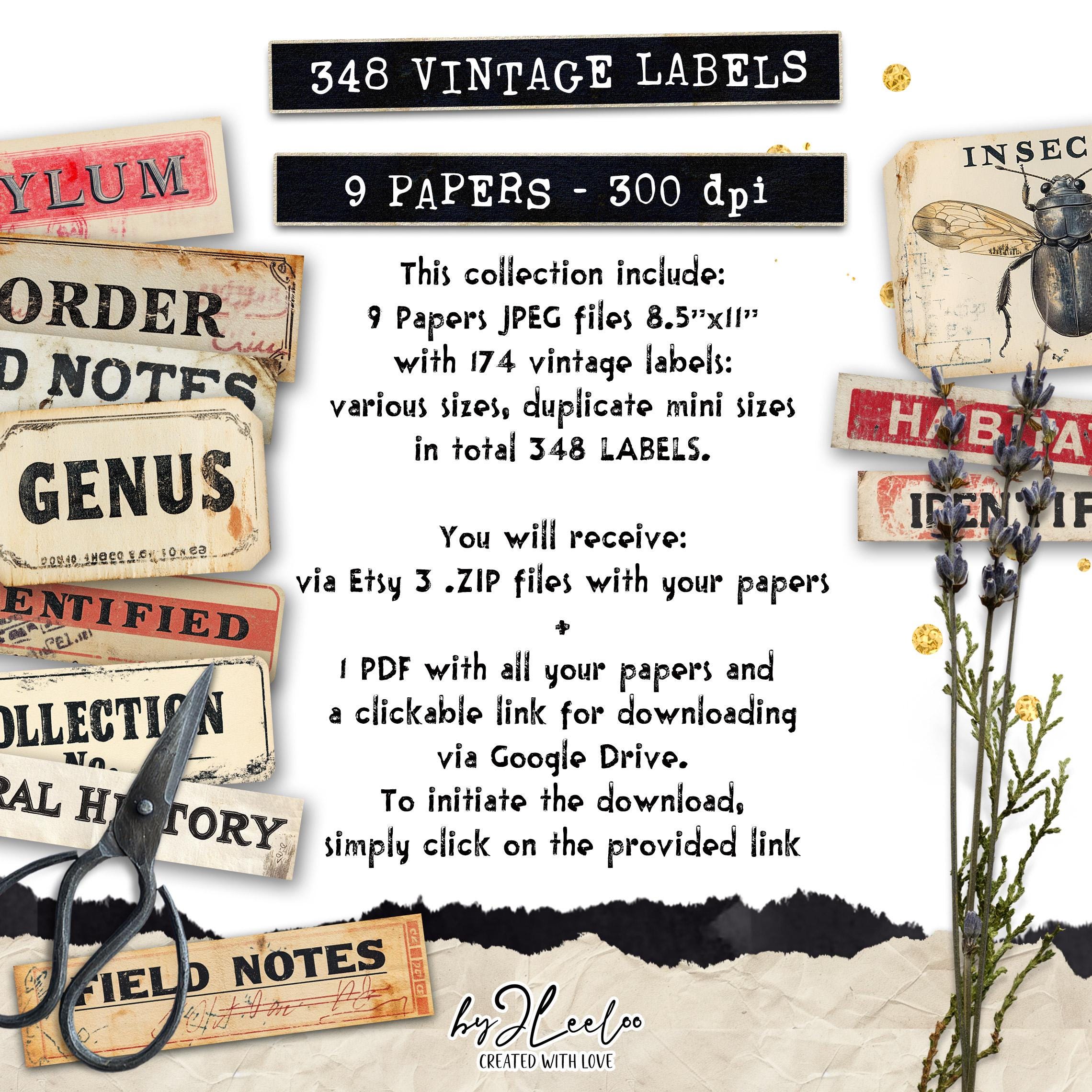 These are great vintage labels! Download was easy, they printed out beautifully and I’m very happy with them! My only constructive criticism is that it would be super helpful if they were laid out on the page with all the straight label edges aligning so that some of the ‘fussy-cutting’ work can be cut down a lot by at least some of them being able to be done on a paper trimmer!