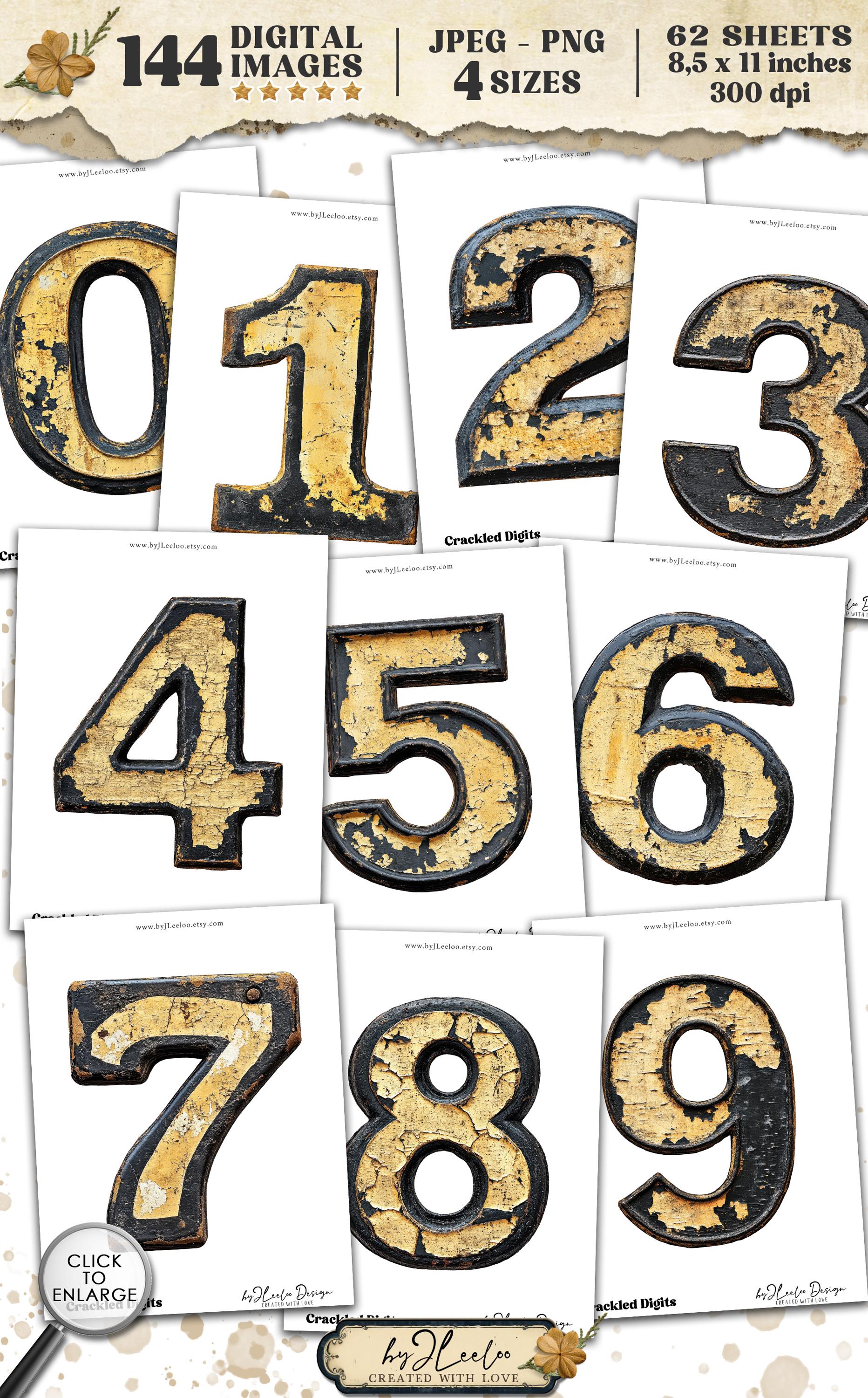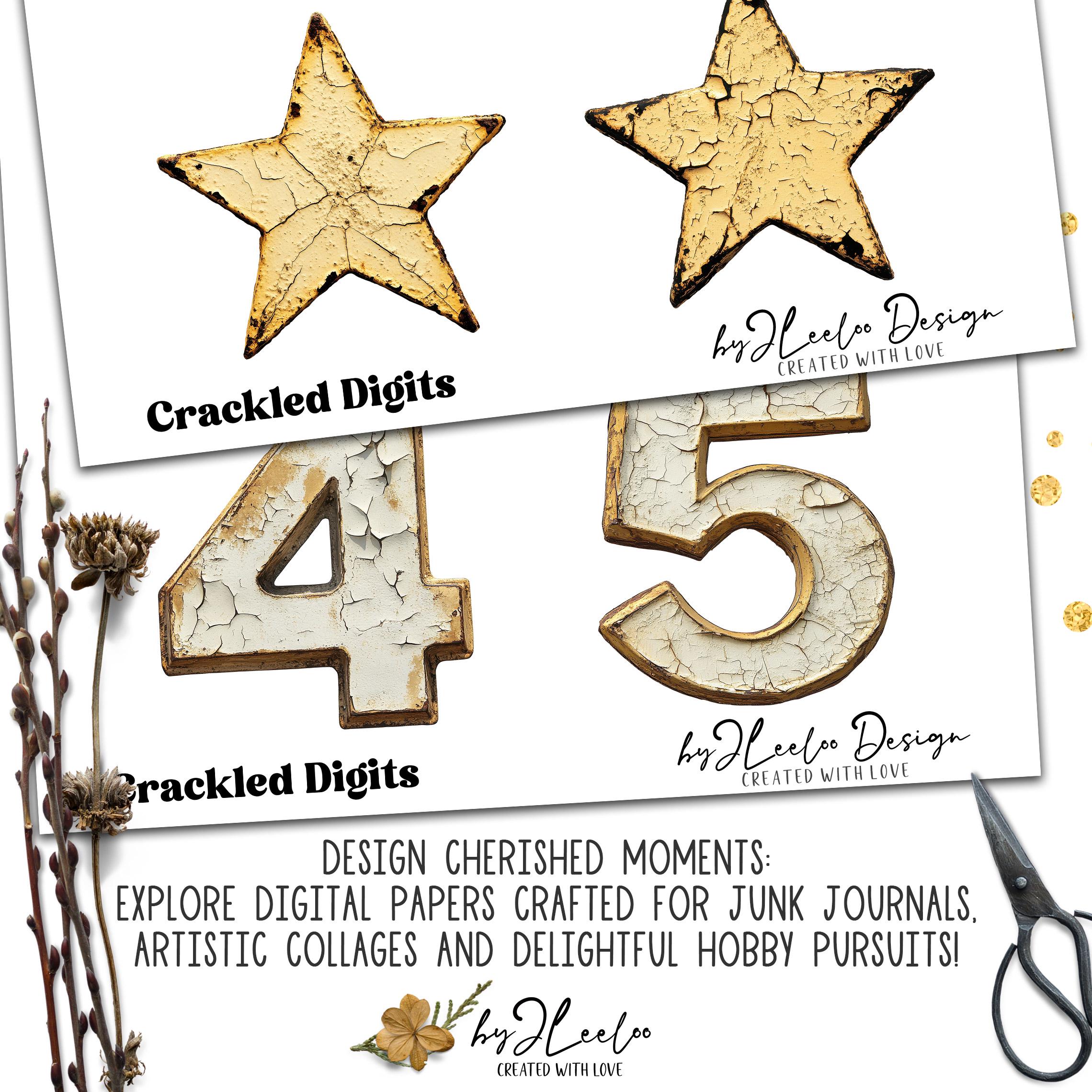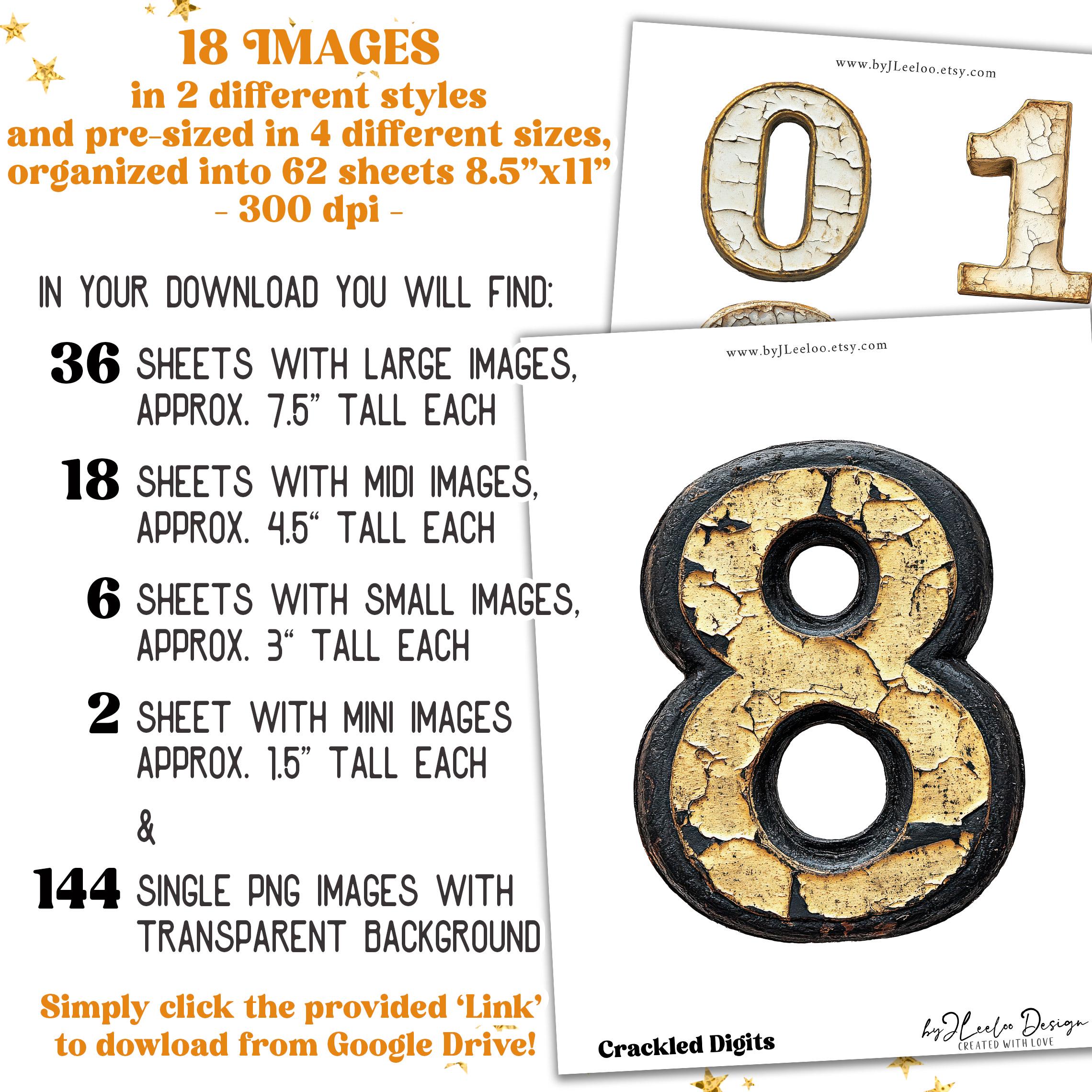 CRACKLED DIGITS 144 Png | Black Ivory Golg Jpg Png numbers 2 style 4 sizes | junk journal scrapbook industrial Home Decor Printable | cl187