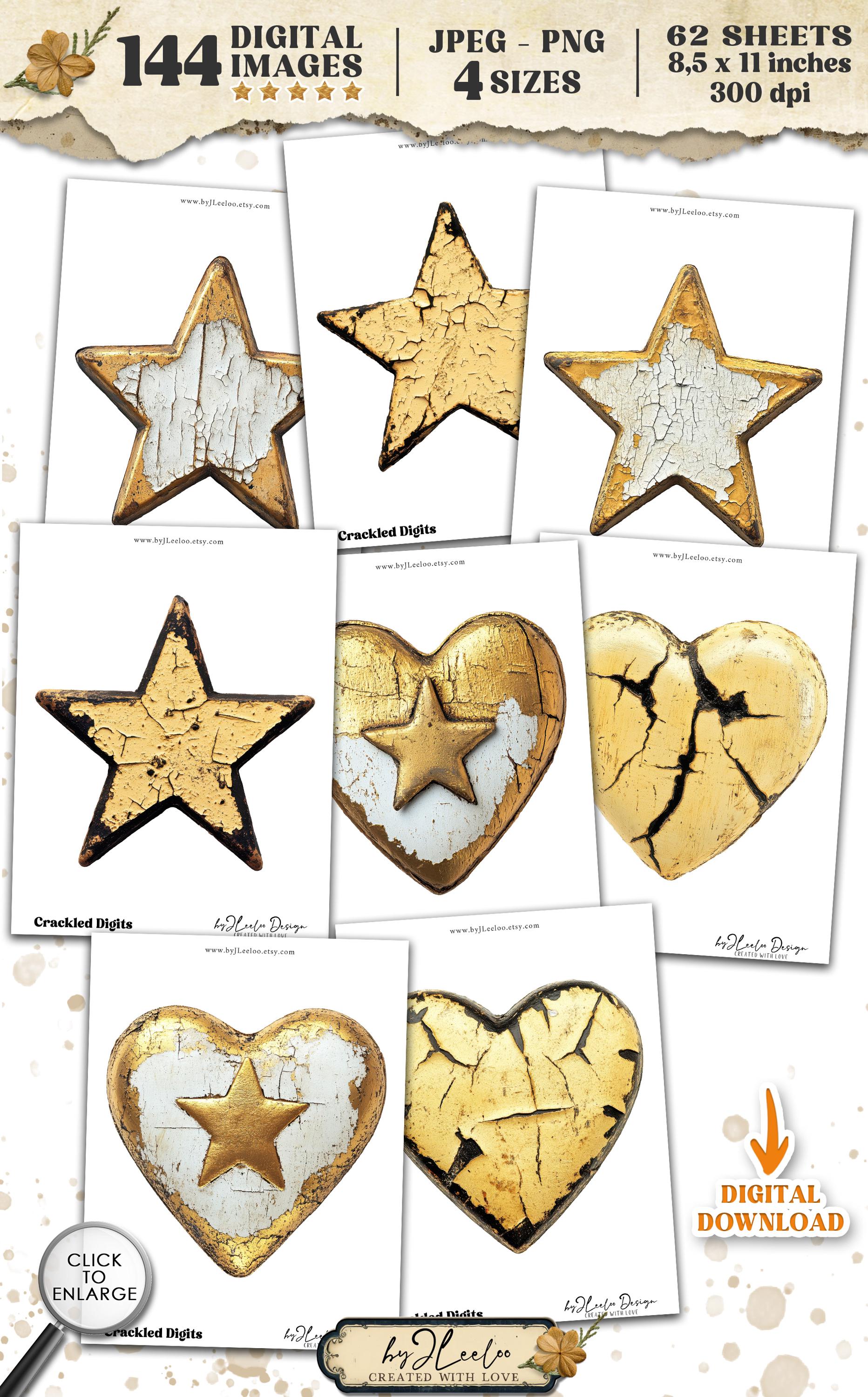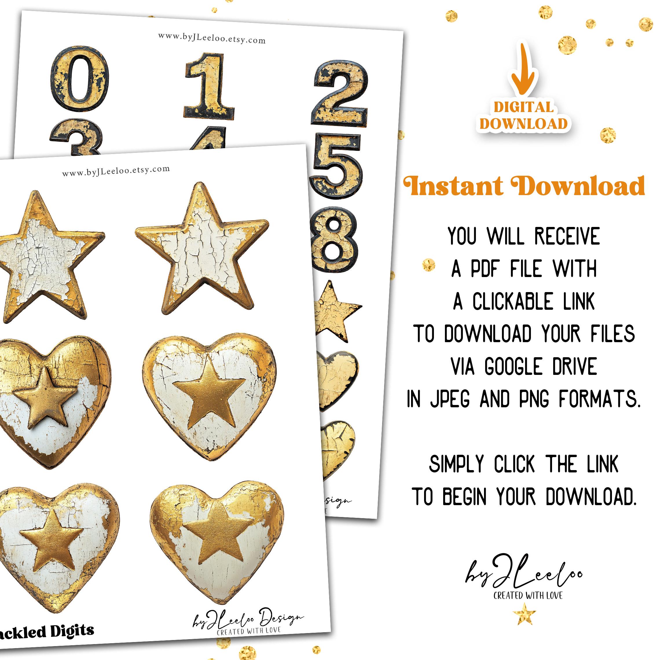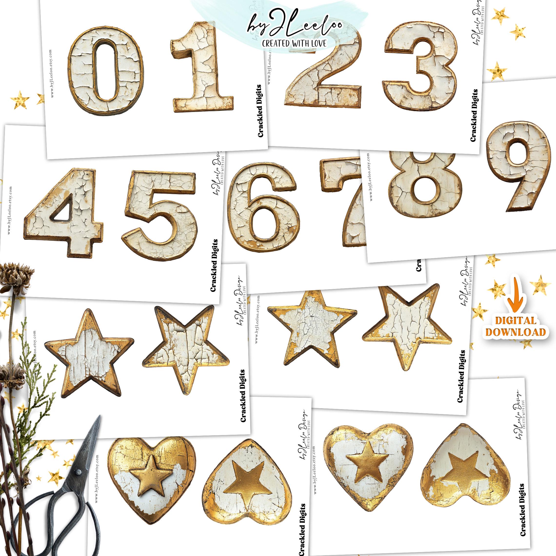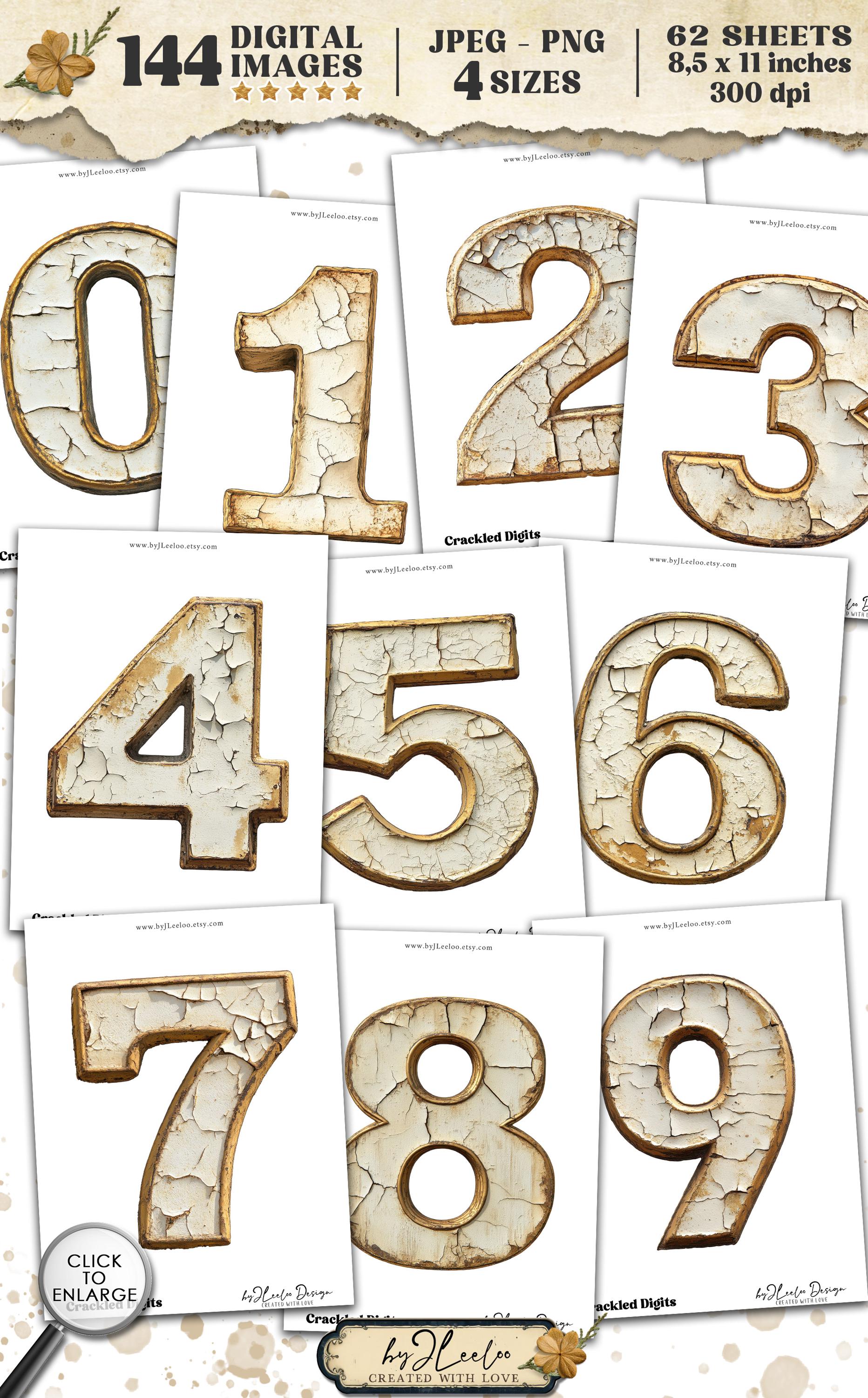 CRACKLED DIGITS 144 Png | Black Ivory Golg Jpg Png numbers 2 style 4 sizes | junk journal scrapbook industrial Home Decor Printable | cl187