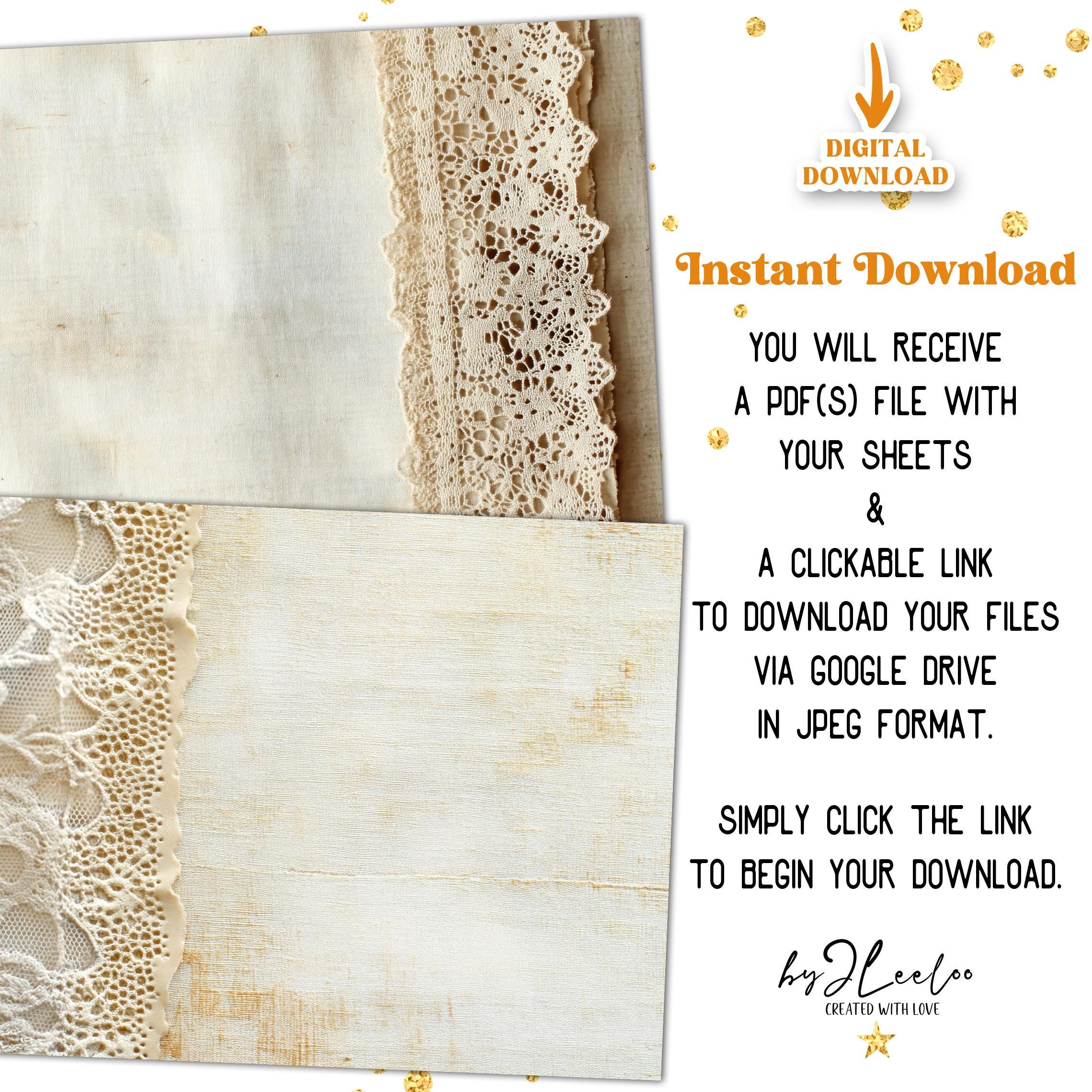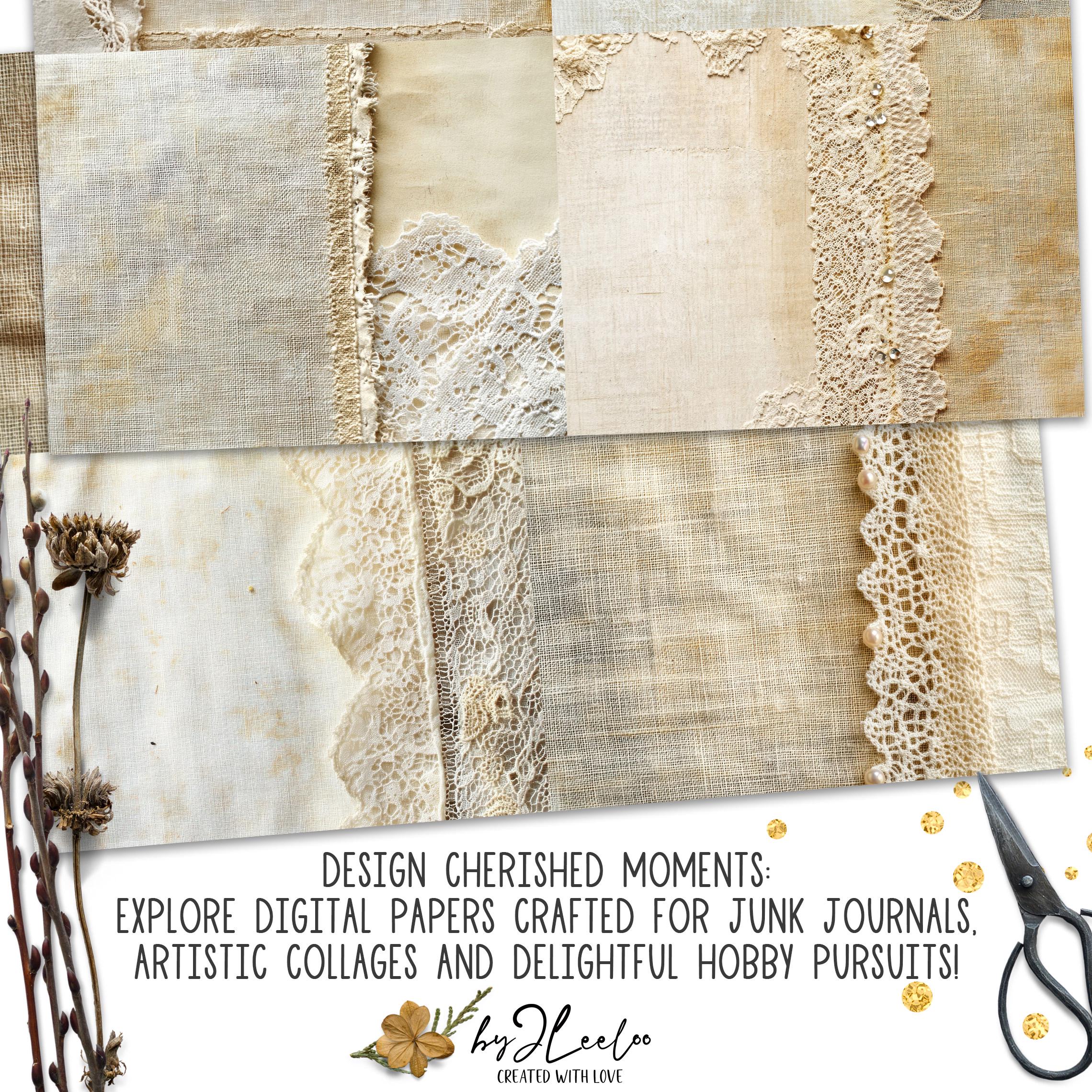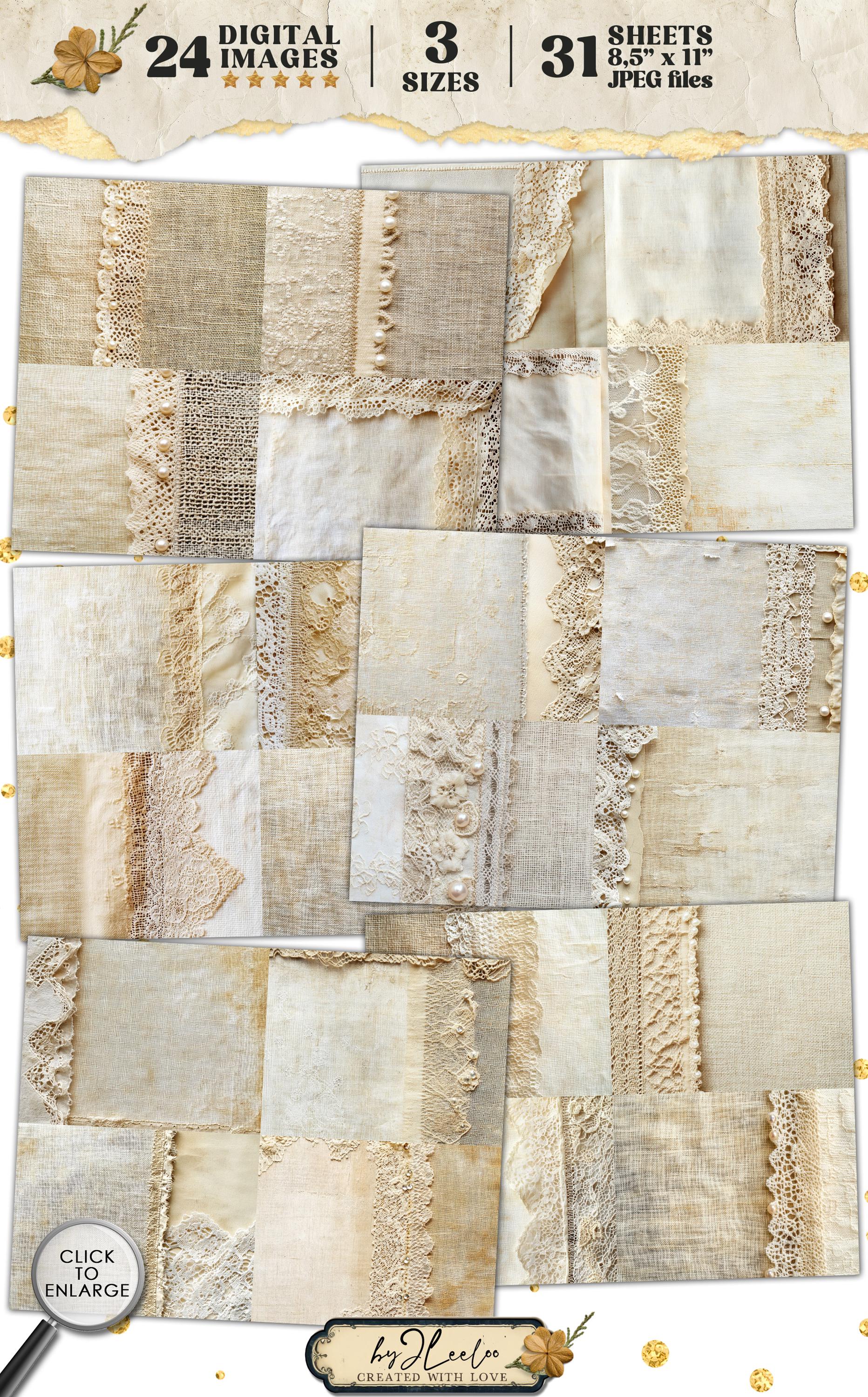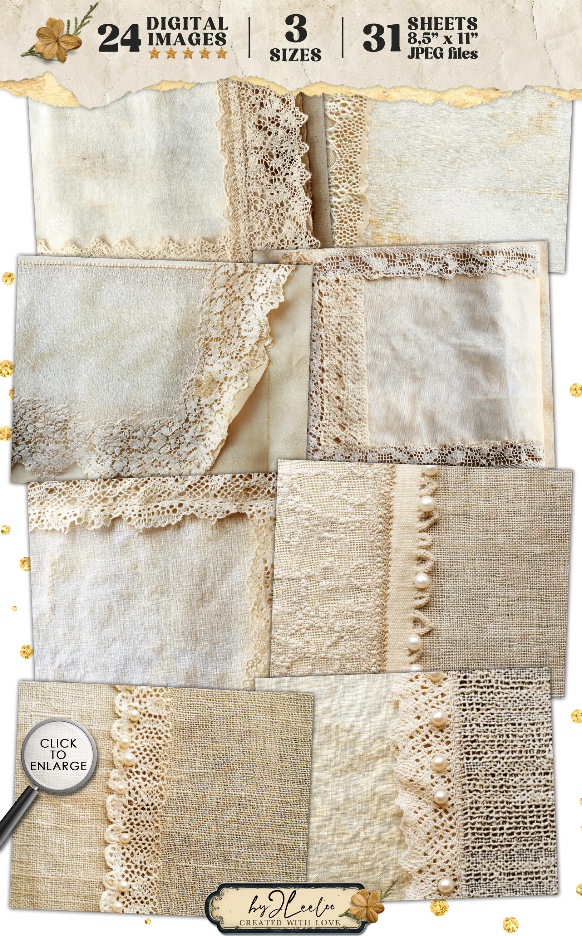 LACE and LEGACY 24 rustic papers 3 sizes neutral background | Burlap Junk Journal Pages | scrapbook digital printable Commercial Use | pp893