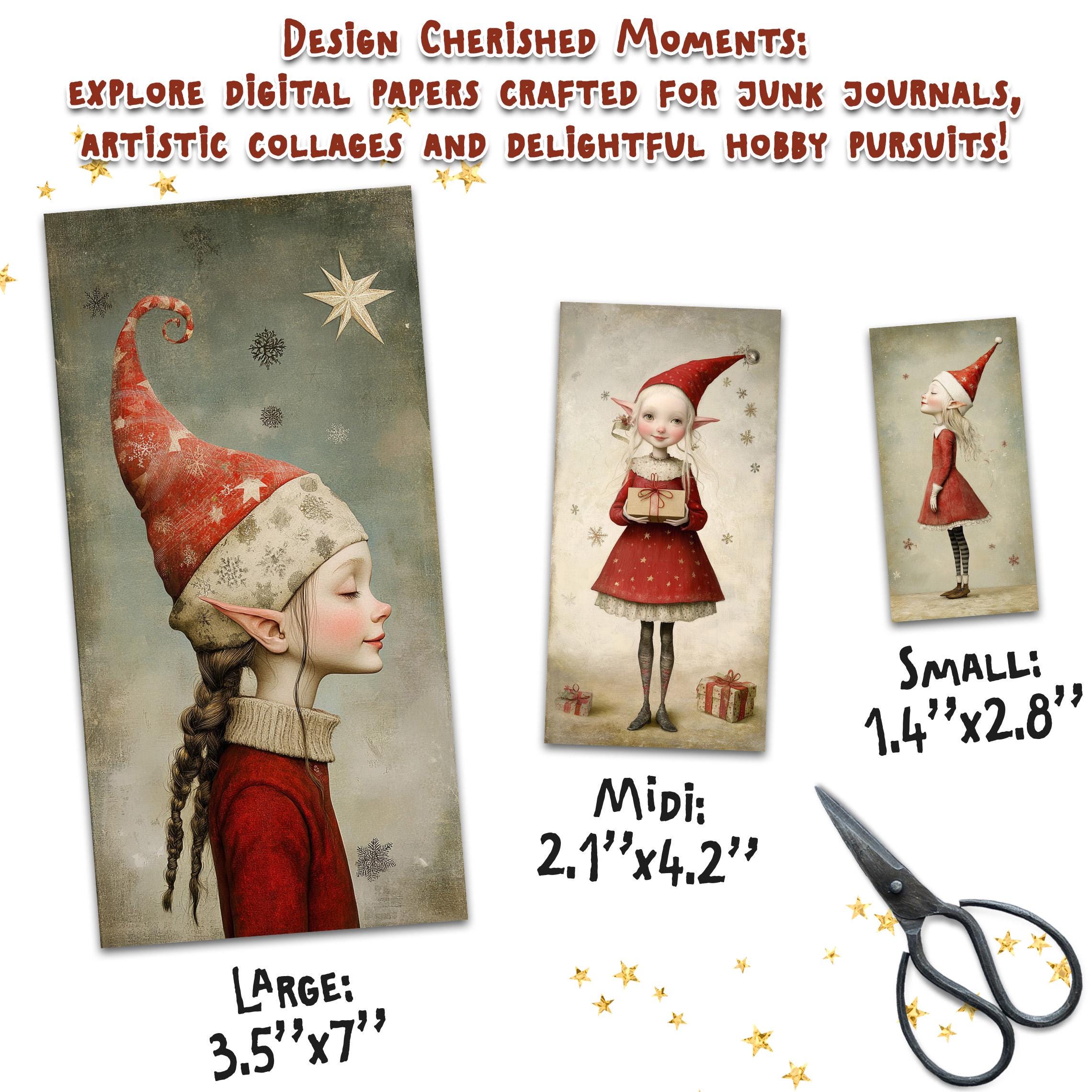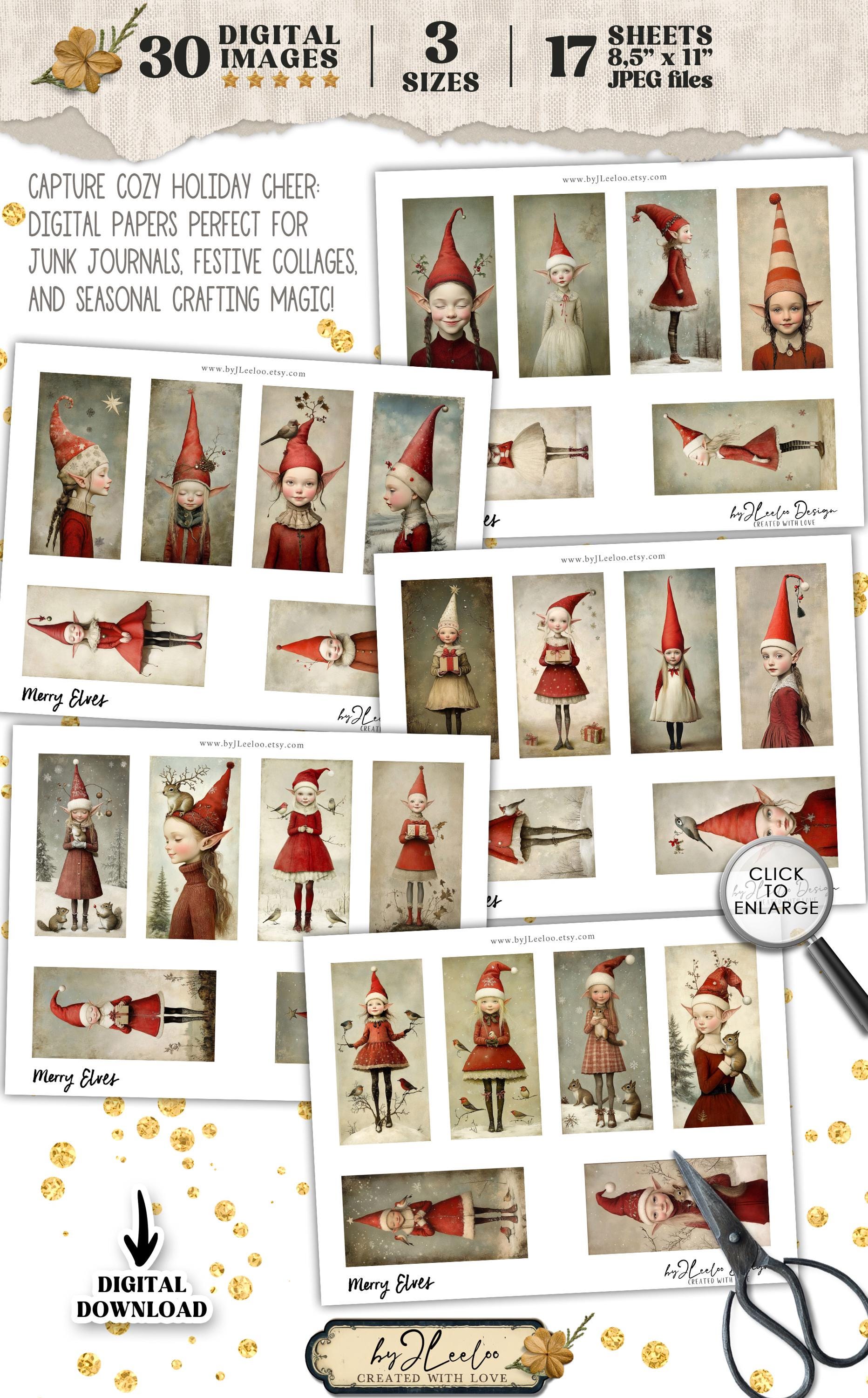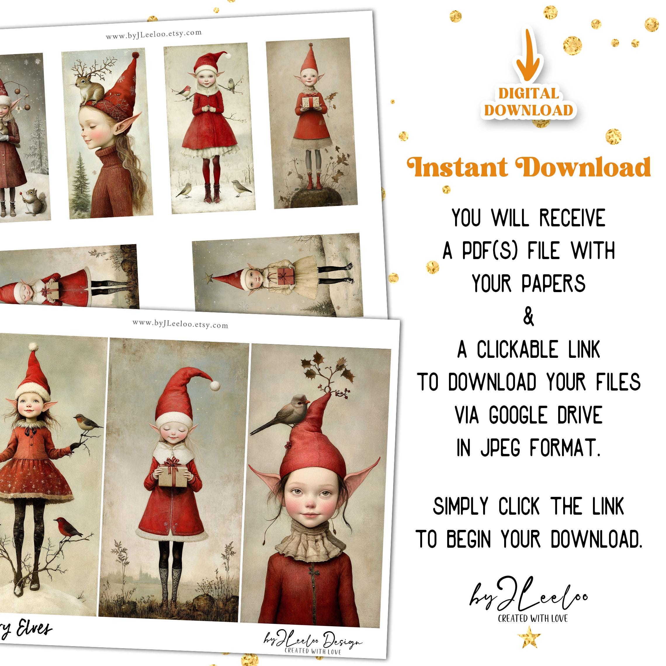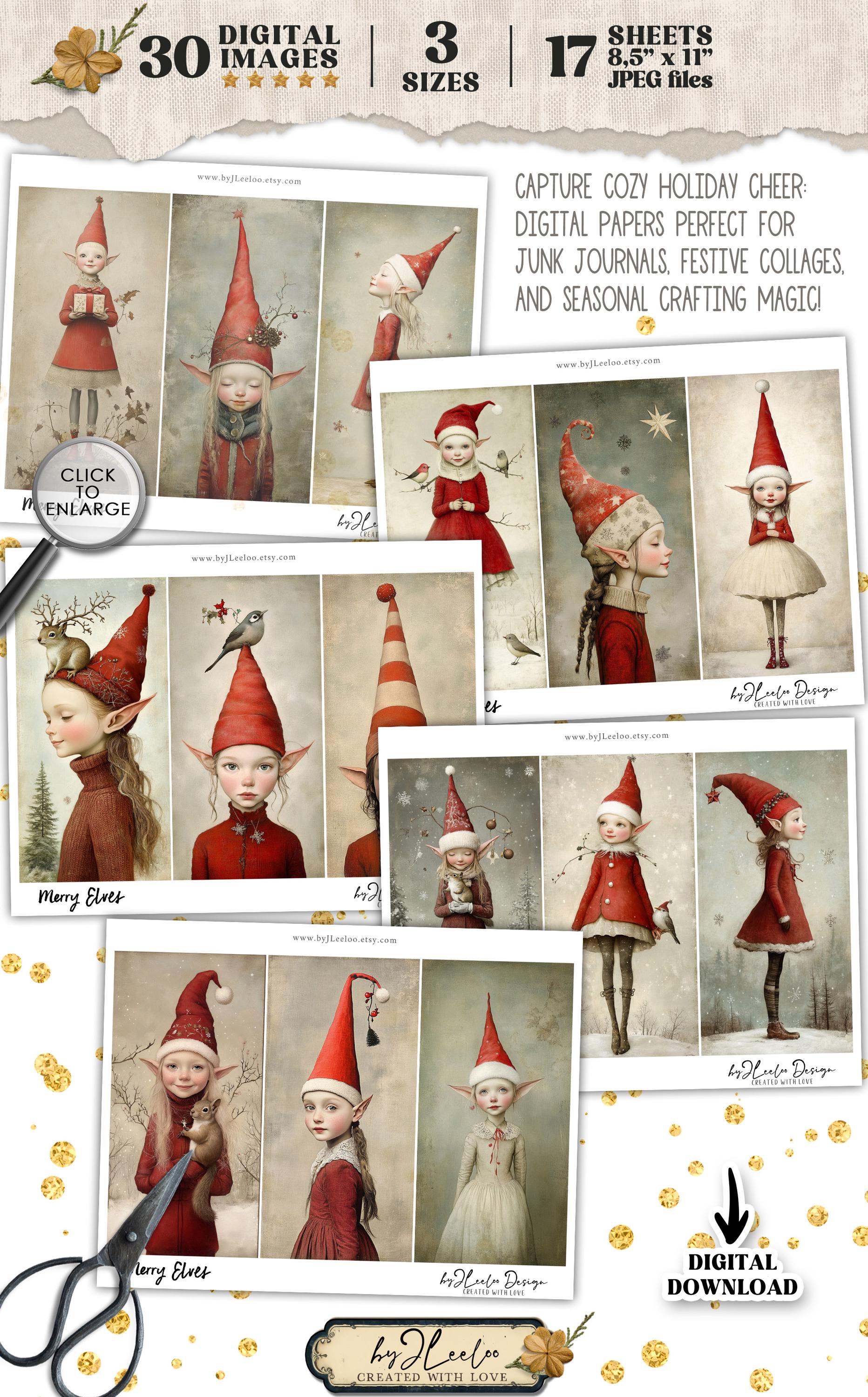 MERRY ELVES 30 Images 3 Sizes Christmas cards | Junk Journal printable vintage Scrapbook | Portrait Rustic Label Pixie Gift Tag | CU | pp873