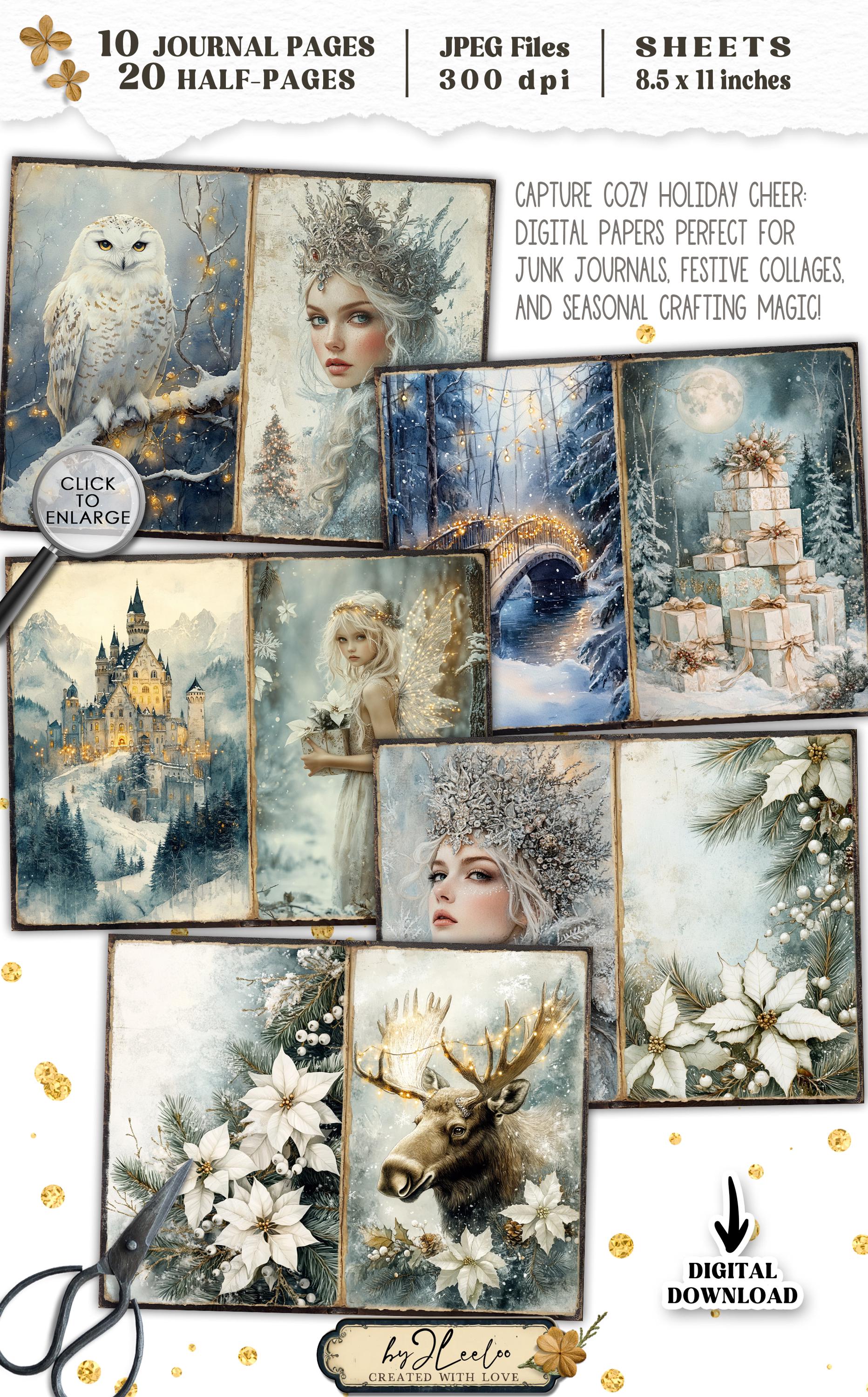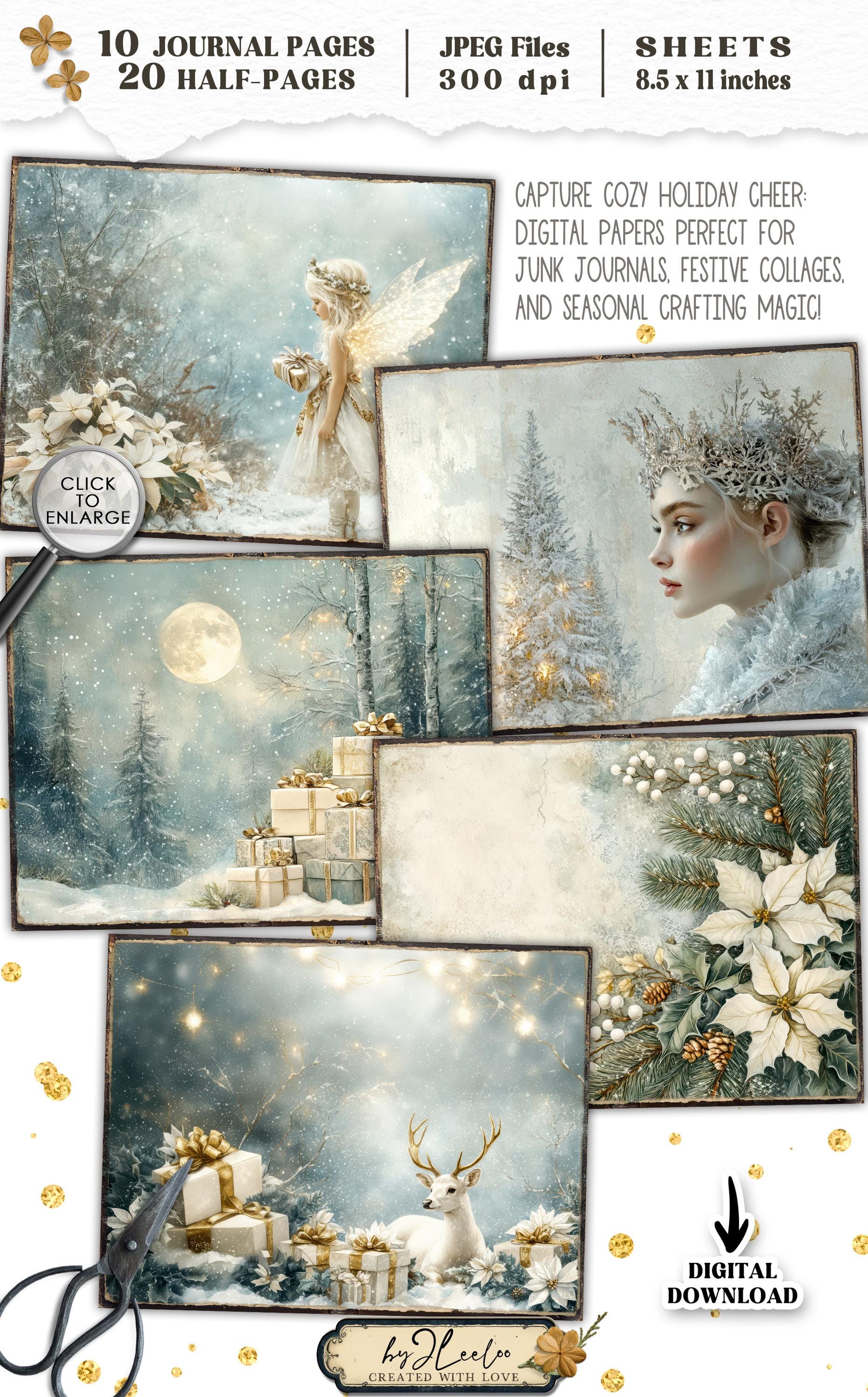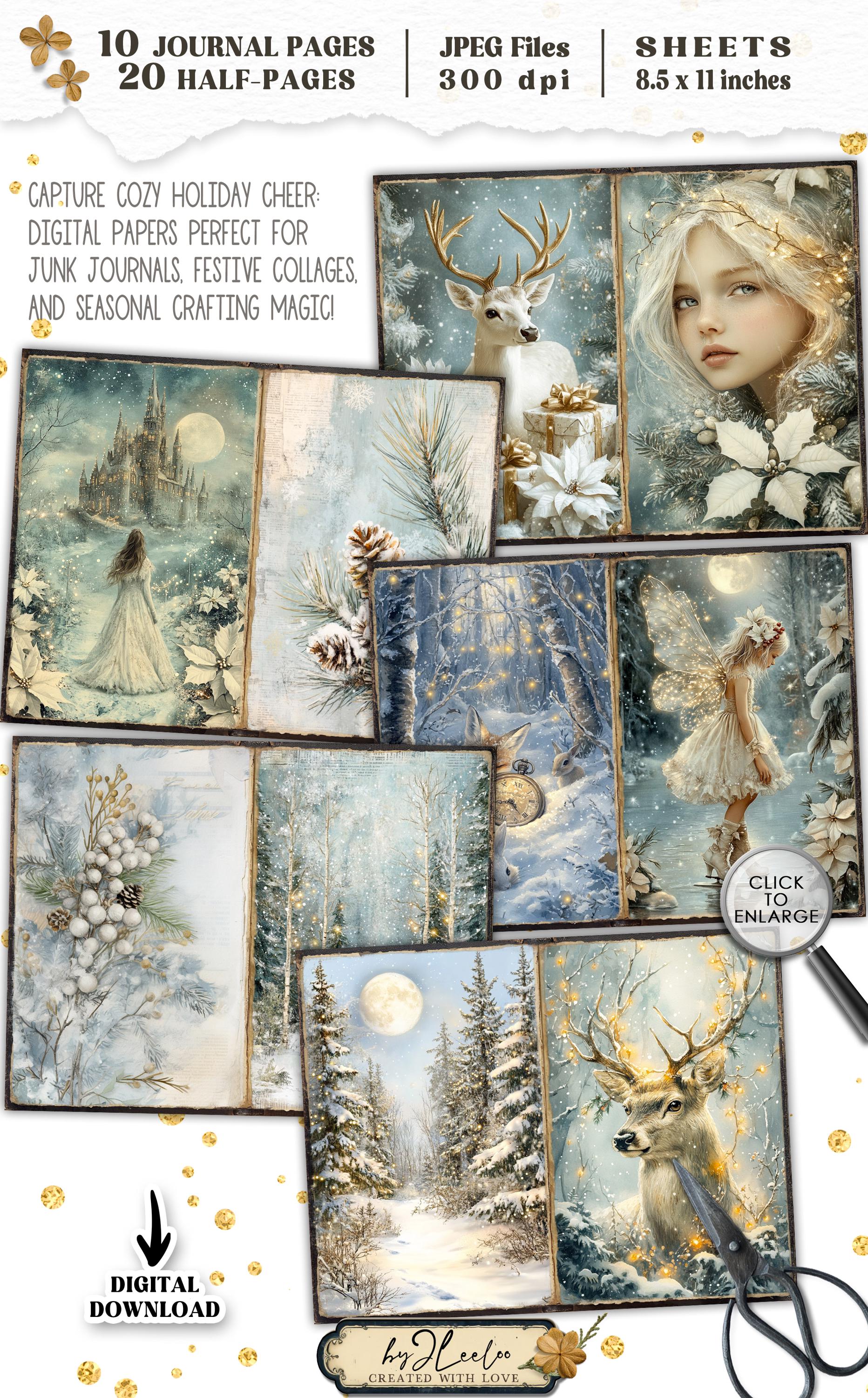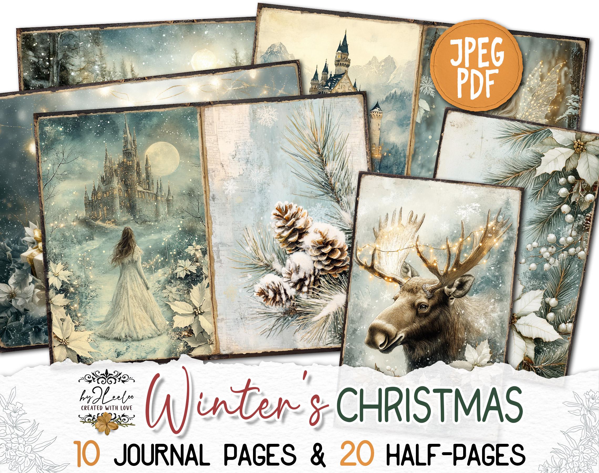 WINTER'S CHRISTMAS Junk Journal Pages printable | Forest Winter Queen Kit scrapbook | December Paper Craft Scrapbook Commercial Use | pp875
