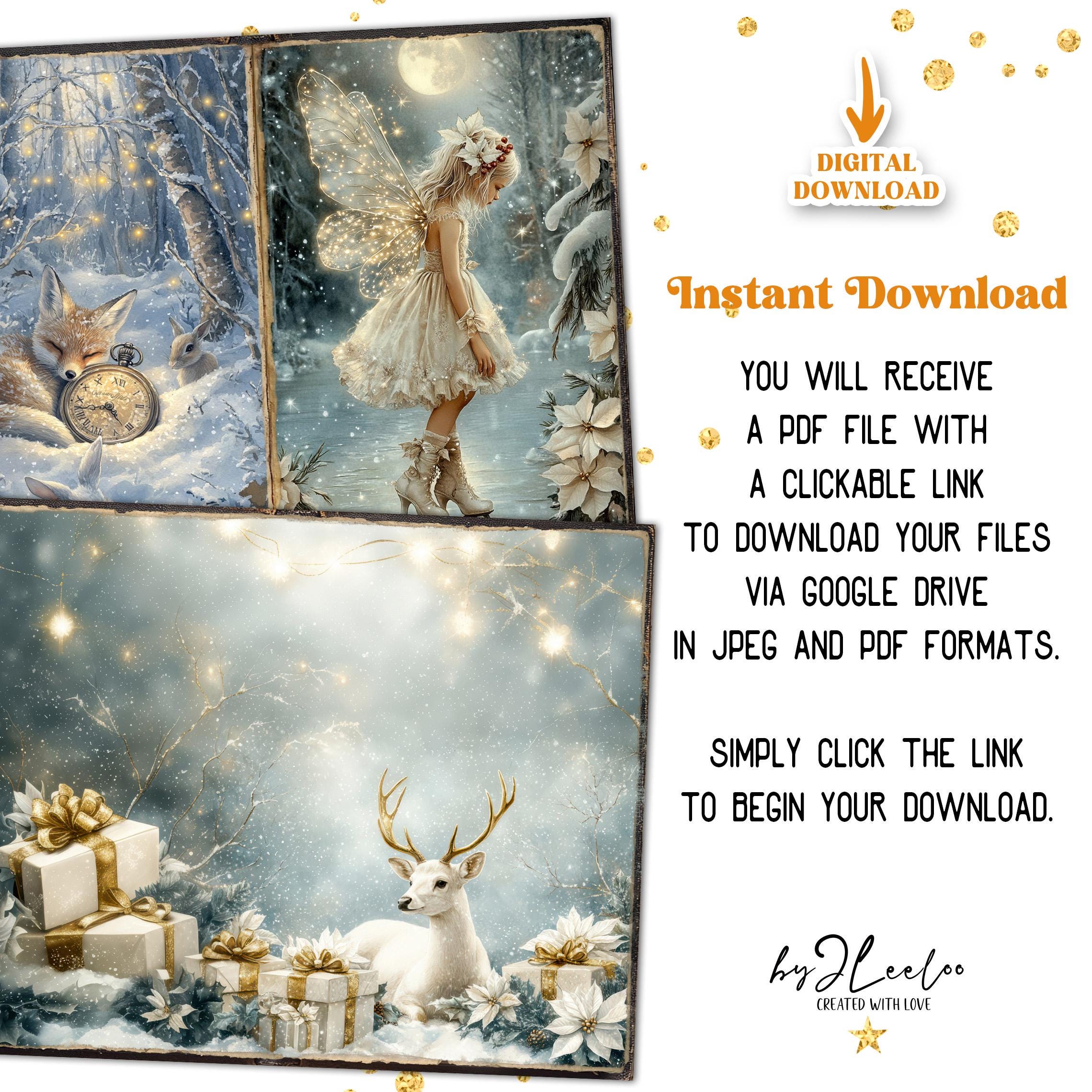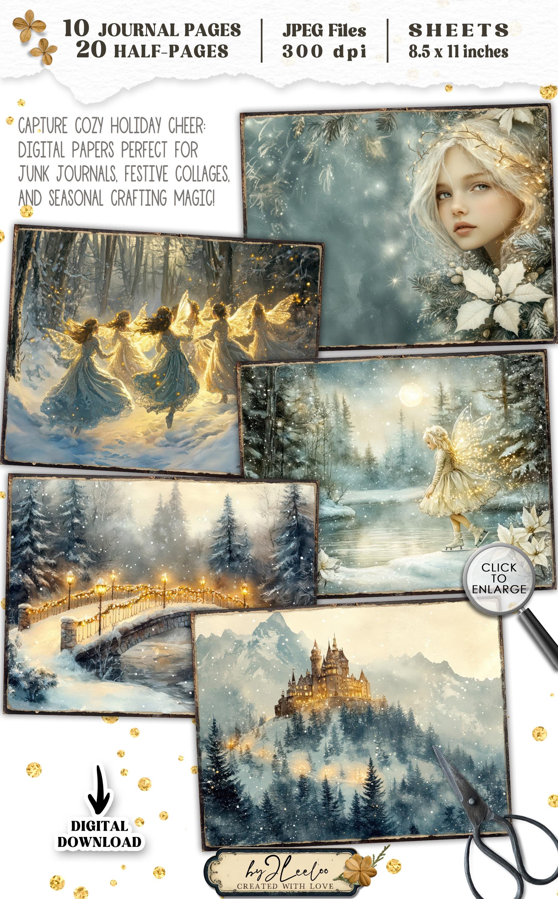 ❄️ Step into the enchanted woods with our Winter Christmas Forest Junk Journal Pages. Immerse yourself in the magic of the season with these digital art creations, perfect for your junk journals or digital scrapbooking projects. Let the forest backgrounds transport you to a world where winter fairies roam freely, celebrating the holidays in the heart of the forest. 🌟