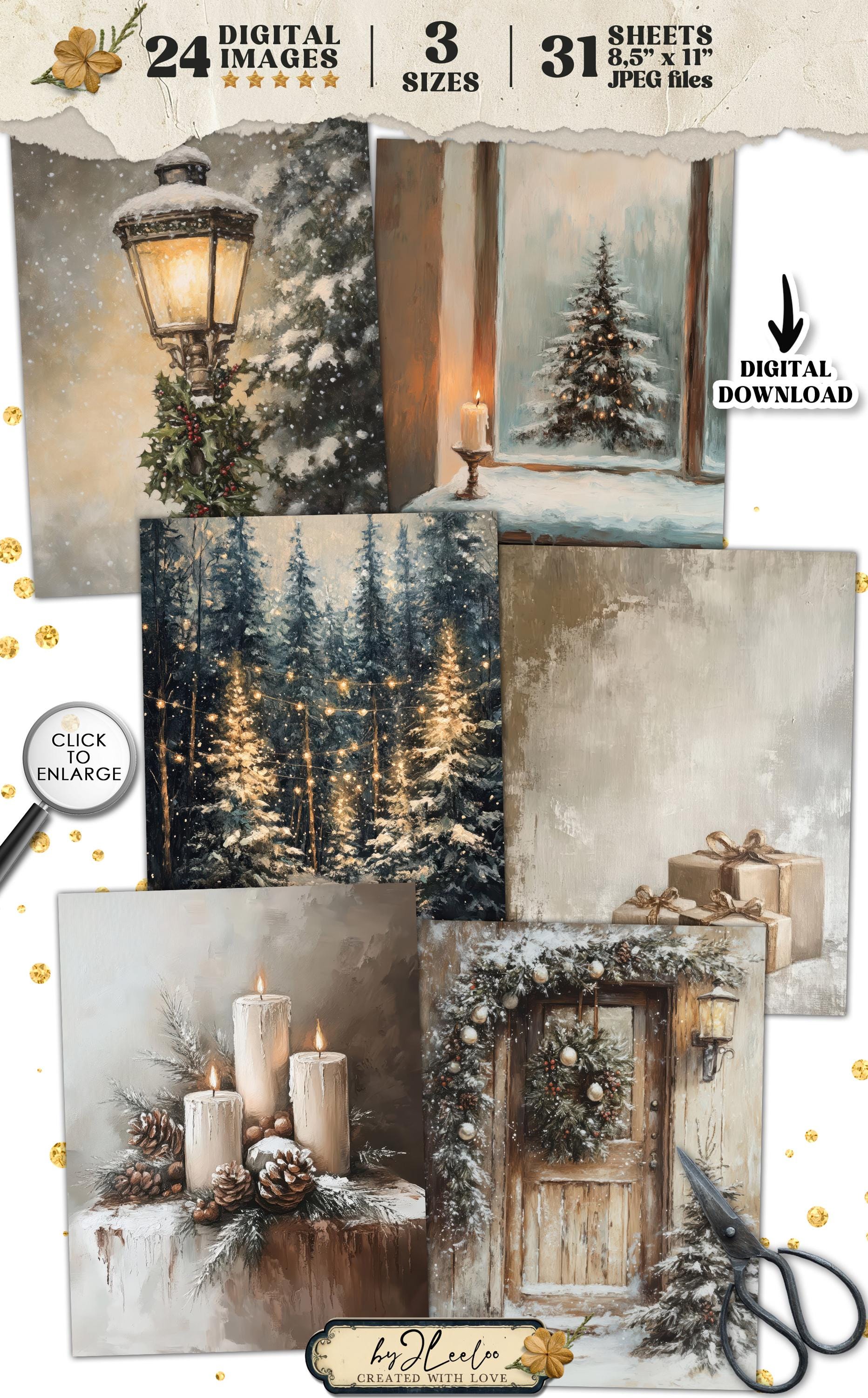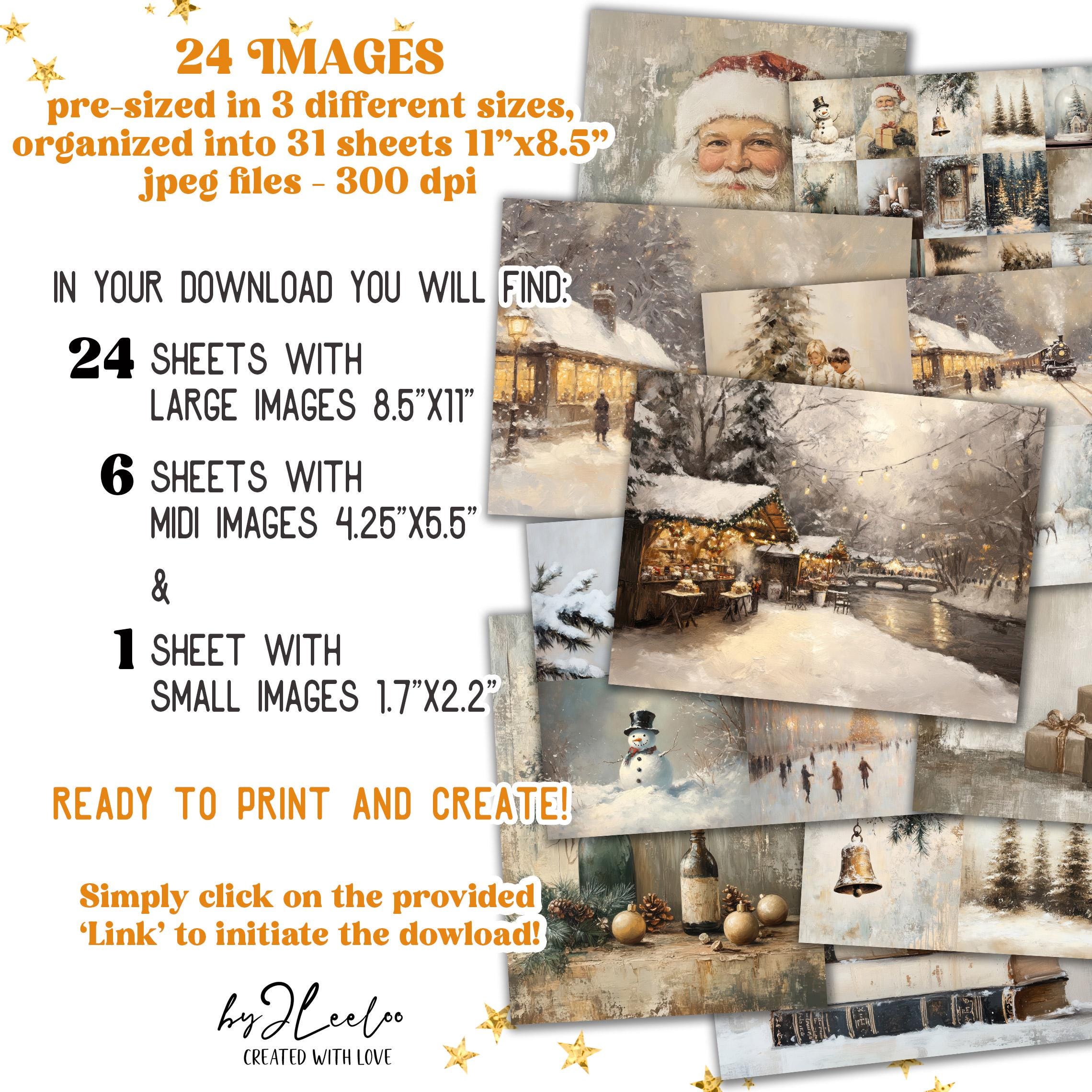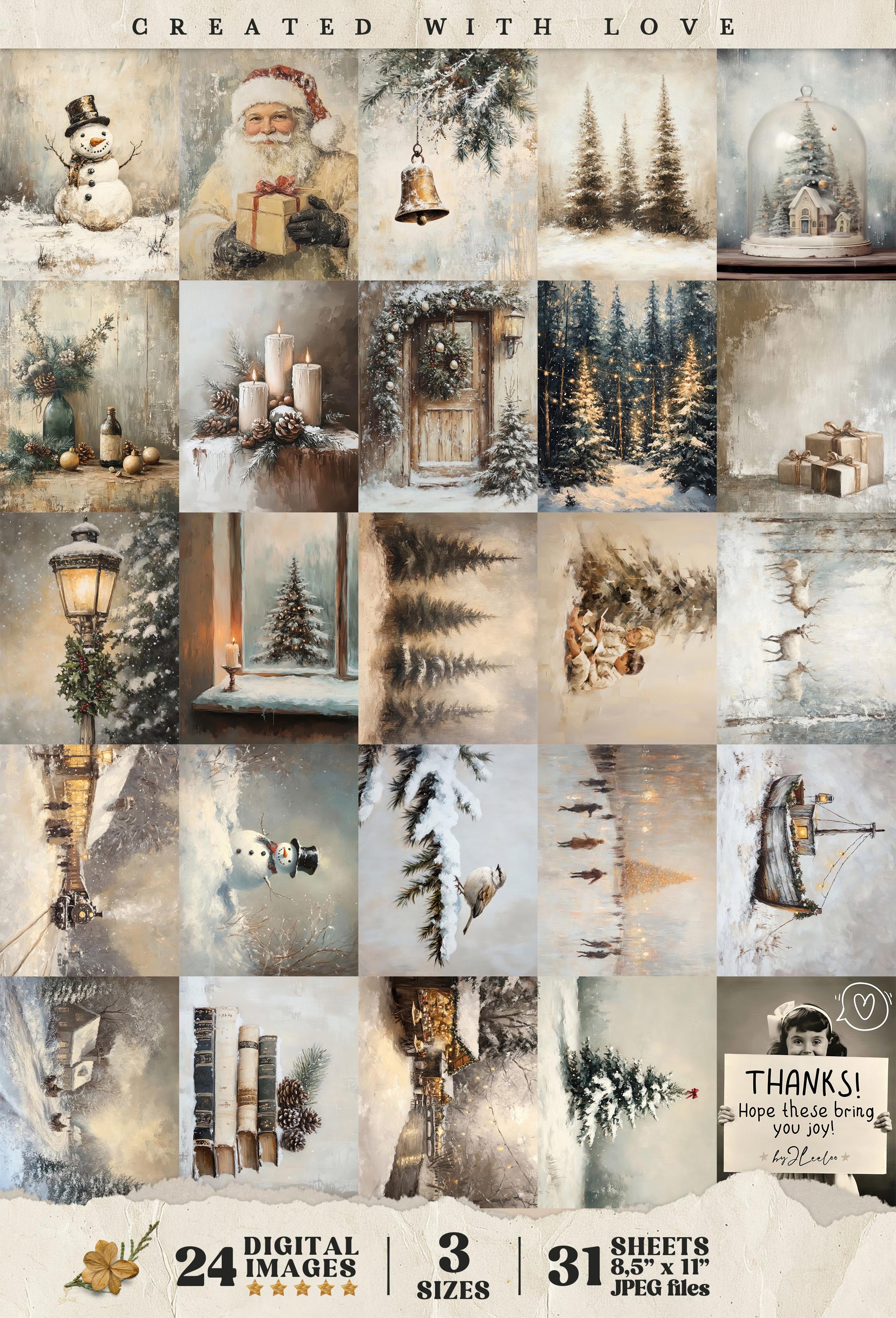 YULETIDE CANVAS 3 Sizes | Christmas Vintage home decoration rustic background | Holidays Junk Journal backdrop tag | Commercial Use | pp878