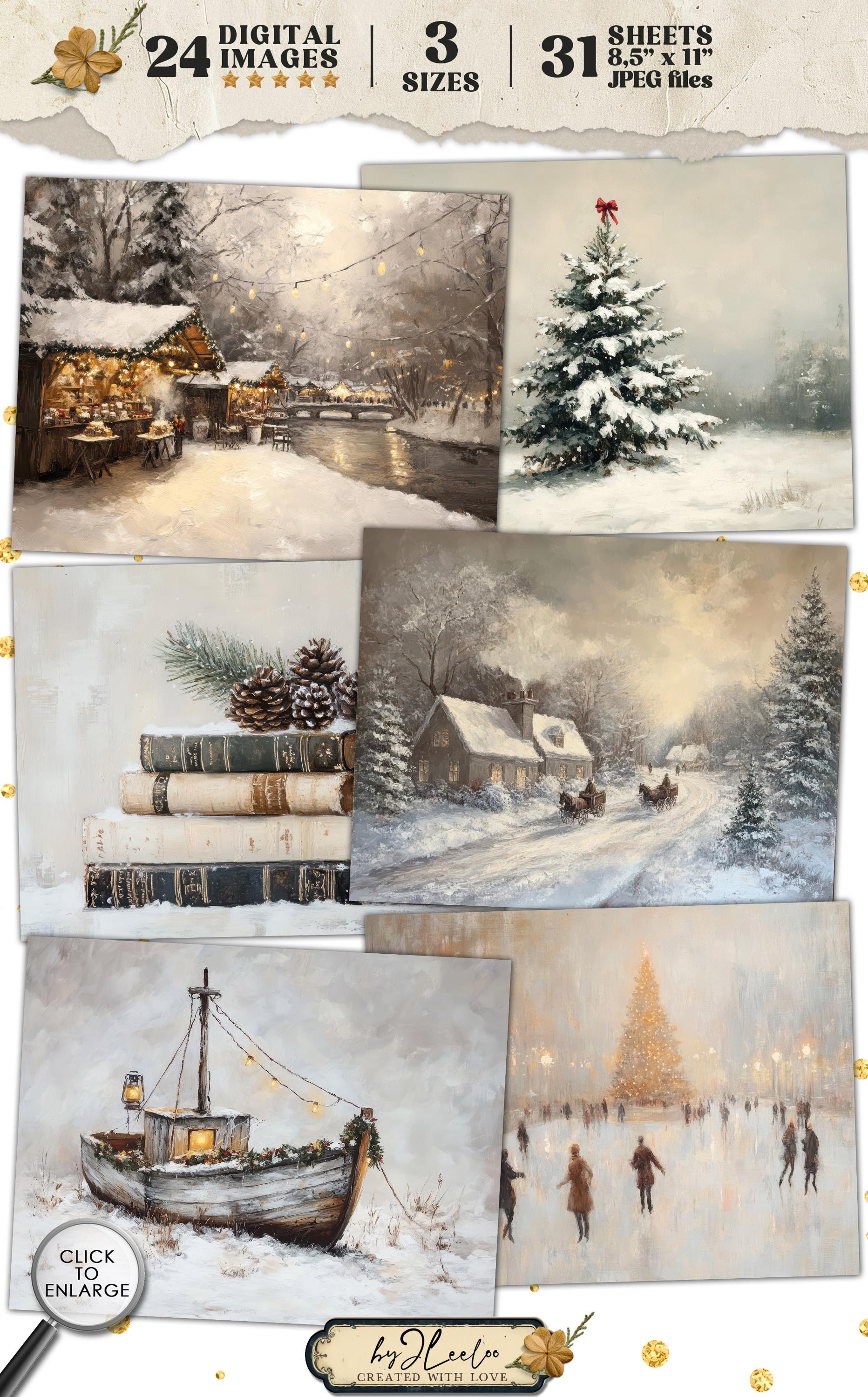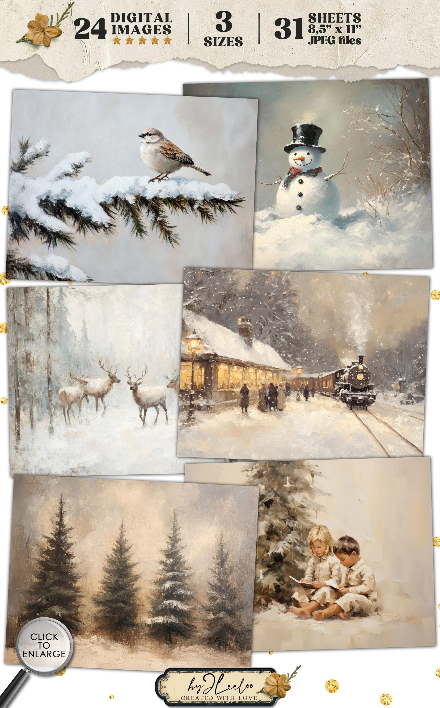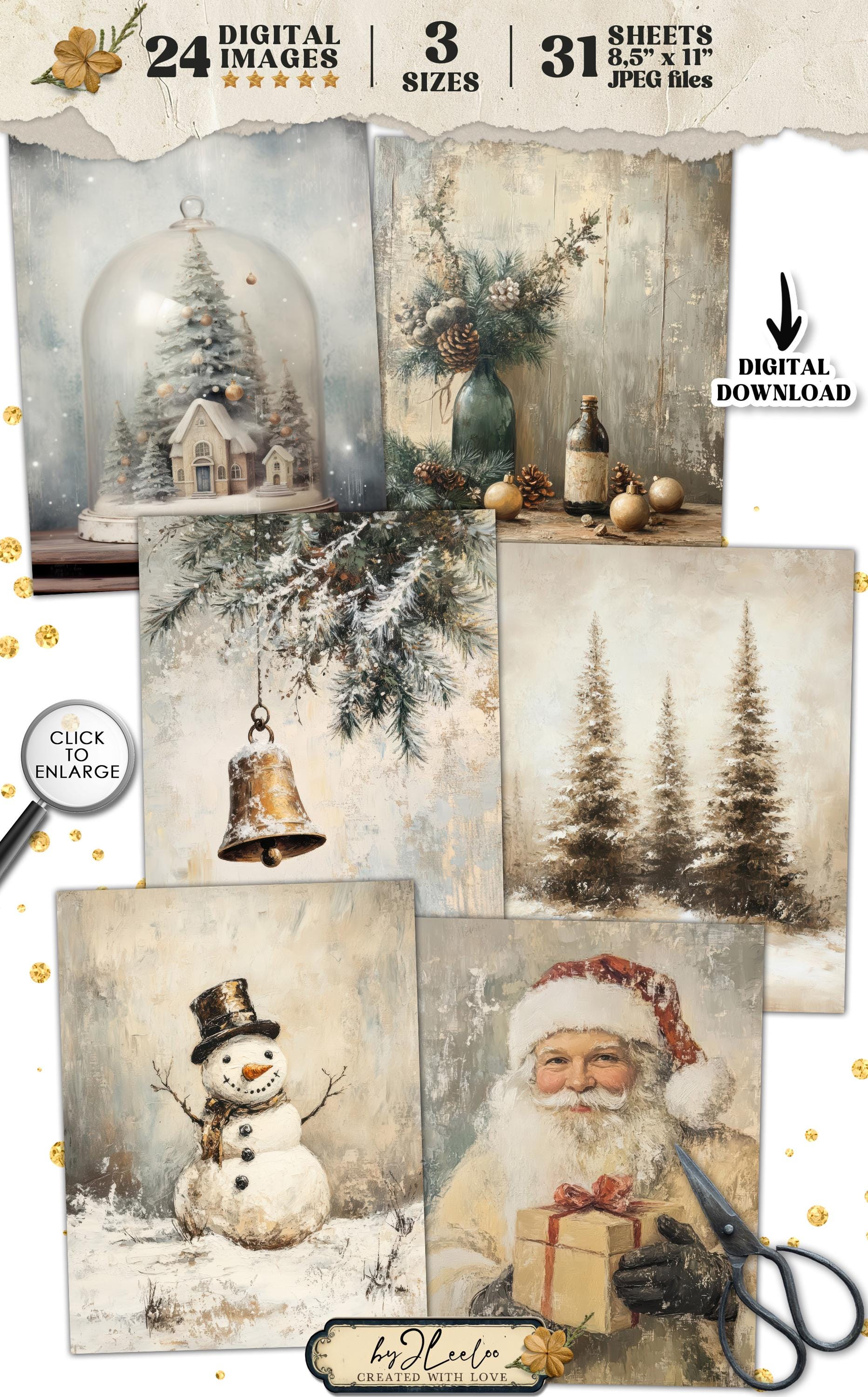 YULETIDE CANVAS 3 Sizes | Christmas Vintage home decoration rustic background | Holidays Junk Journal backdrop tag | Commercial Use | pp878