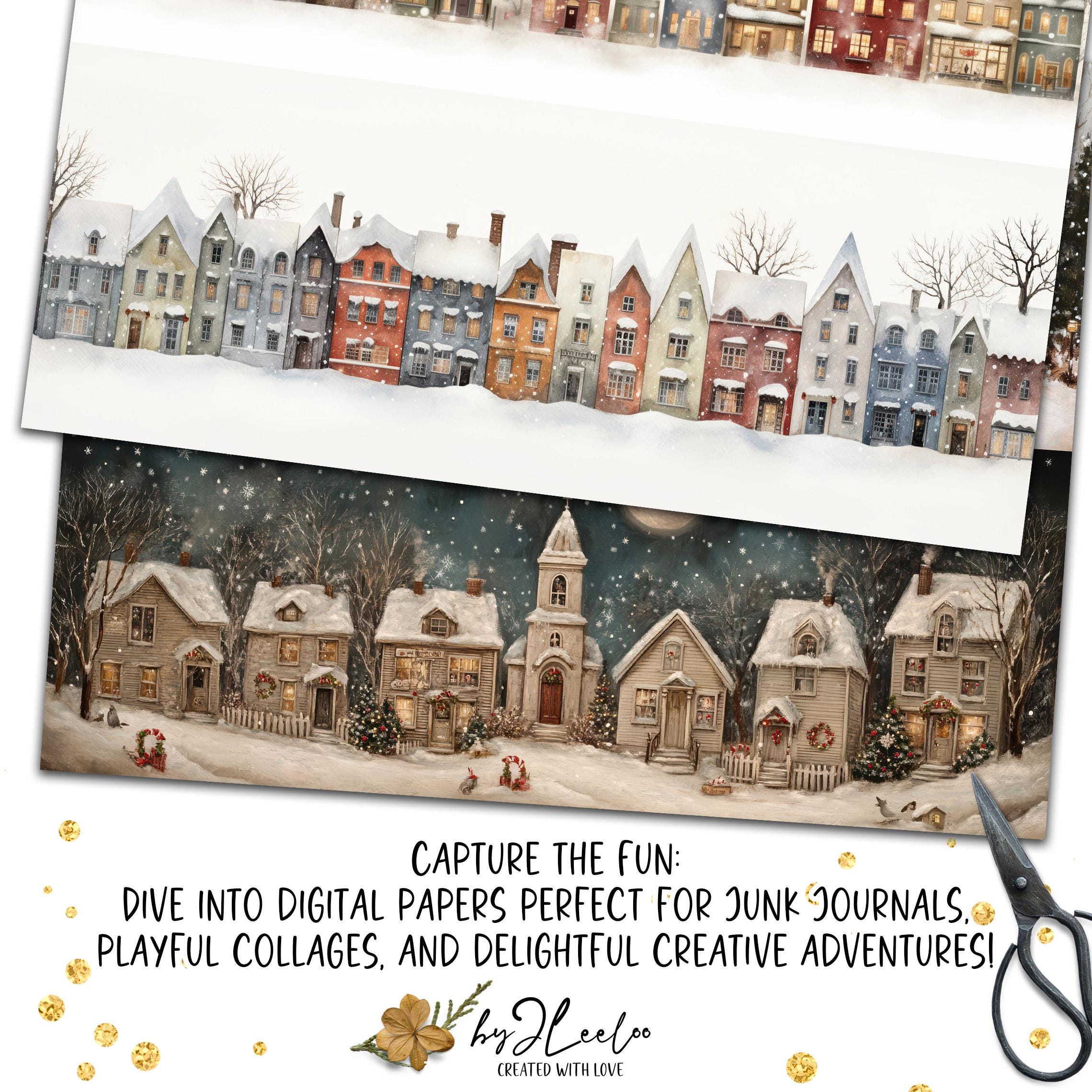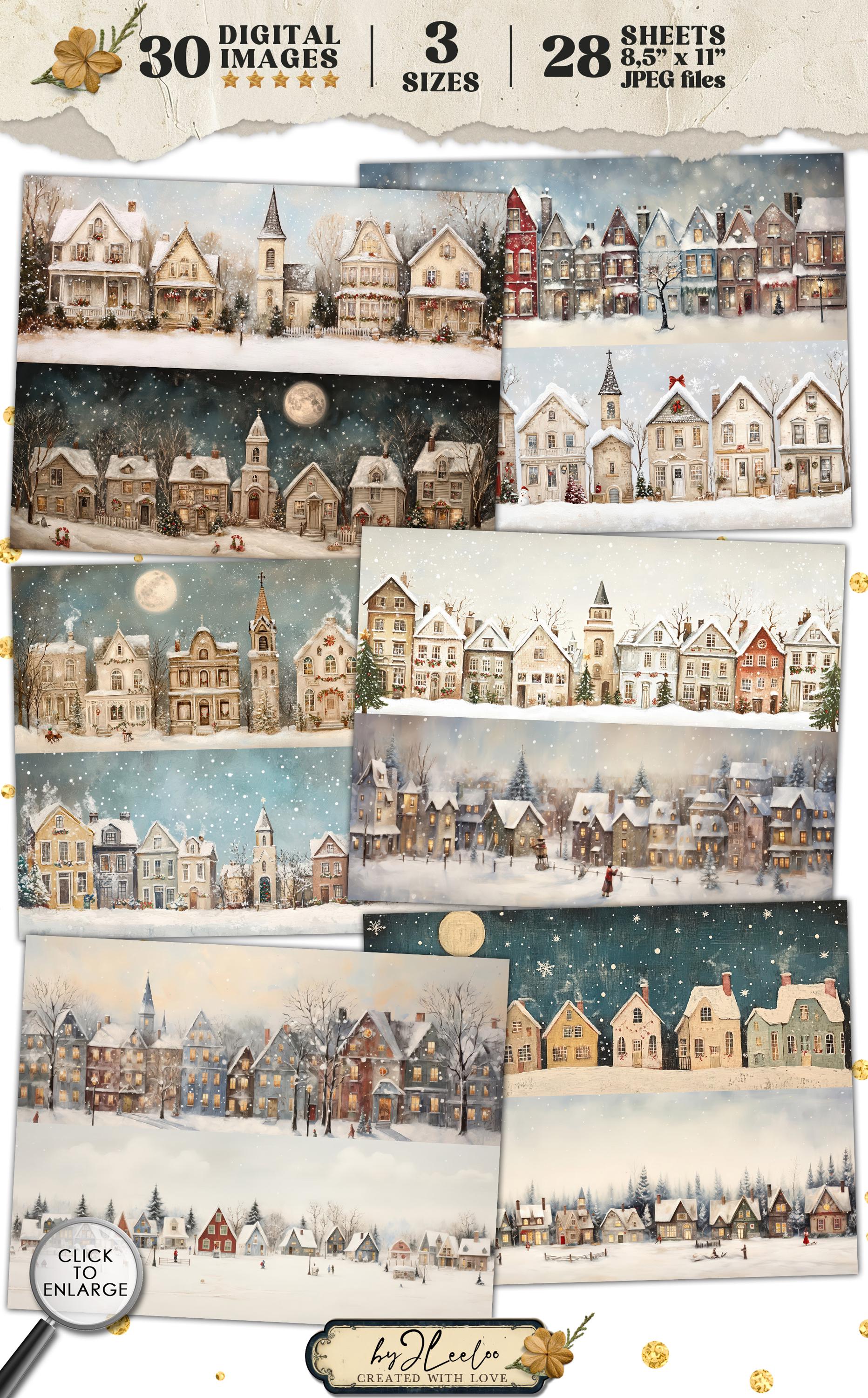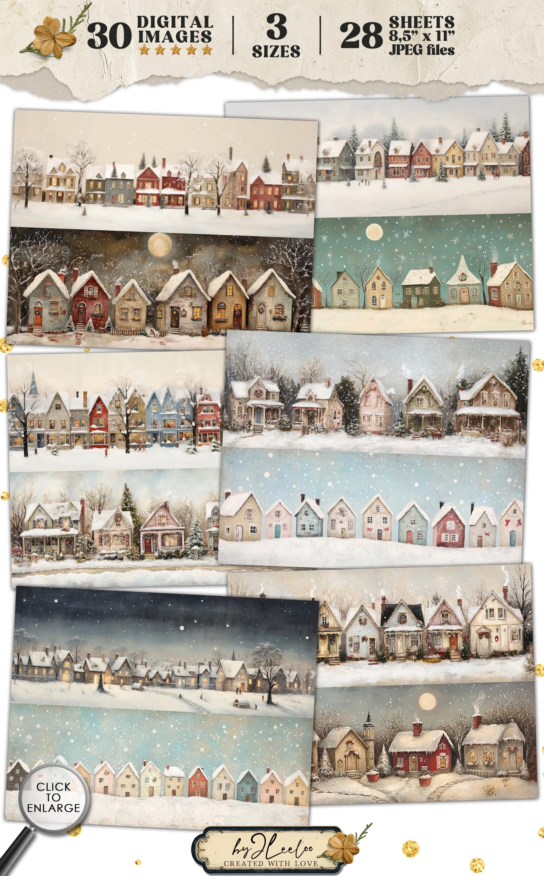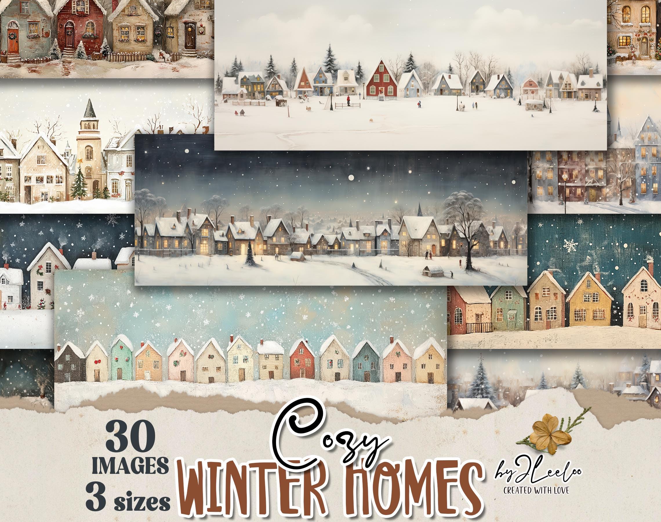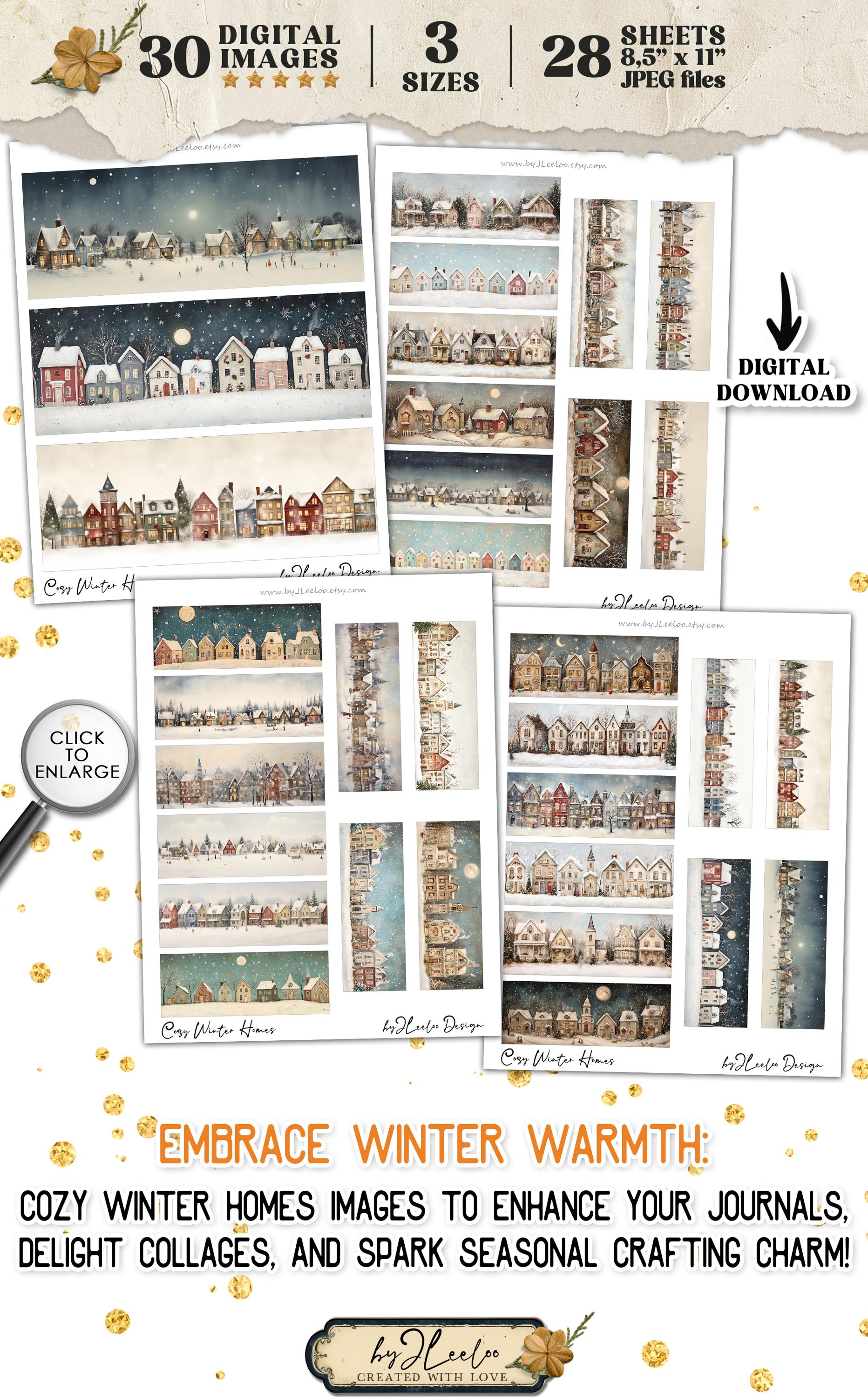 Cozy WINTER HOMES bookmarks 3 sizes | Christmas landscape illustration wrapper decor gift| Label tag printable | Digital Download CU | bm120