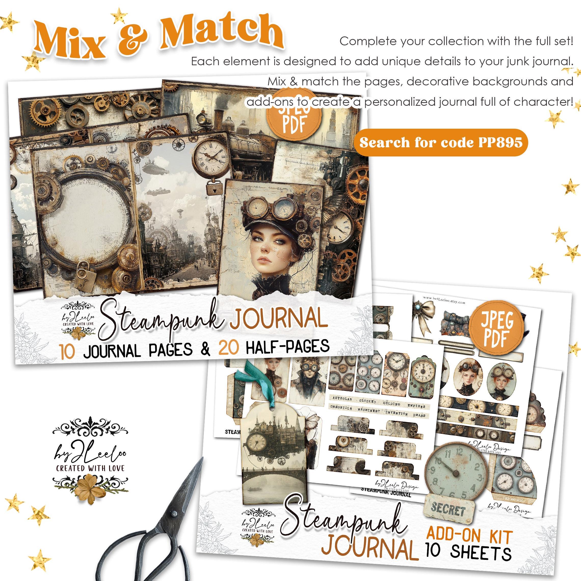 ✂️ Check out the ADD-ON KIT here: https://byjleeloo.etsy.com/listing/1848674539/steampunk-journal-add-on-kit-junk