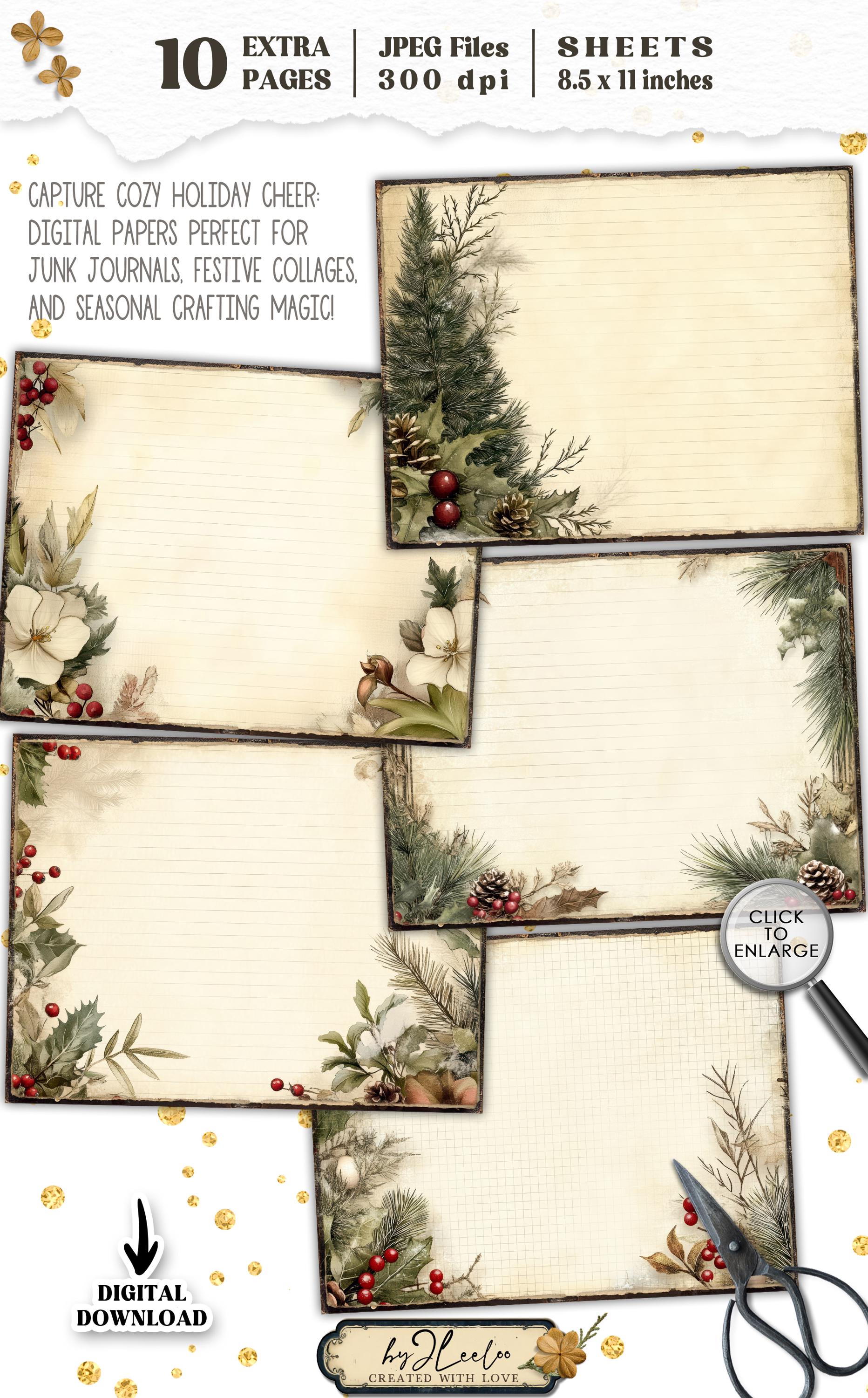 WINTER'S EMBRACE 10 Extra Pages Junk Journal printable | Holidays season Collage Kit scrapbook vintage ephemera | Digital art CU | pp879