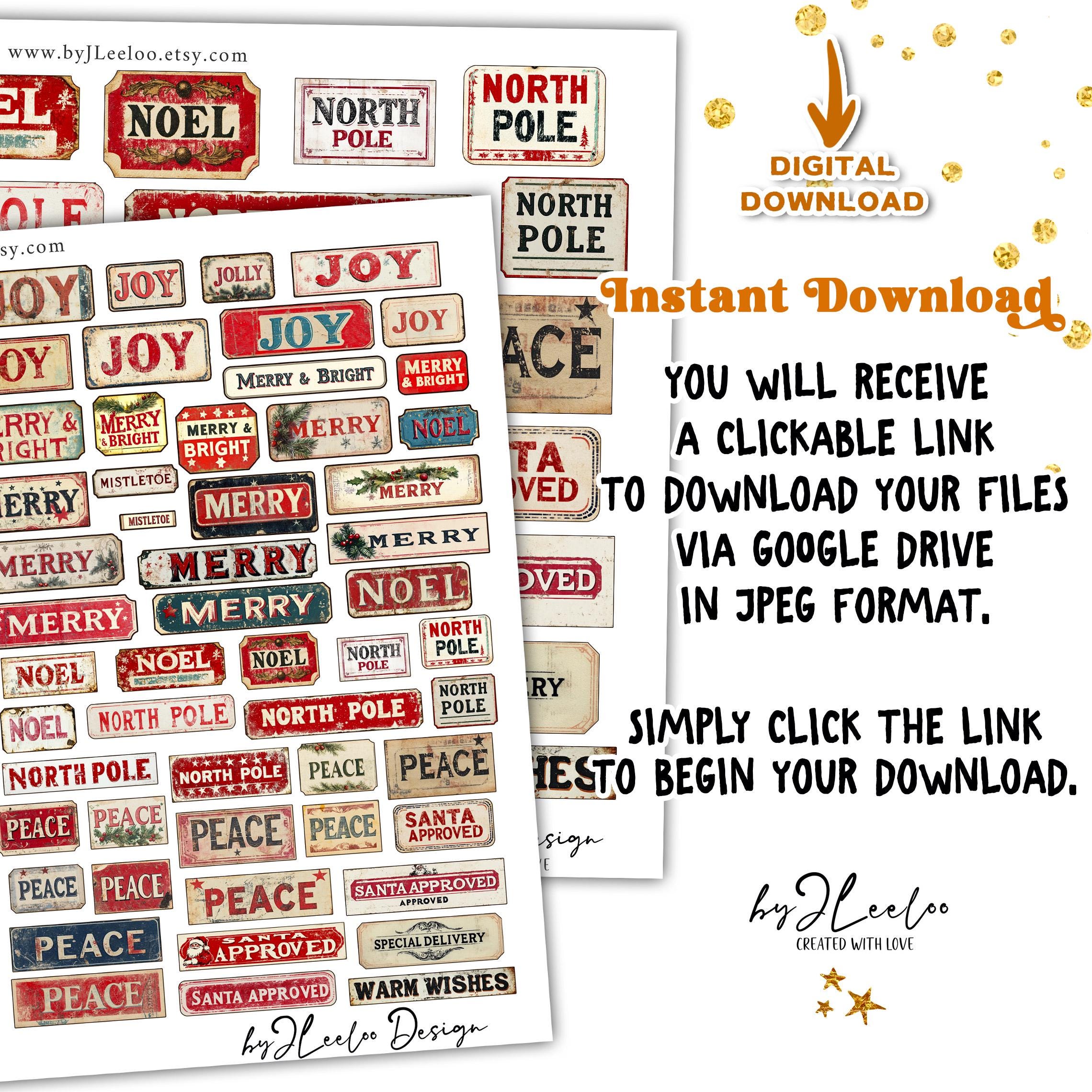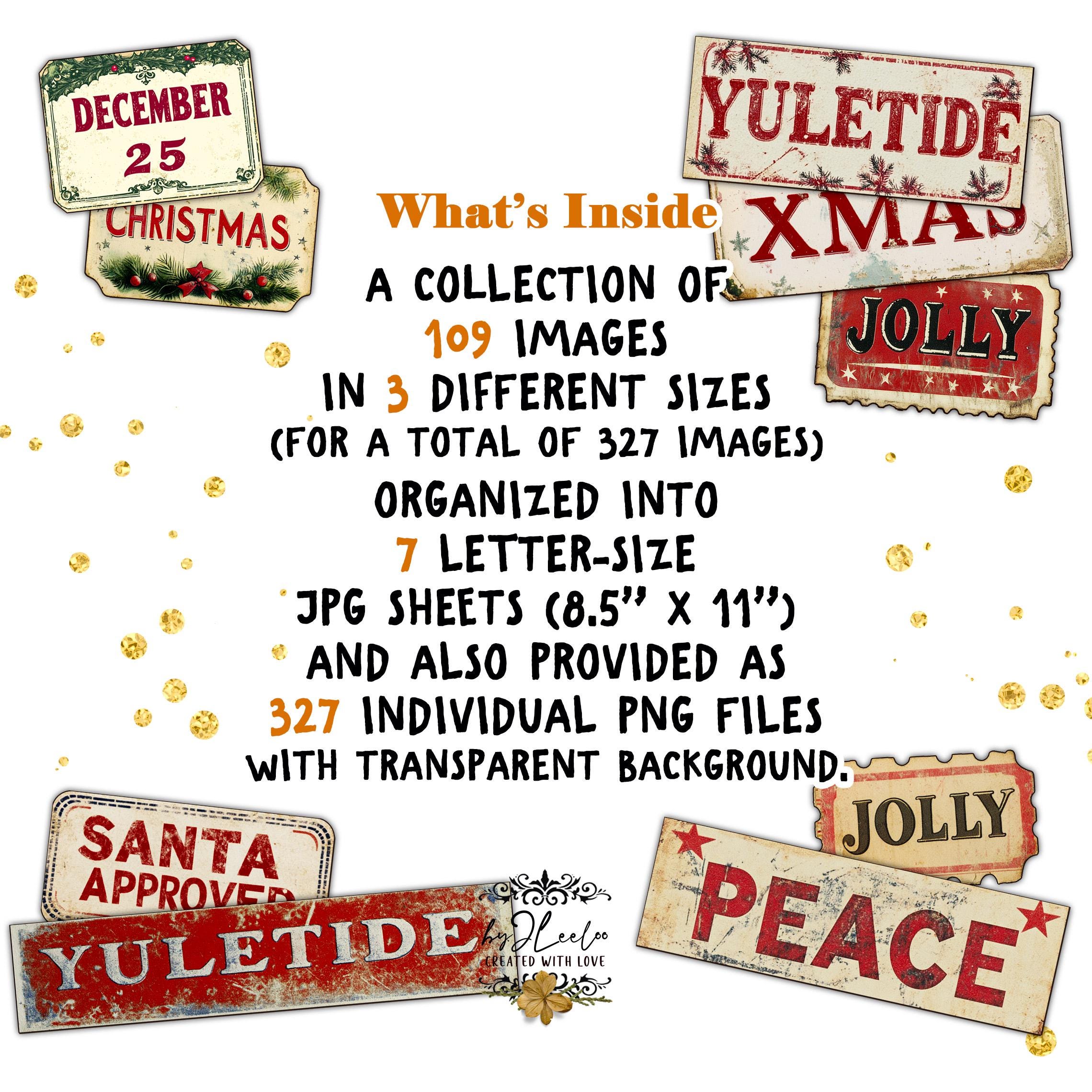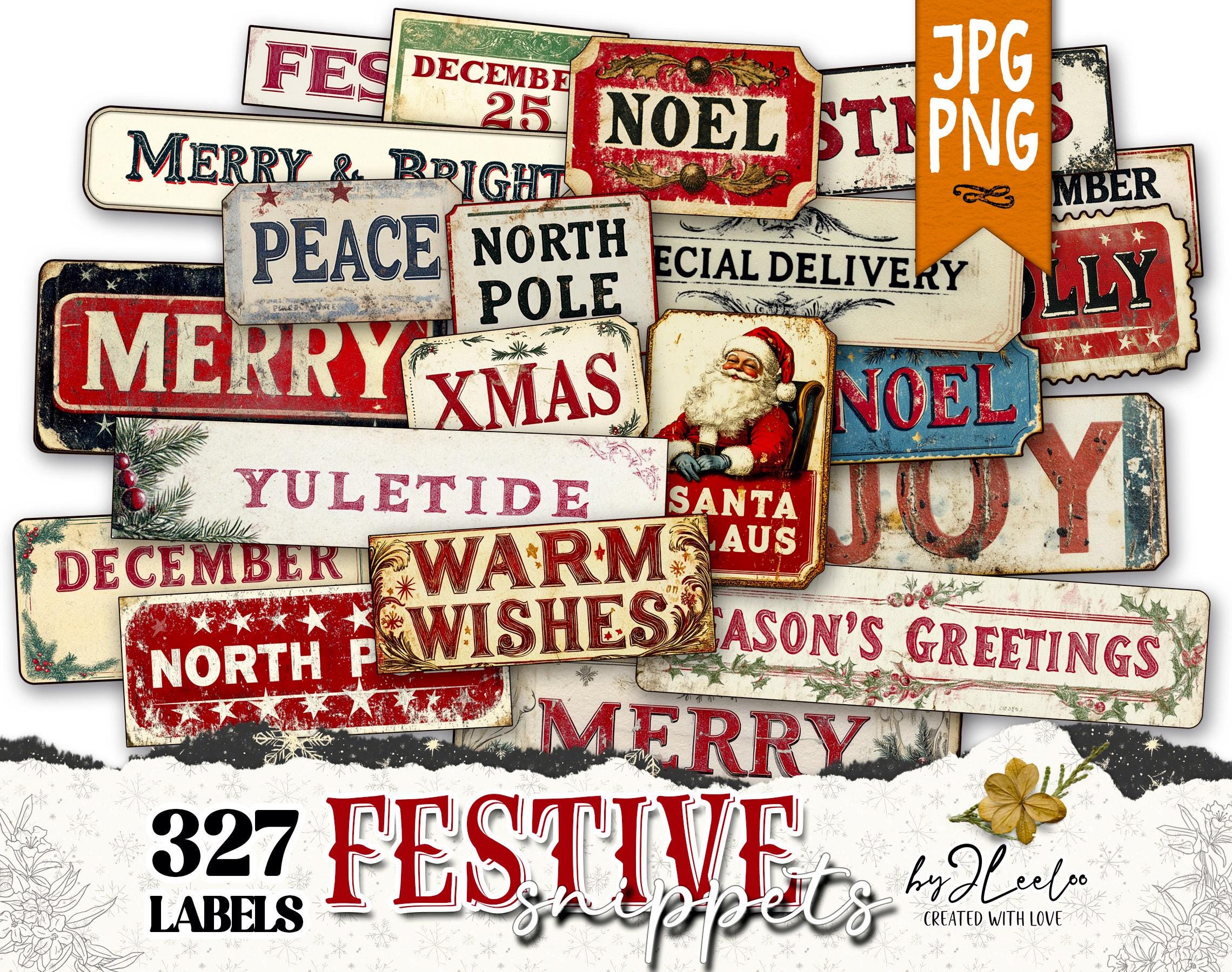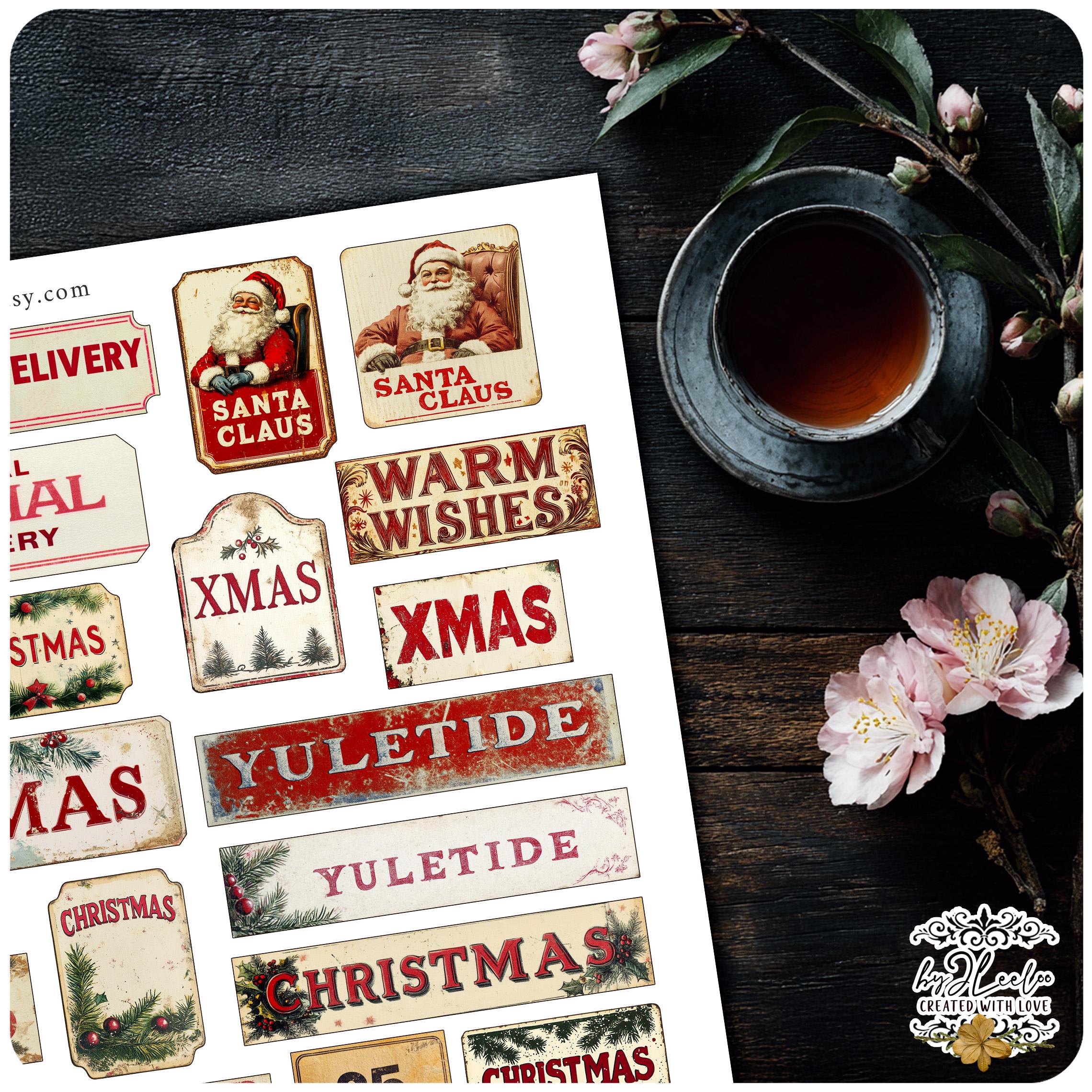 FESTIVE SNIPPETS printable Christmas words | Vintage Labels Antique Stickers Holidays Junk journal | scrapbooking collection art CU | tl306