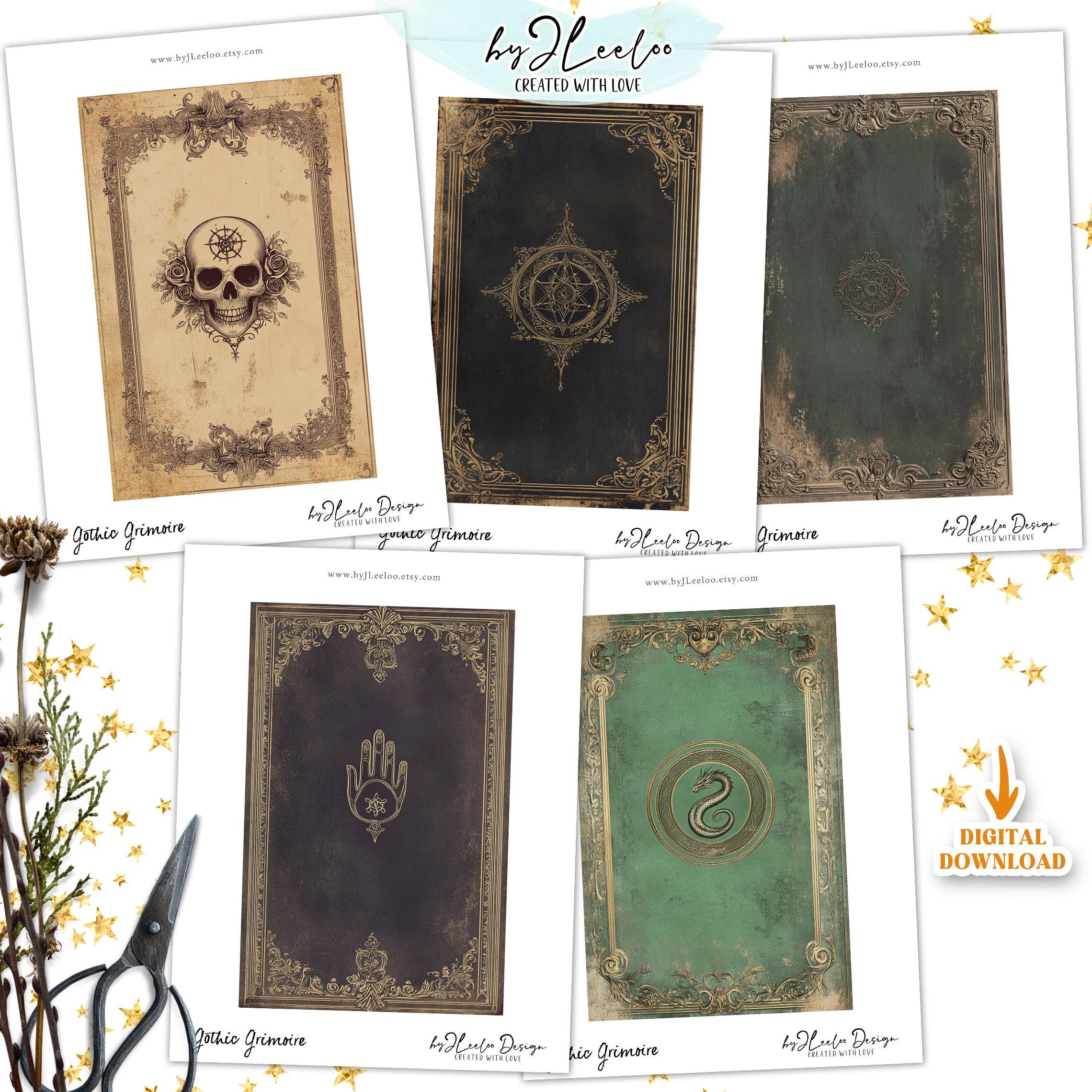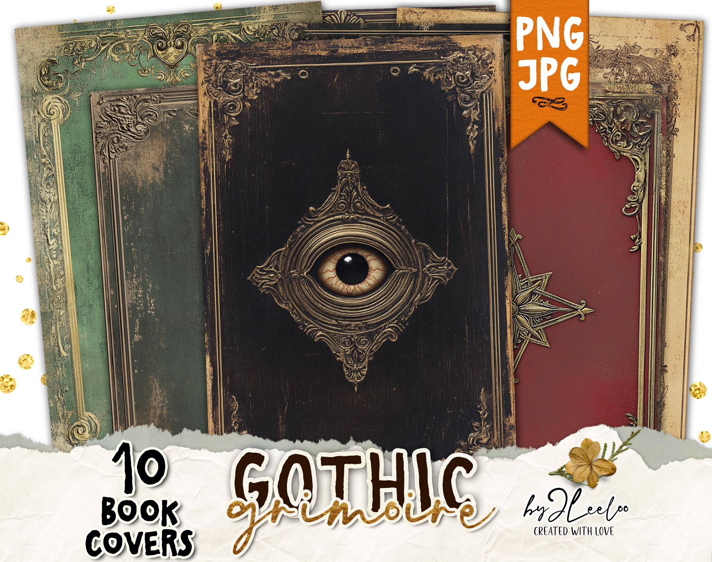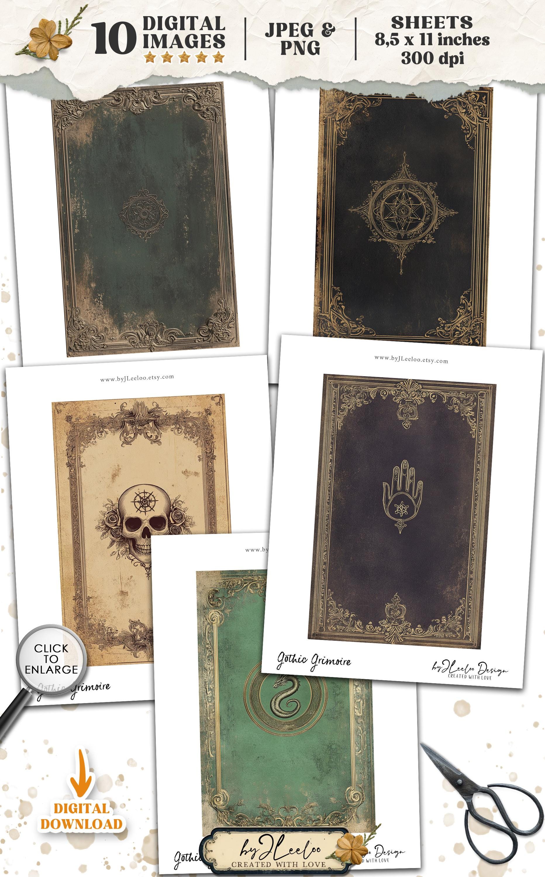 GOTHIC GRIMOIRE 10 book cover supplies | Antique Victorian paper craft | Junk Journal cover ephemera Halloween digital download CU | pp898
