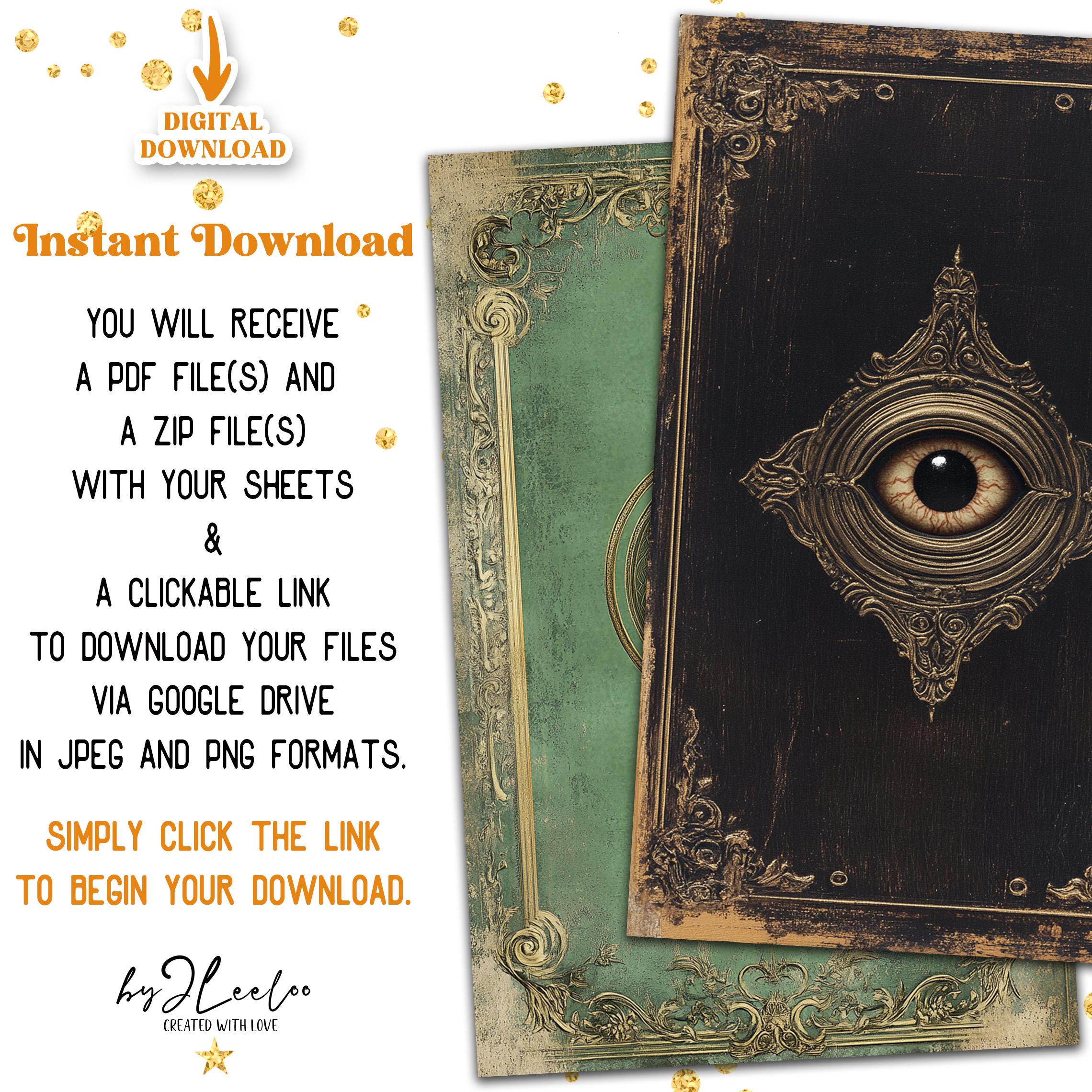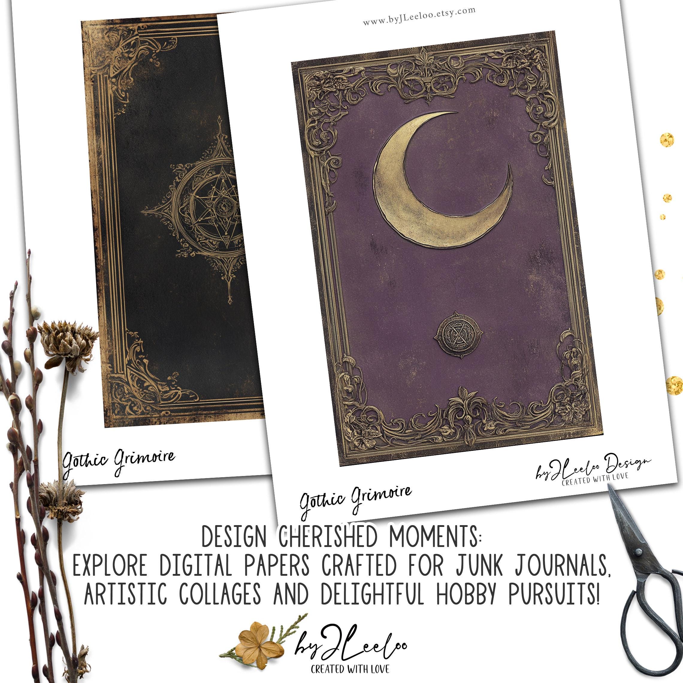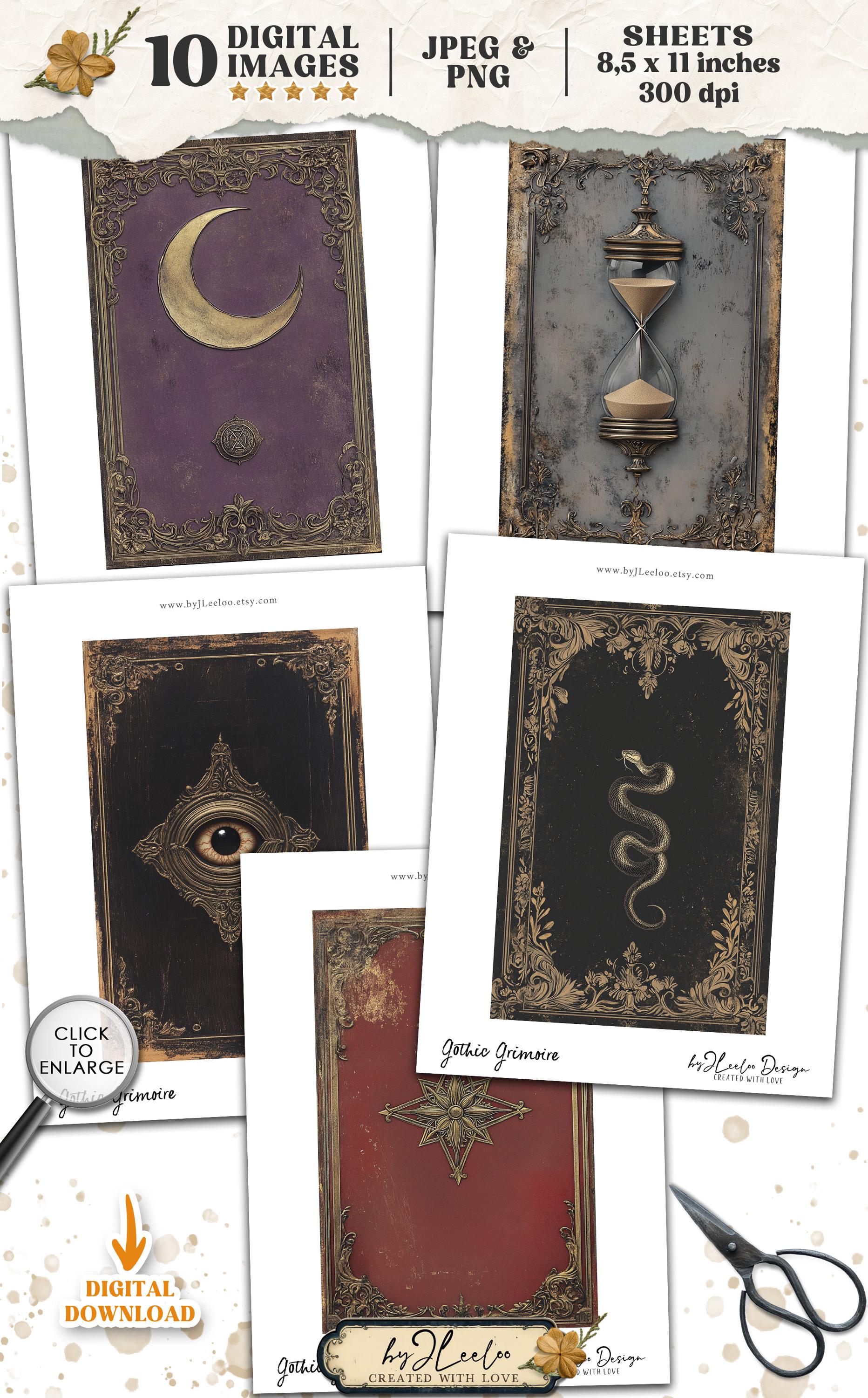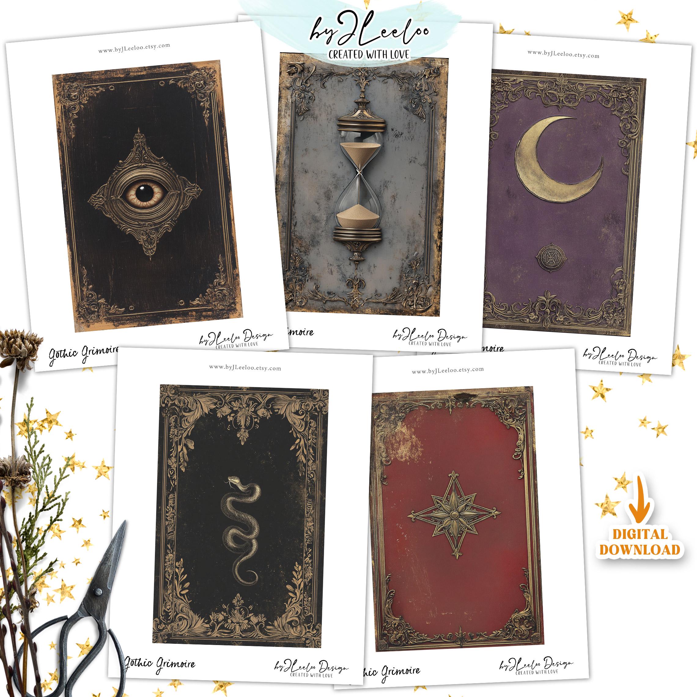GOTHIC GRIMOIRE 10 book cover supplies | Antique Victorian paper craft | Junk Journal cover ephemera Halloween digital download CU | pp898