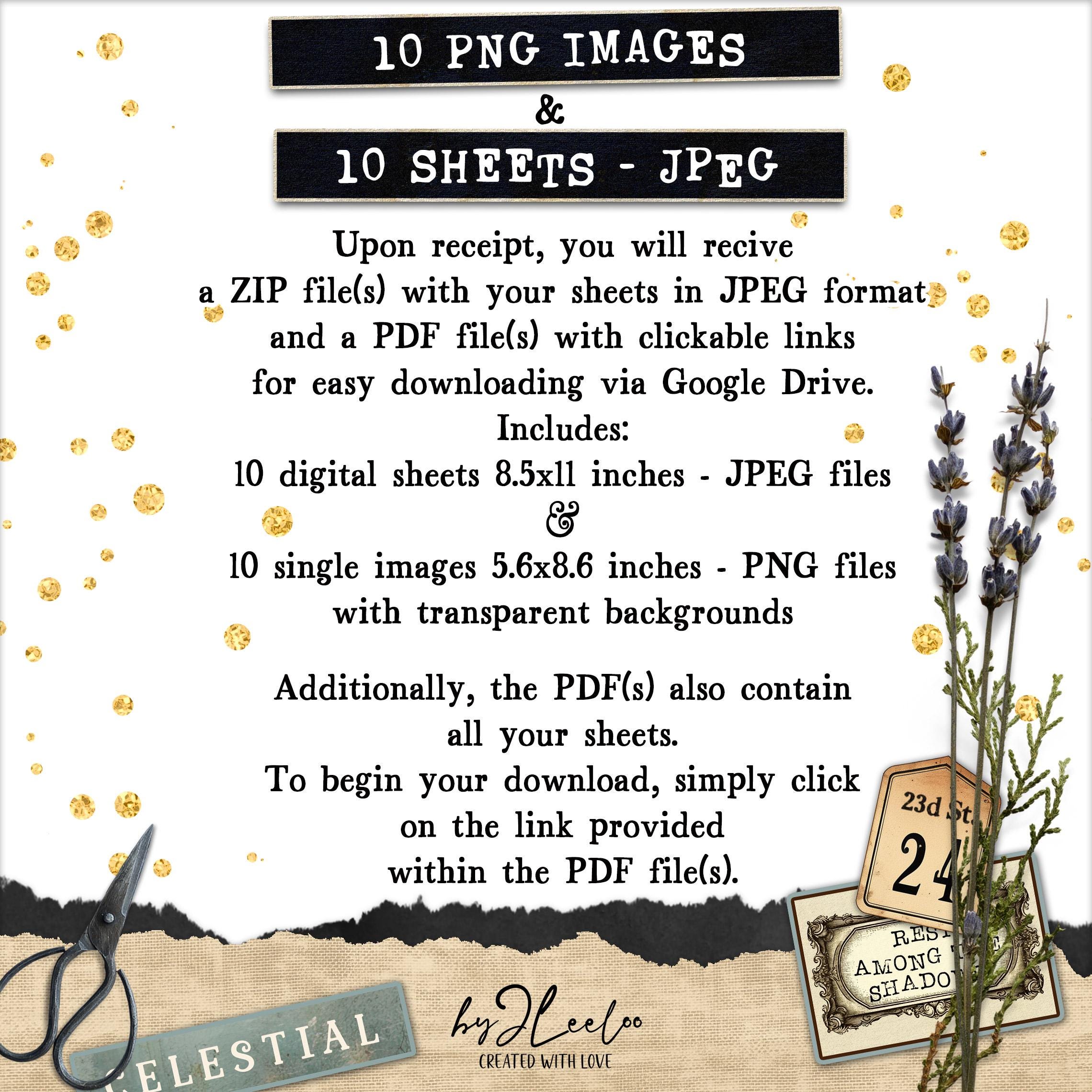 ● 10 digital sheets with cover images in 5.6 x 8.6 inches - JPEG format