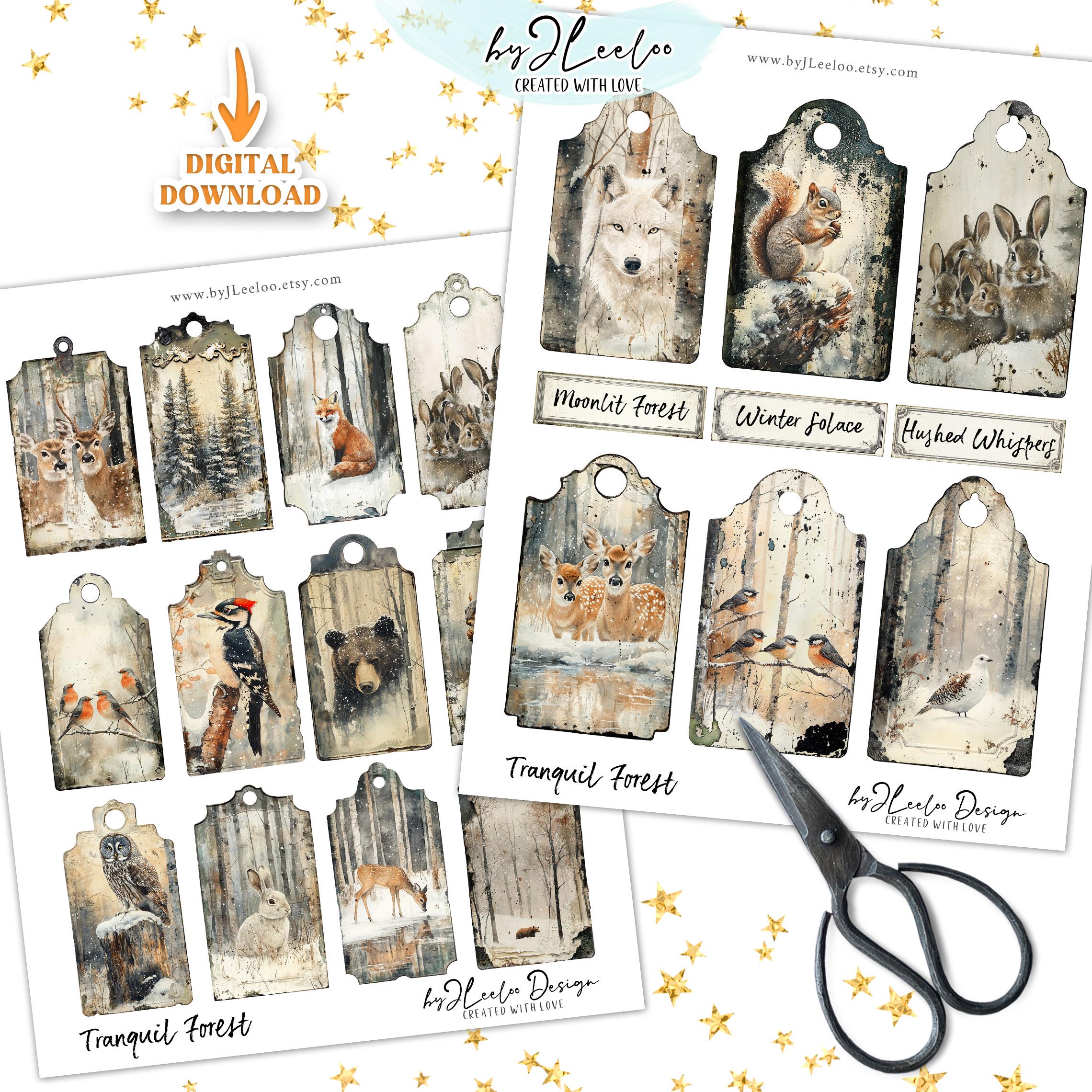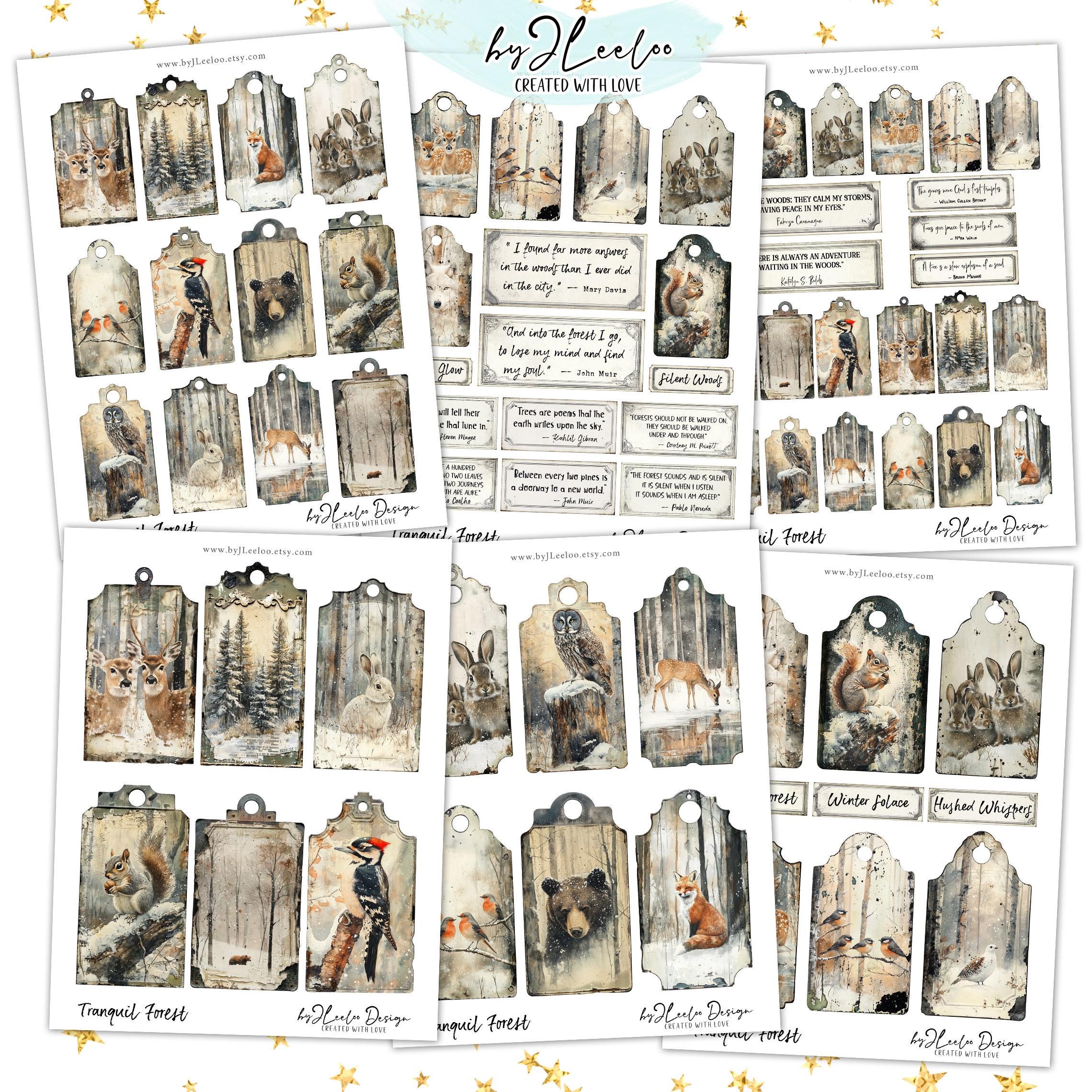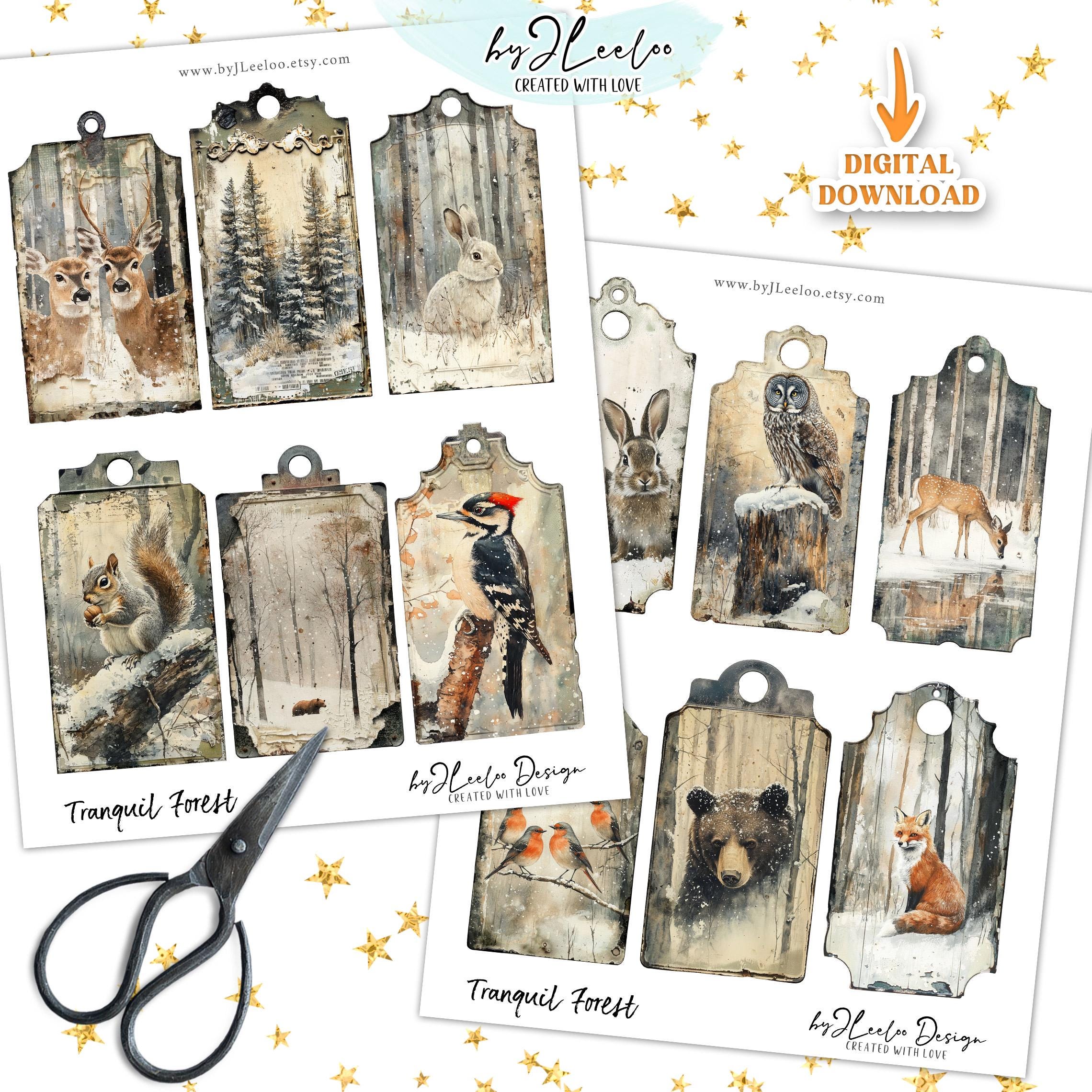TRANQUIL FOREST vintage label and tag journal supplies | Ephemera Forest Wild Animals Quote | Scrapbbok collage | Digital download | tl308