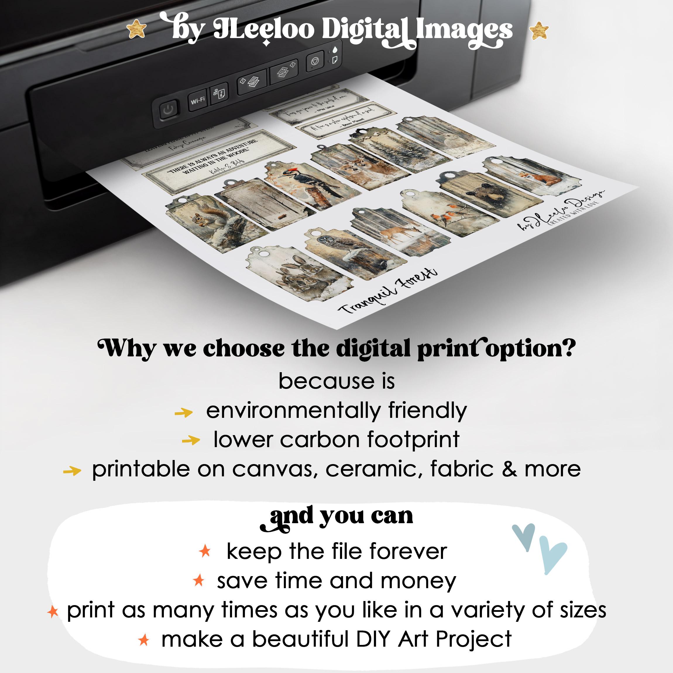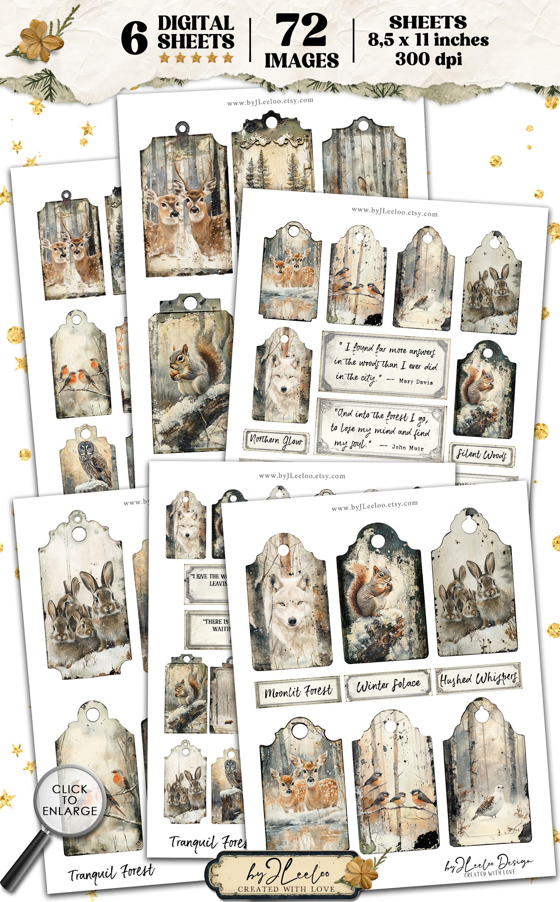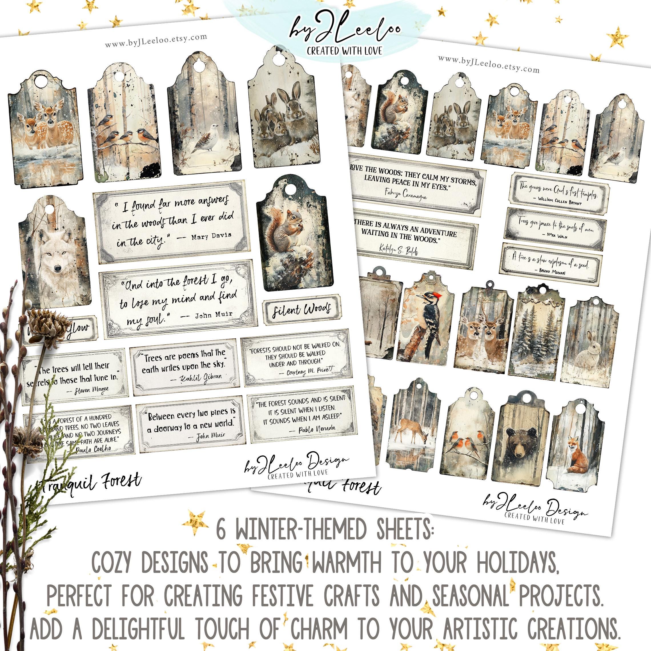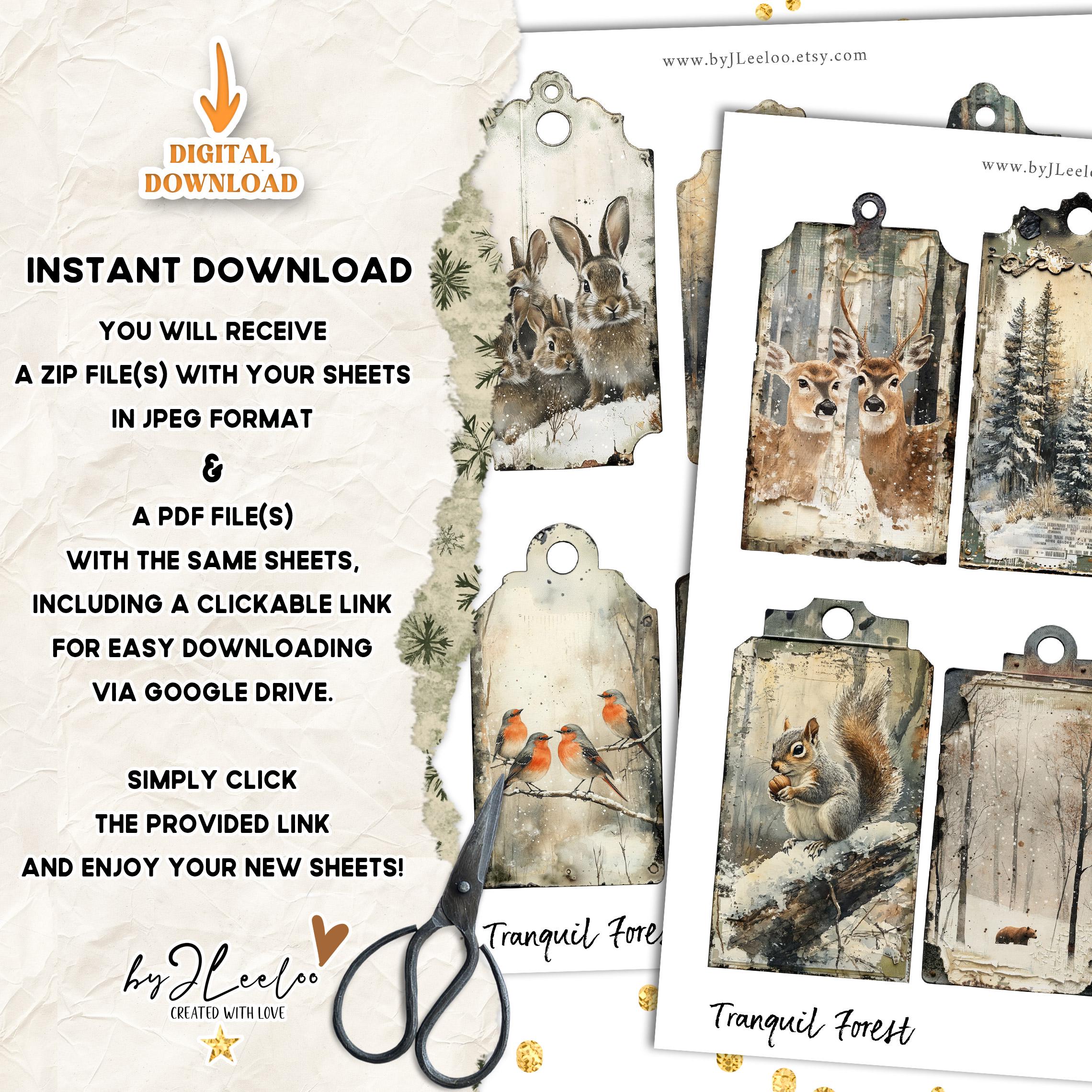 TRANQUIL FOREST vintage label and tag journal supplies | Ephemera Forest Wild Animals Quote | Scrapbbok collage | Digital download | tl308