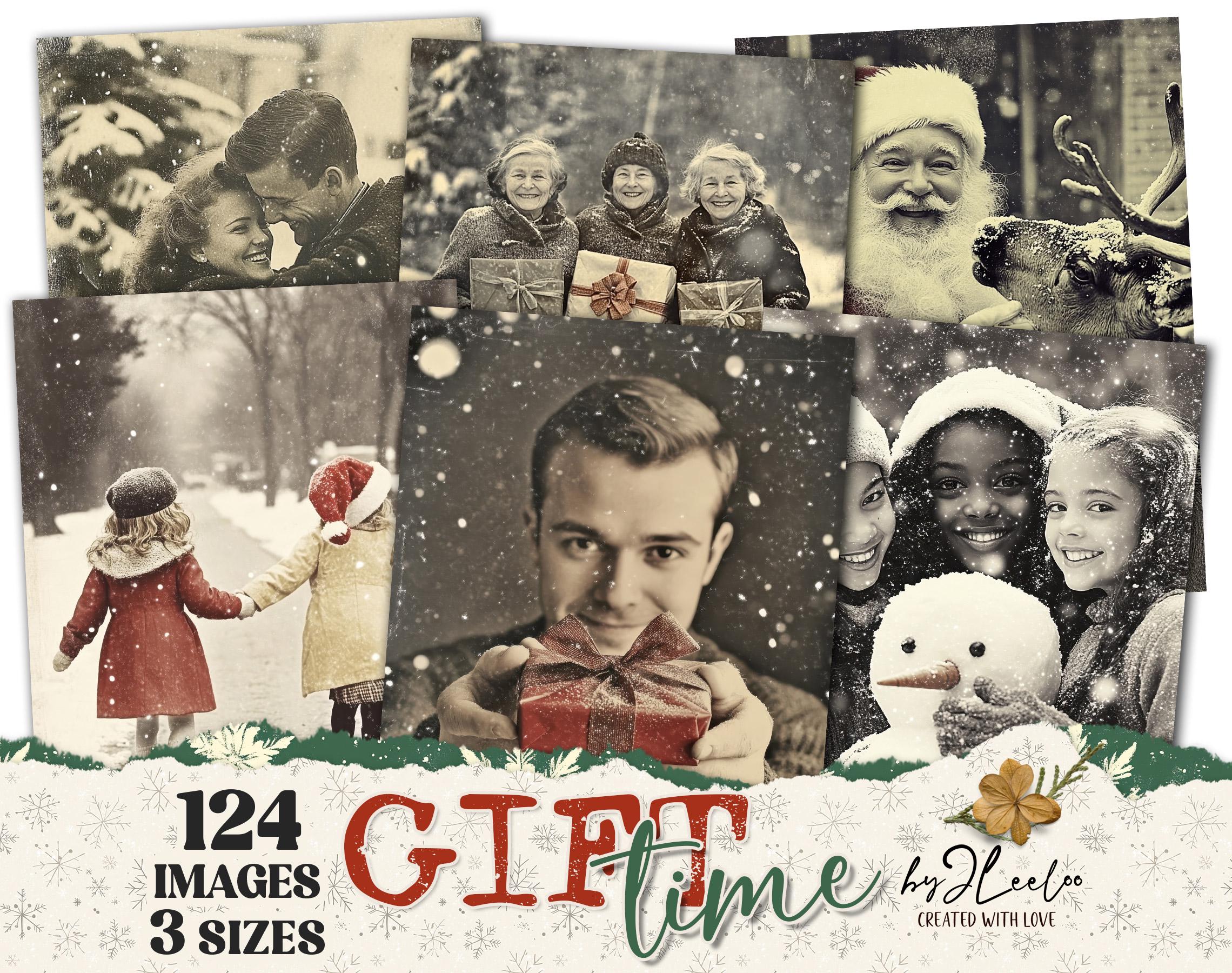 GIFT TIME collection 124 portraits 3 sizes | Old vintage Christmas photos digital art | Holidays ephemera printable Home Wall Decor | pp889