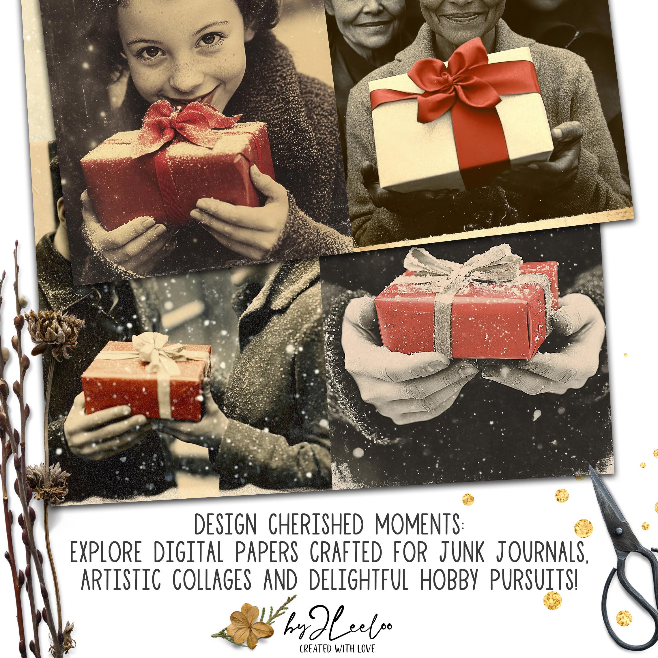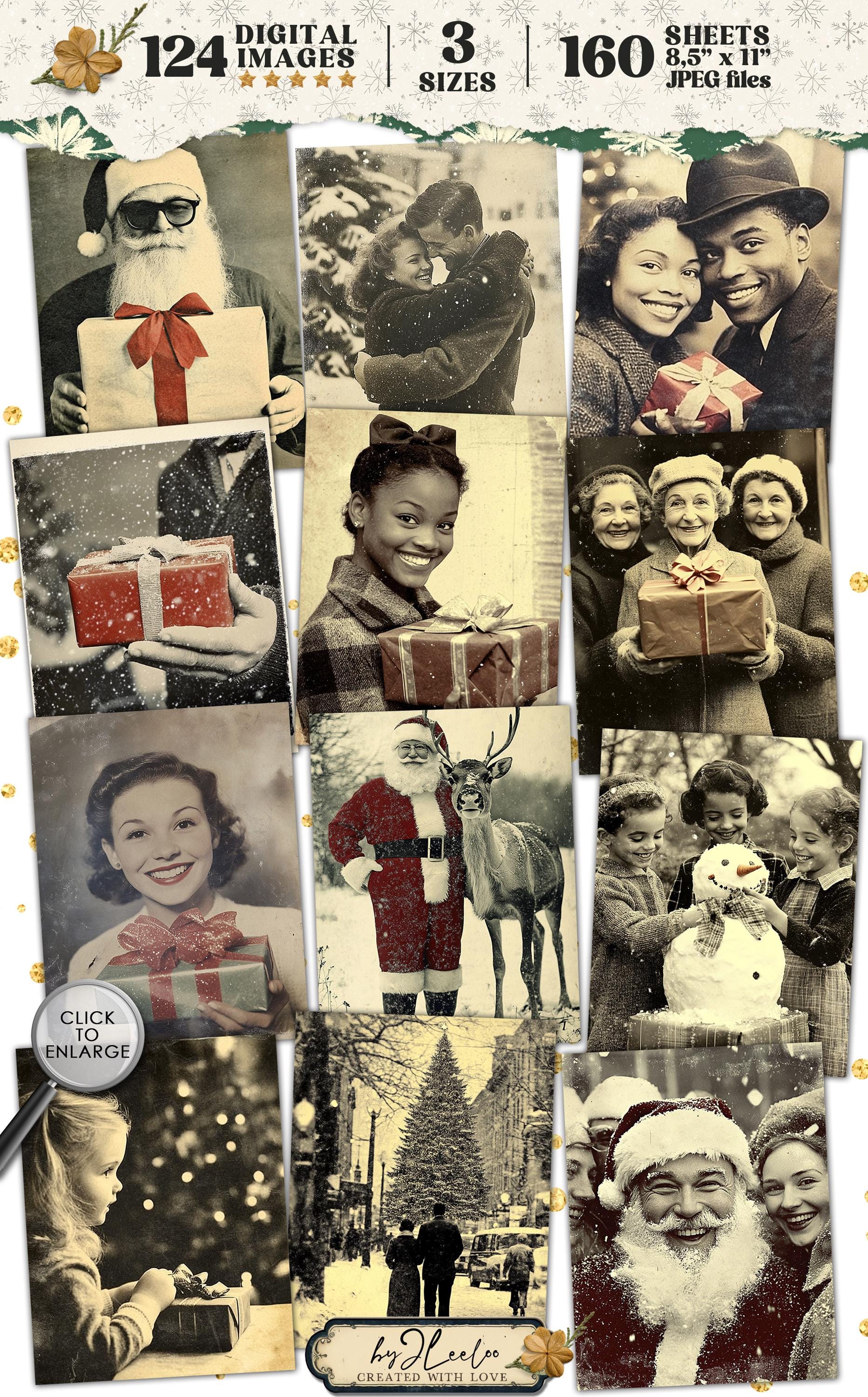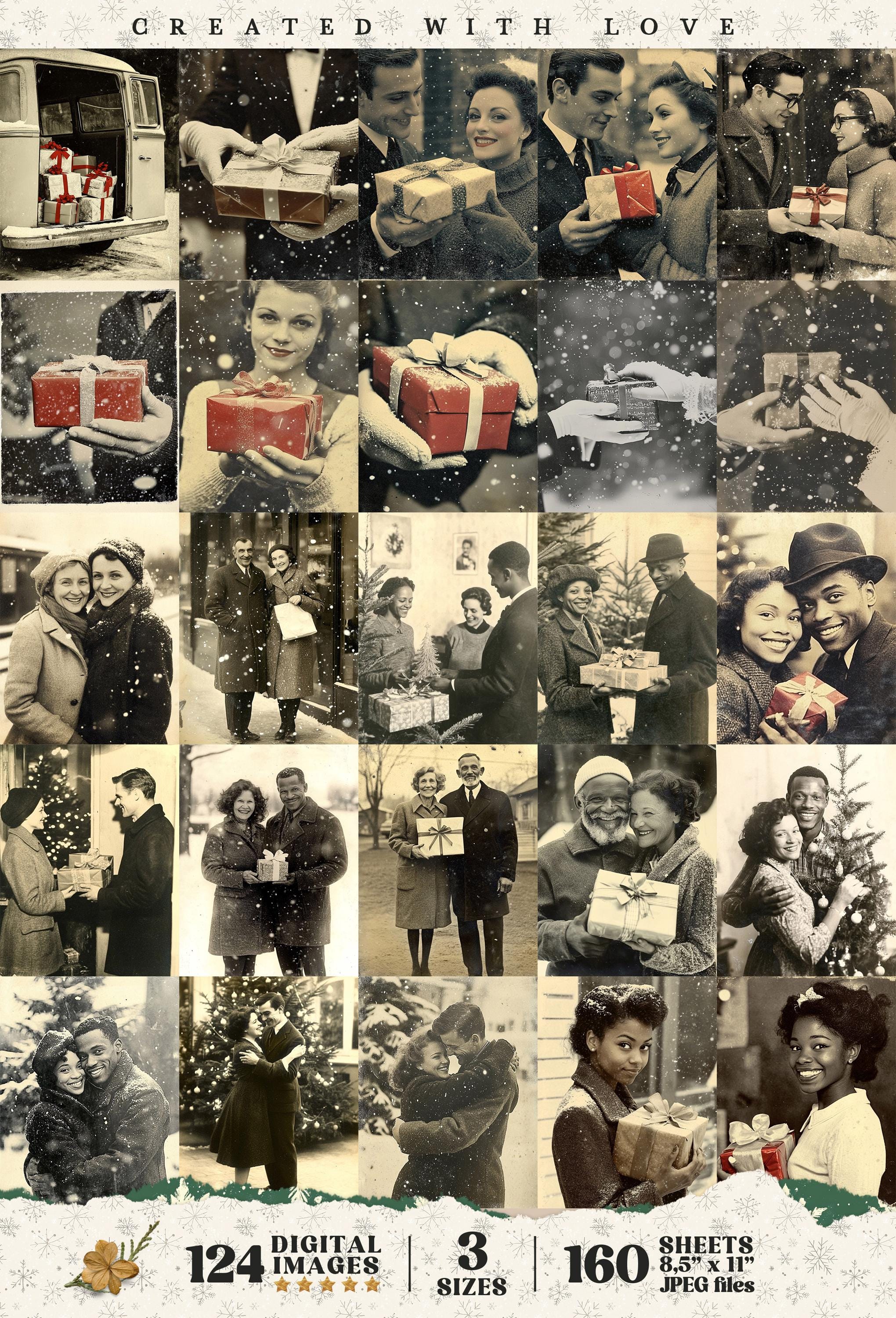 ๐ Hey crafters! Celebrate the joy of giving this season with our charming collection of 124 vintage-inspired photos in sepia, black and white, and hand-tinted tones. Featuring smiling children, couples, Santa Claus, delivery men, and snowy scenes with festive packages, this versatile collection is offered in three sizes. Perfect for wall decor, journaling, scrapbooking, invitations, gift tags, collages, jewelry-making, and more, these nostalgic images add a touch of holiday magic to all your creative projects! โ๏ธ