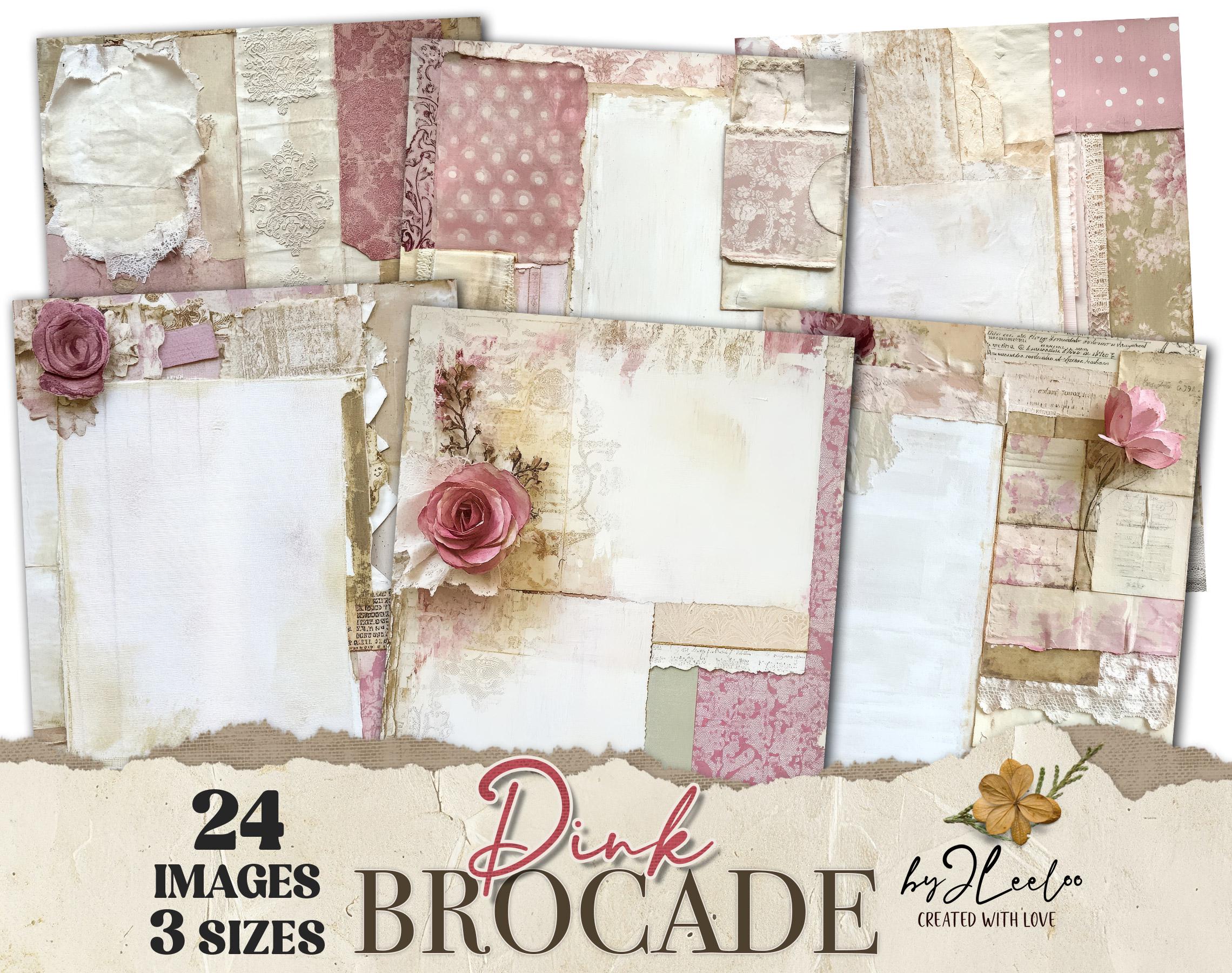 PINK BROCADE 24 neutral background 3 Sizes | Junk Journal Pages | Backdrop Rustic papers | scrapbook Lace digital | Commercial Use | pp915