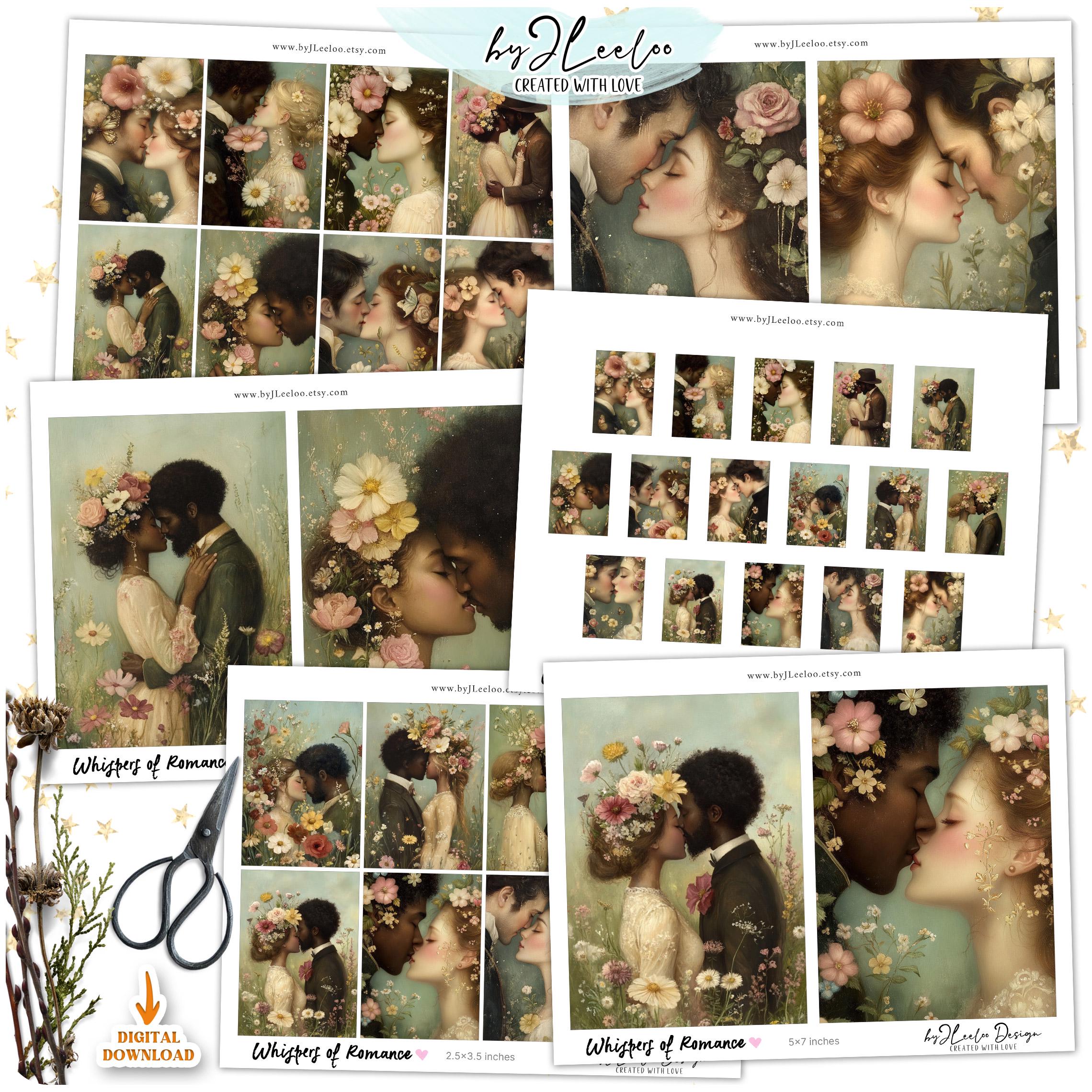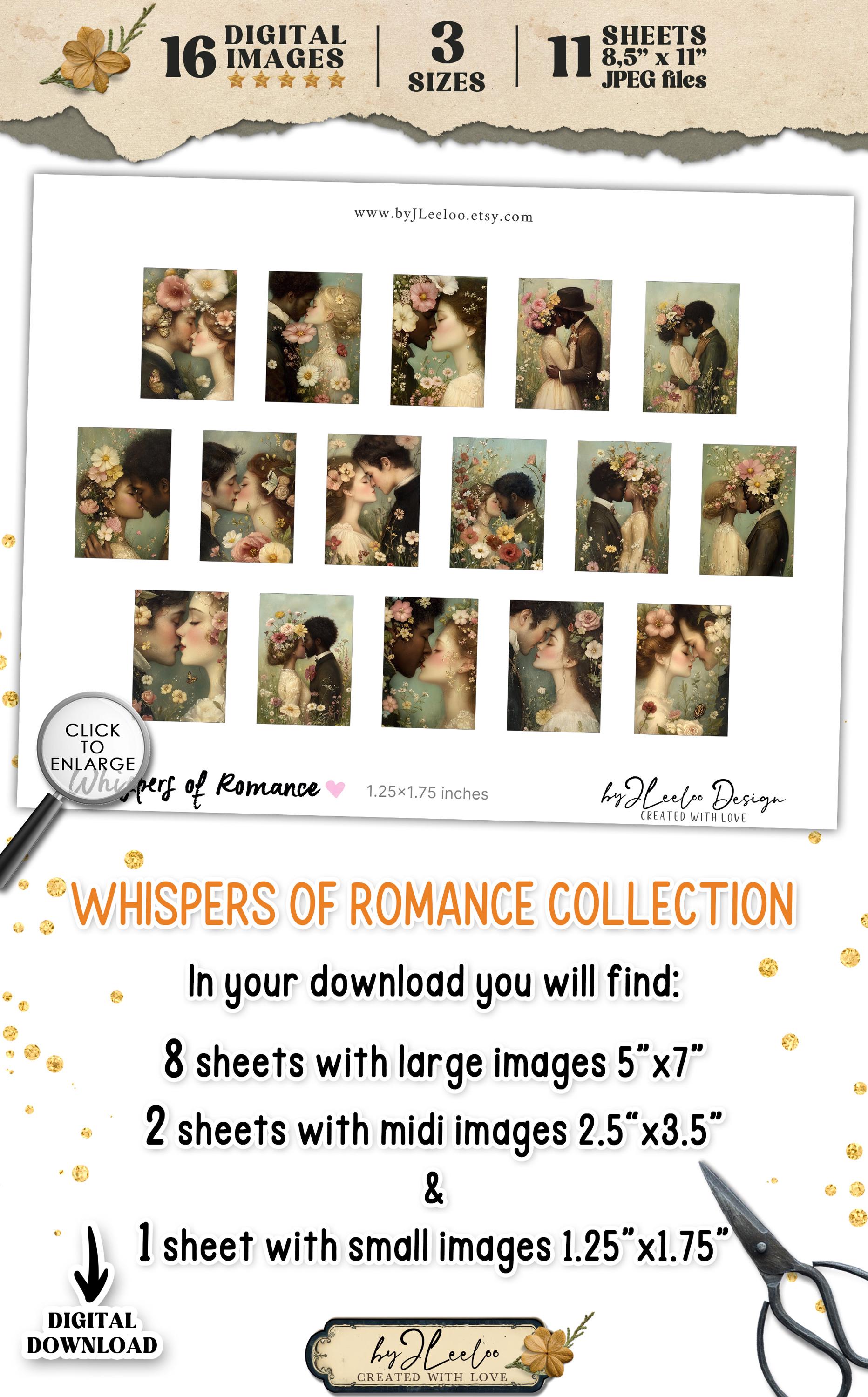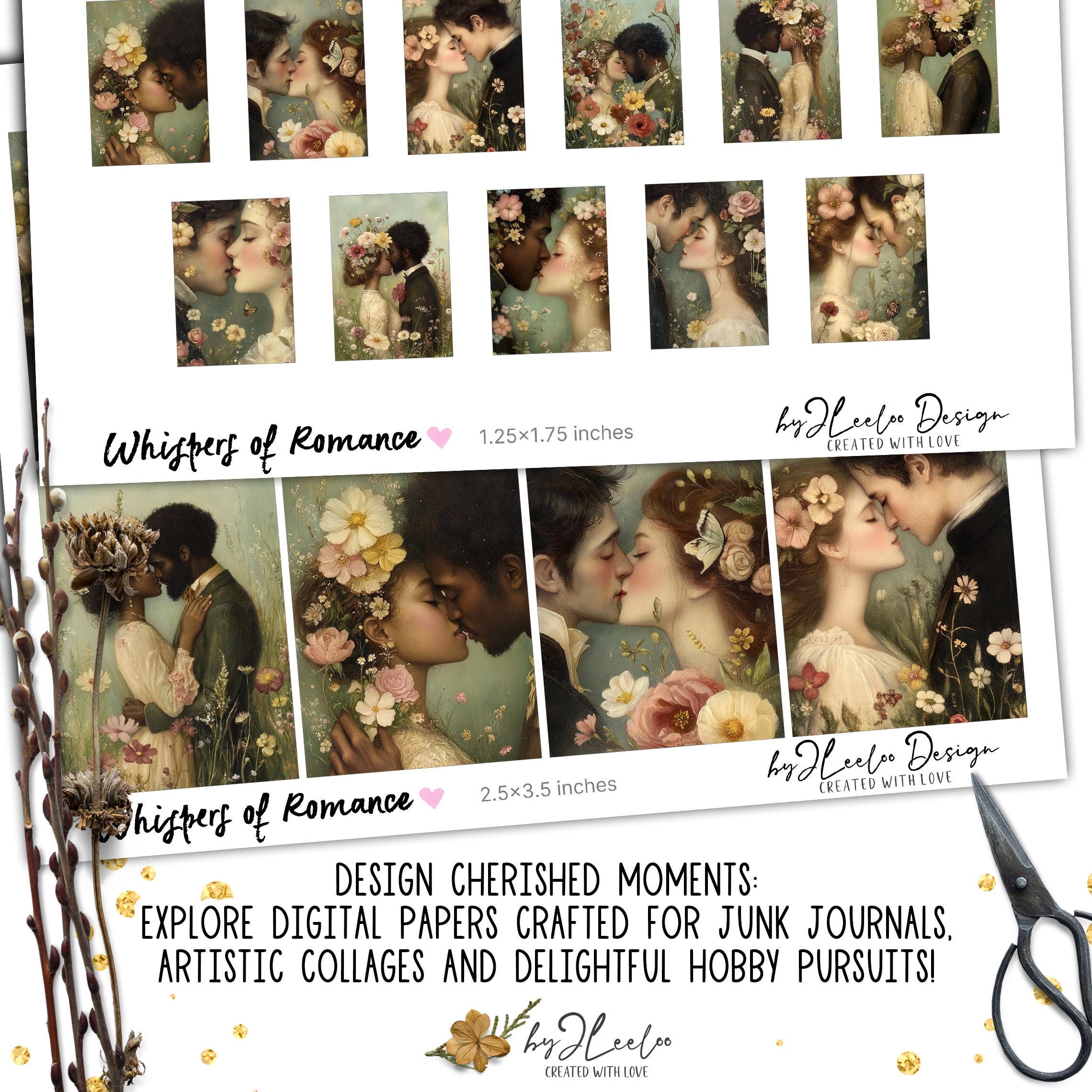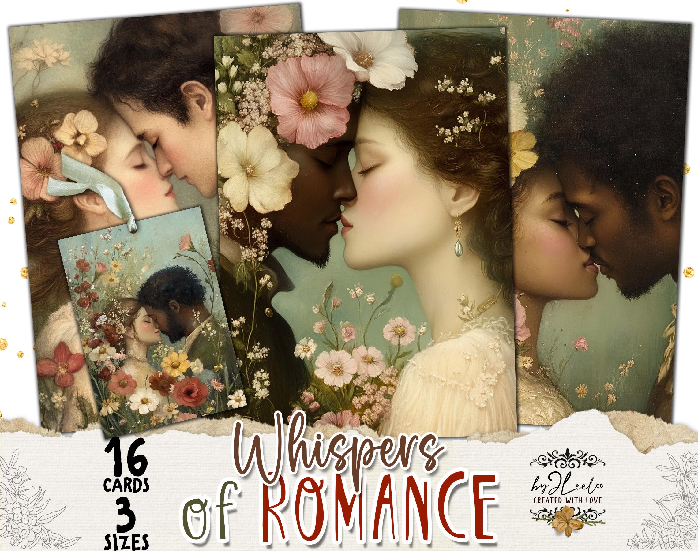WHISPERS of ROMANCE 3 sizes | vintage Valentine card junk journal printable illustration | Lovers postcard | Card making Scrapbook | pp916