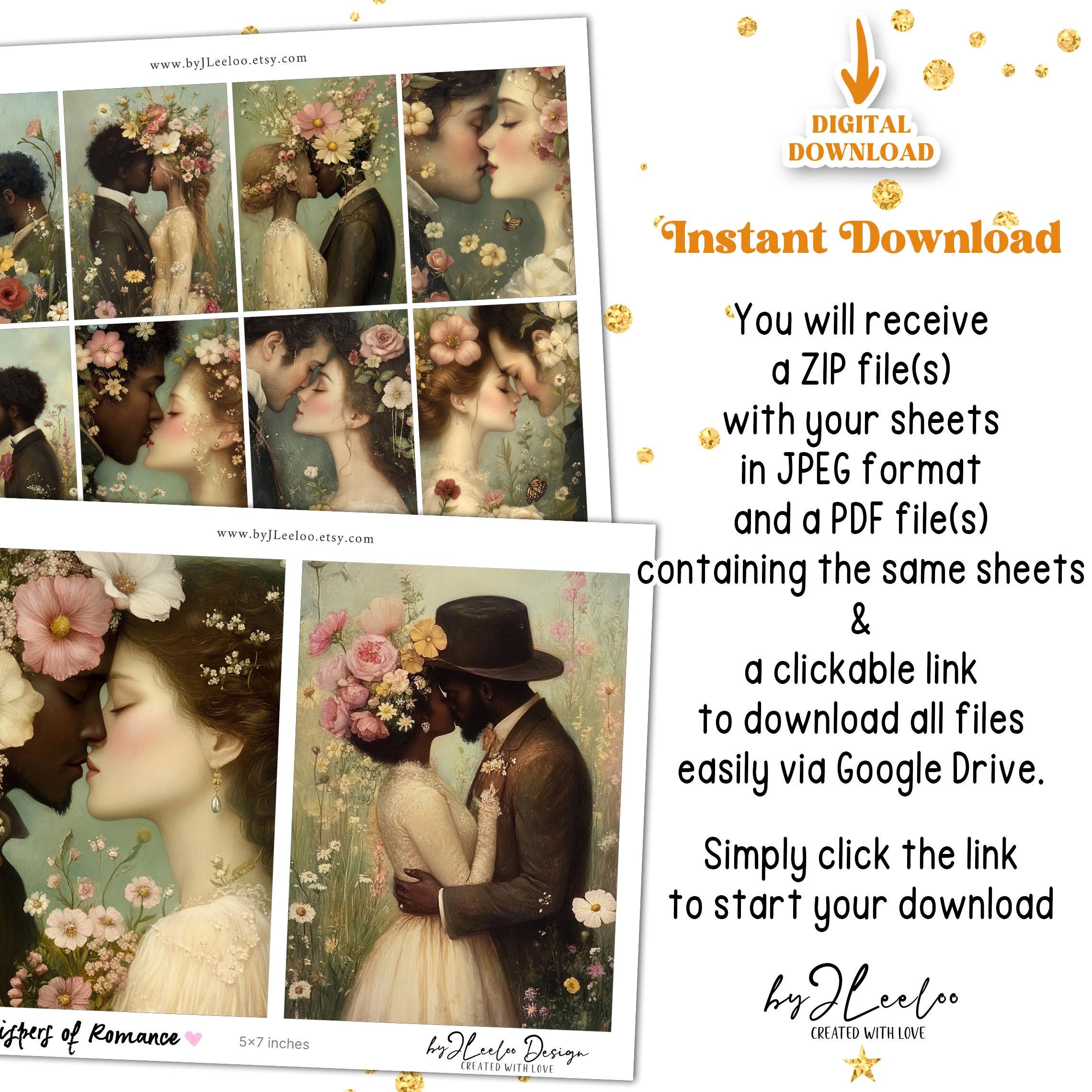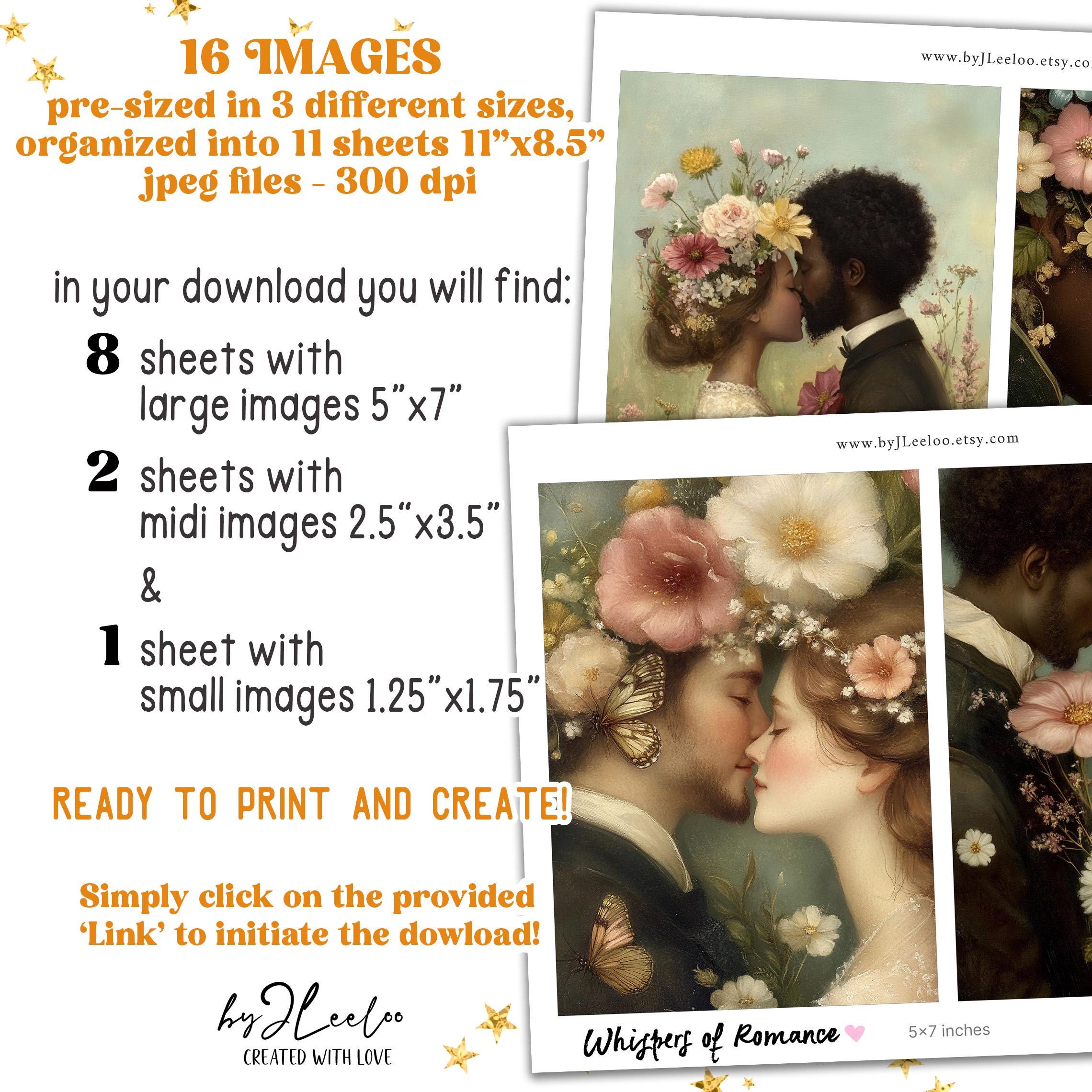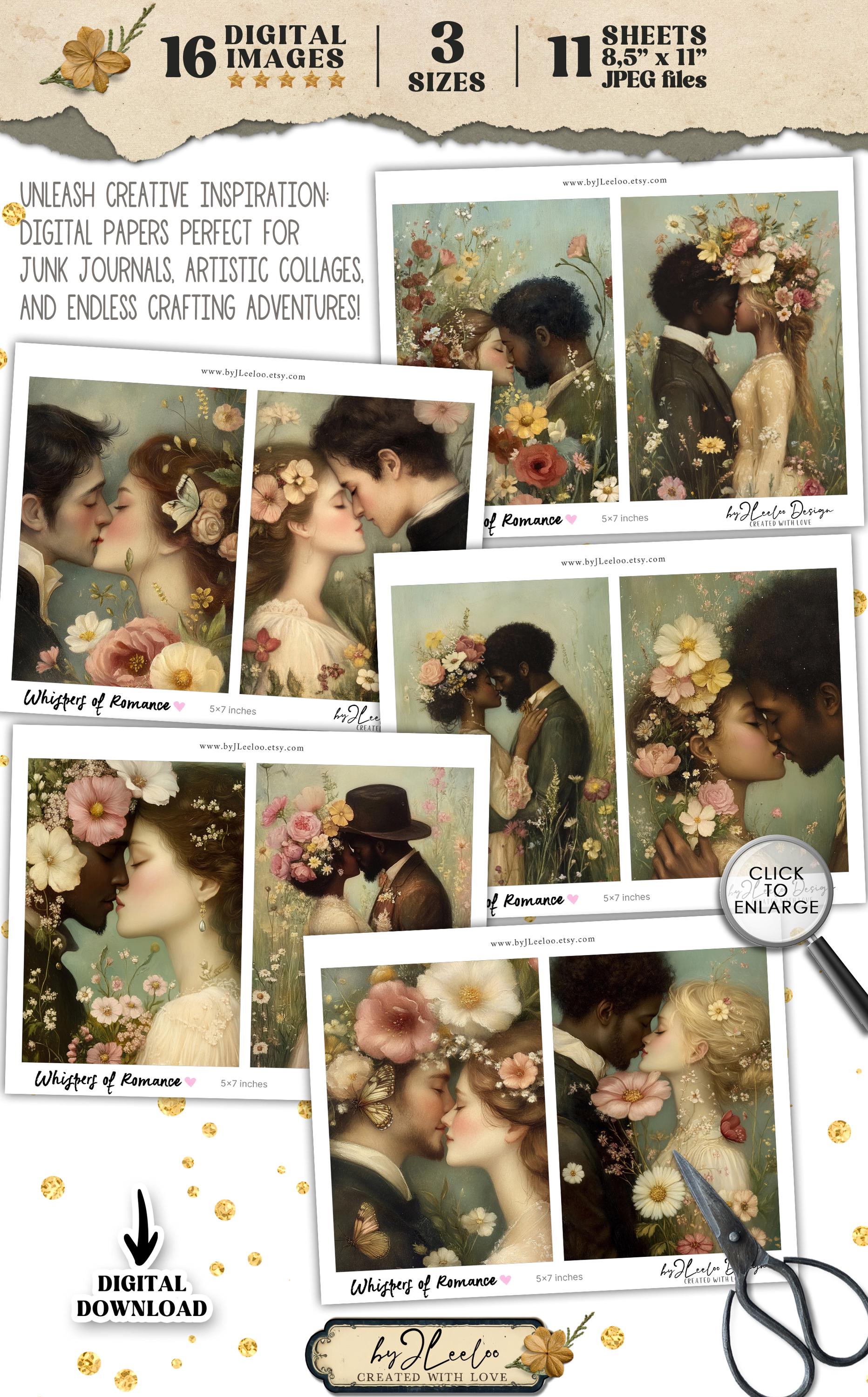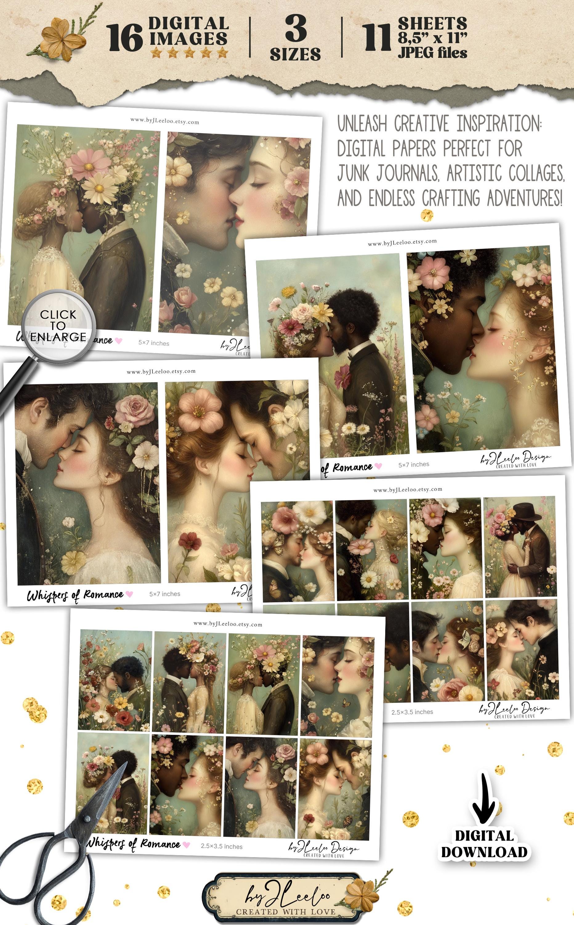 WHISPERS of ROMANCE 3 sizes | vintage Valentine card junk journal printable illustration | Lovers postcard | Card making Scrapbook | pp916