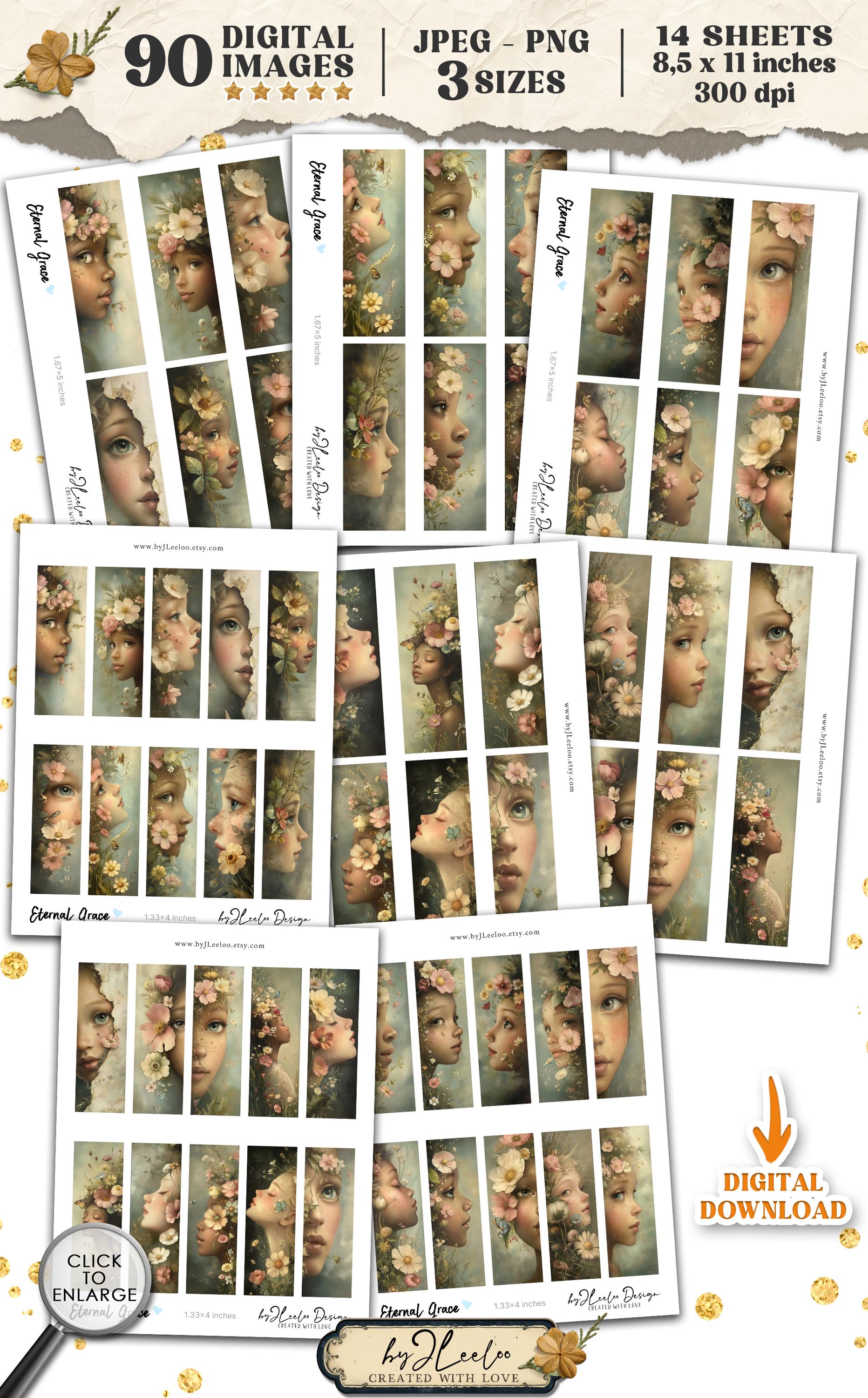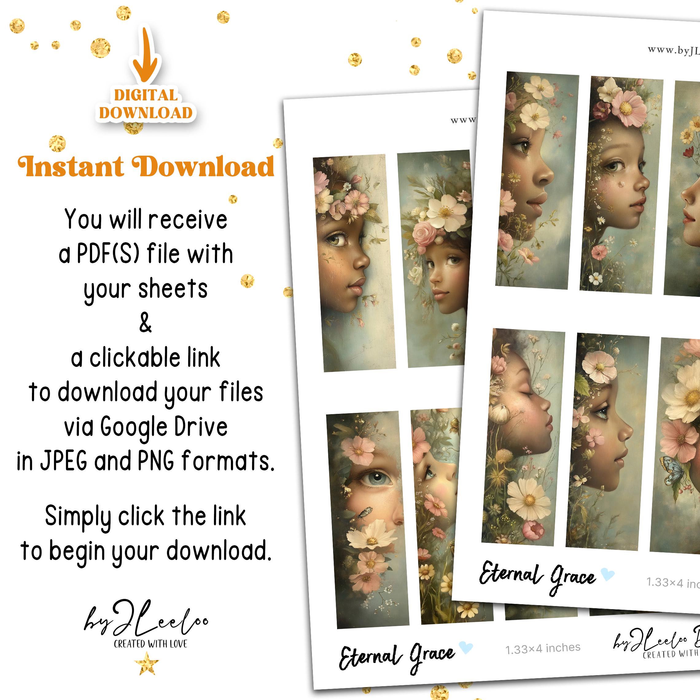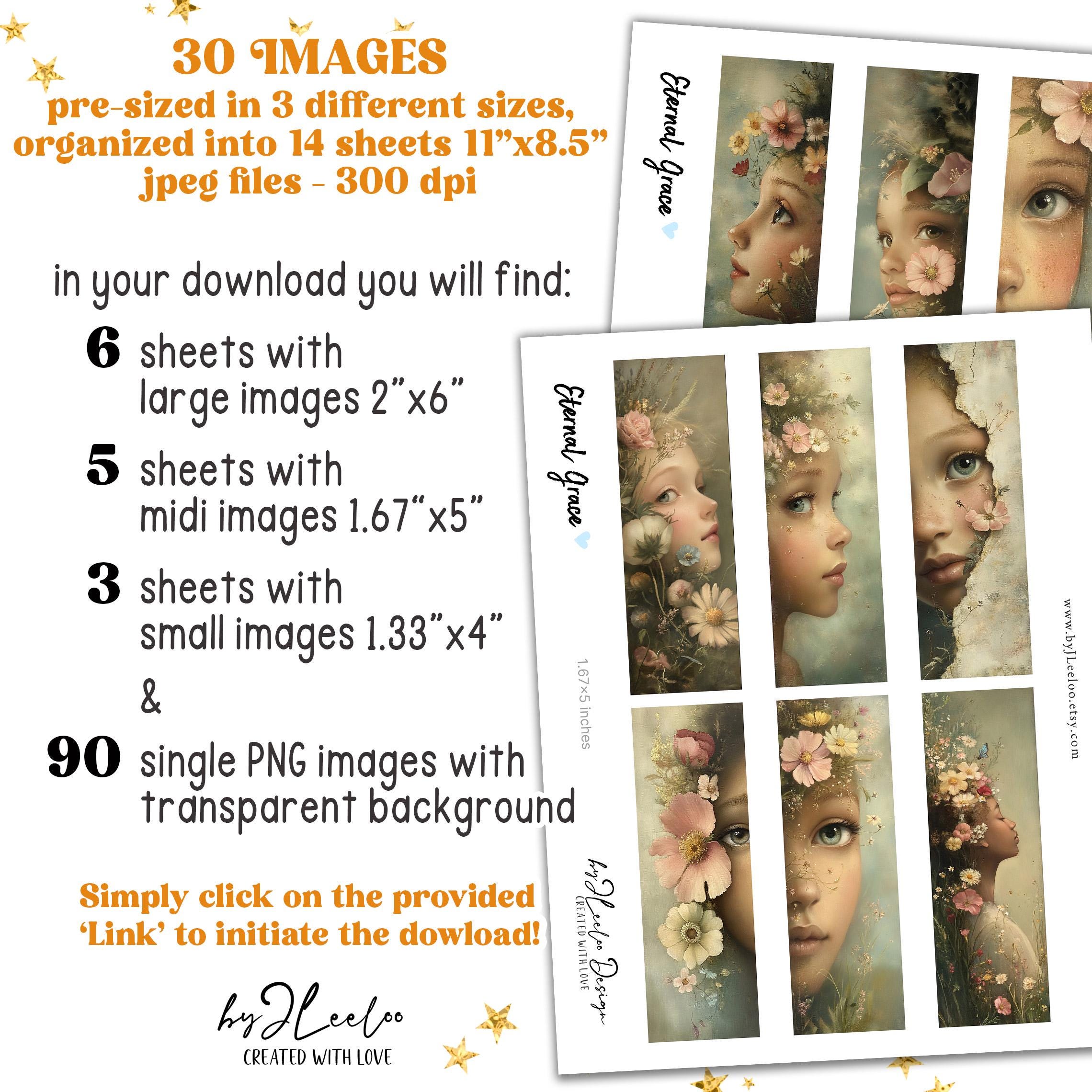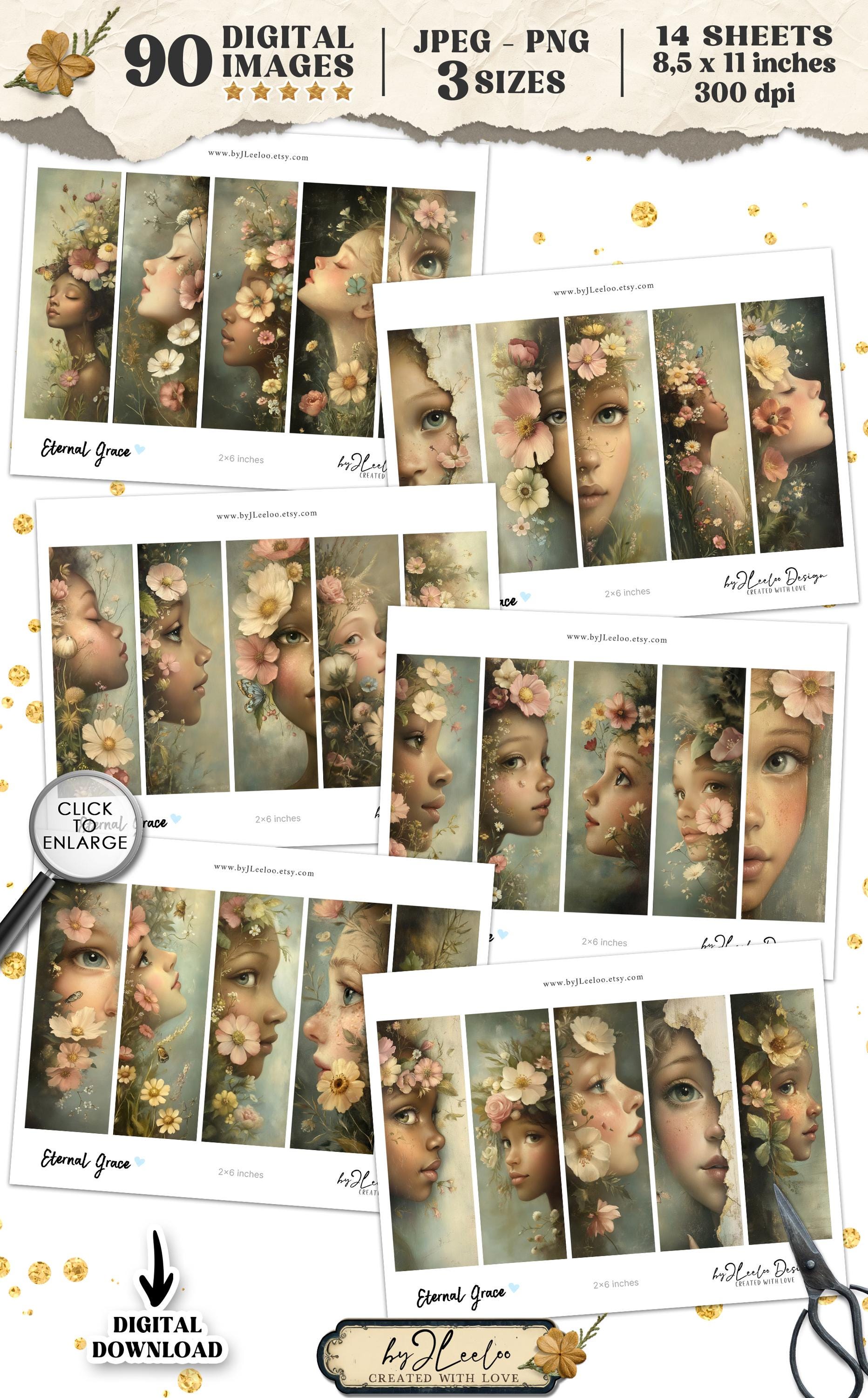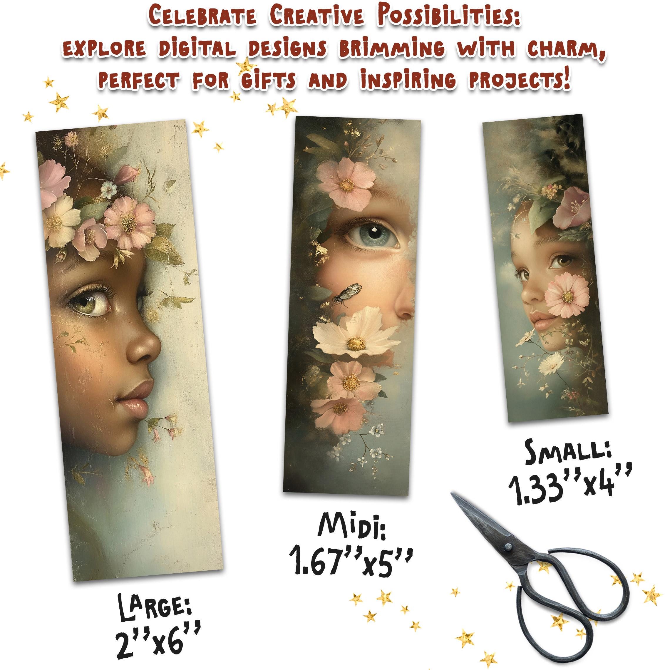 This collection is all about soft colors, sweet floral vibes, and dreamy glimpses of lovely young faces. Designed in 3 versatile sizes, including the larger 6x2 inches, these images are perfect for bookmarks, jewelry-making, scrapbooking, card-making, and so much more!