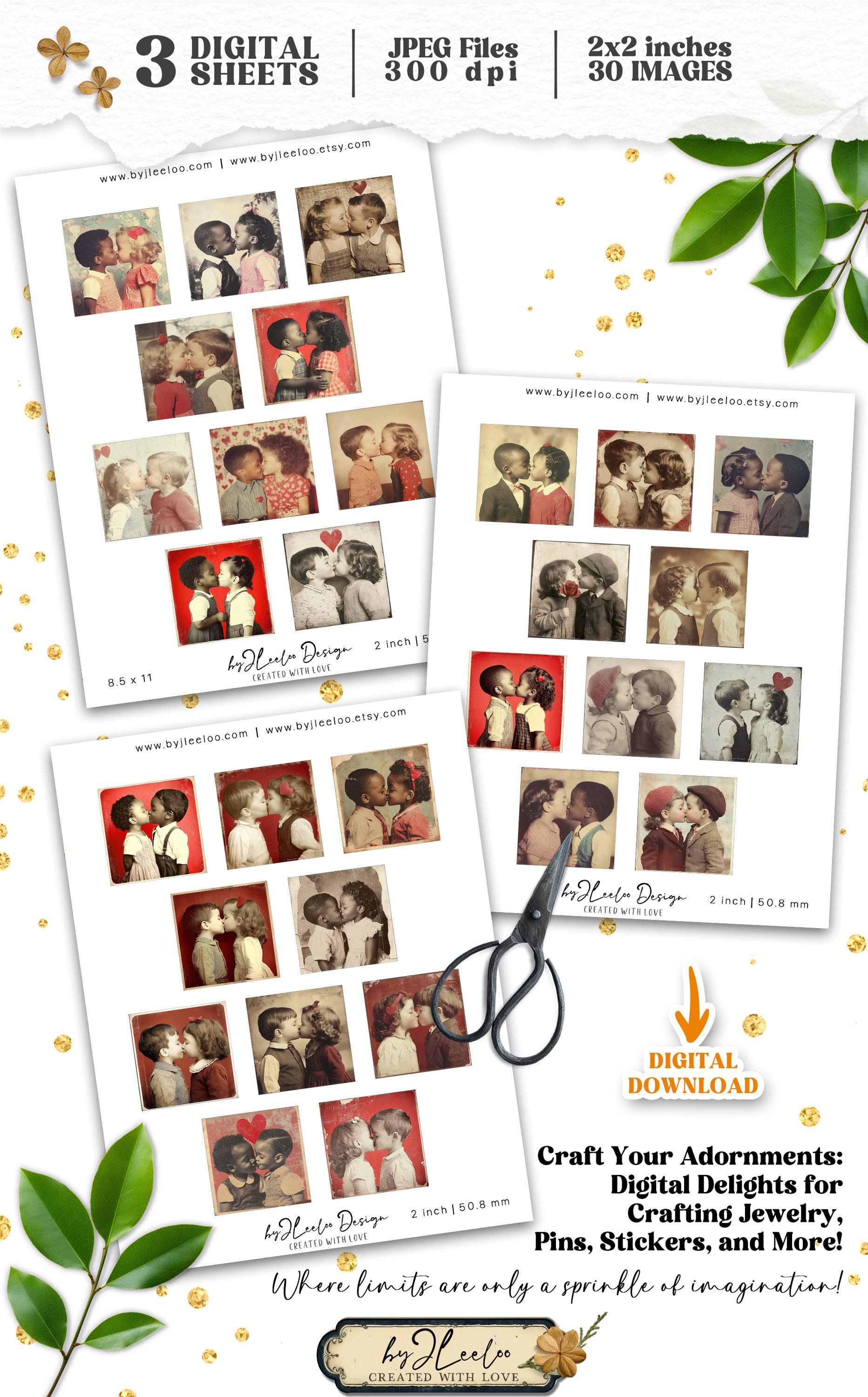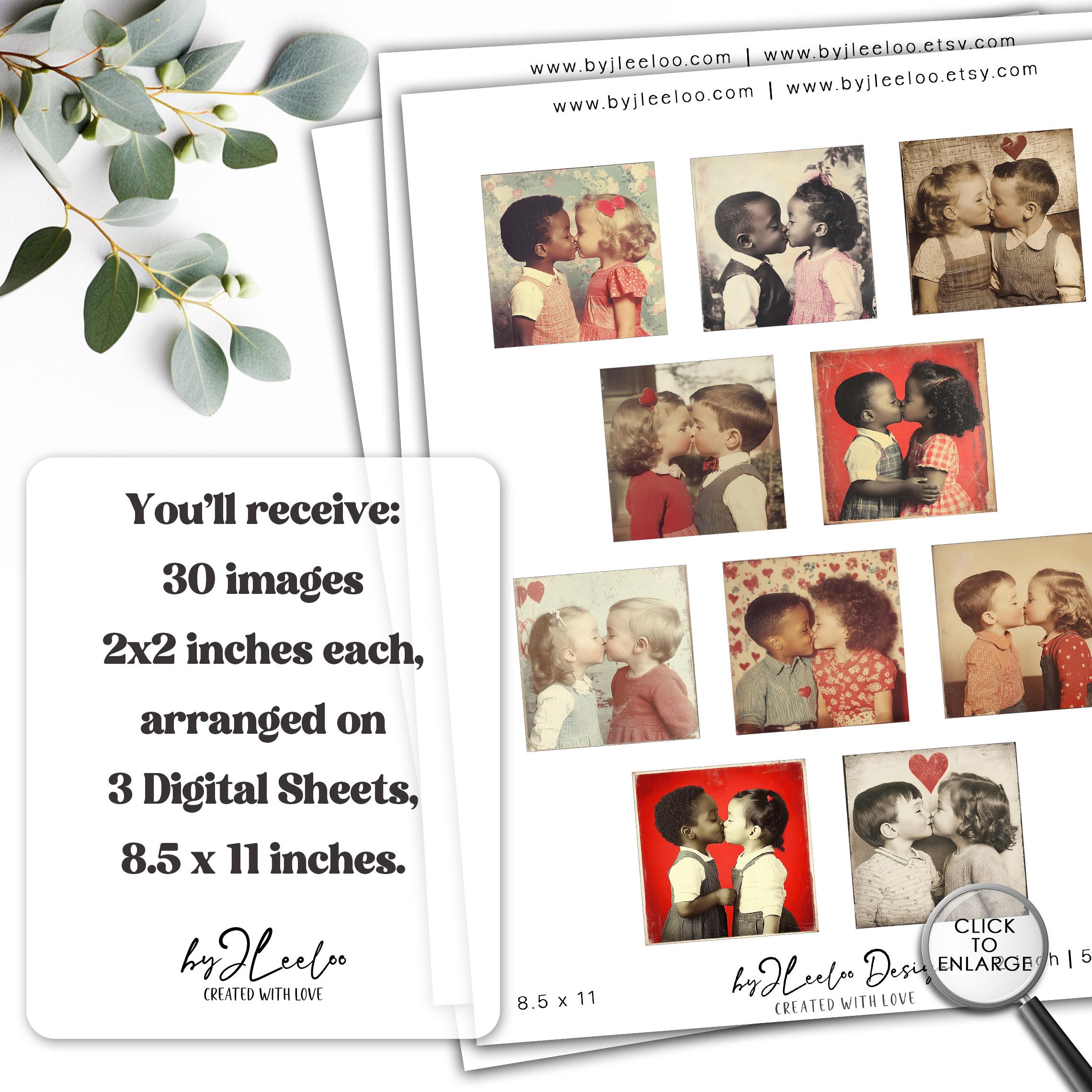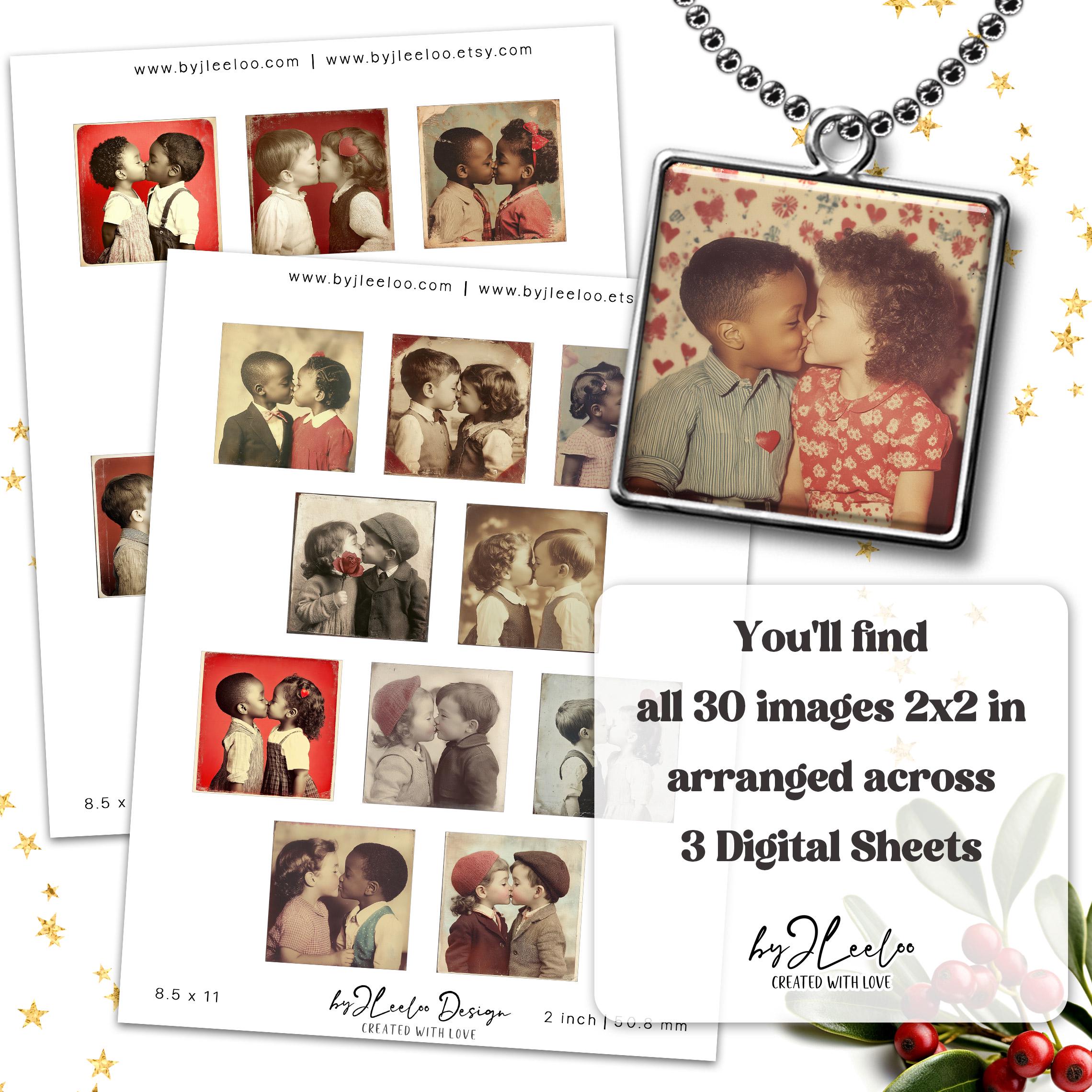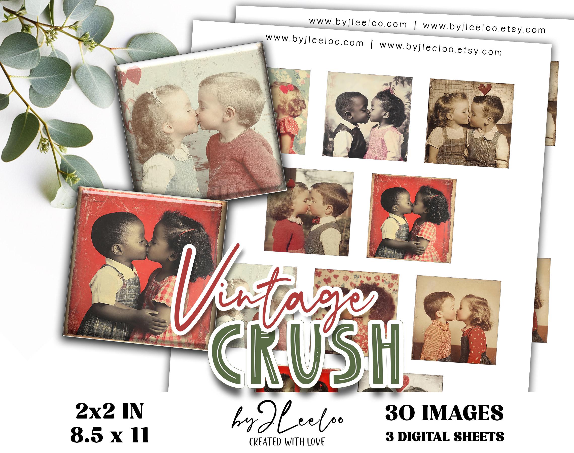 VINTAGE CRUSH 2x2 inch printable | Valentine Junk Journal Scrapbooking | Square Pendant Cabochon Trays Glass Bezels | Retro Ephemera | qu621