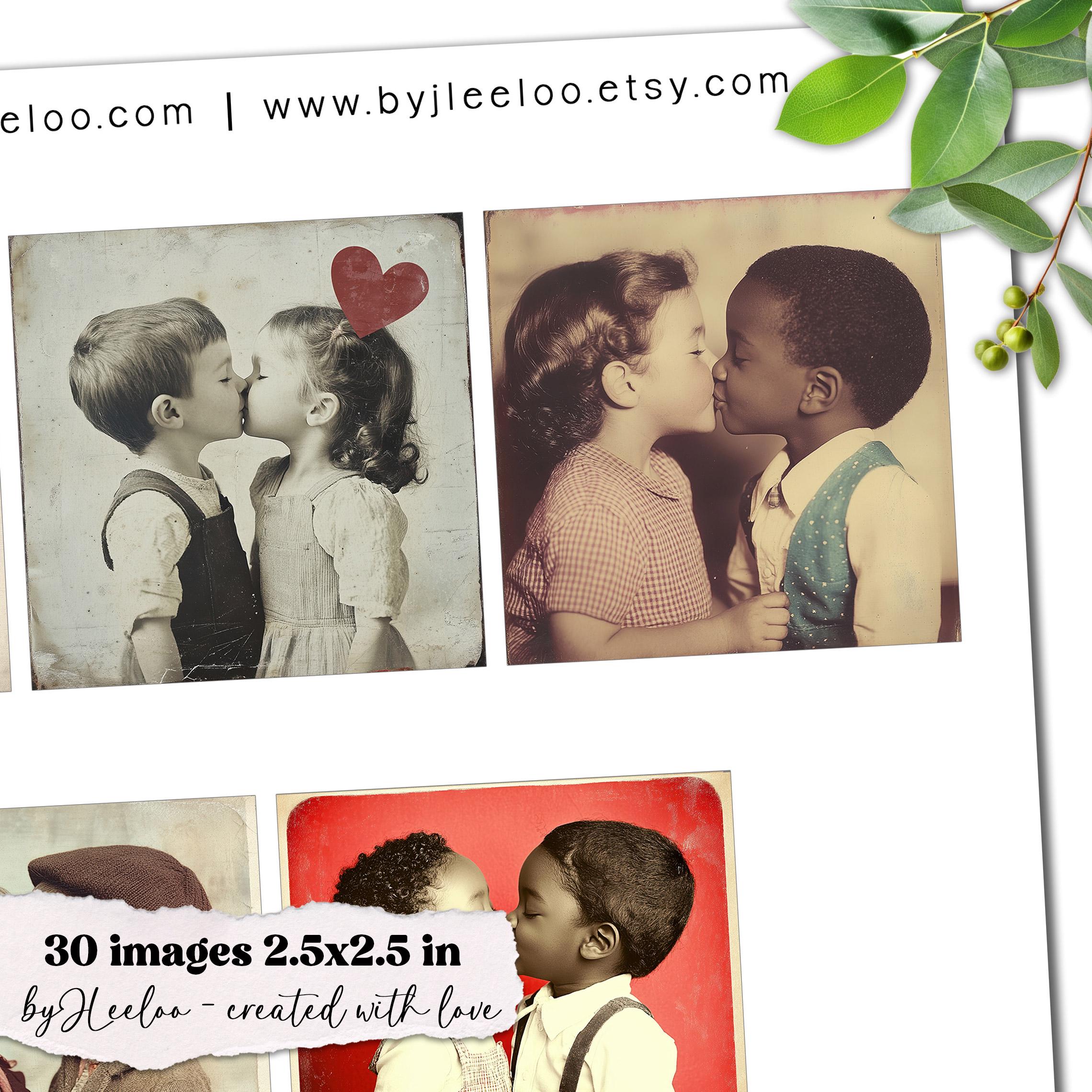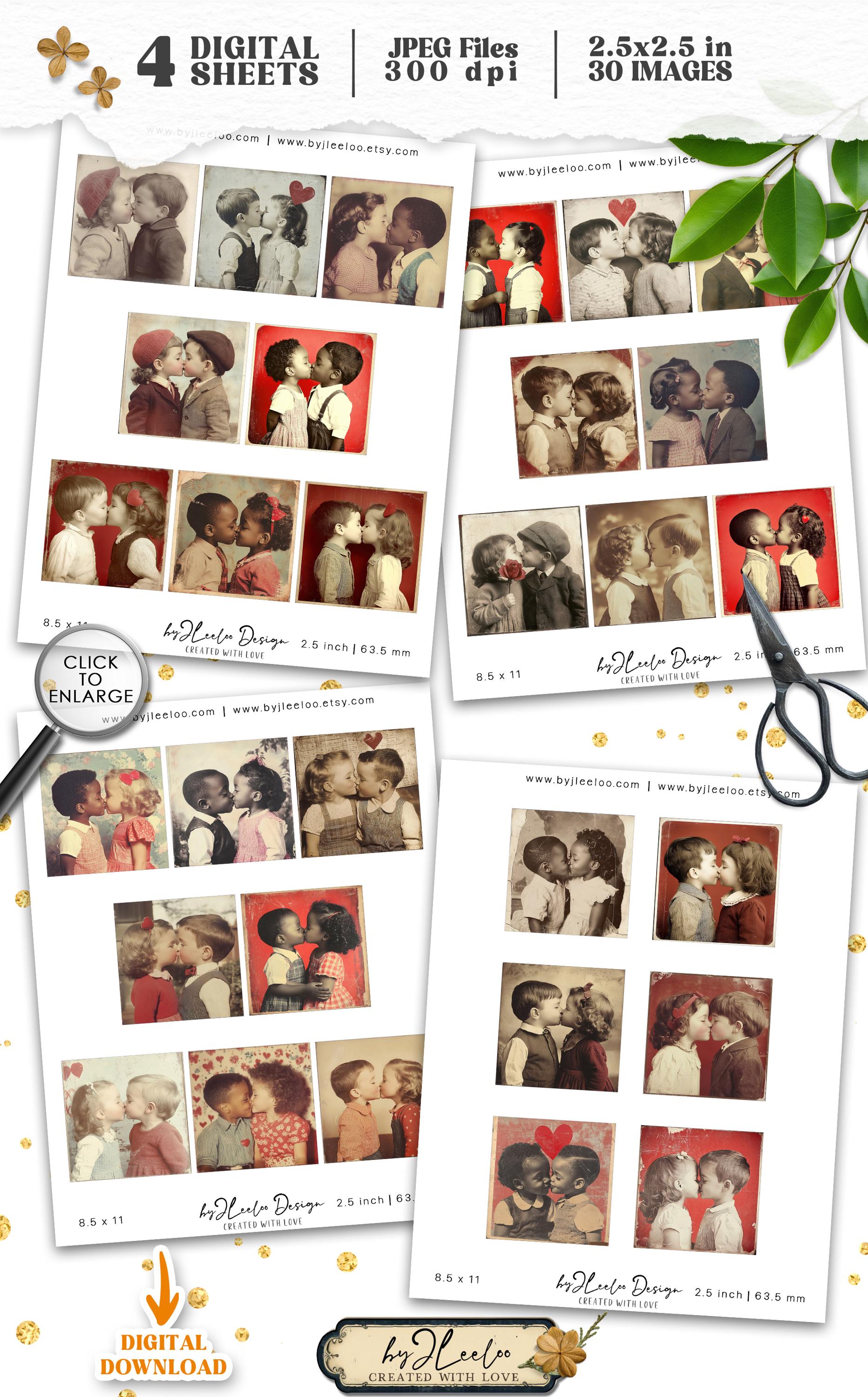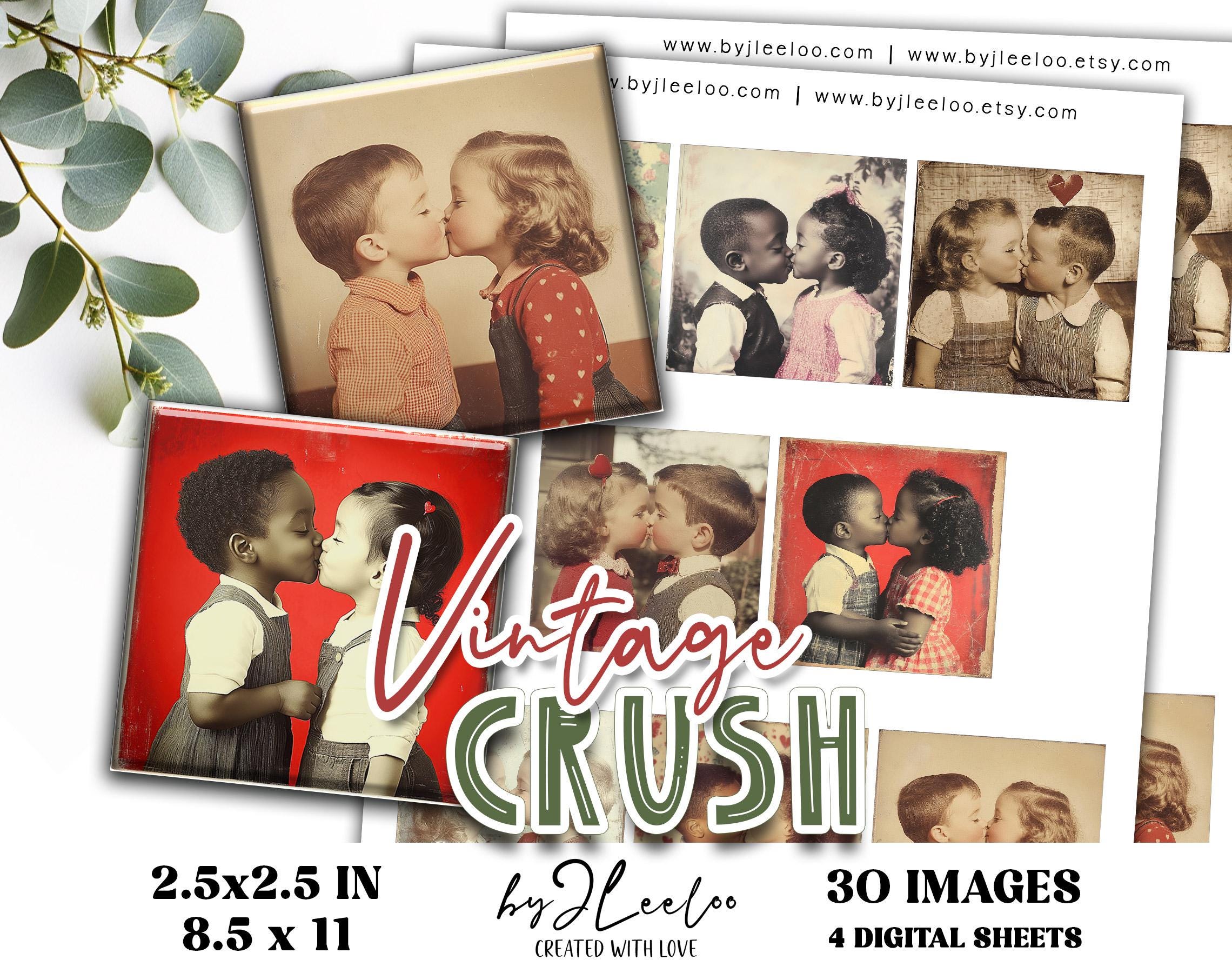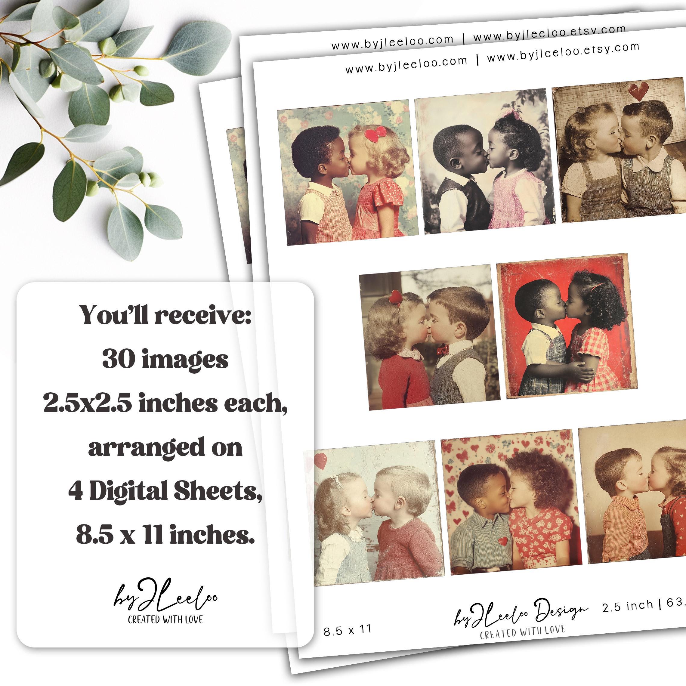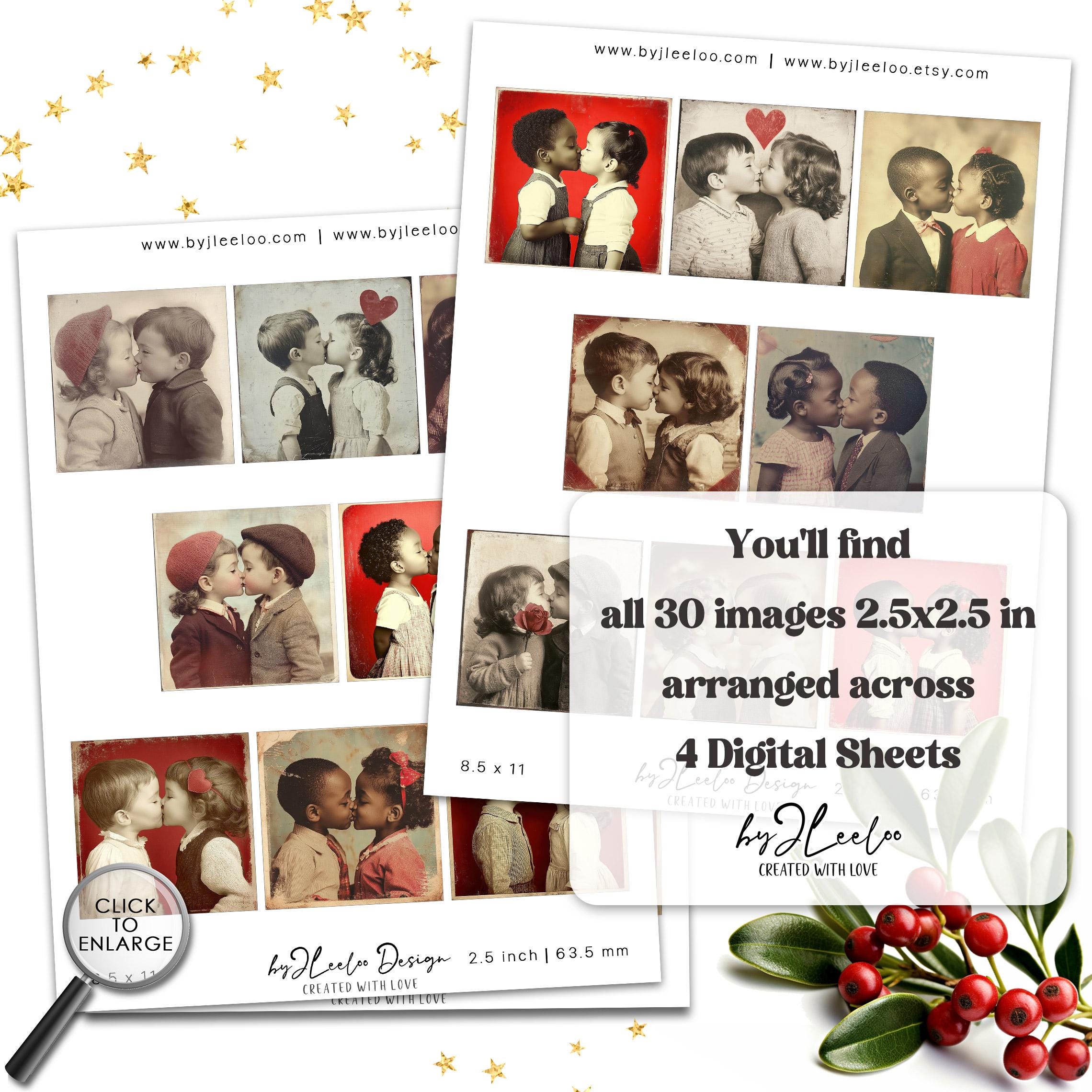 VINTAGE CRUSH 2.5x2.5 inch printable | Nostalgic Love Valentine’s Day Ephemera | Junk Journal Kiss Romantic Retro Collage Squares | qu622
