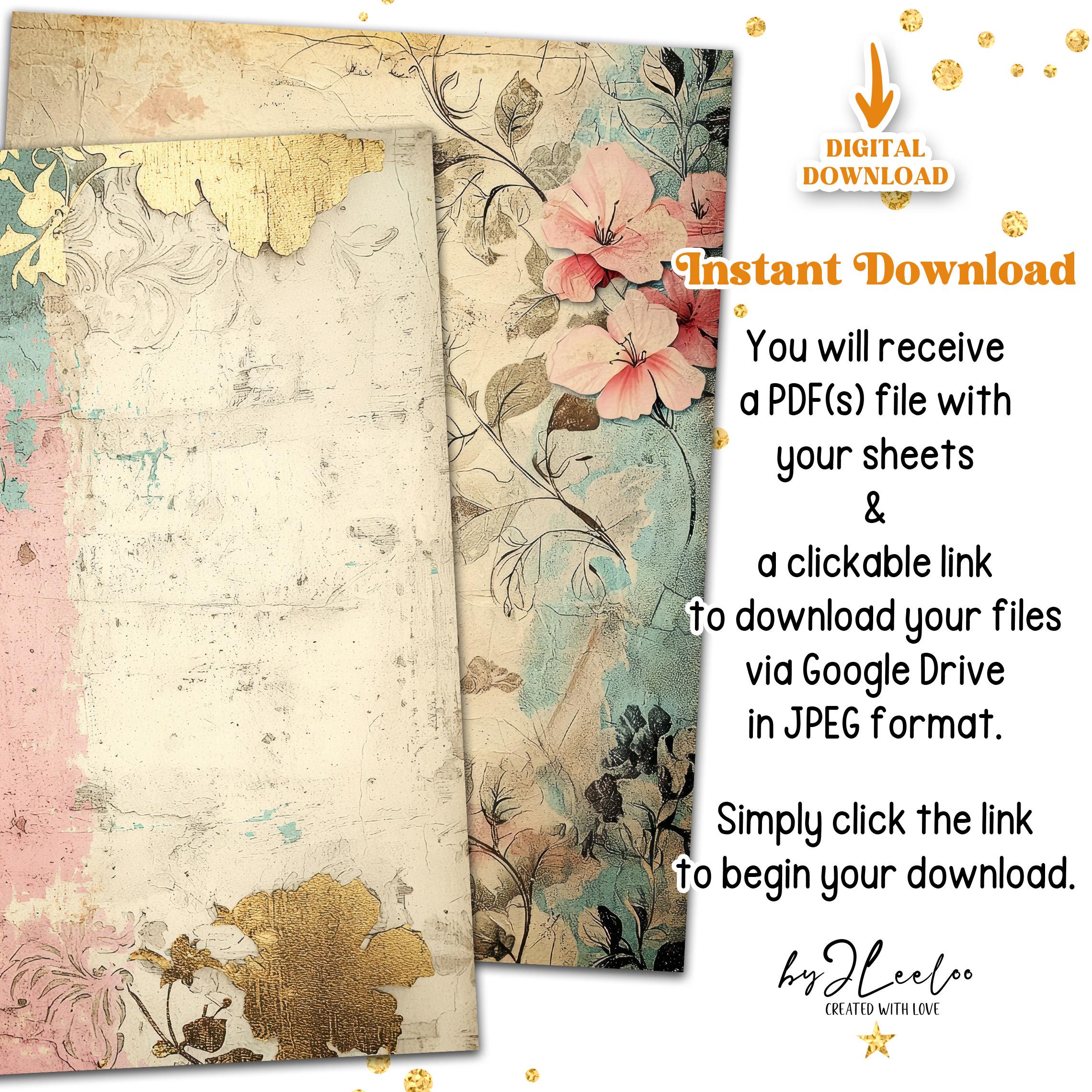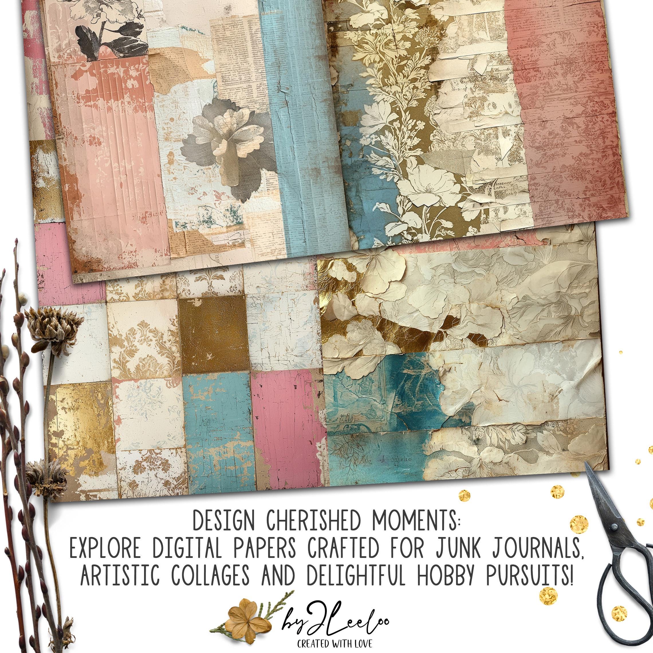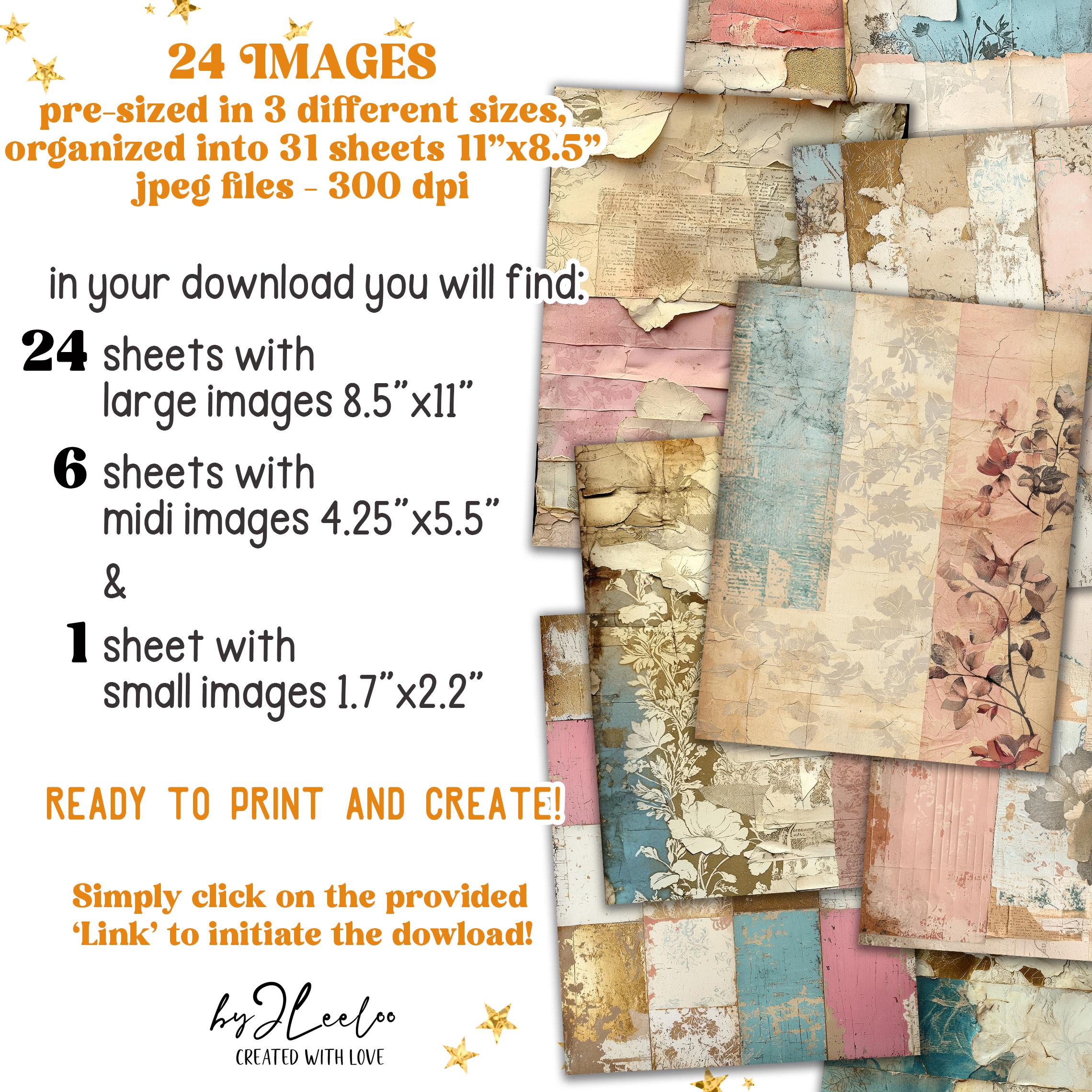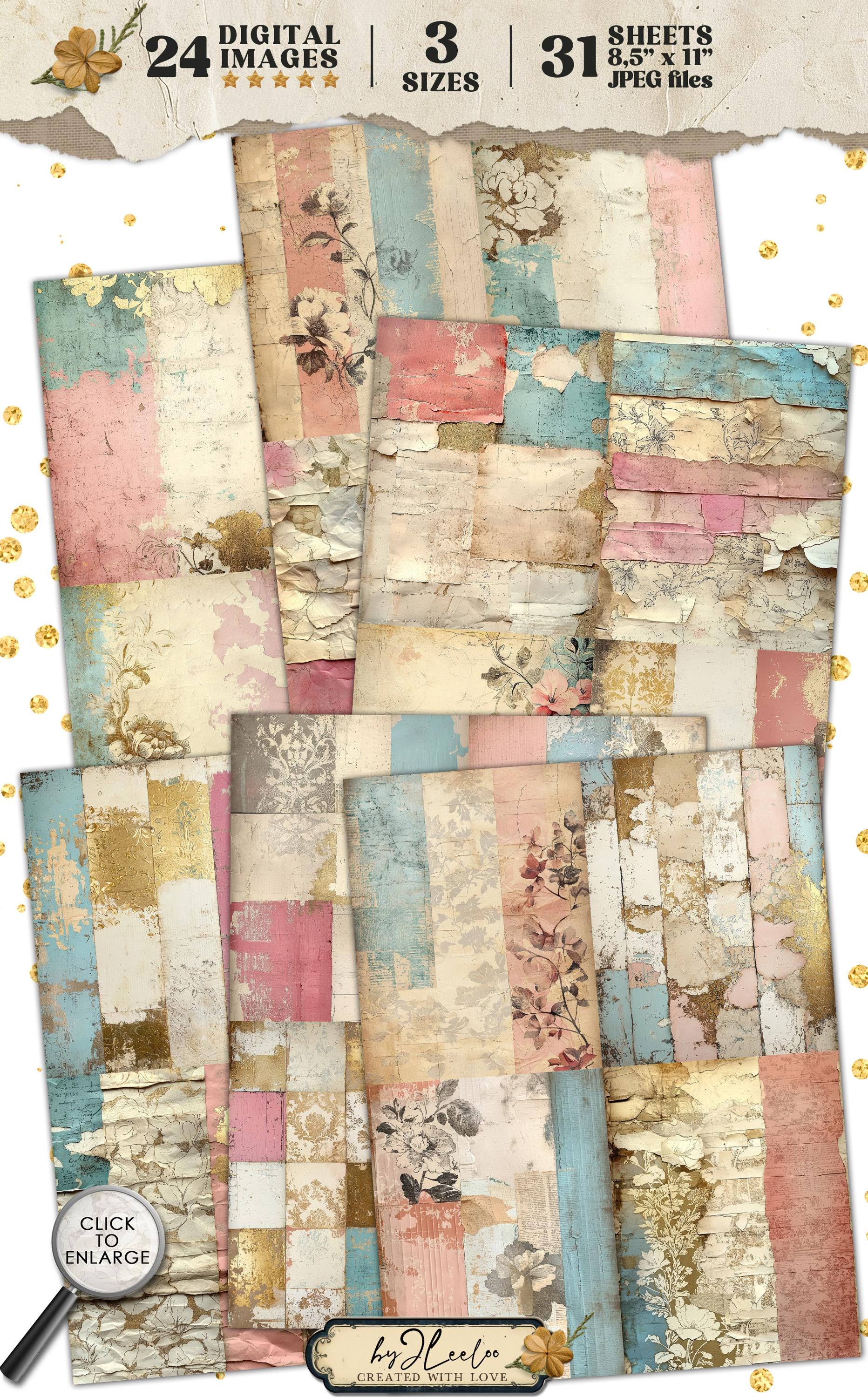 PINK COLLAGE 24 pastel background 3 Sizes | Junk Journal Collage Pages | Backdrop Rustic papers | scrapbook digital | Commercial Use | pp923