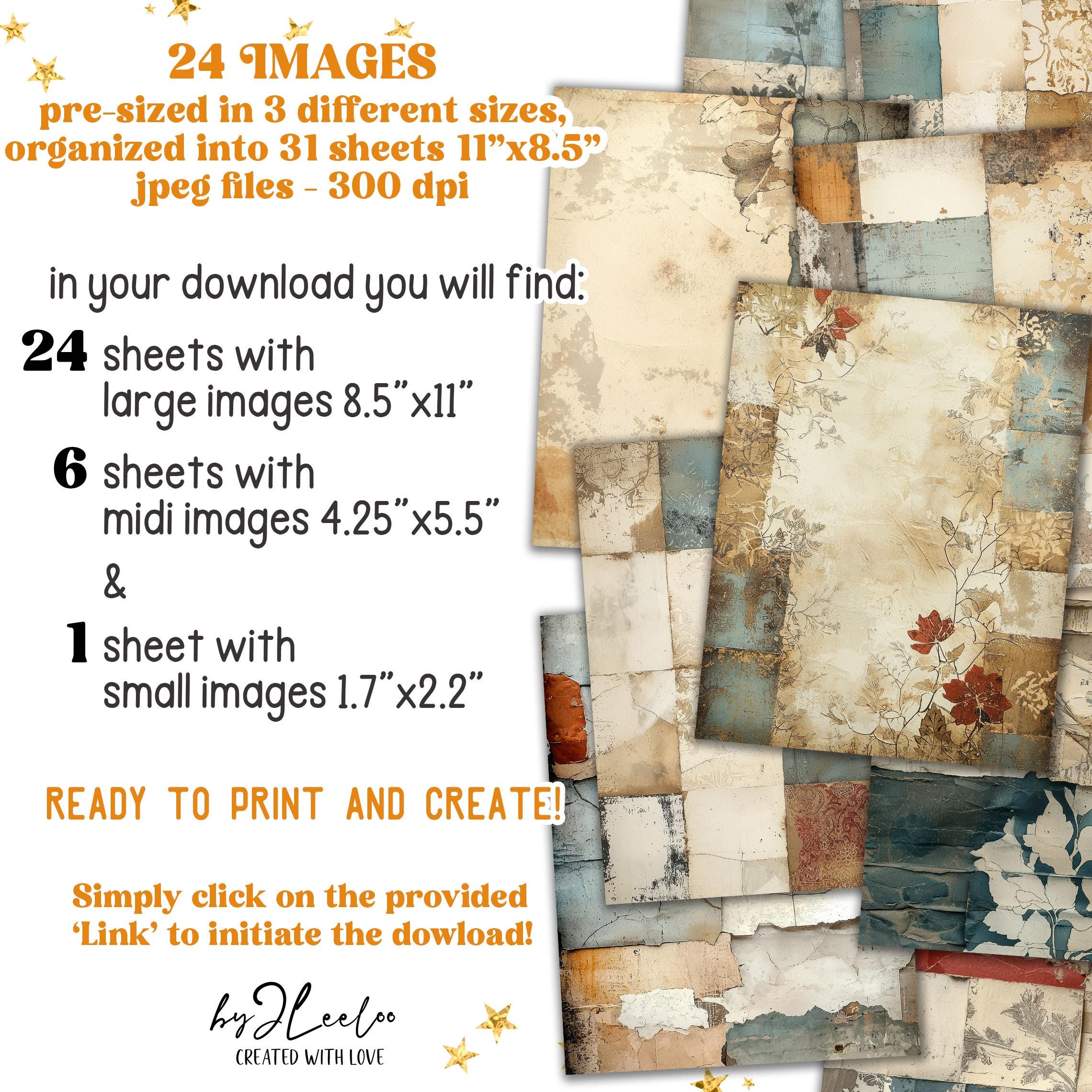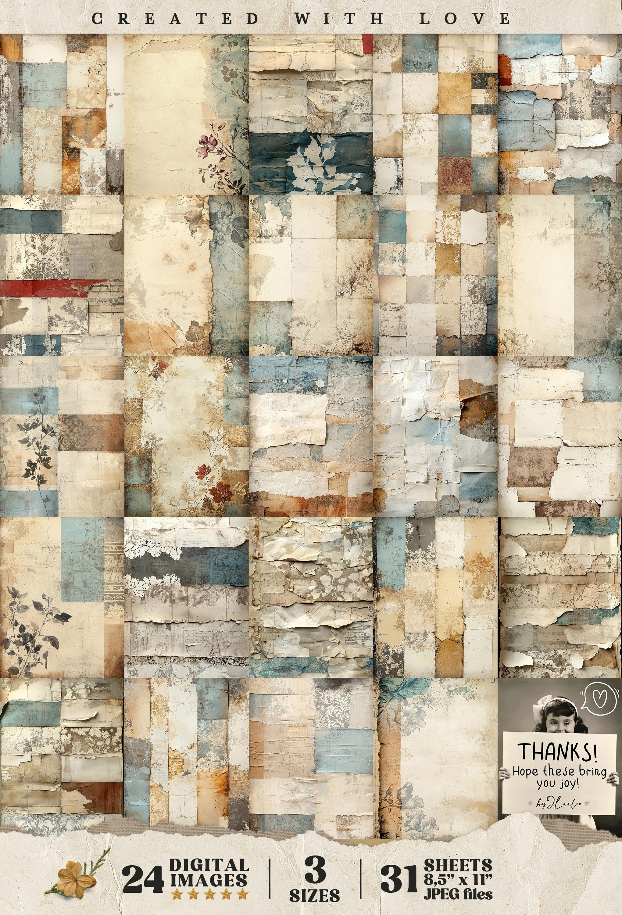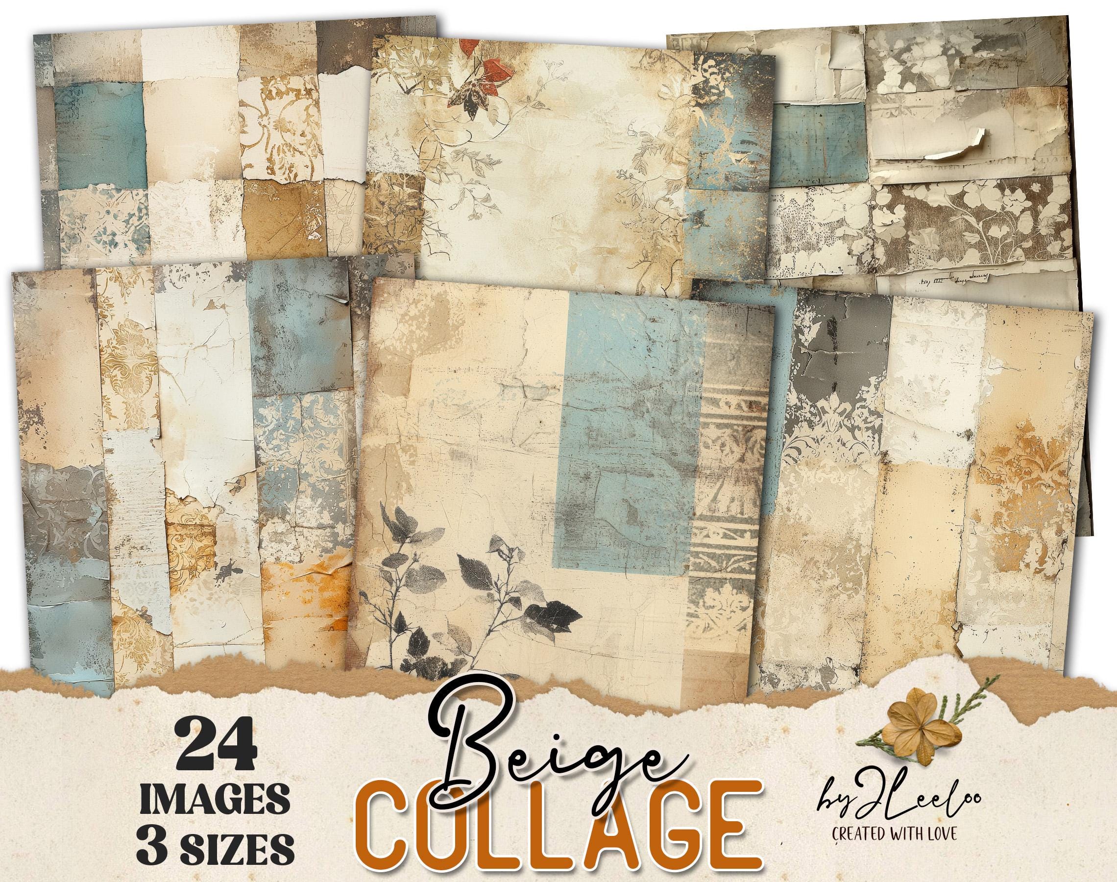 BEIGE COLLAGE 24 neutral background 3 Sizes | Junk Journal Pages | Backdrop Distressed papers | scrapbook digital | Commercial Use | pp921