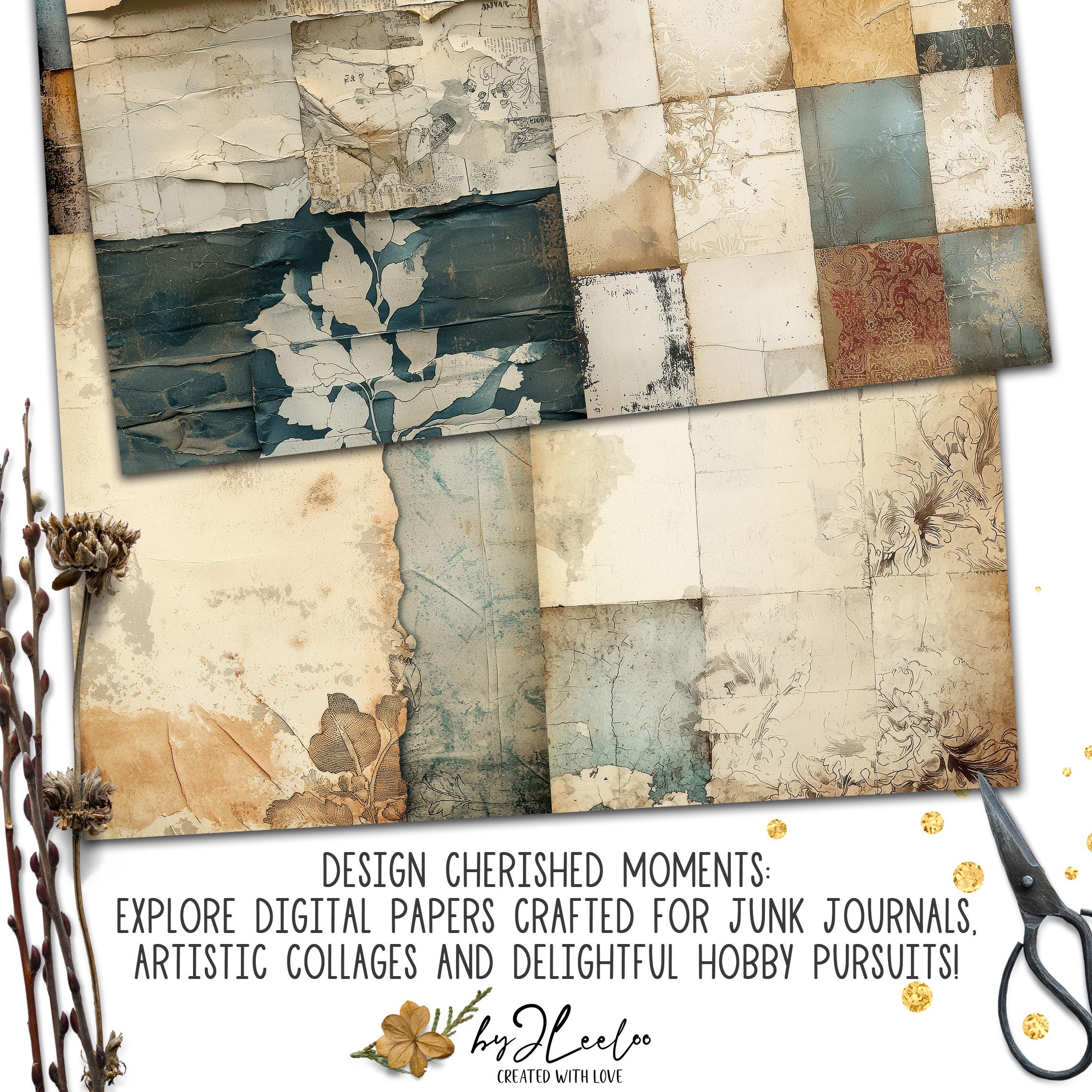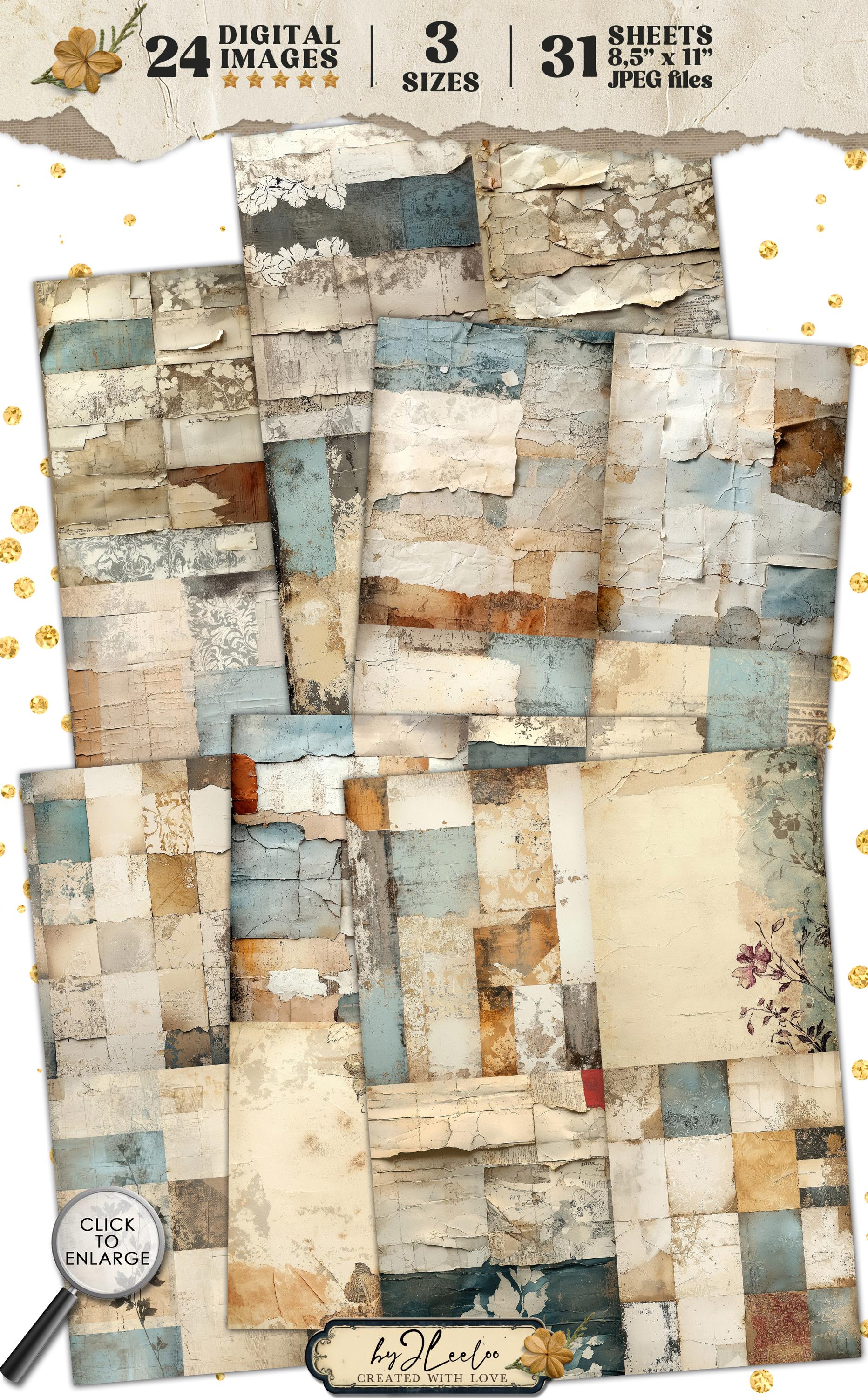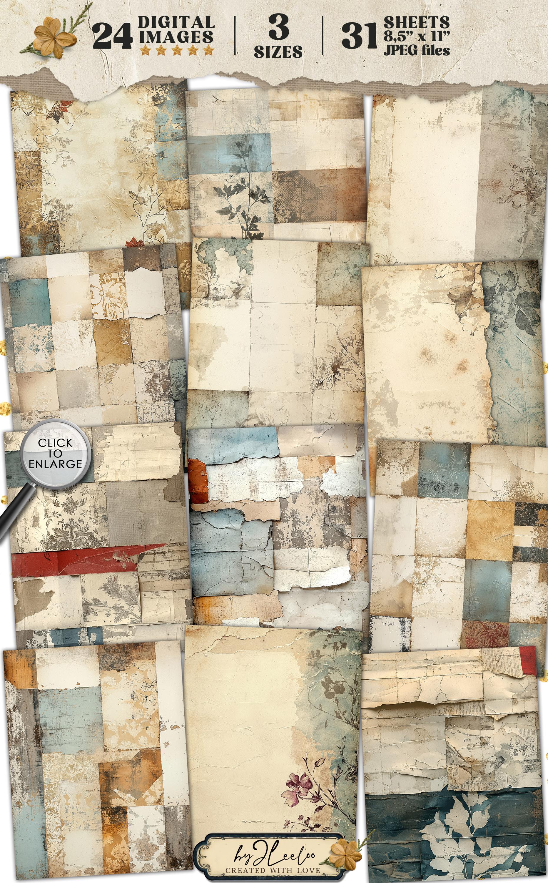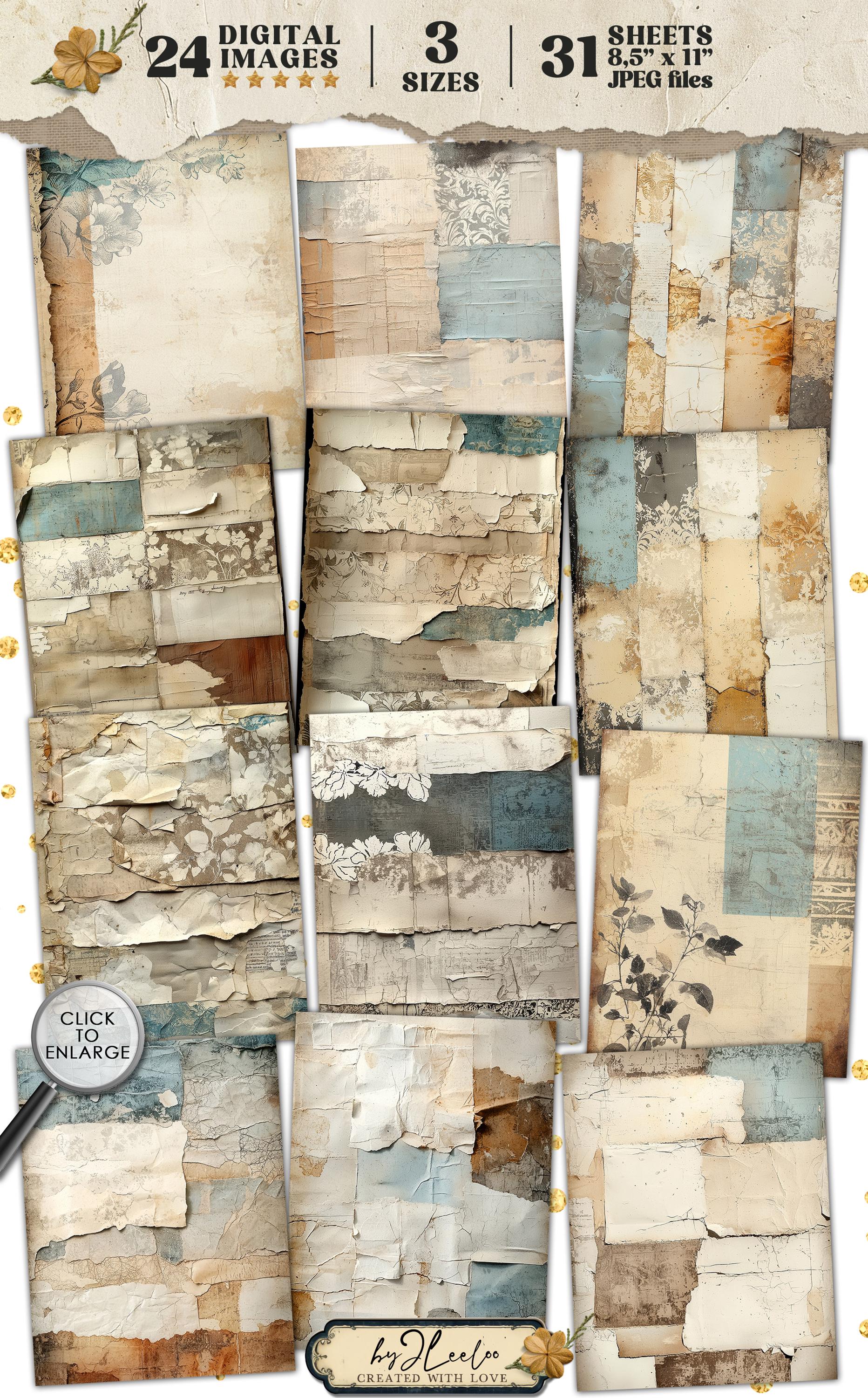 BEIGE COLLAGE 24 neutral background 3 Sizes | Junk Journal Pages | Backdrop Distressed papers | scrapbook digital | Commercial Use | pp921