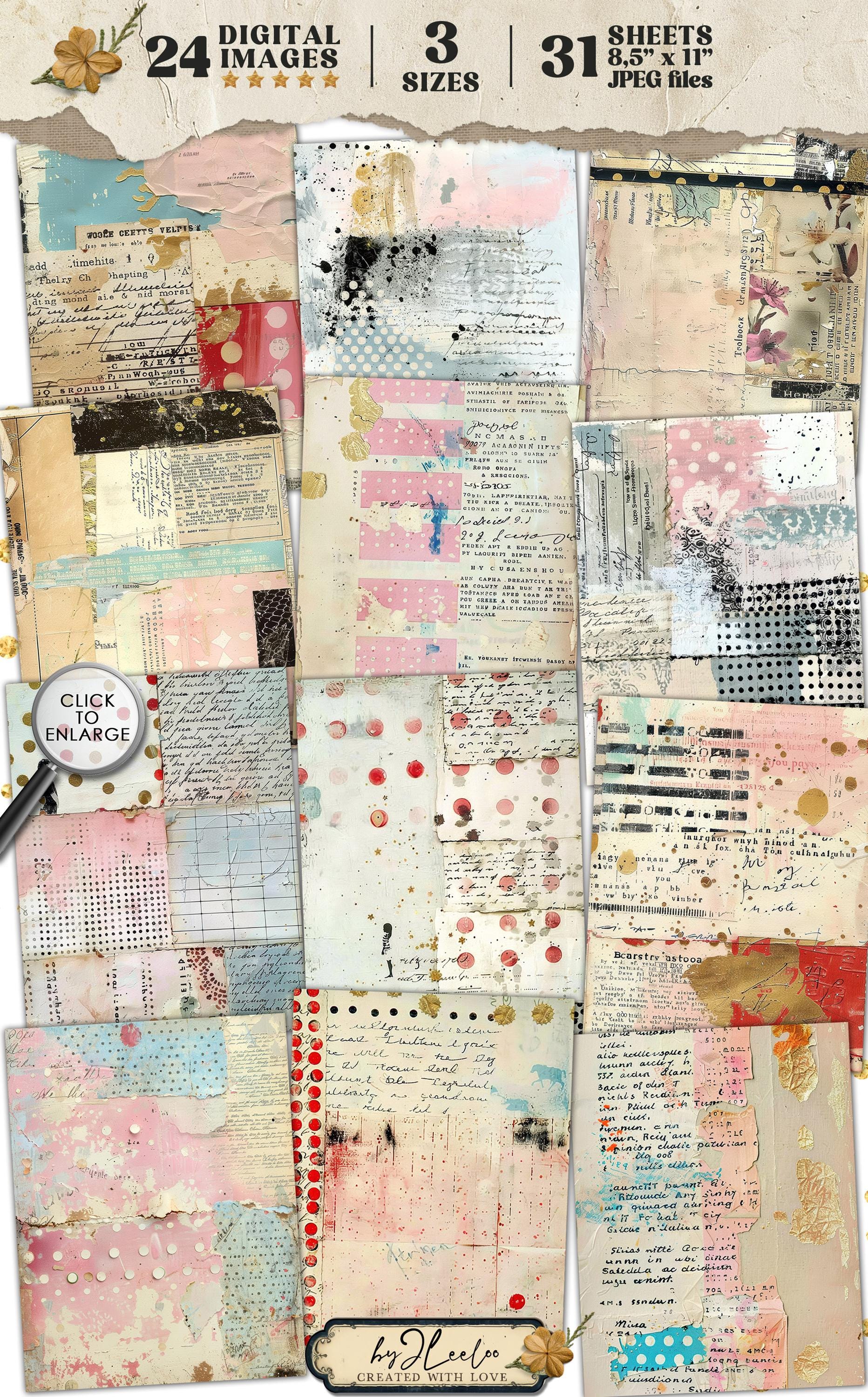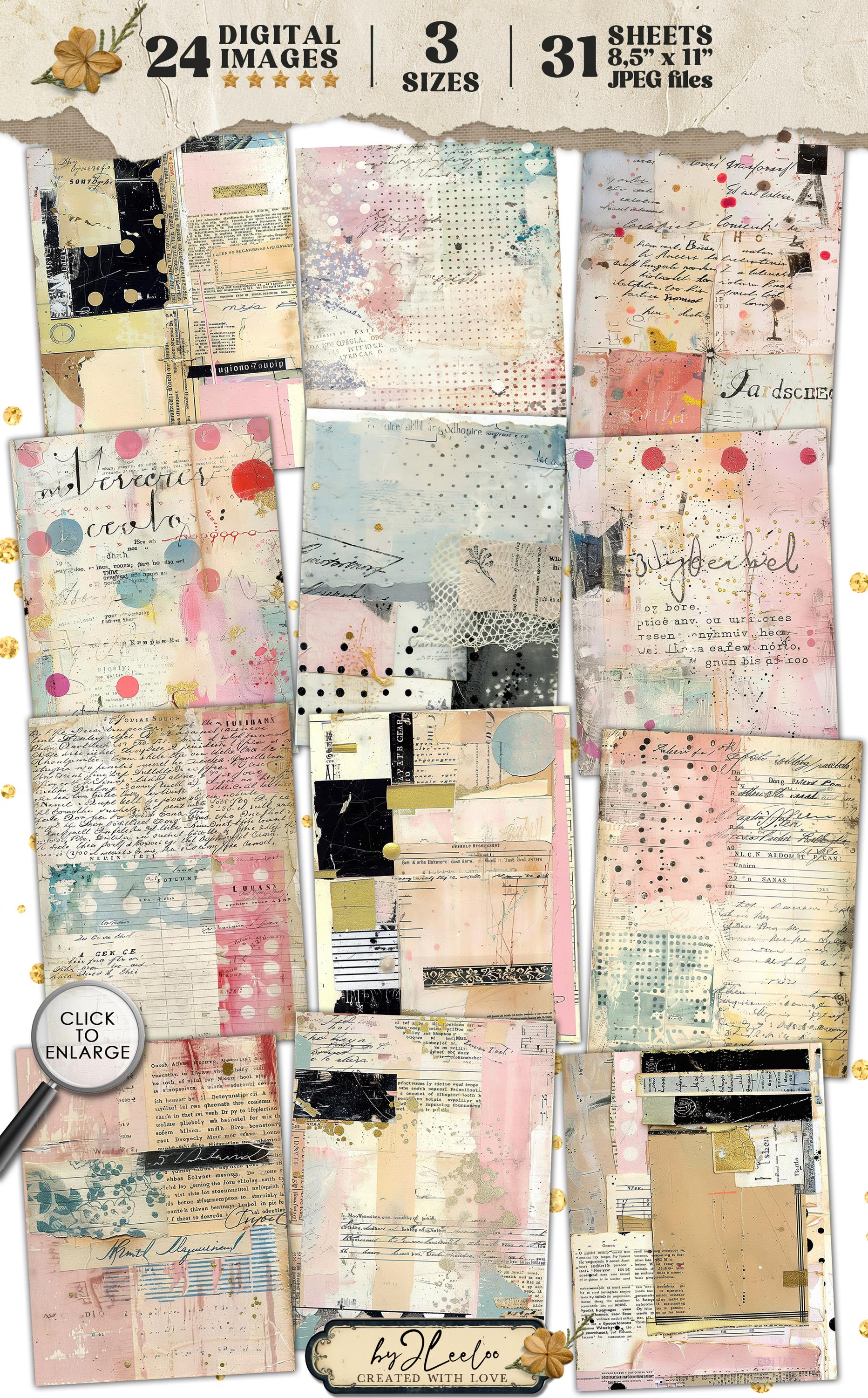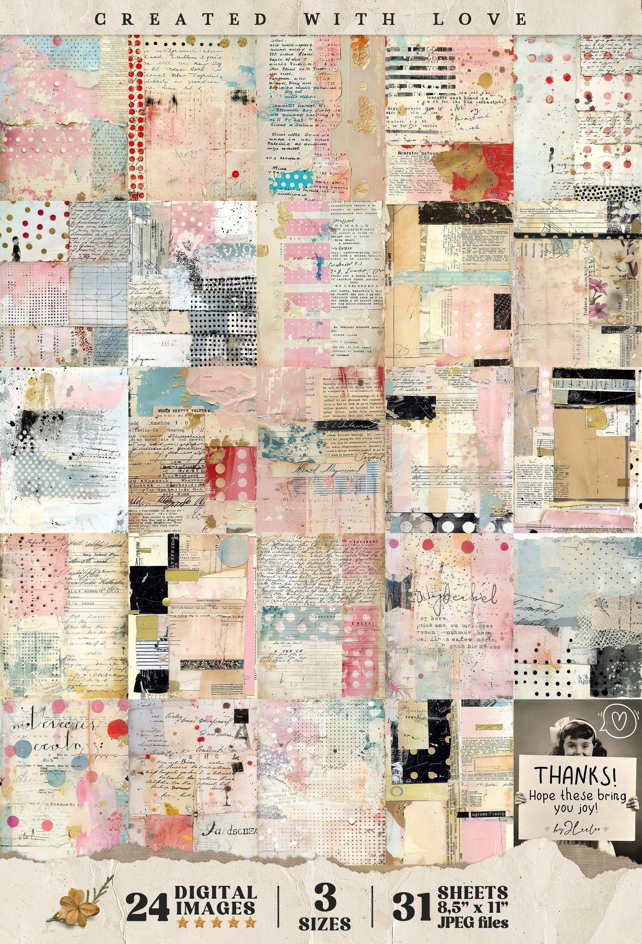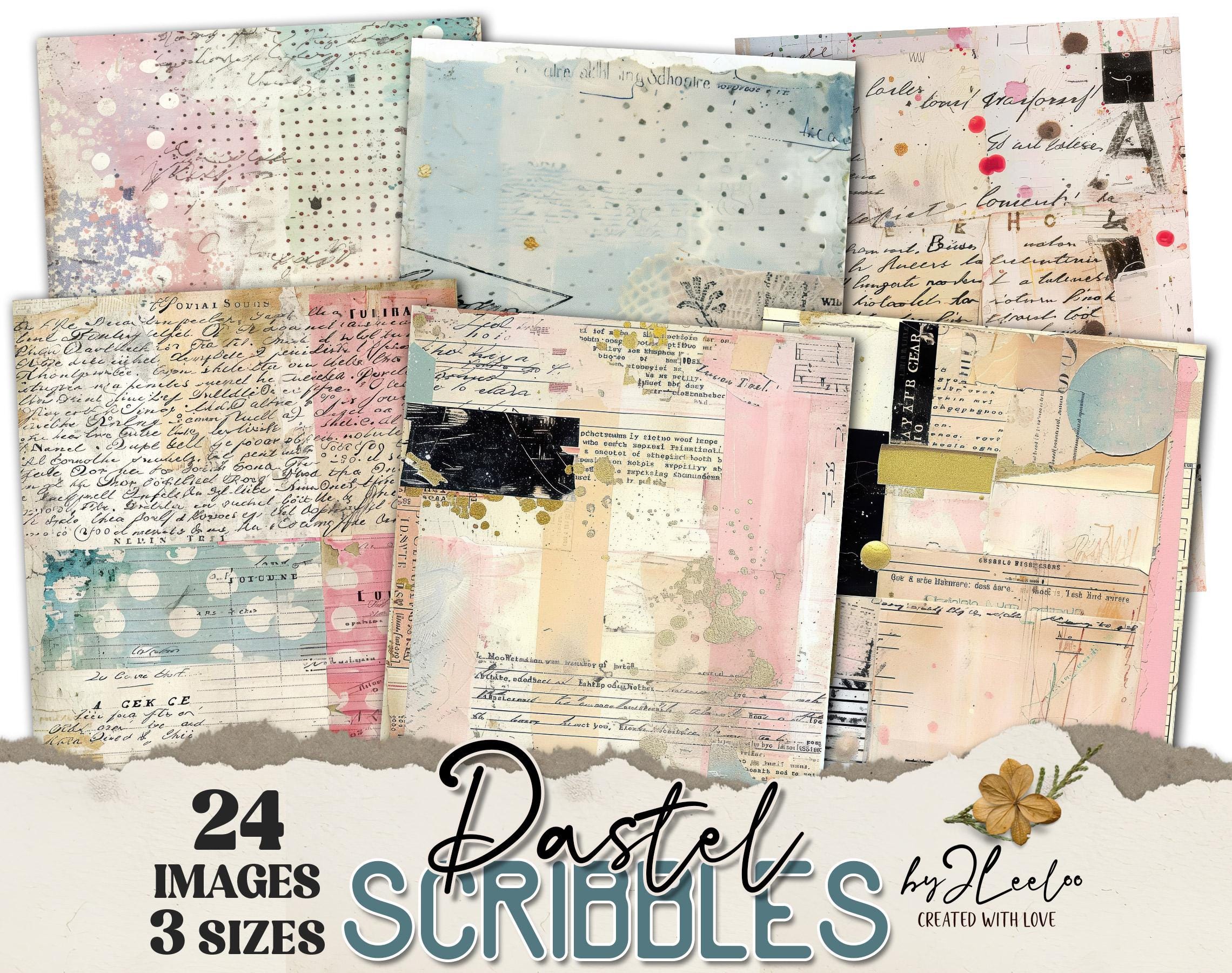 PASTEL SCRIBBLES 24 background 3 Sizes | Junk Journal Collage Pages | Backdrop Rustic papers | scrapbook digital | Commercial Use | pp927