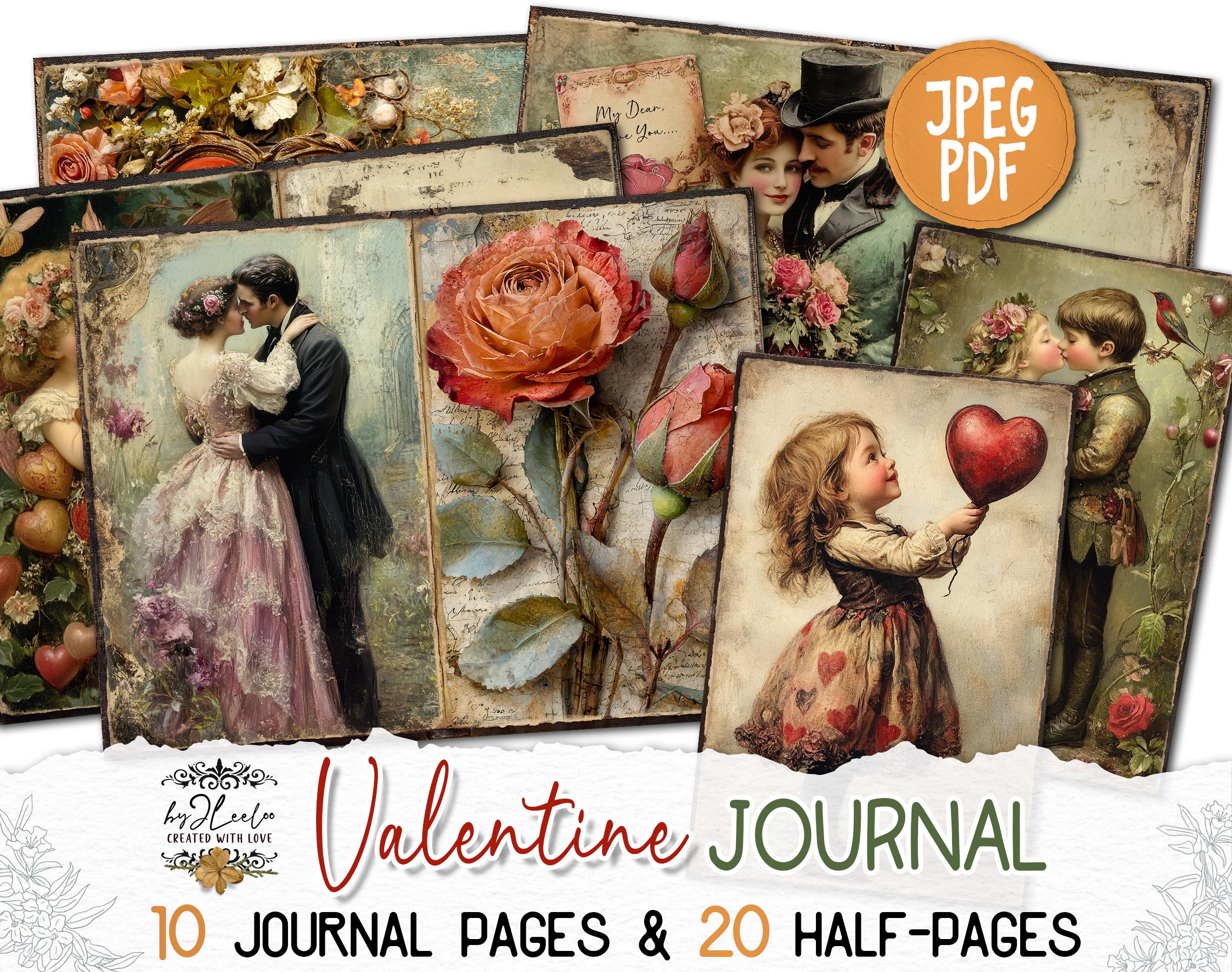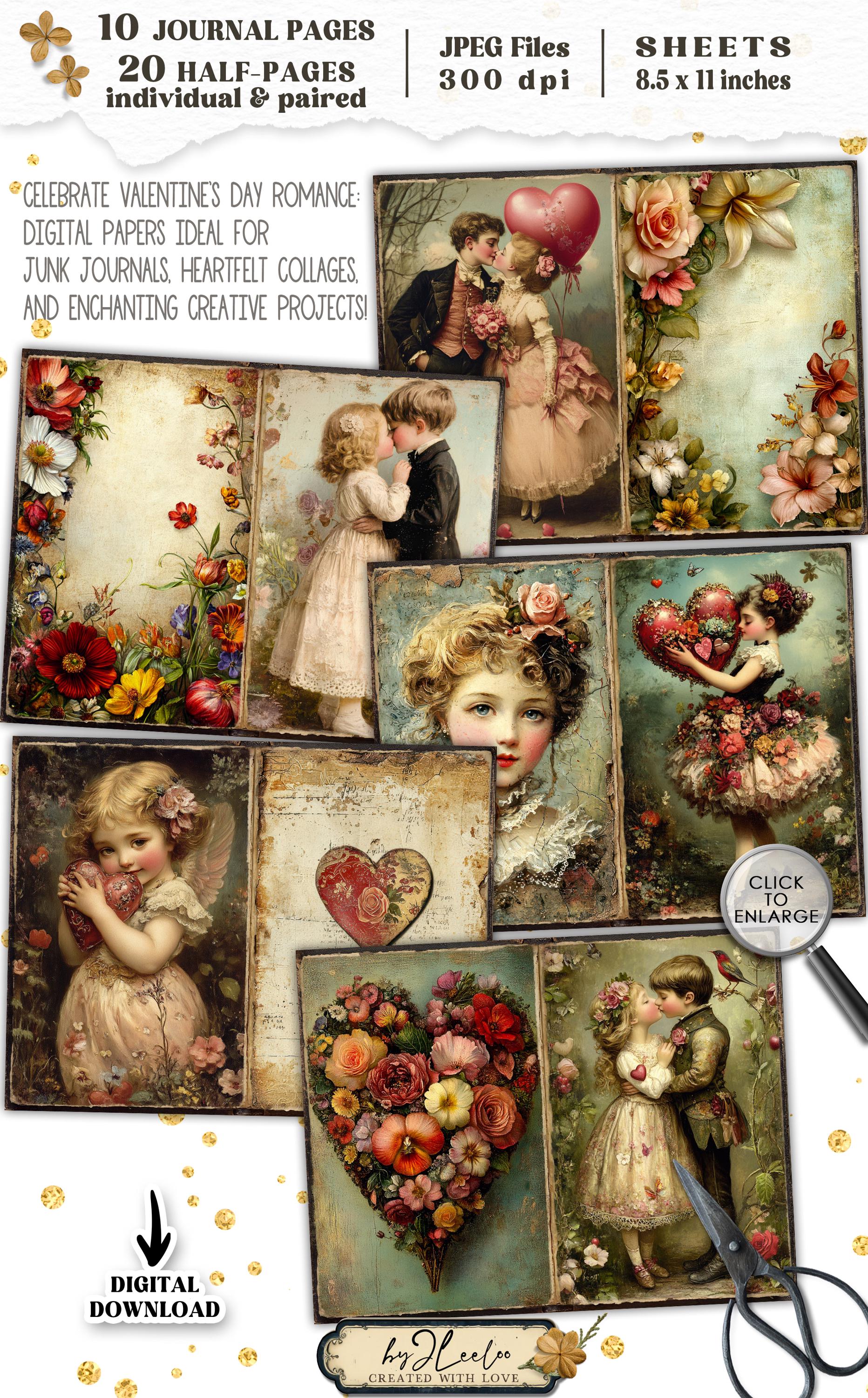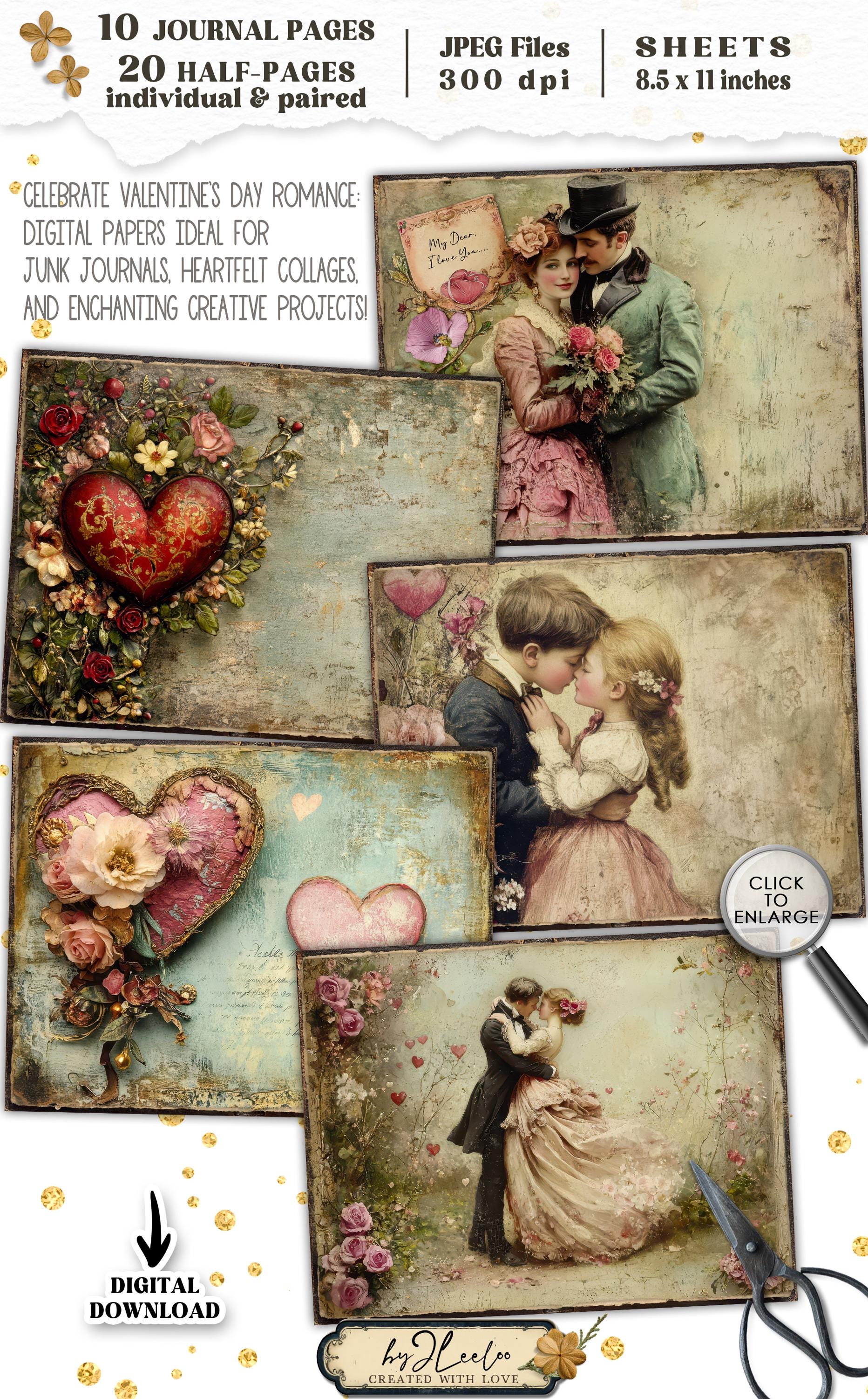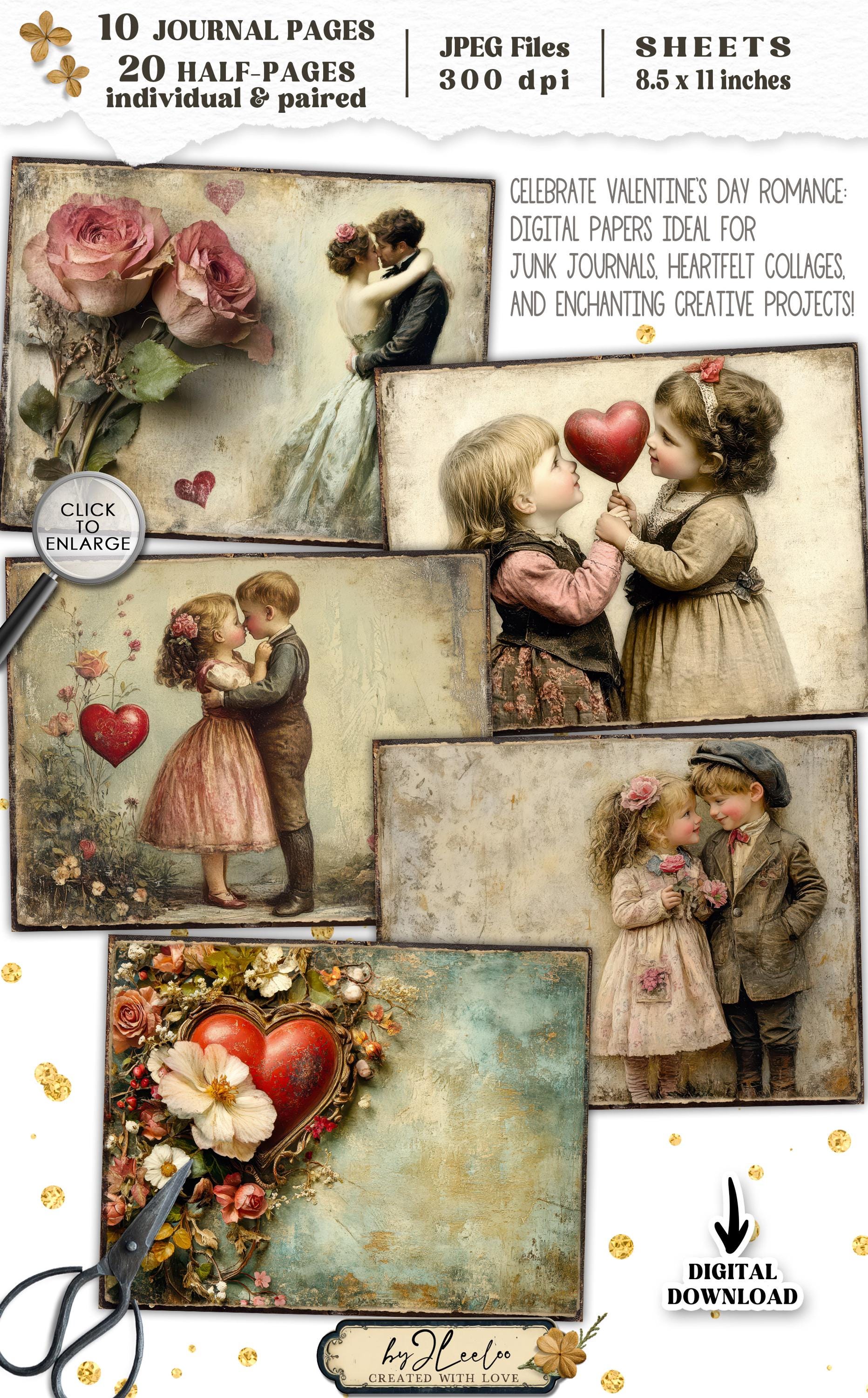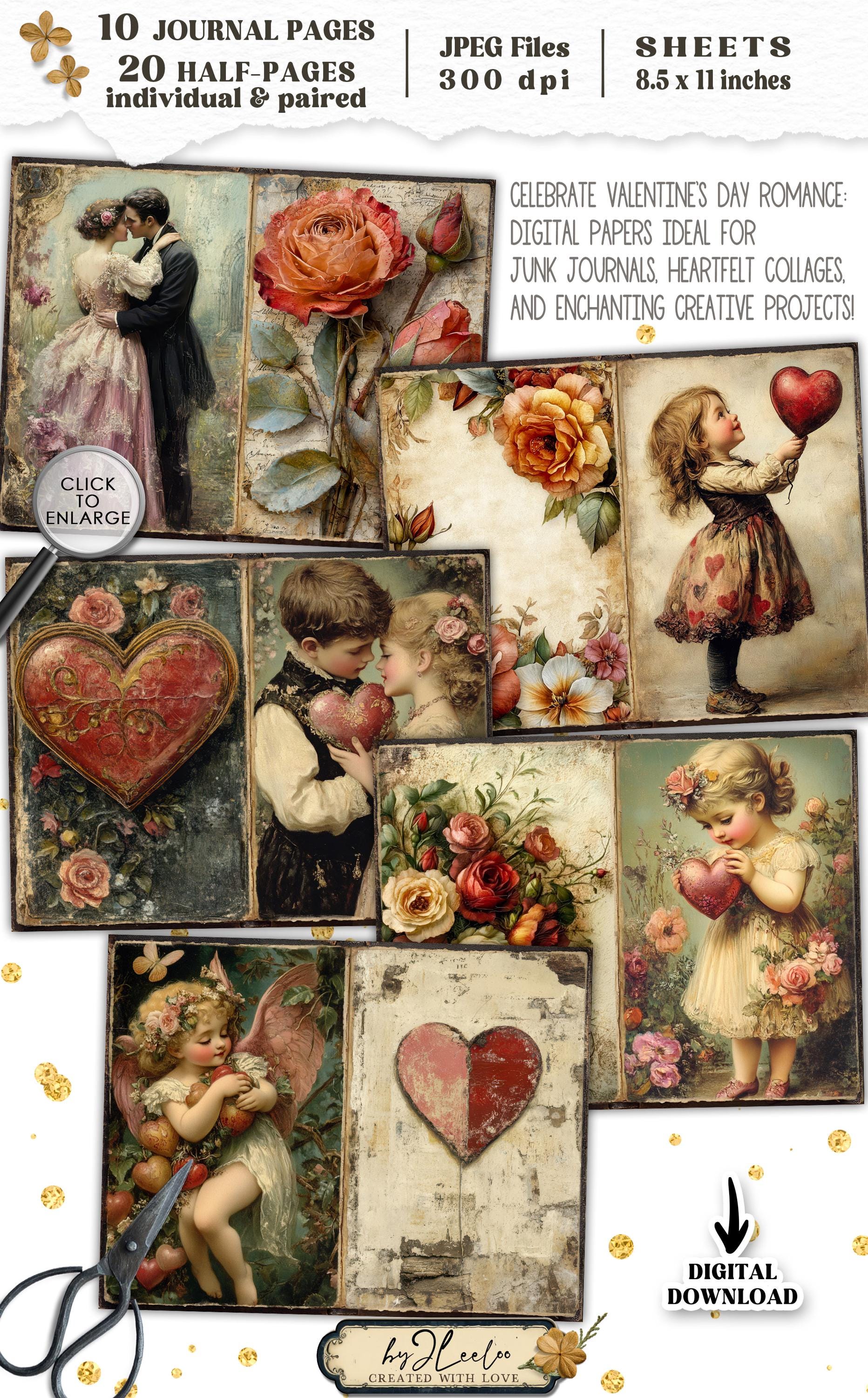 VALENTINE JOURNAL Junk Journal Pages printable | Vintage romantic pages | Digiscrap Kit scrapbook Fantasy collage Antique Craft CU | pp907