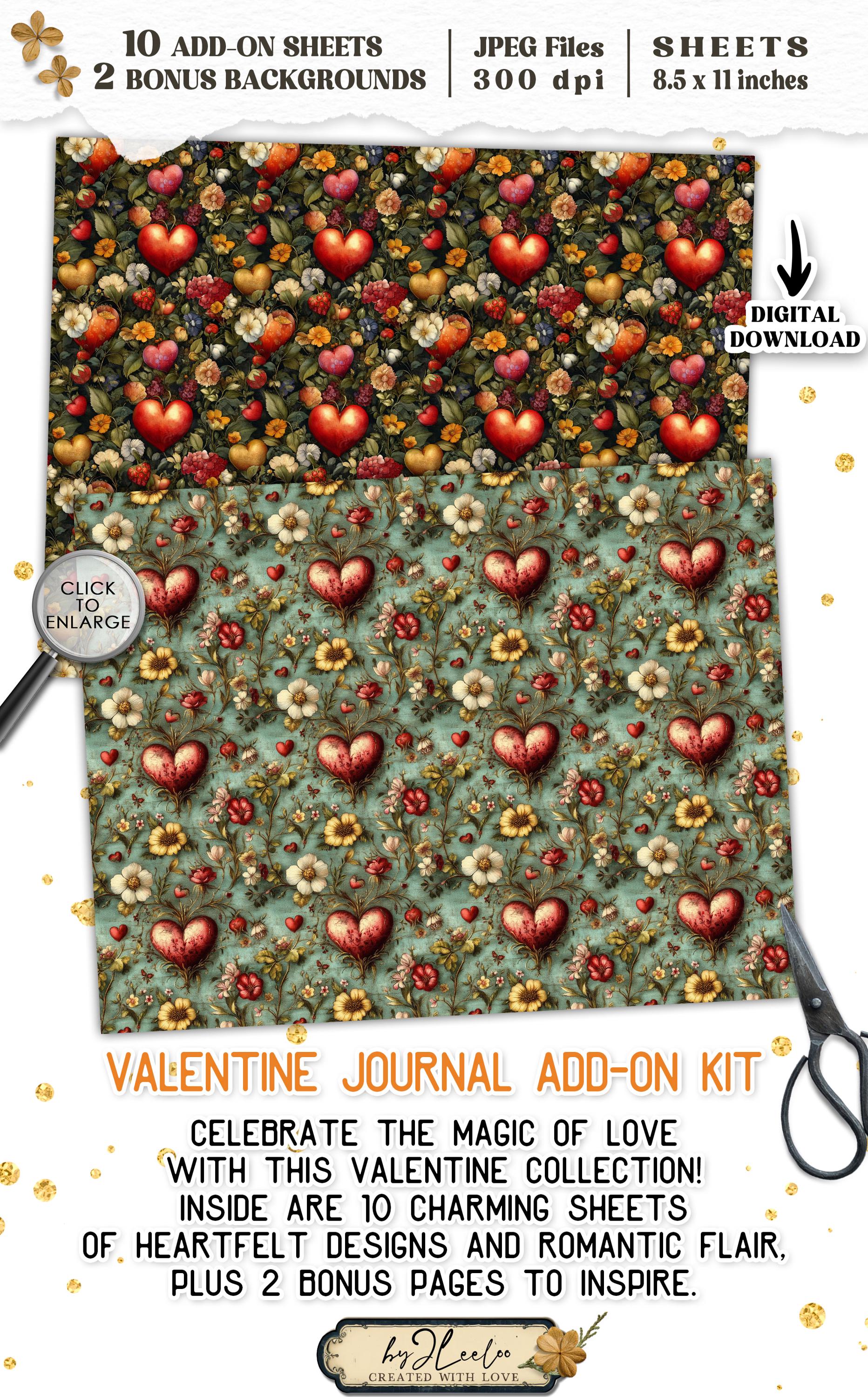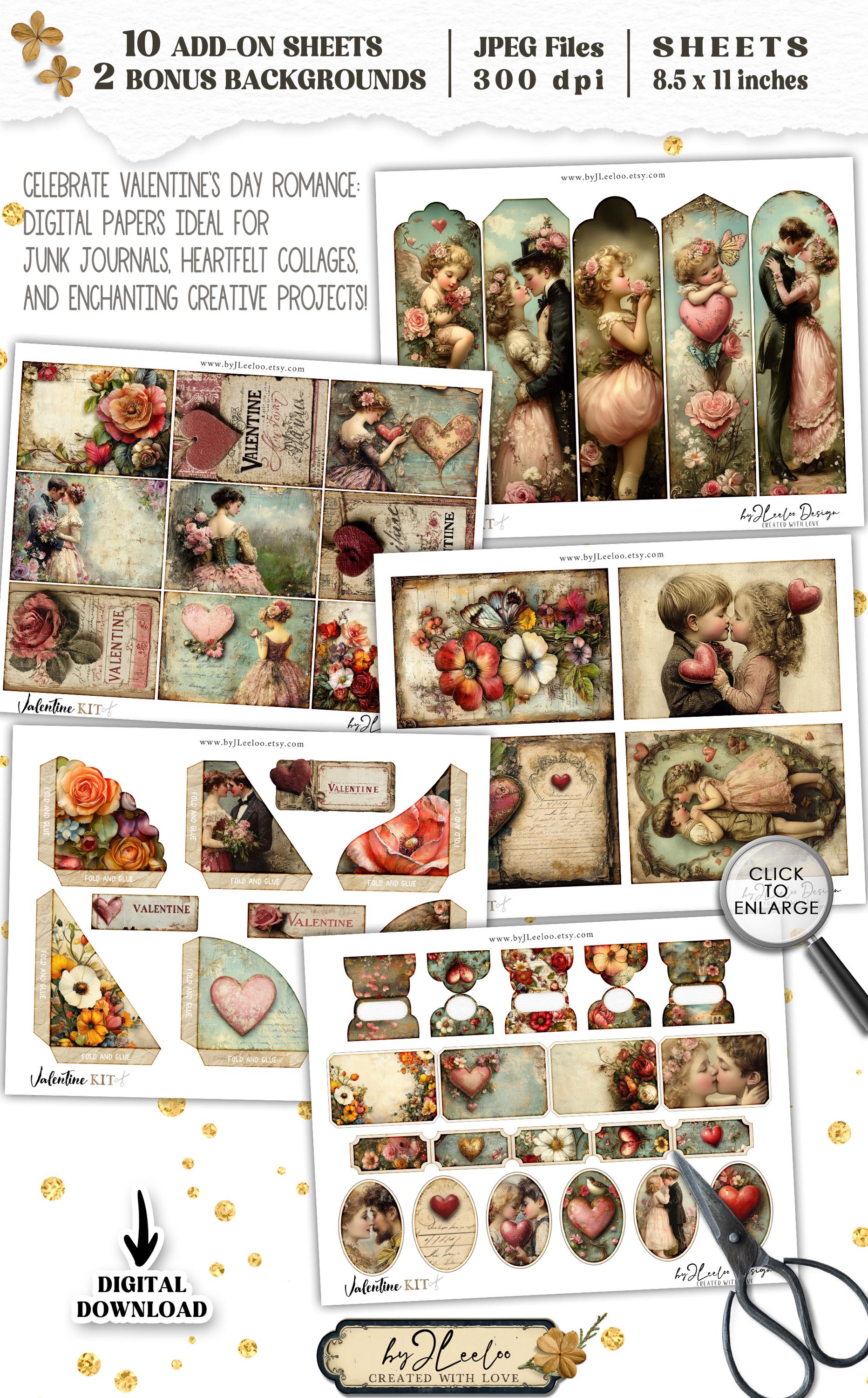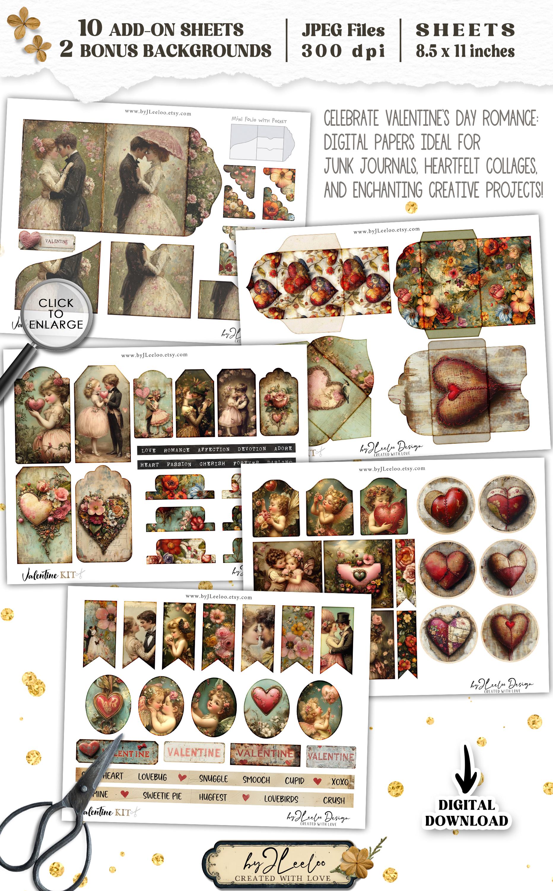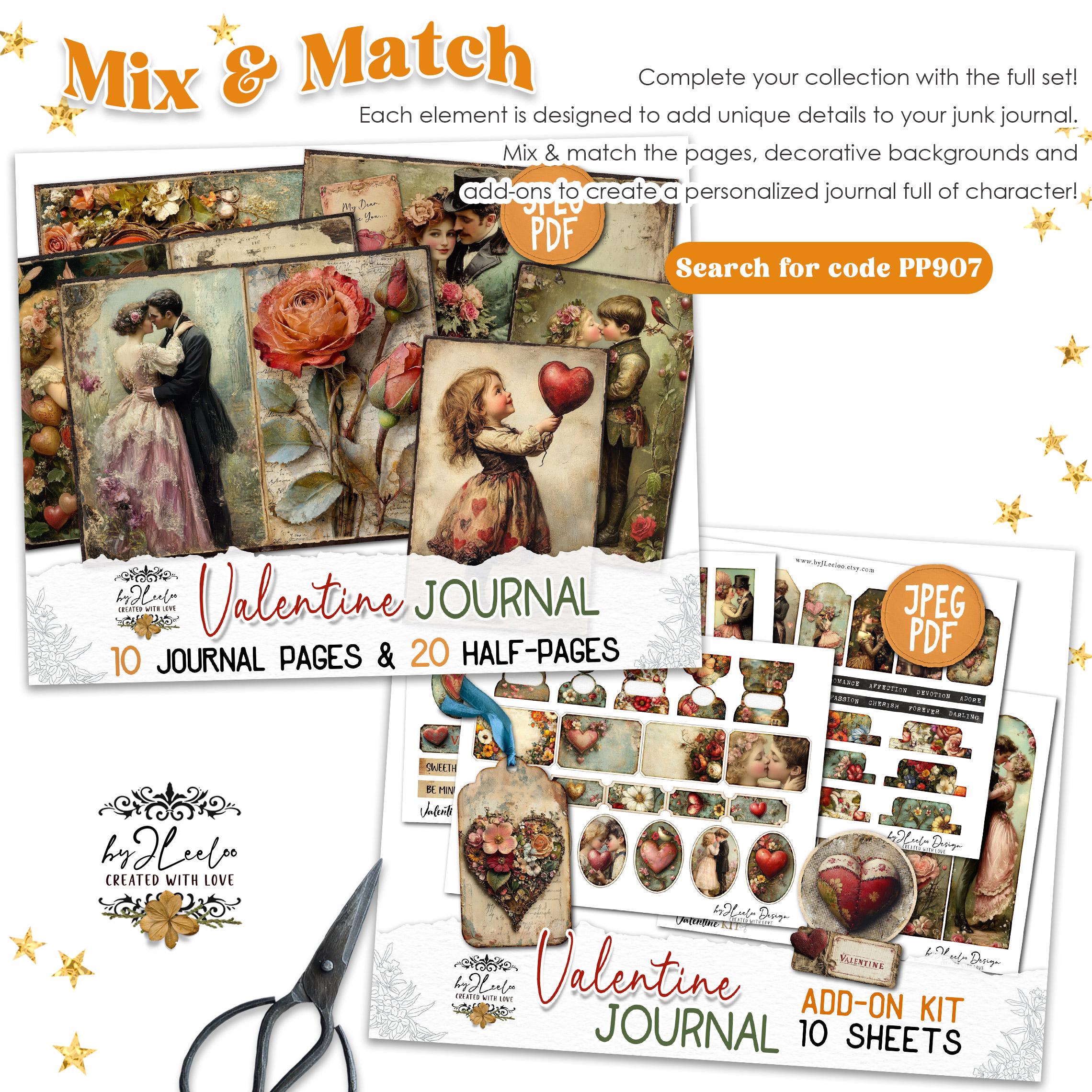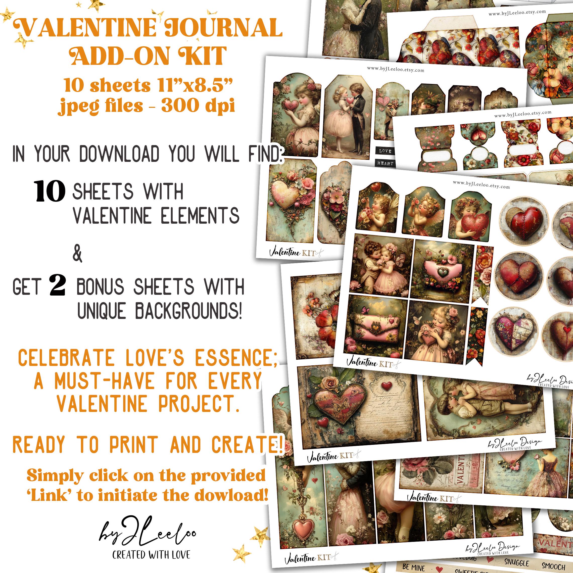 Whether you're embellishing journal spreads, crafting custom tags, or adding functional pockets and envelopes, this add-on collection ensures your Valentine’s Day junk journal is both romantic and complete.