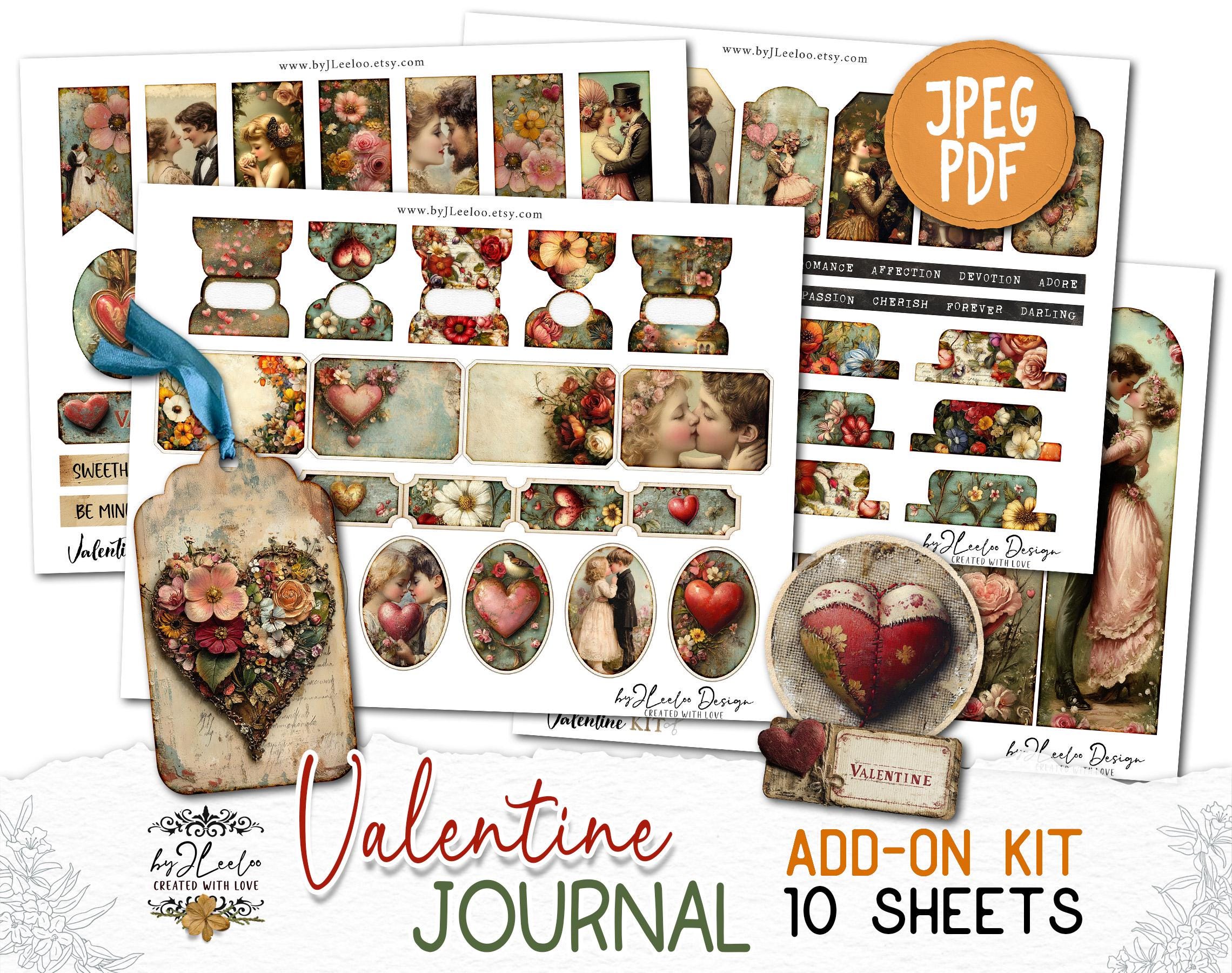 VALENTINE JOURNAL Add-On Kit Junk Journal Pages printable | Digiscrap Vintage romantic lovers Scrapbook fussy cut ephemera CU | pp907