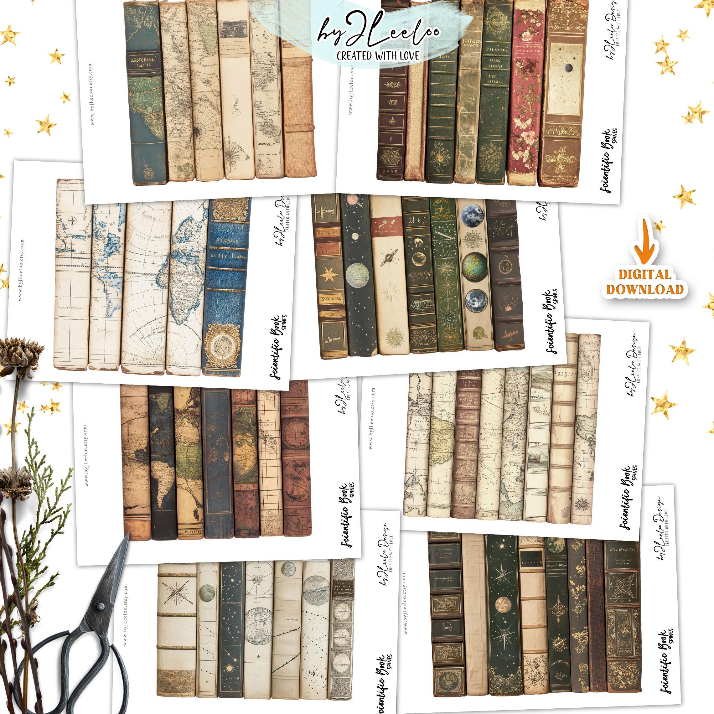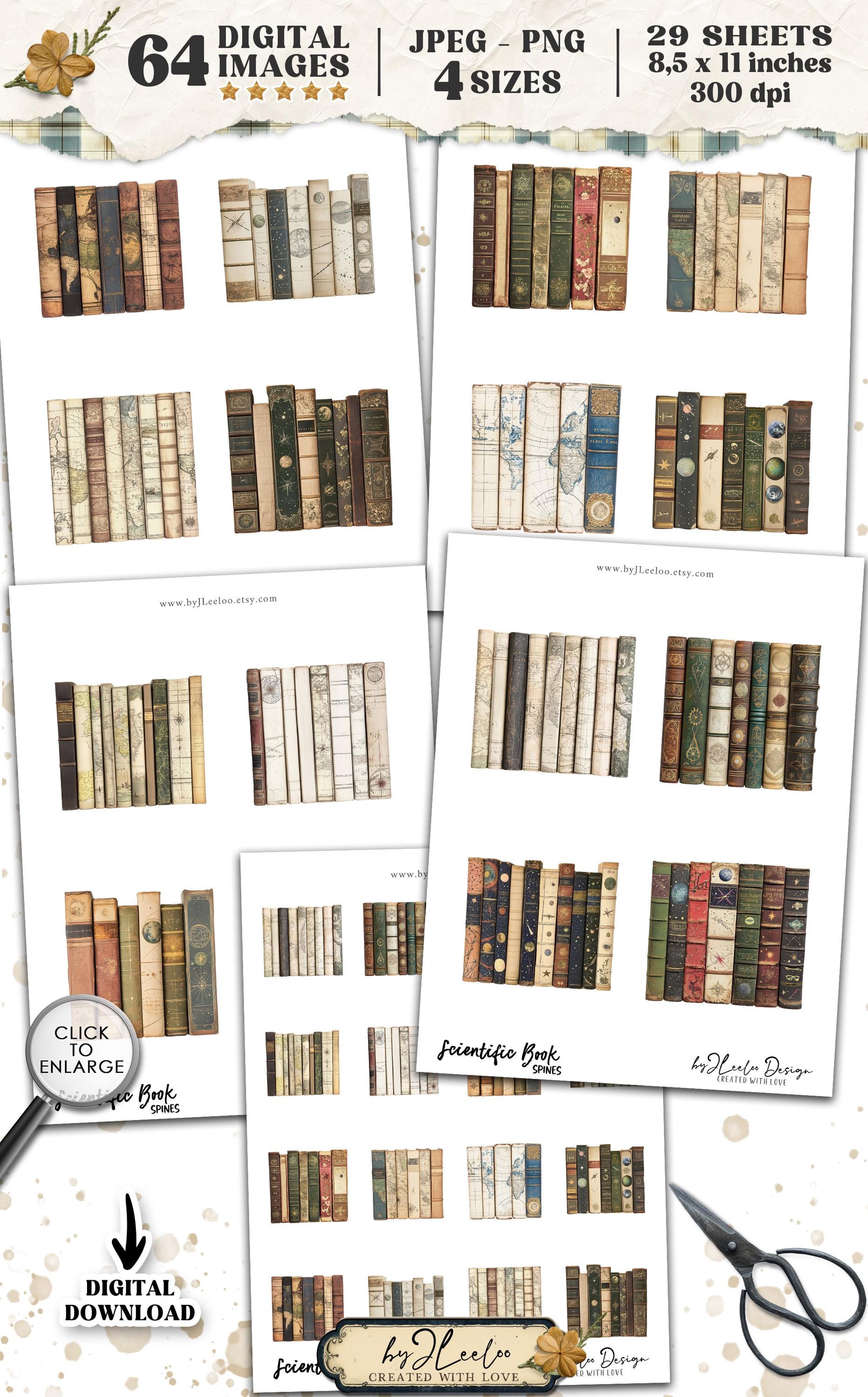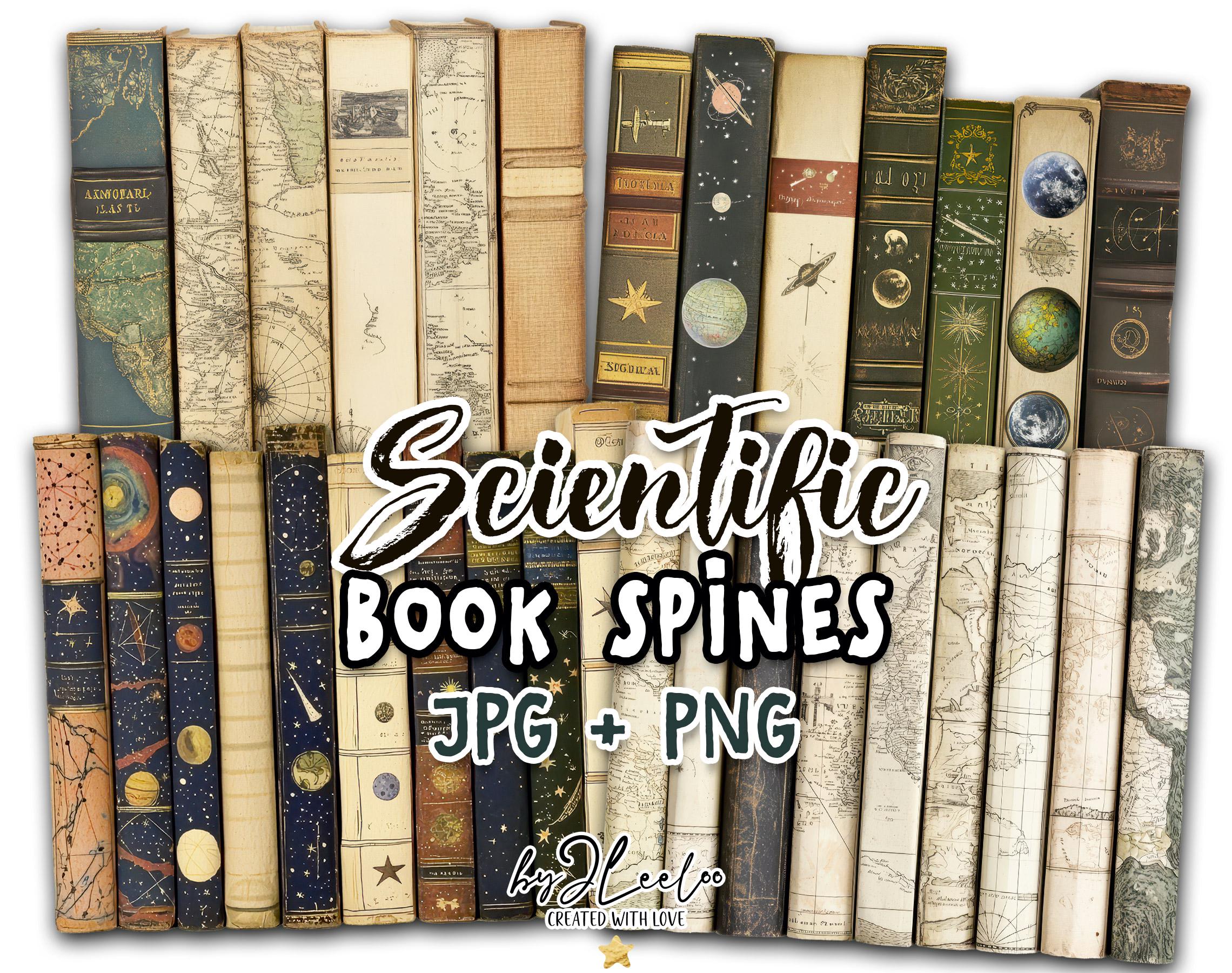 Scientific BOOK SPINES clipart PNG Jpeg | vintage library printable junk journal scrapbook | Boundle of antique nautical astronomic book spines | pp904