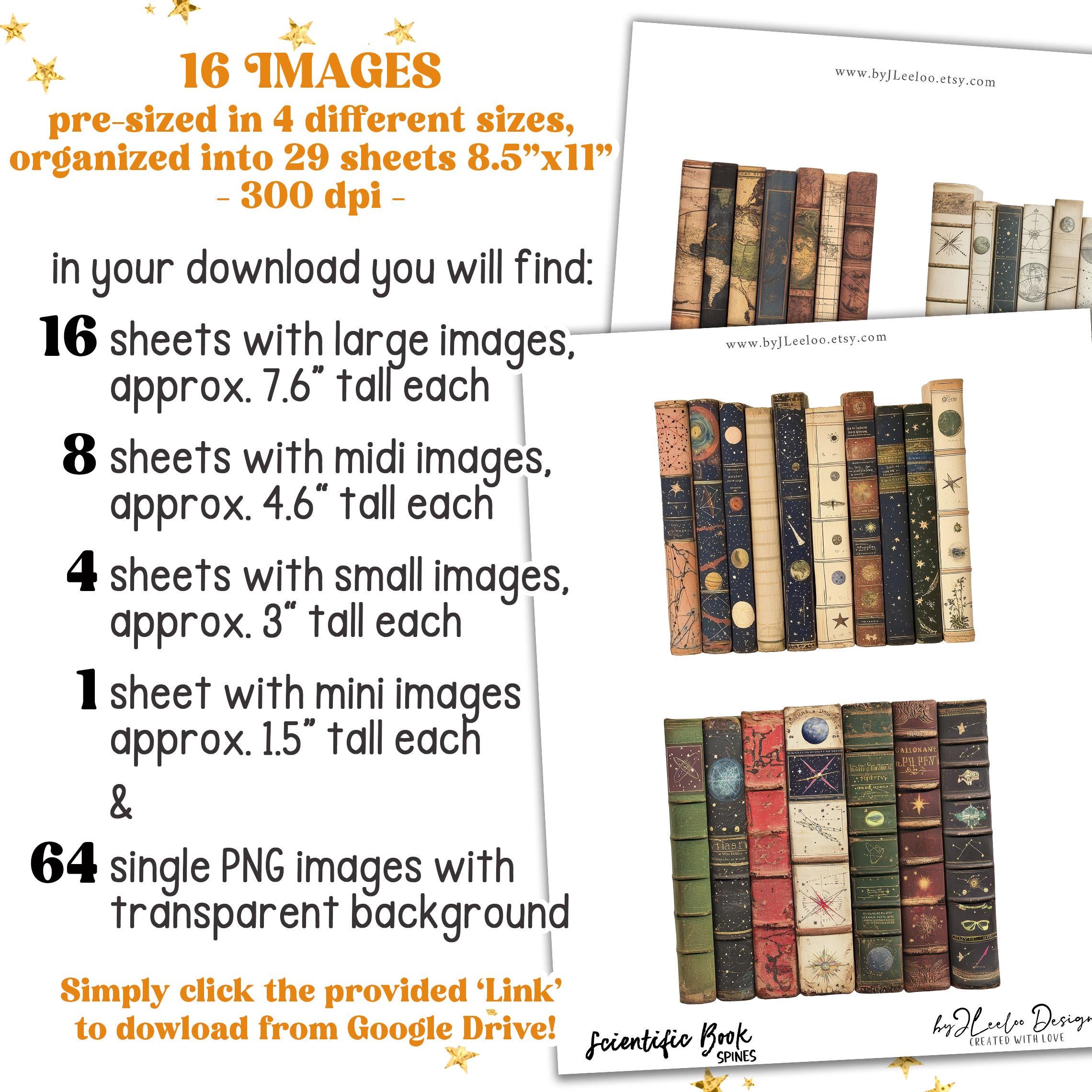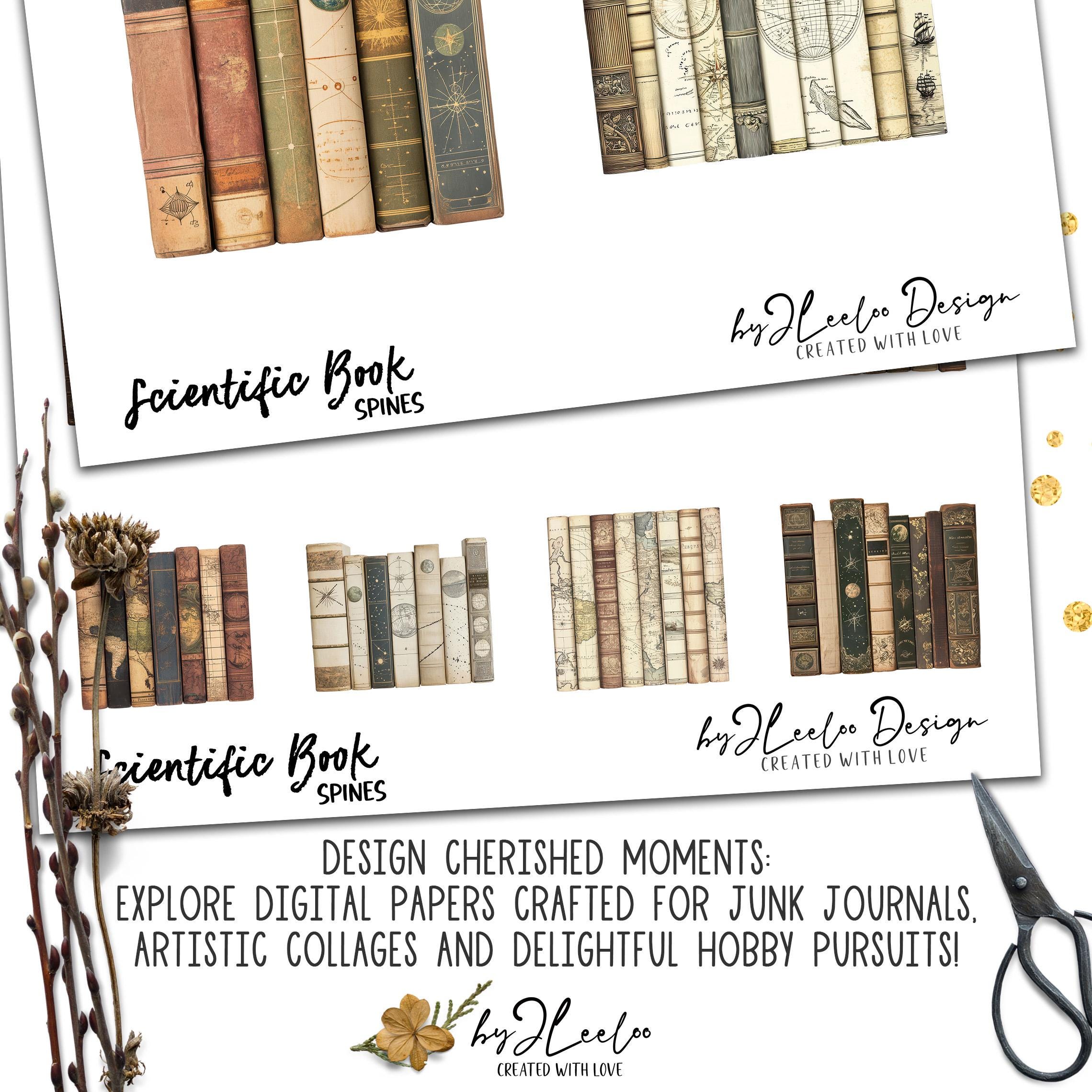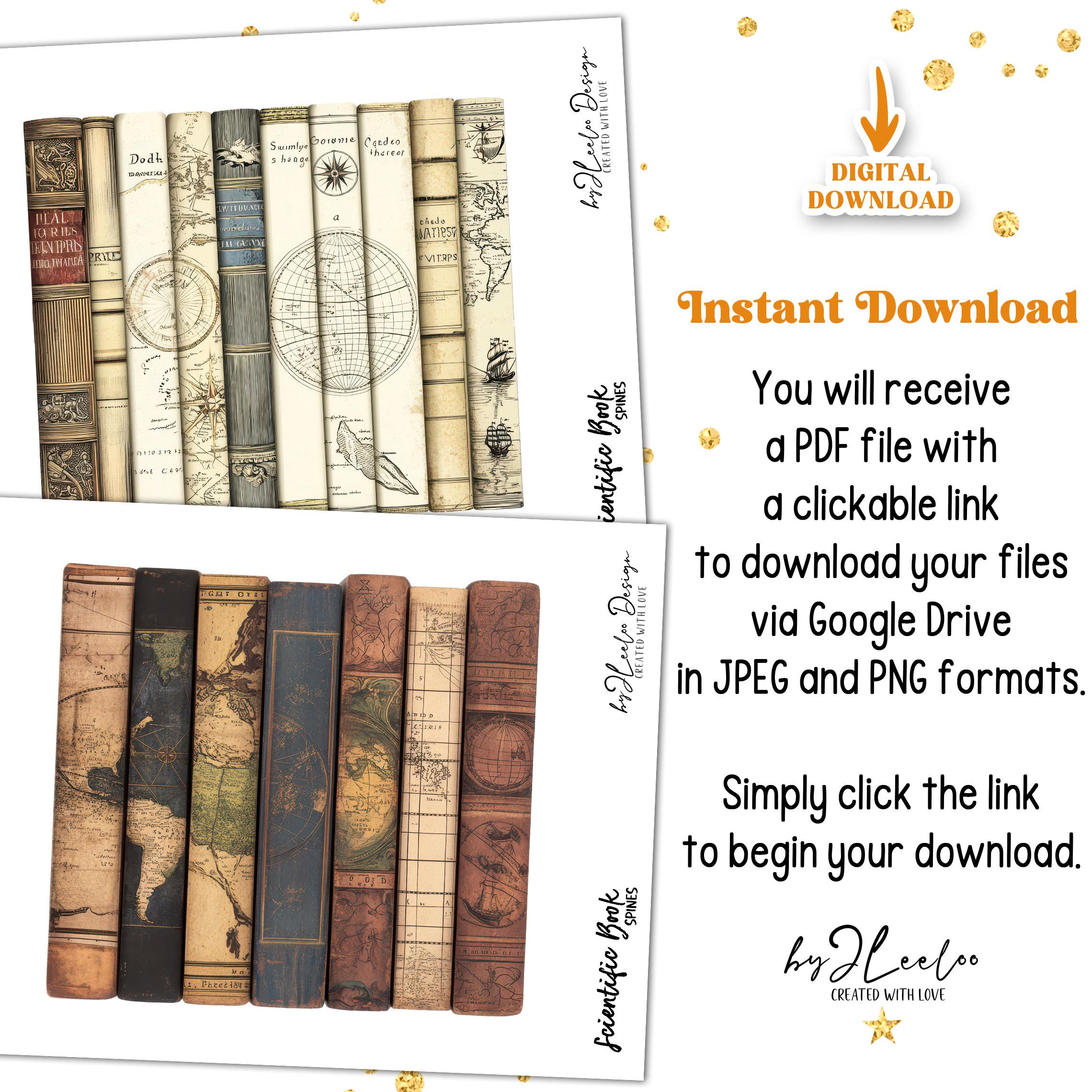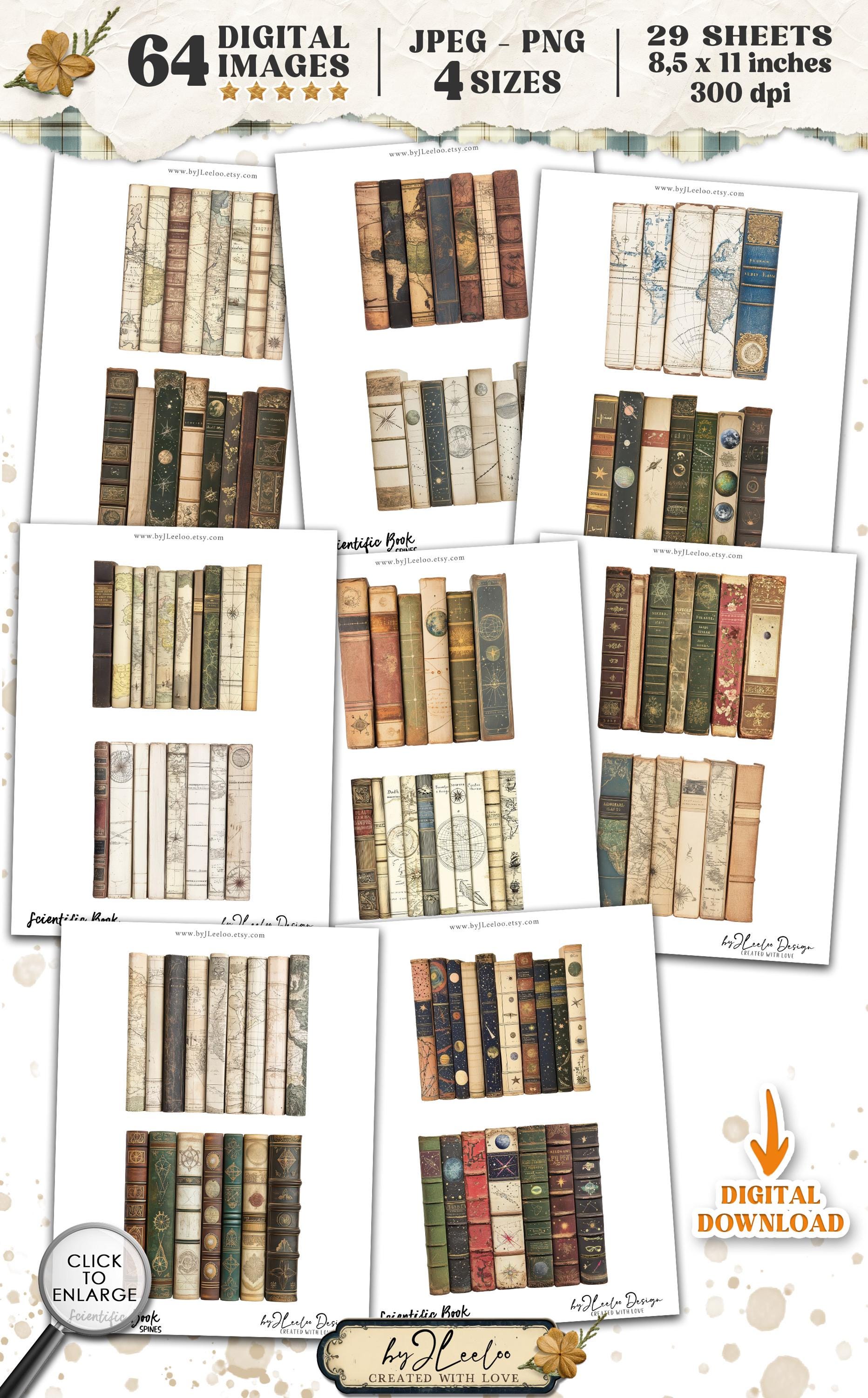Scientific BOOK SPINES clipart PNG Jpeg | vintage library printable junk journal scrapbook | Boundle of antique nautical astronomic book spines | pp904