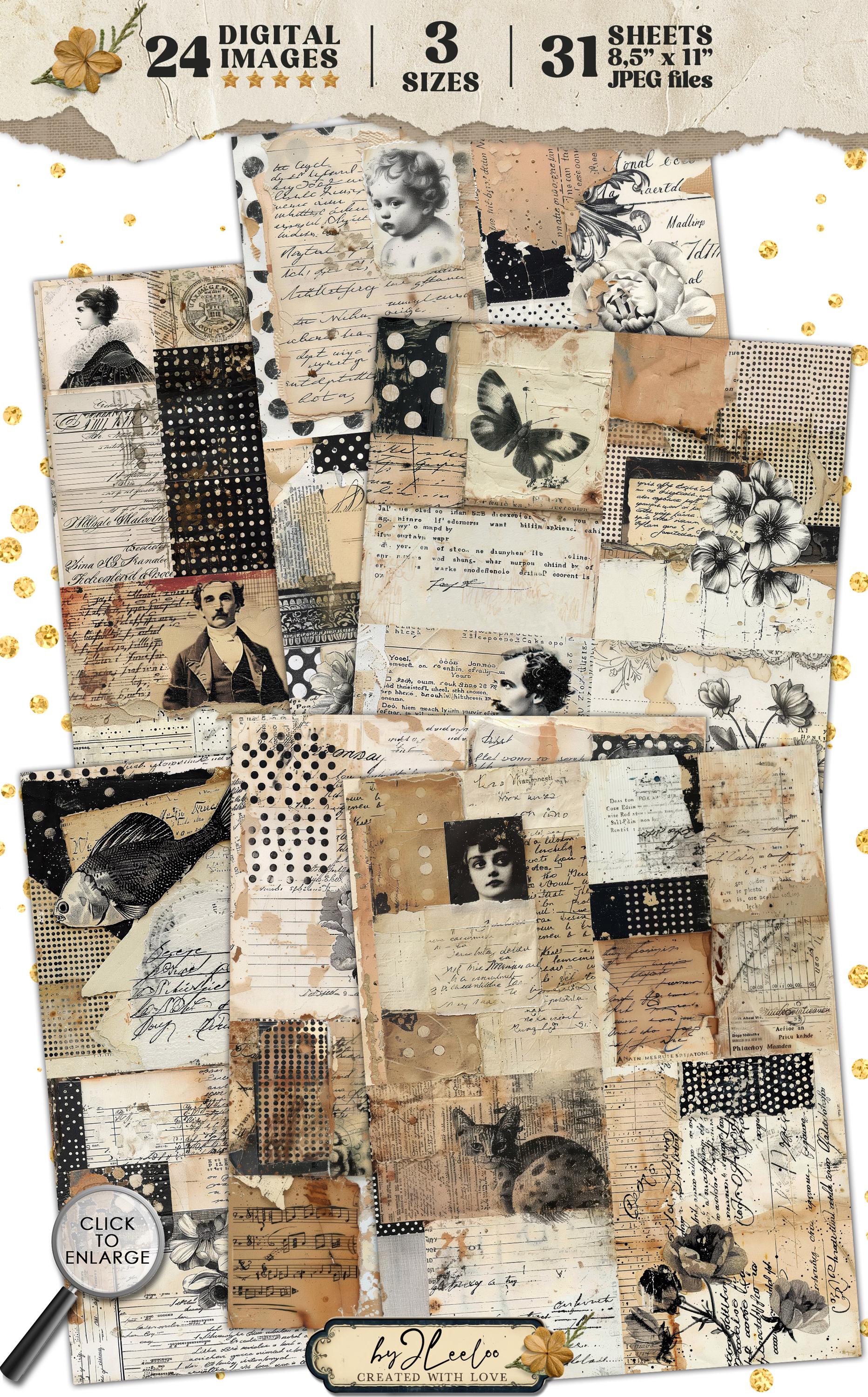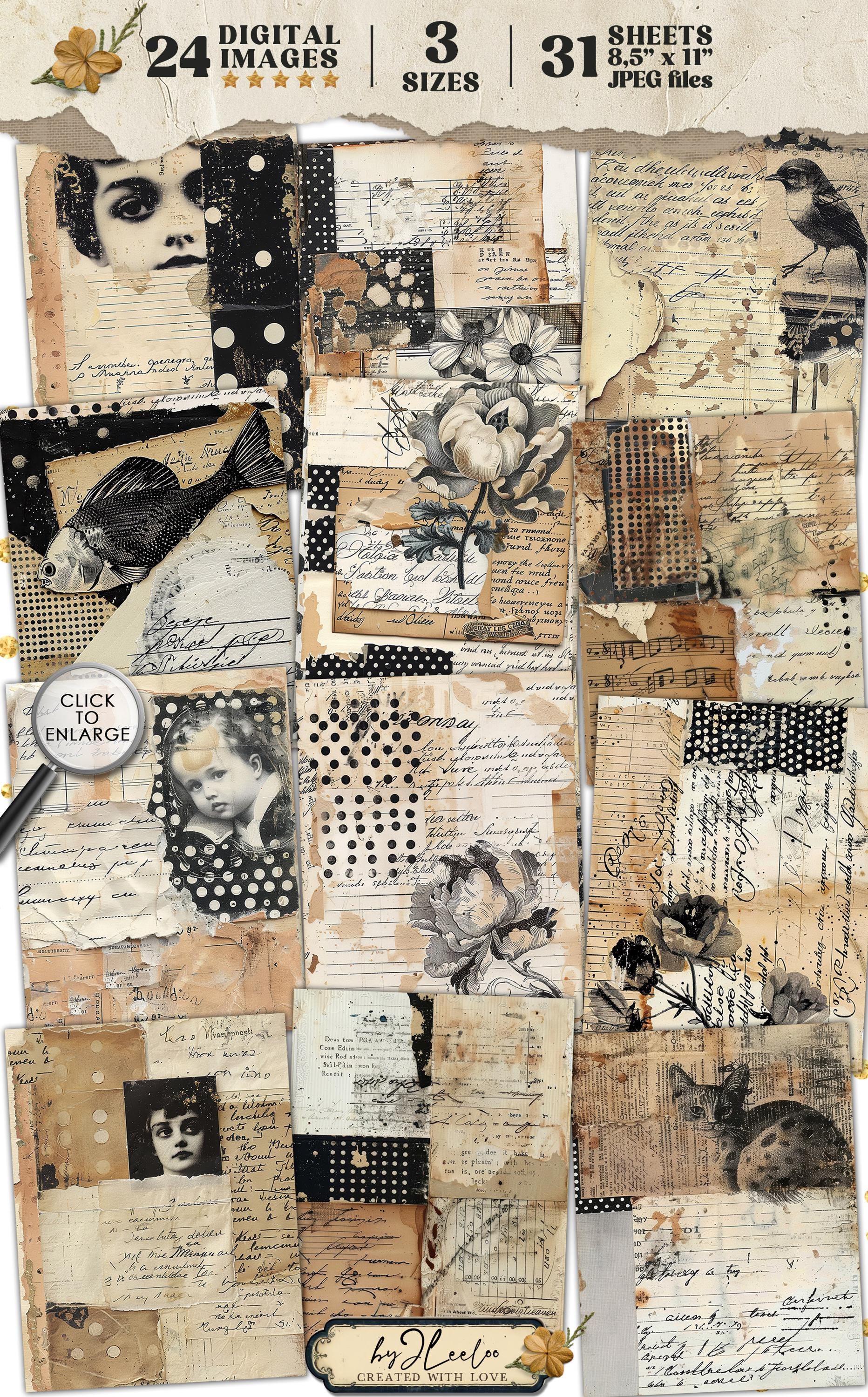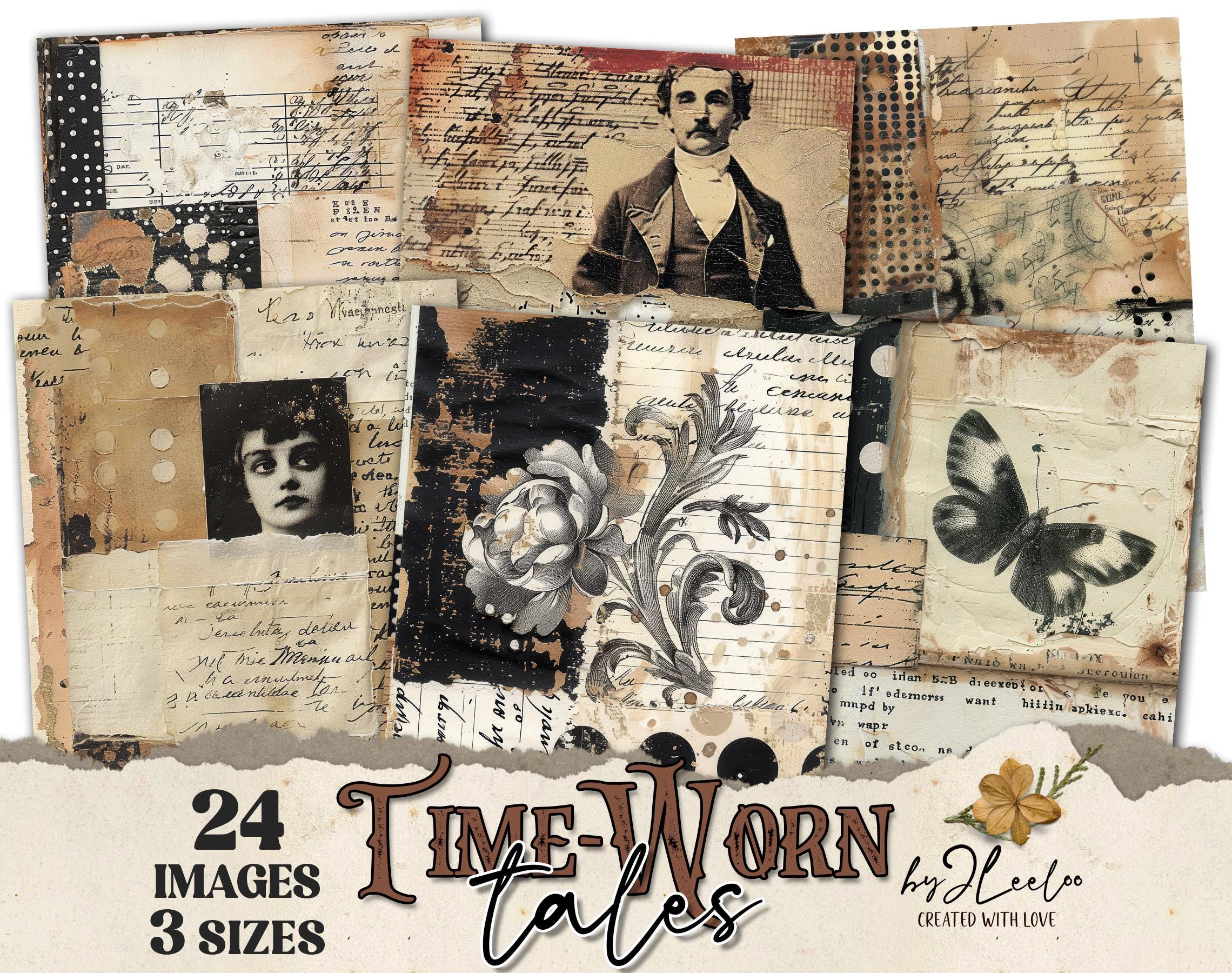 TIME-WORN TALES 24 background 3 Sizes | Junk Journal Collage Pages | Backdrop neutral papers | scrapbook digital | Commercial Use | pp929
