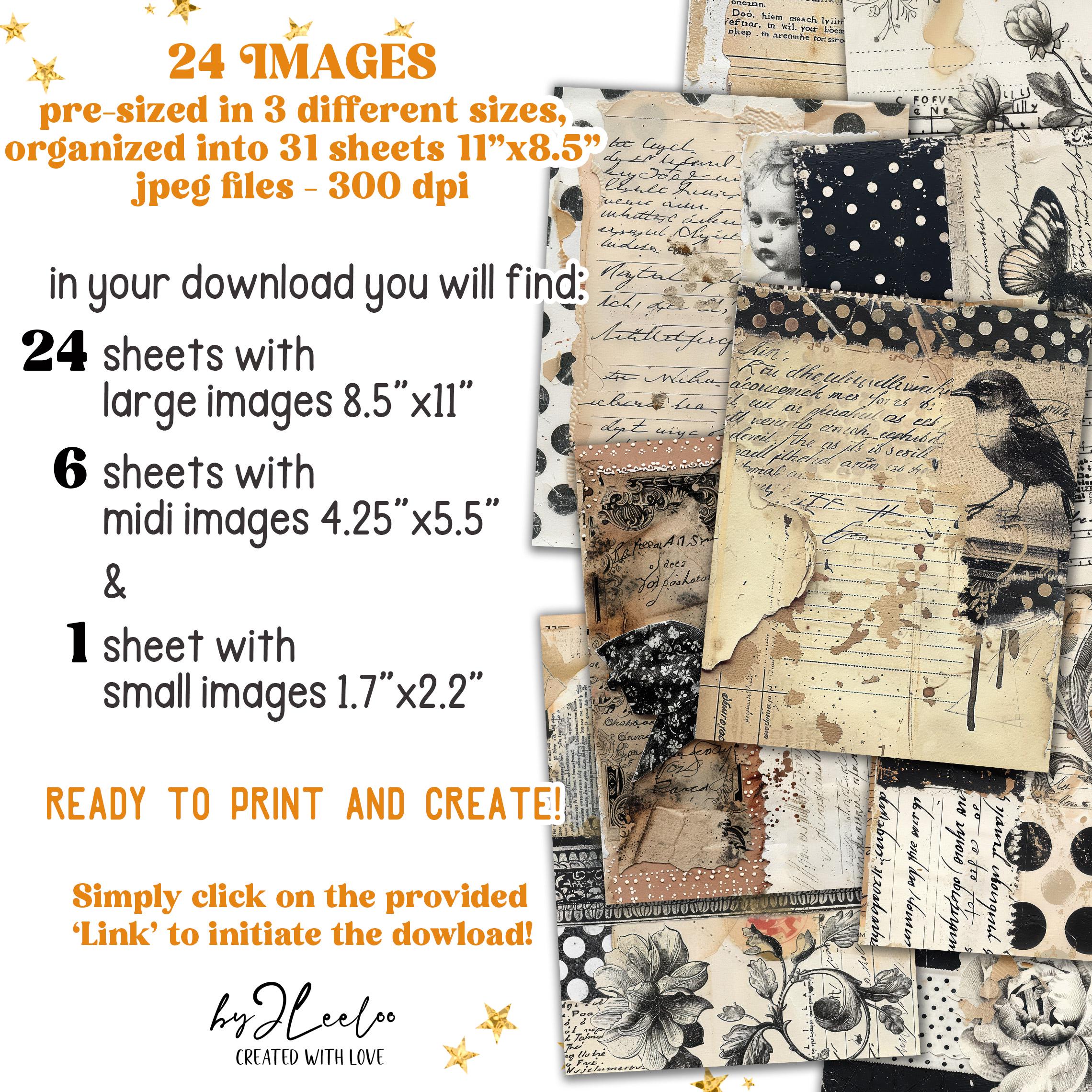 This stunning collection of 24 beautifully crafted images is designed to bring a unique, nostalgic touch to all your creative projects. Whether you're making junk journals, scrapbooks, diaries, collages, or jewelry, these images will add a rich, vintage aesthetic to your work. ✂️
