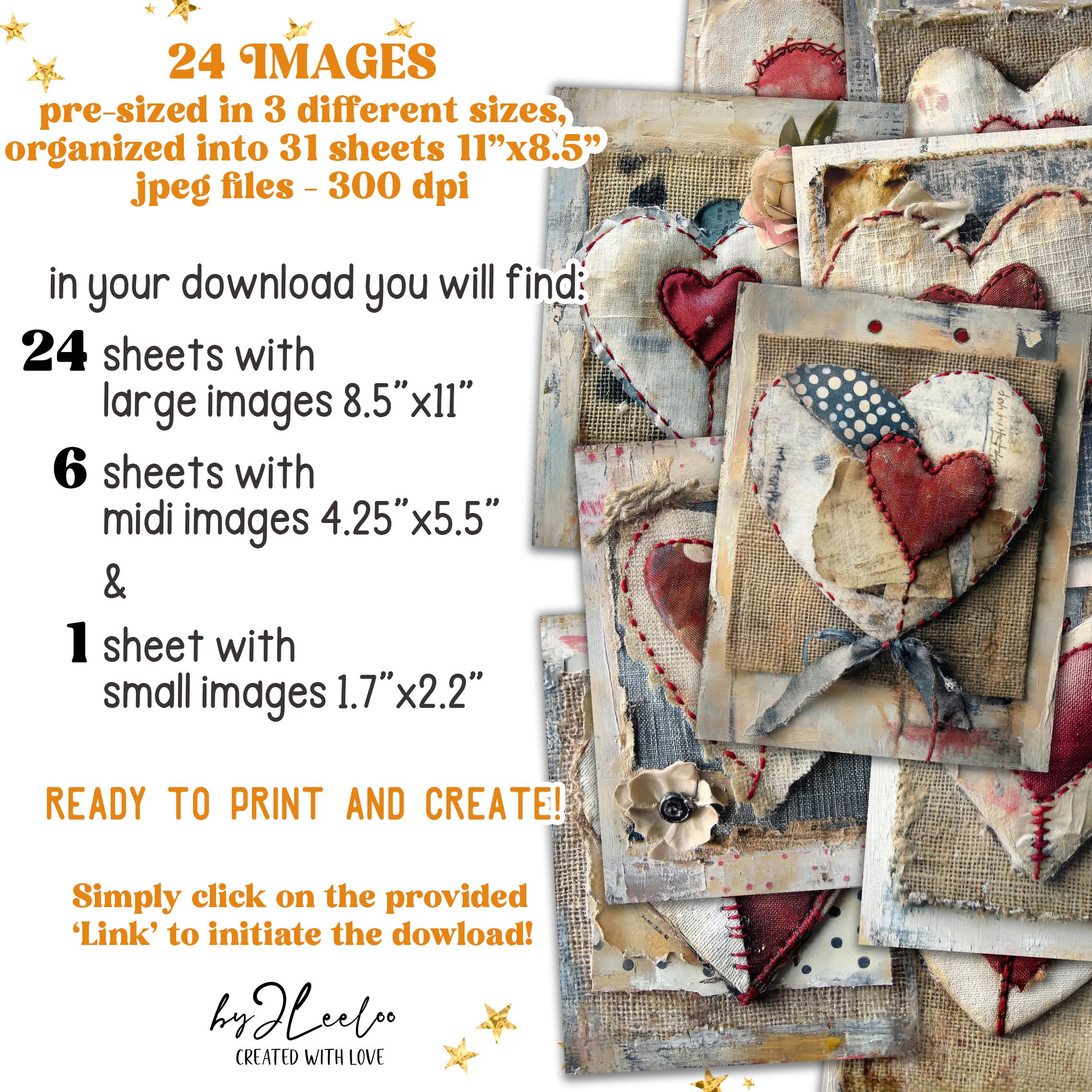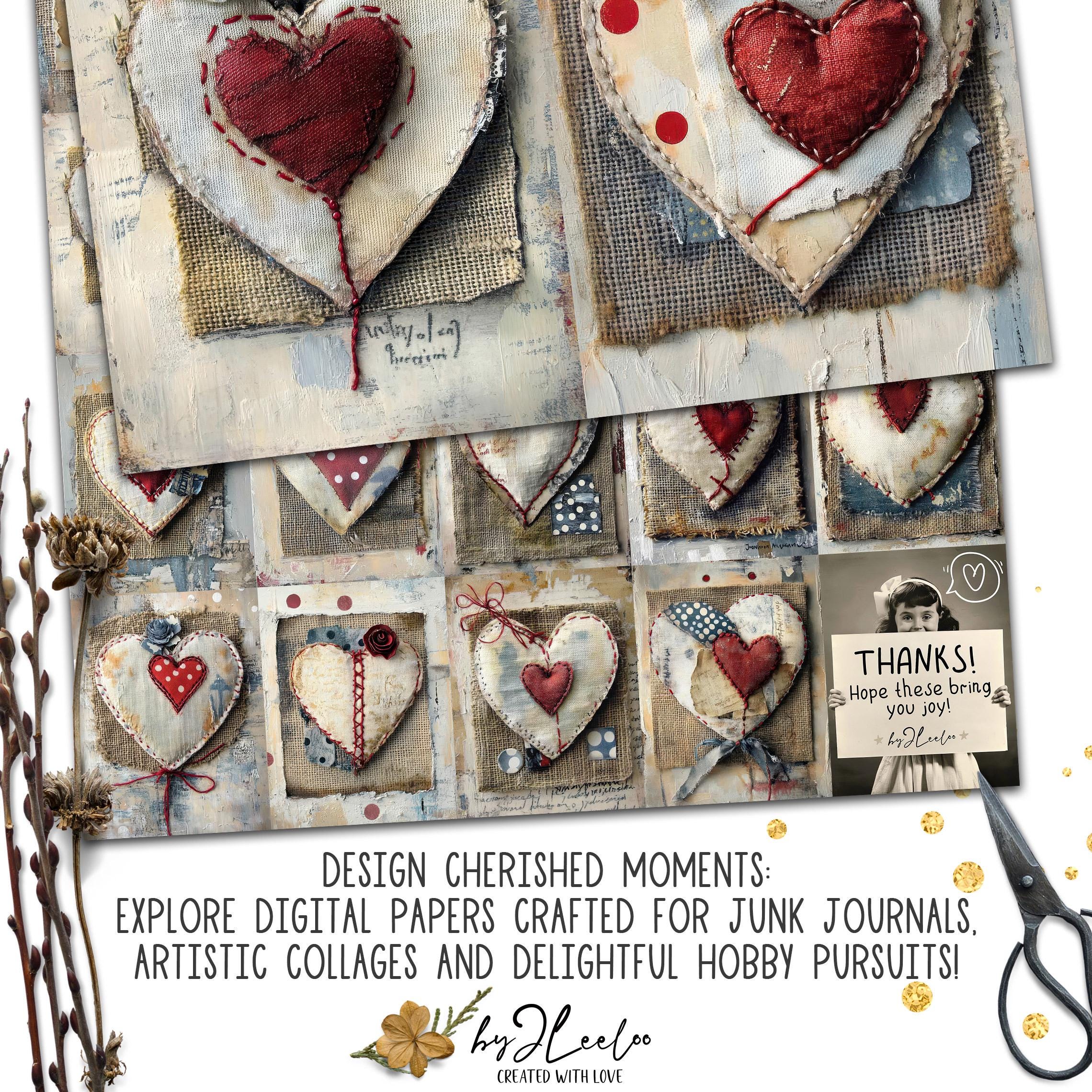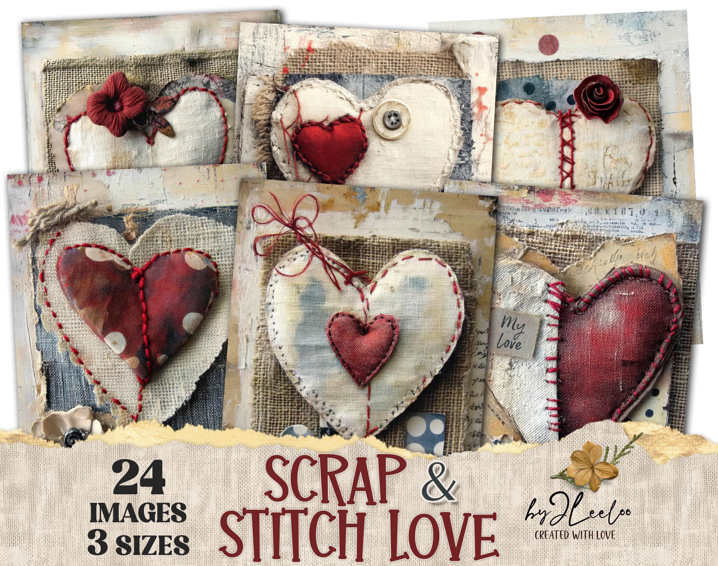 SCRAP & STITCH LOVE 24 background 3 Sizes | Valentine Junk Journal | Fabric Rustic pages | Home romantic decor | Commercial Use | pp908