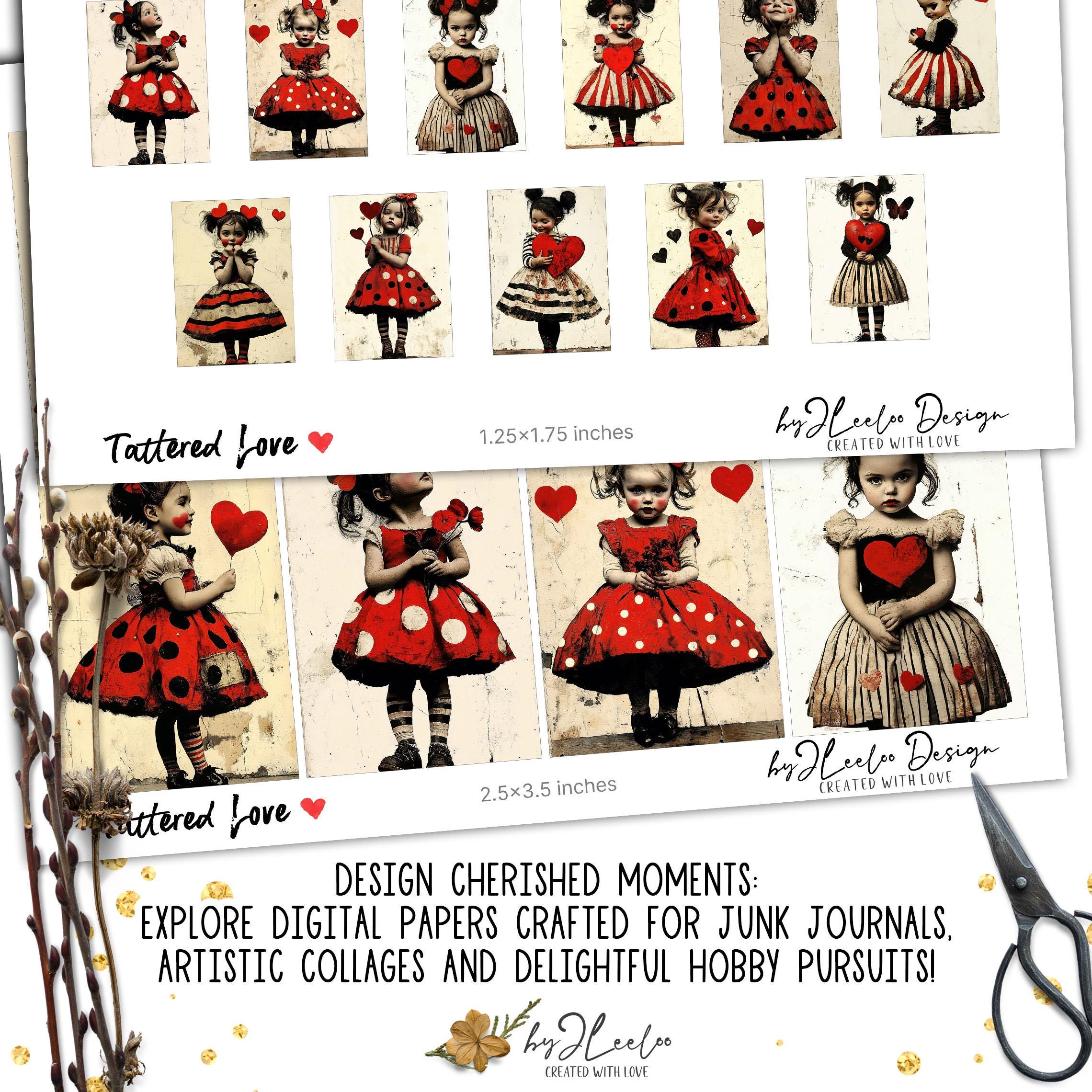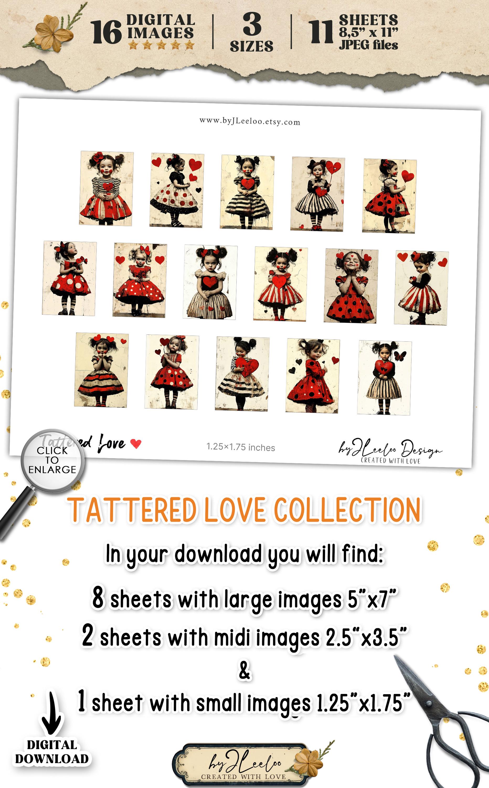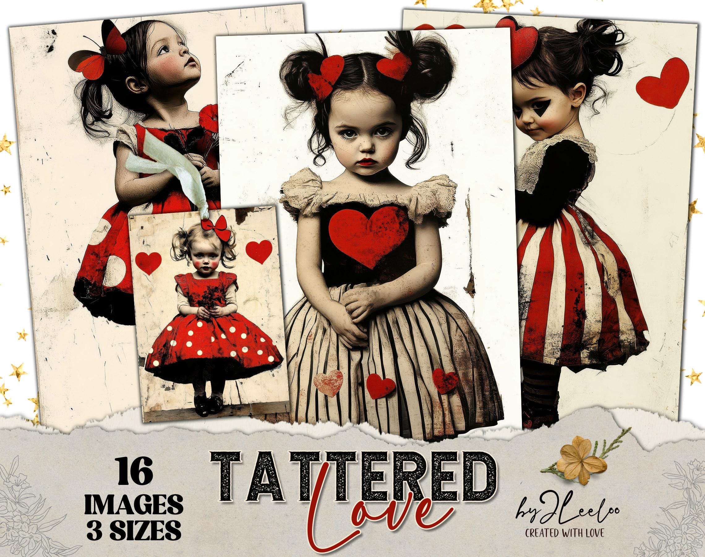 TATTERED LOVE 3 sizes | vintage Valentine card junk journal printable illustration | scrapbook children digital postcard tag label | pp910
