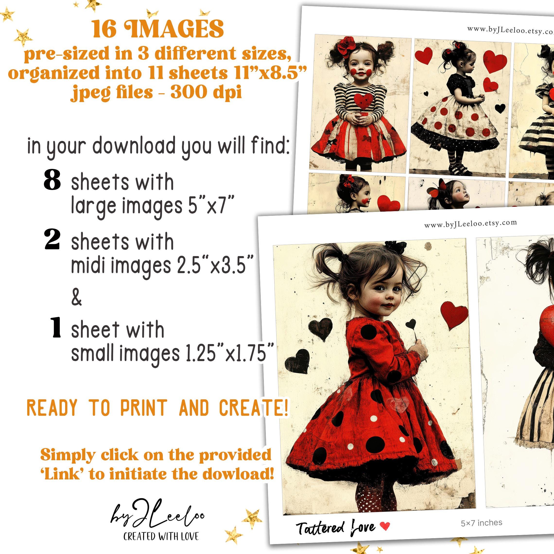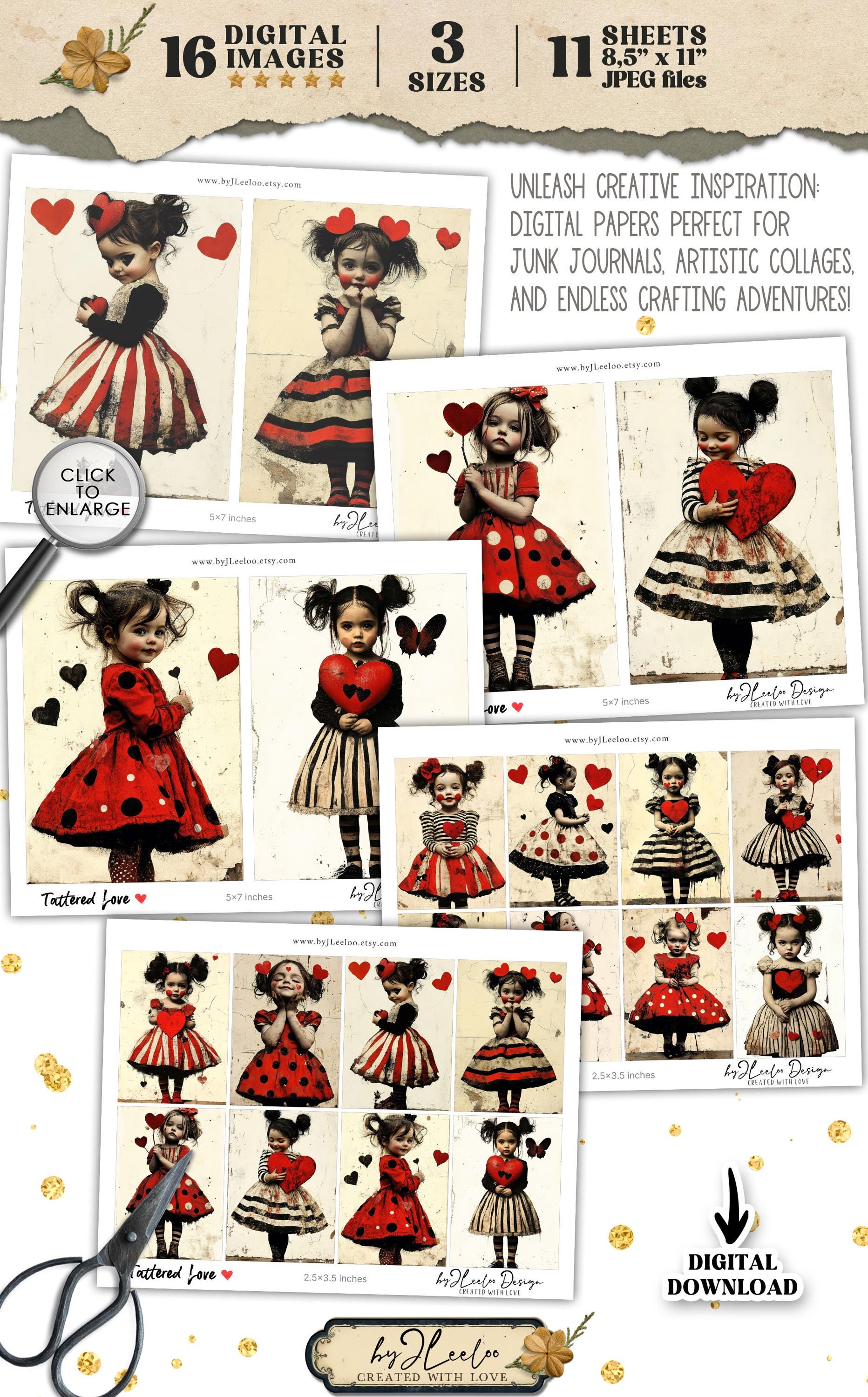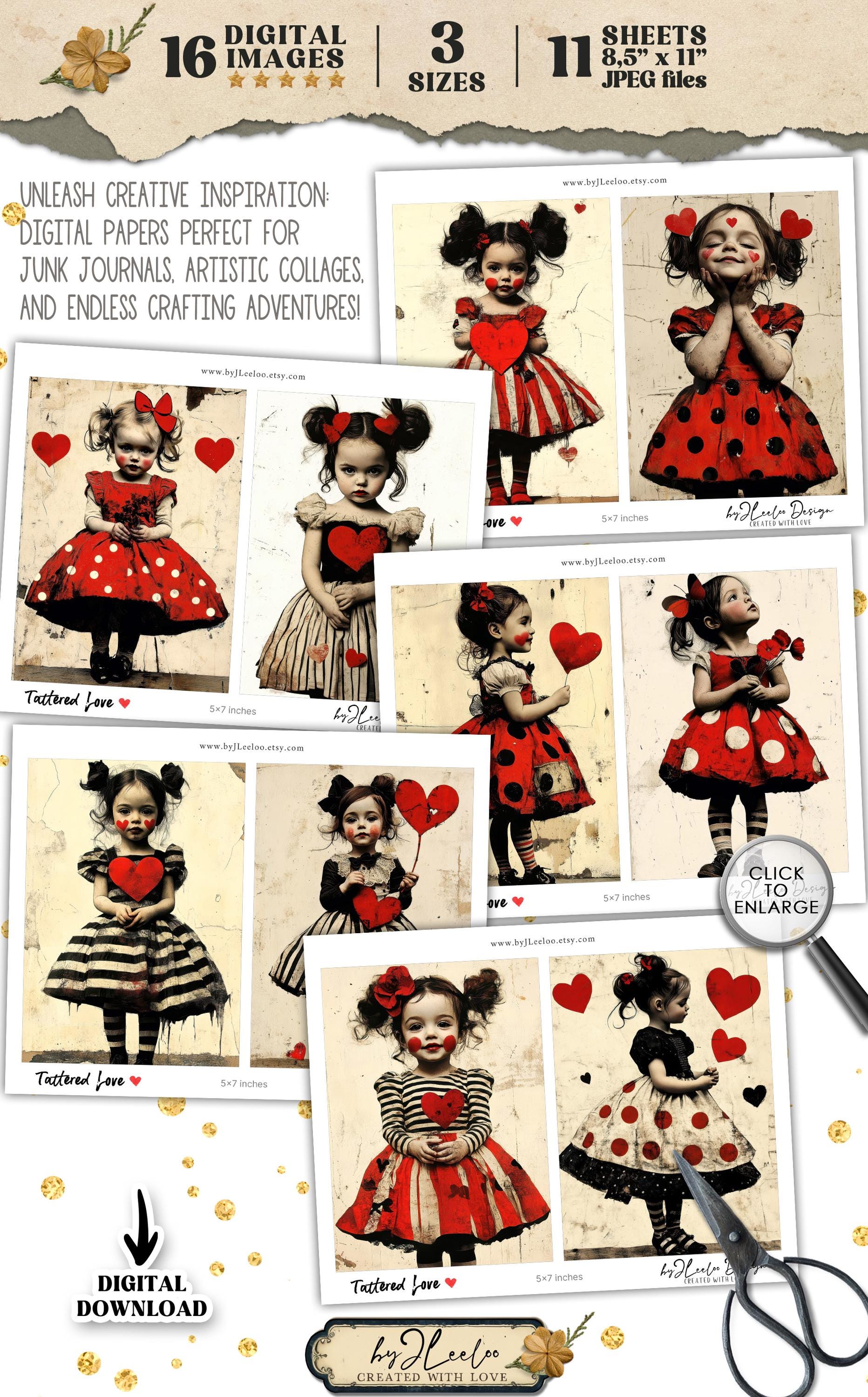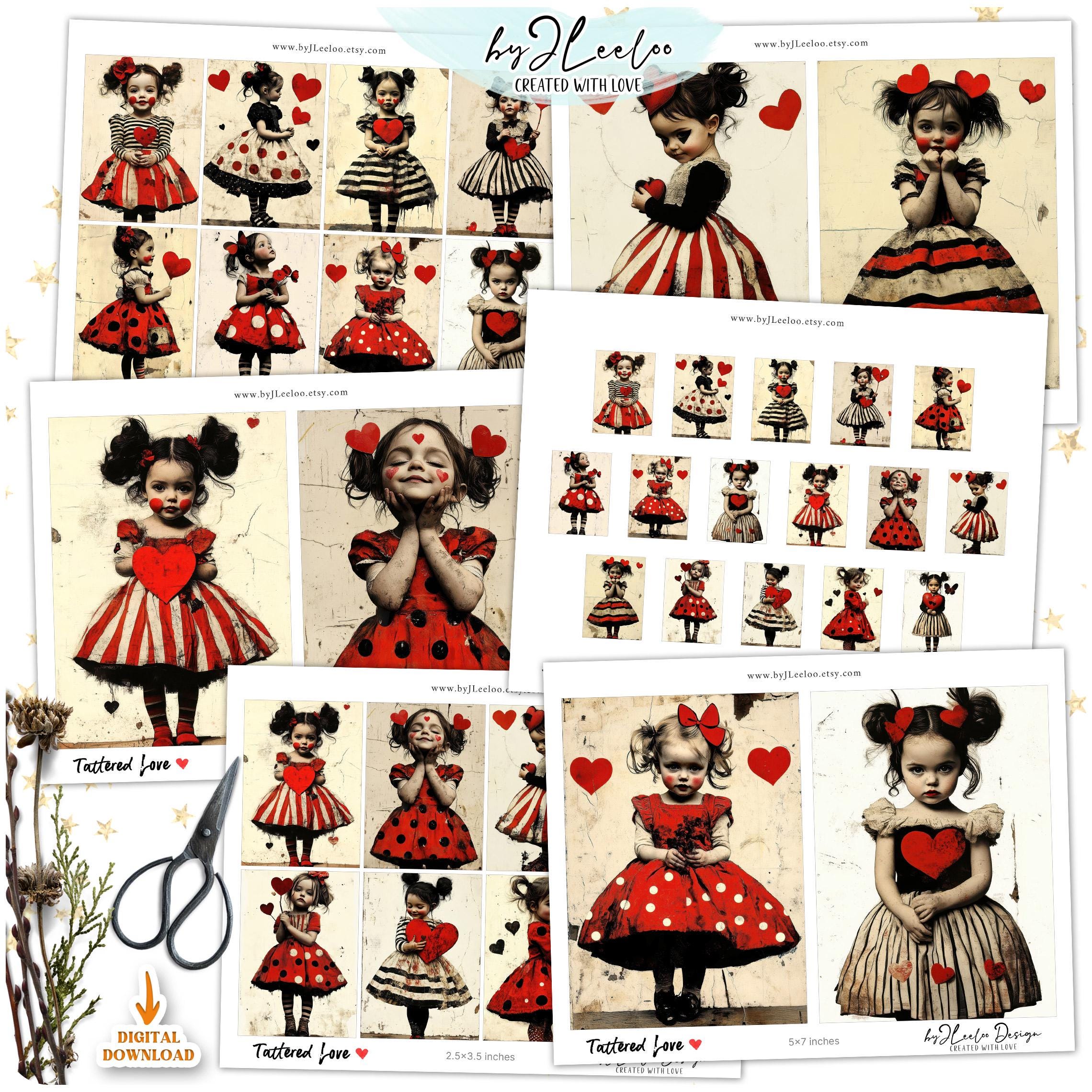 TATTERED LOVE 3 sizes | vintage Valentine card junk journal printable illustration | scrapbook children digital postcard tag label | pp910