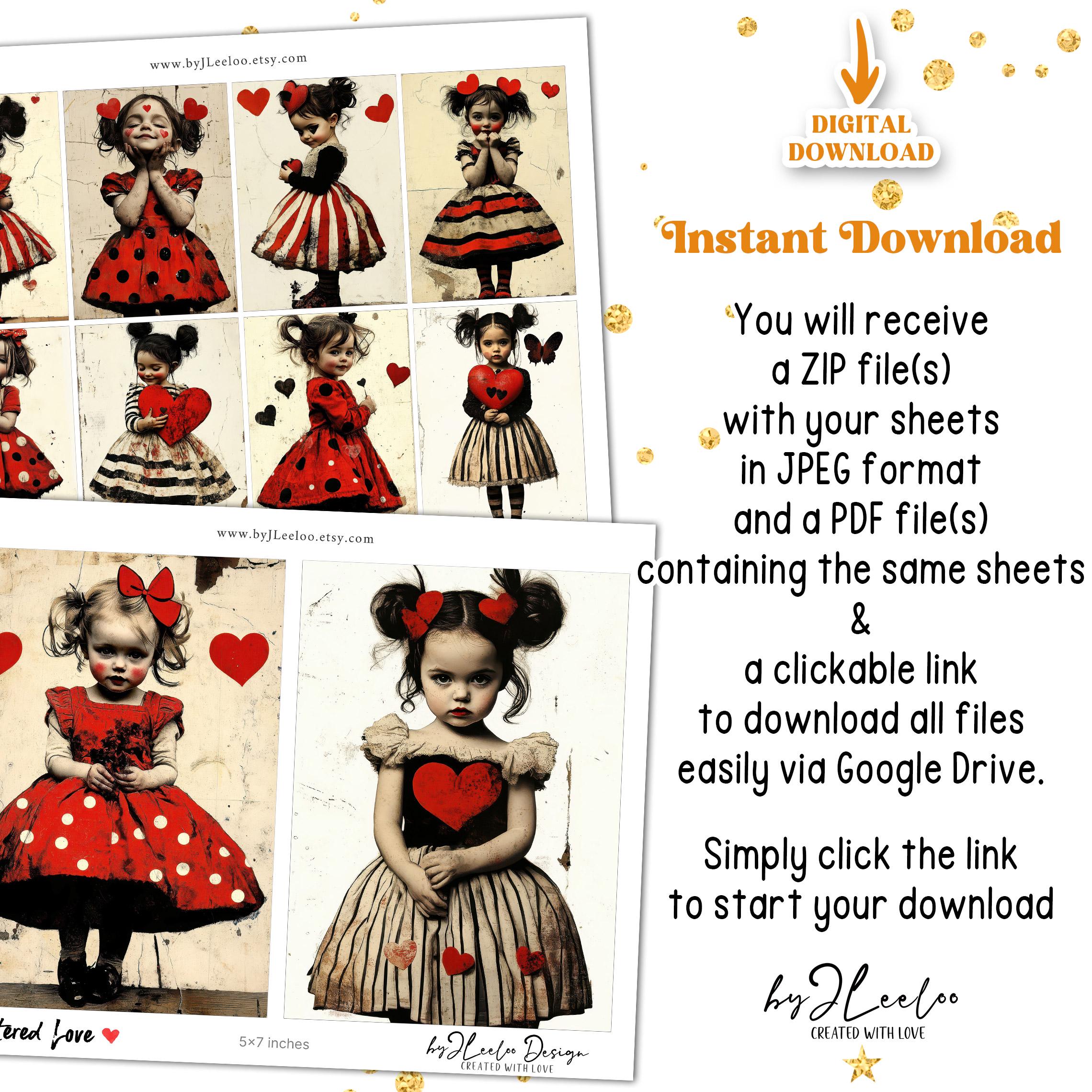 Get ready to add a touch of vintage romance to your crafting projects with this adorable collection of 30 Valentineโs Day images in three different sizes! Whether youโre into scrapbooking, journaling, card-making, or DIY decor, these charming illustrations are perfect for adding that extra bit of magic.