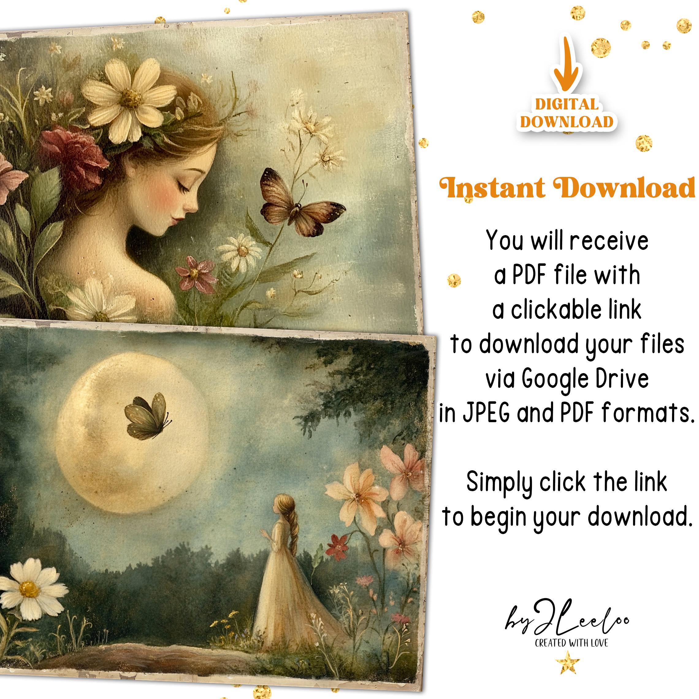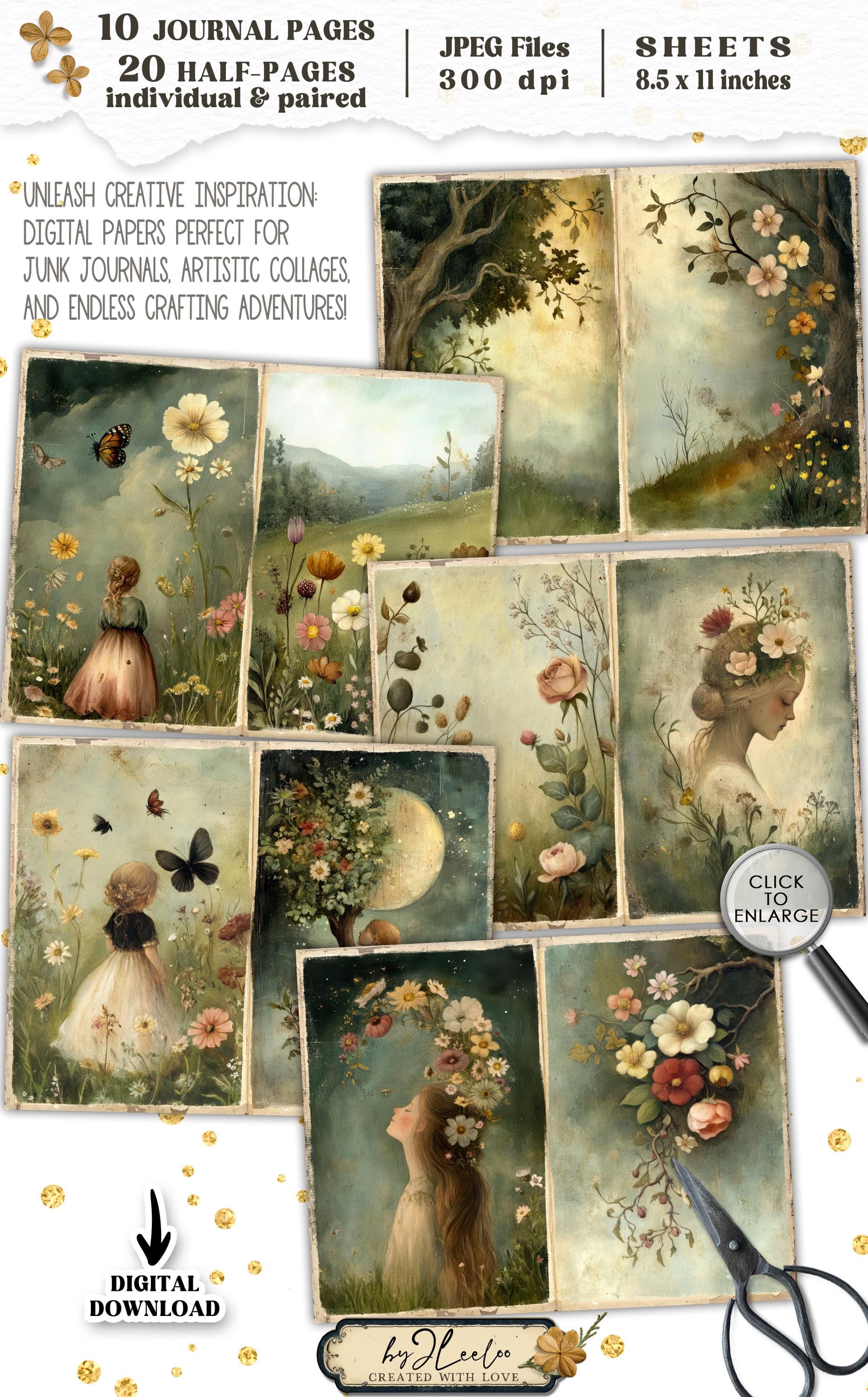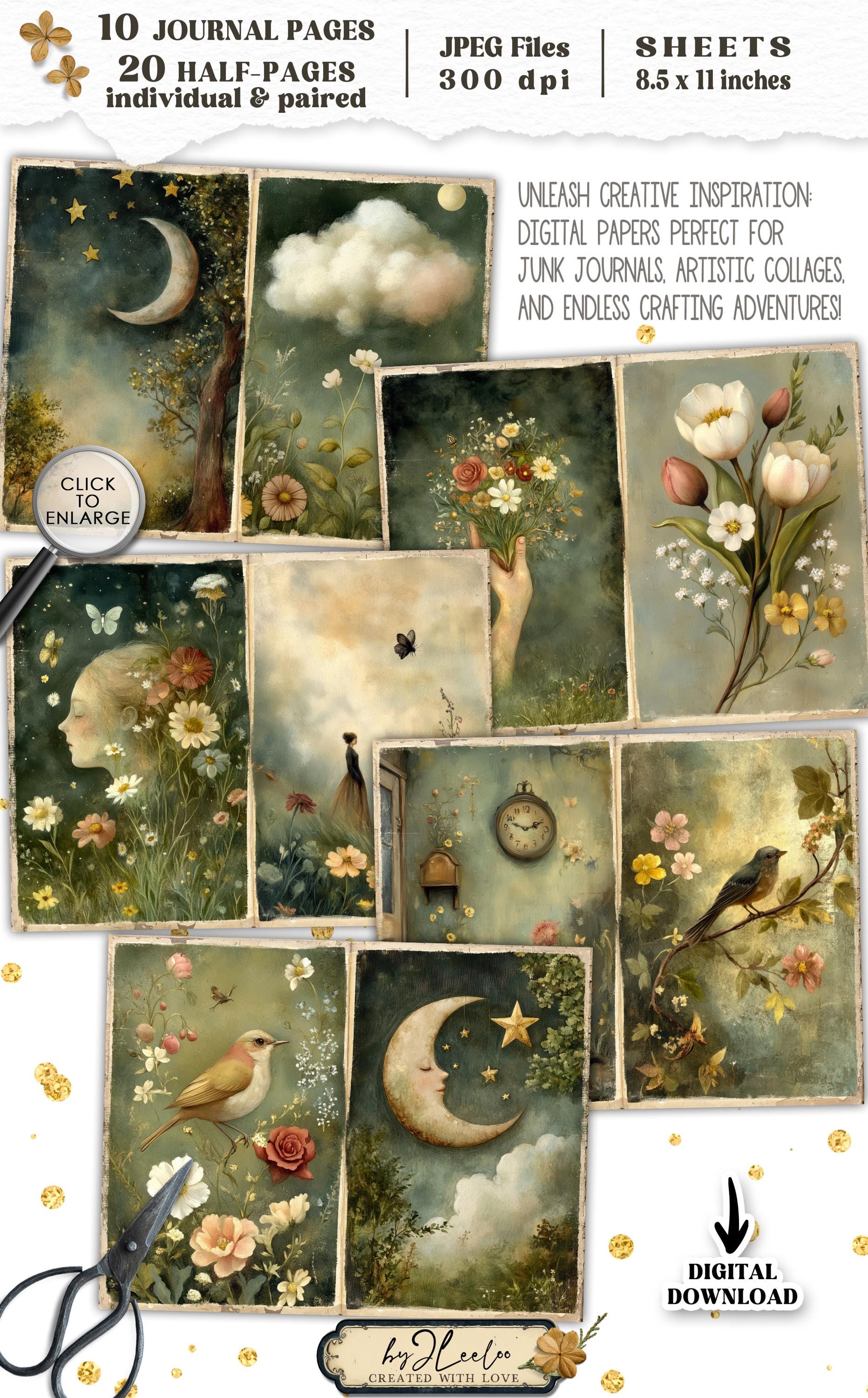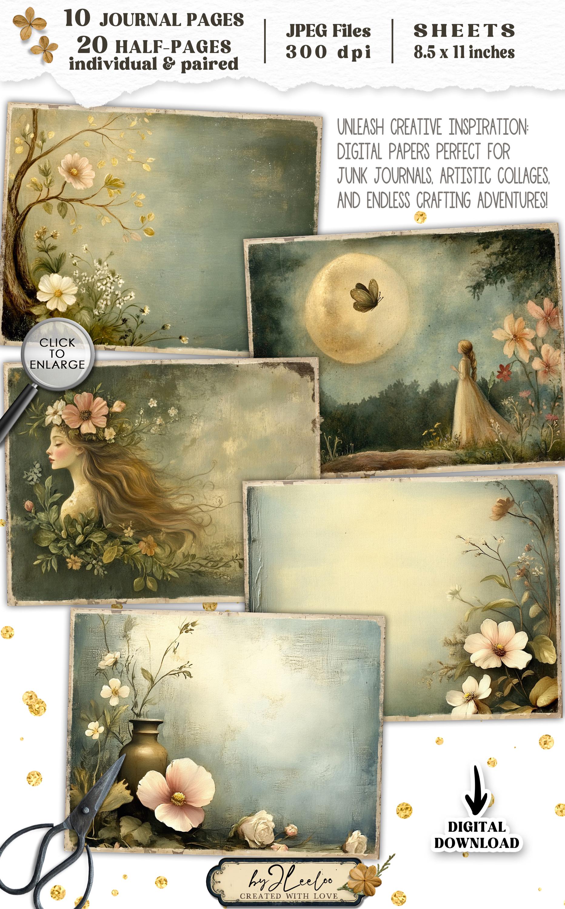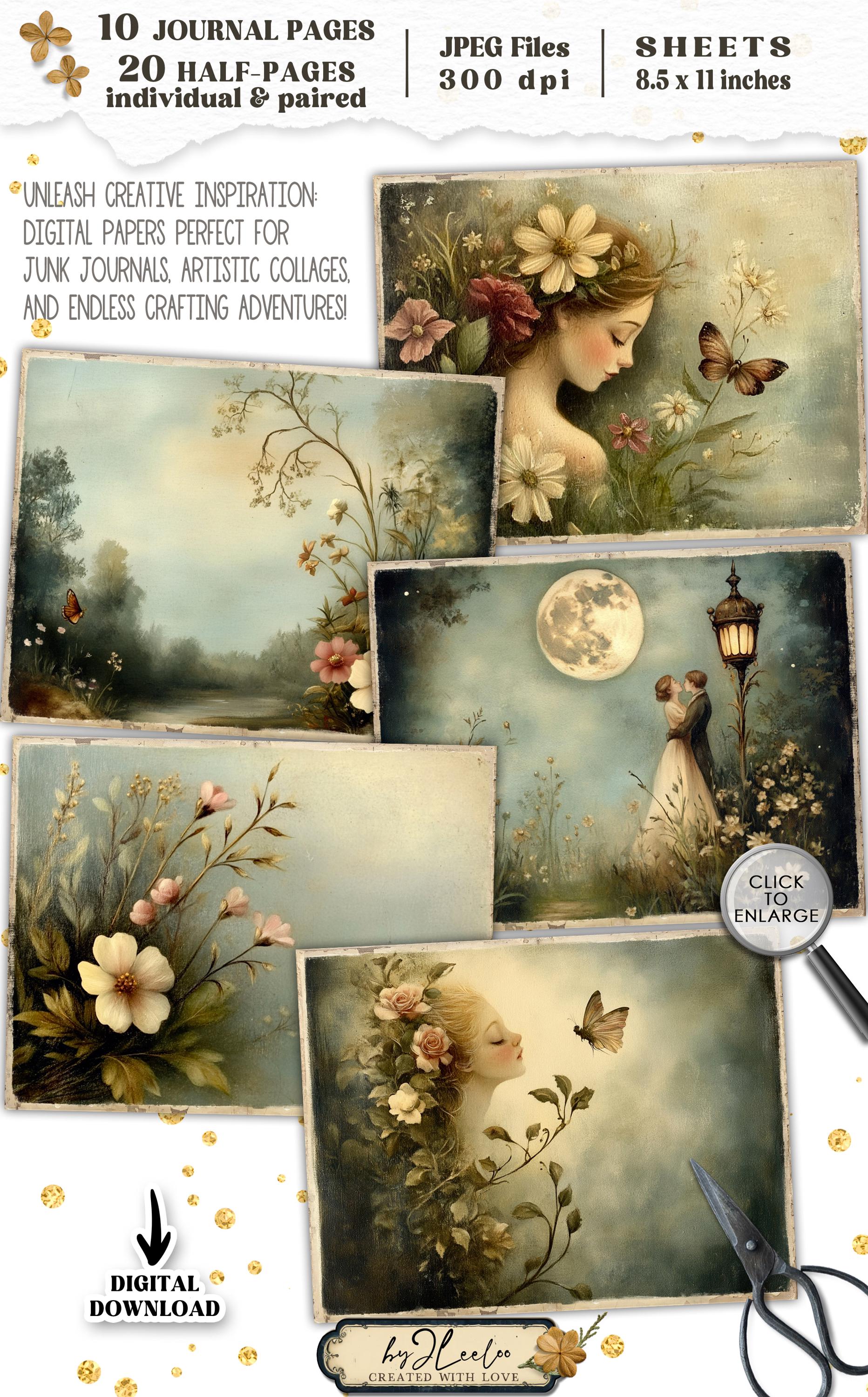ENCHANTED JOURNAL Junk Journal Pages printable | Mystical romantic pages | Digiscrap Kit scrapbook Fantasy collage Antique Craft CU | pp914