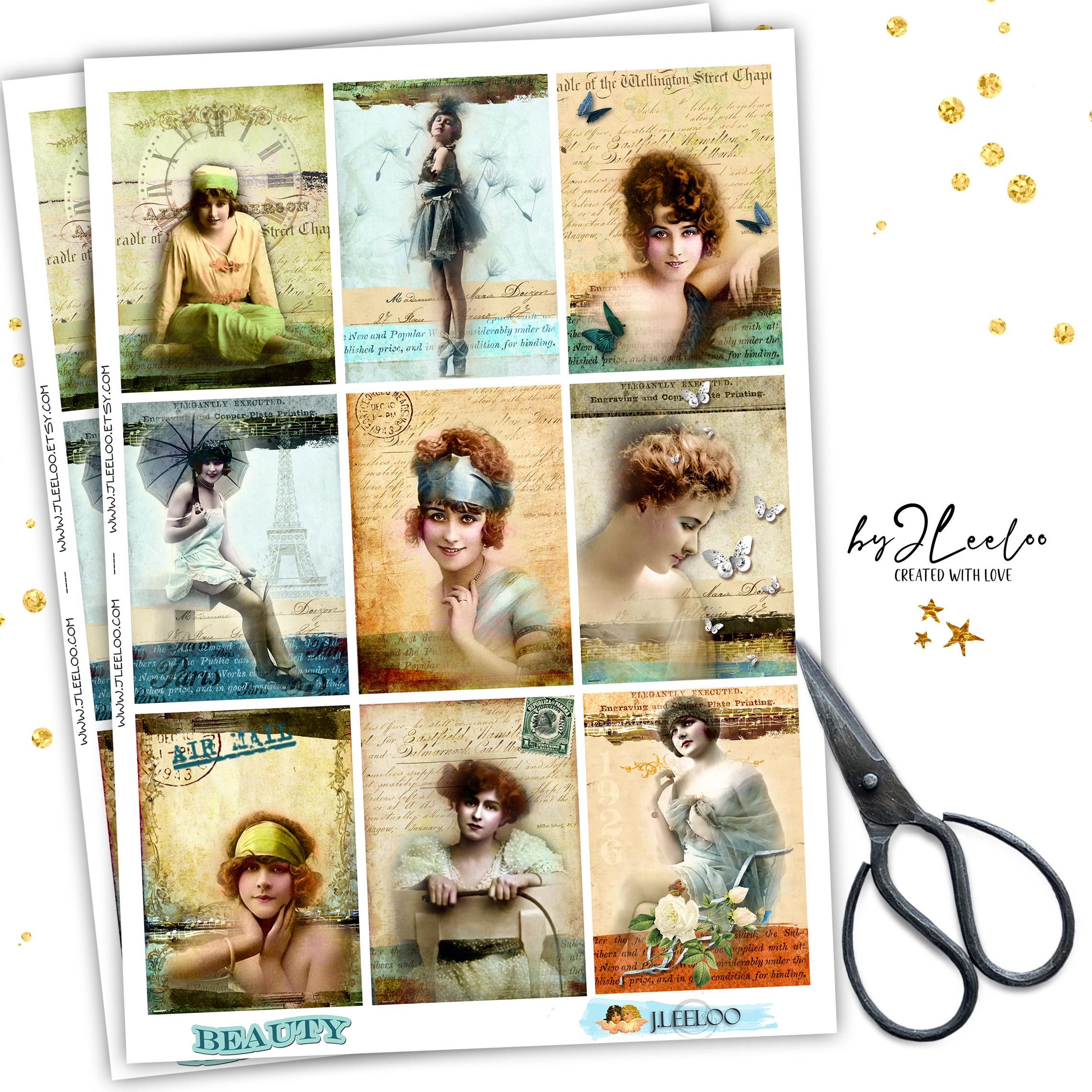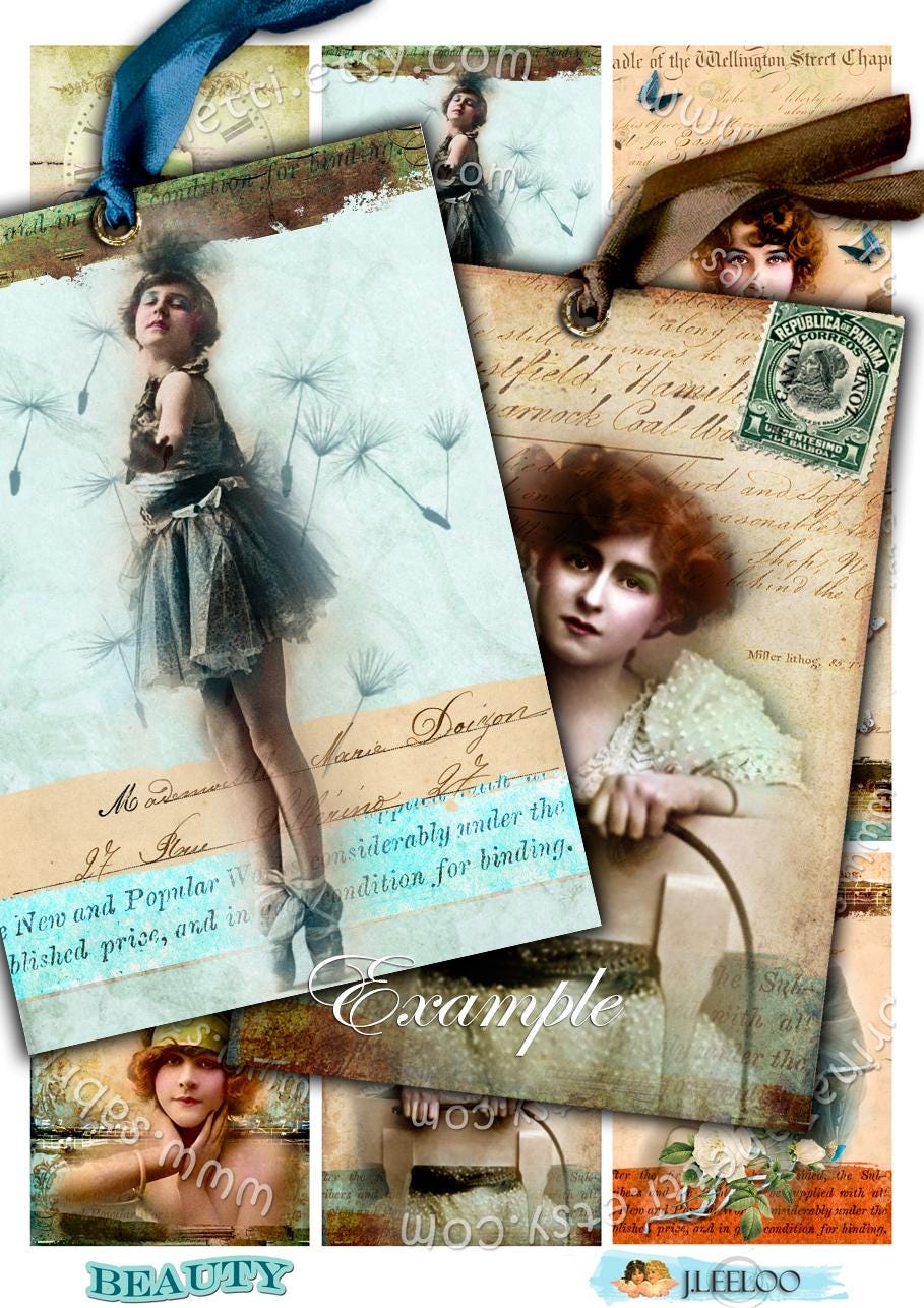 BEAUTY aceo size printable vintage | collage photo cards for journal scrapbooking making card | ephemera paris dancer girls CU | ac191