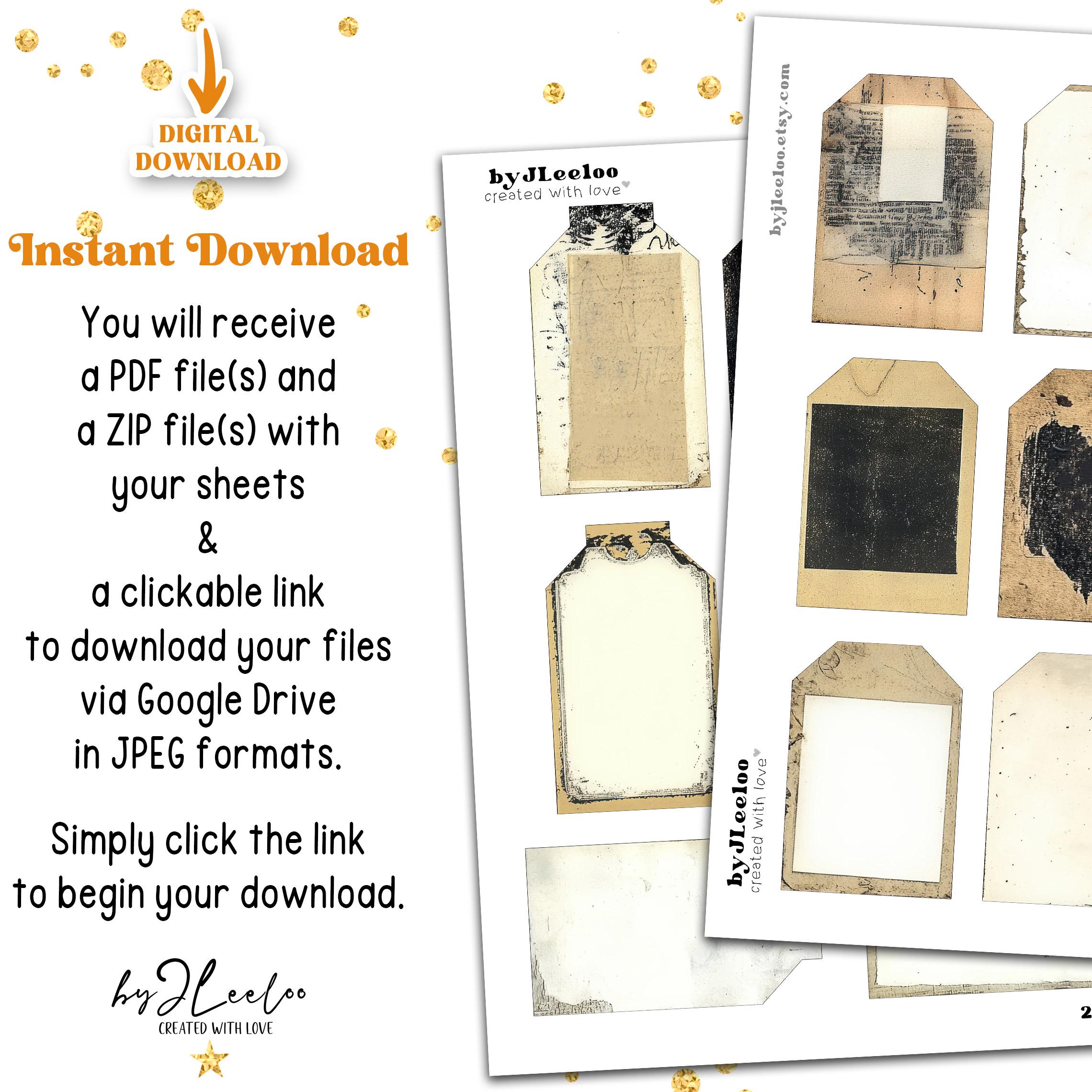 Love these tags as a foundation for other collages. The tags combine well with other items from this shop. Items print clearly and download easily. Thank you!